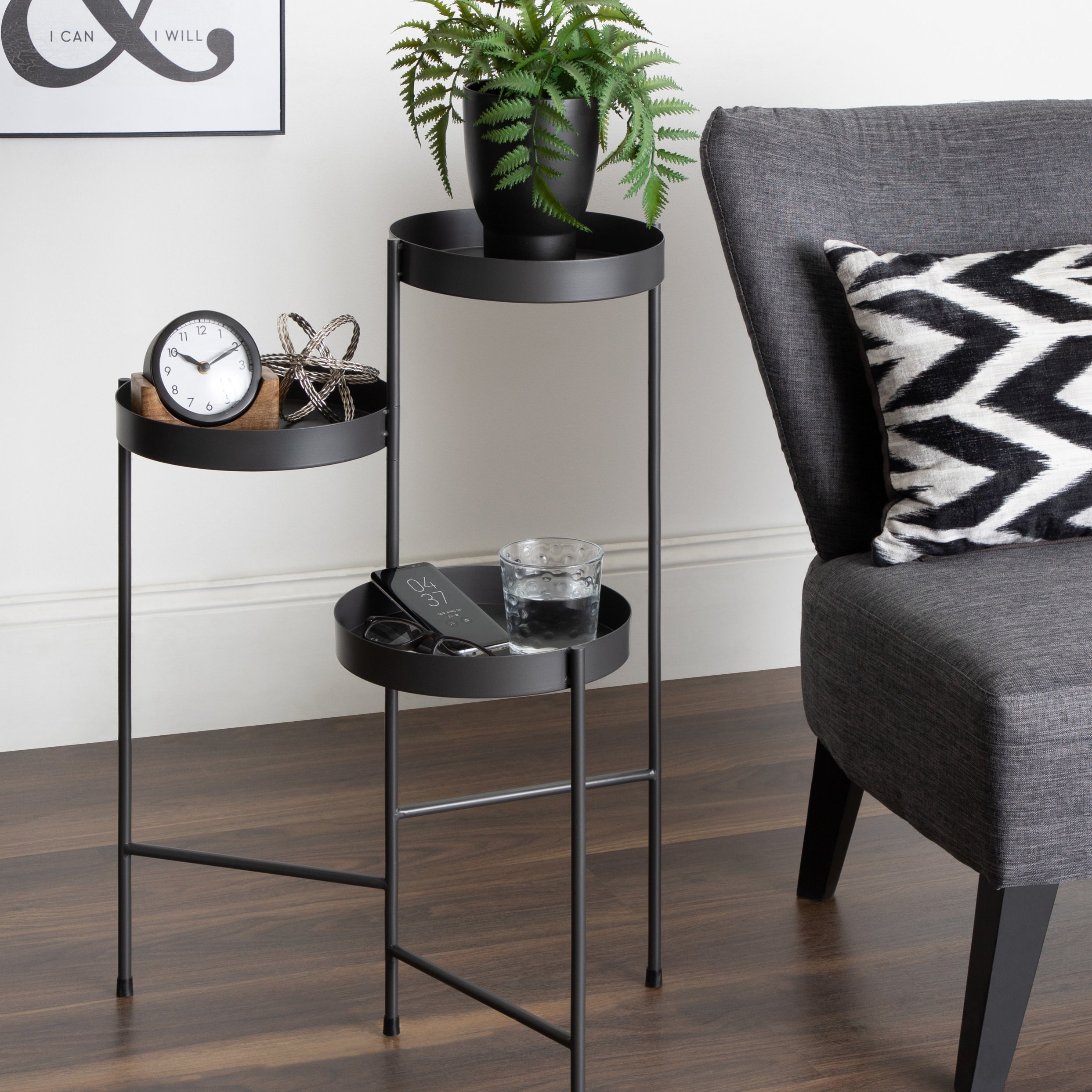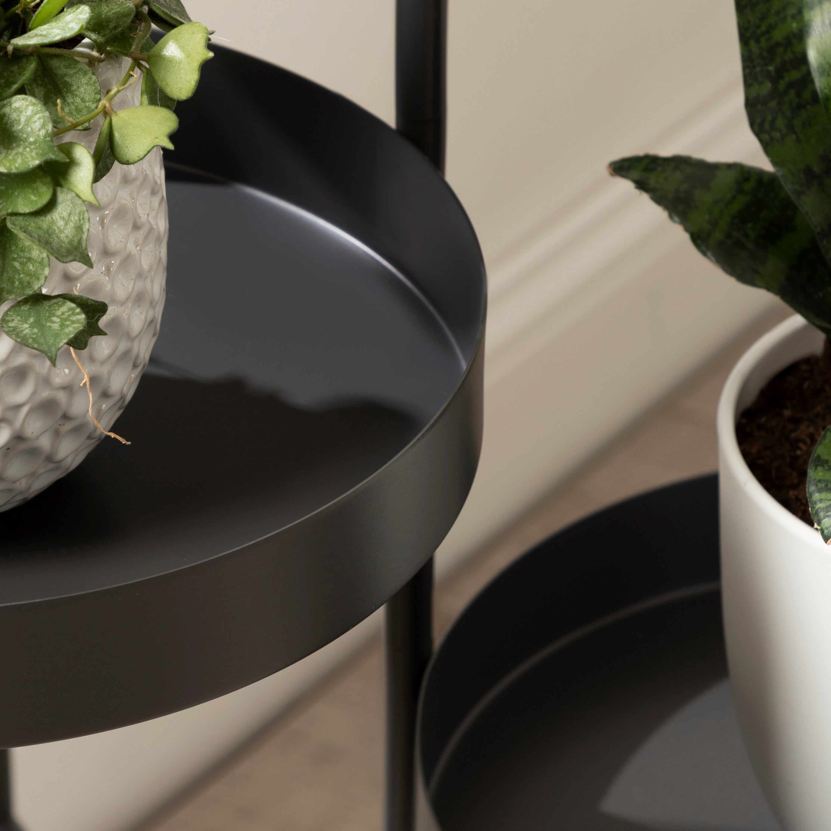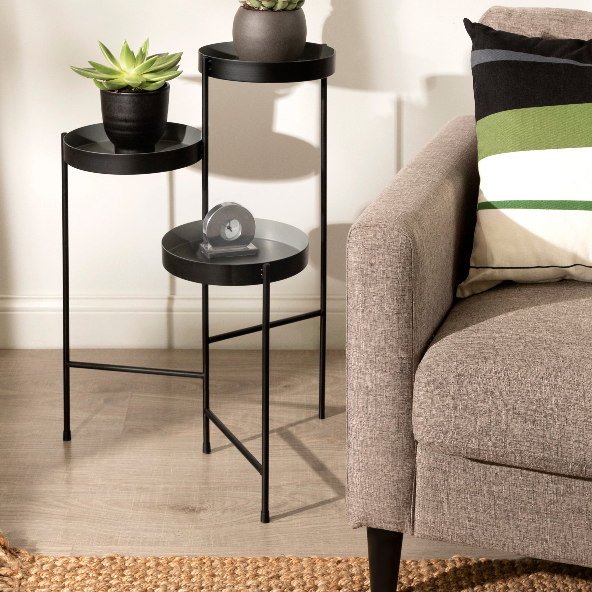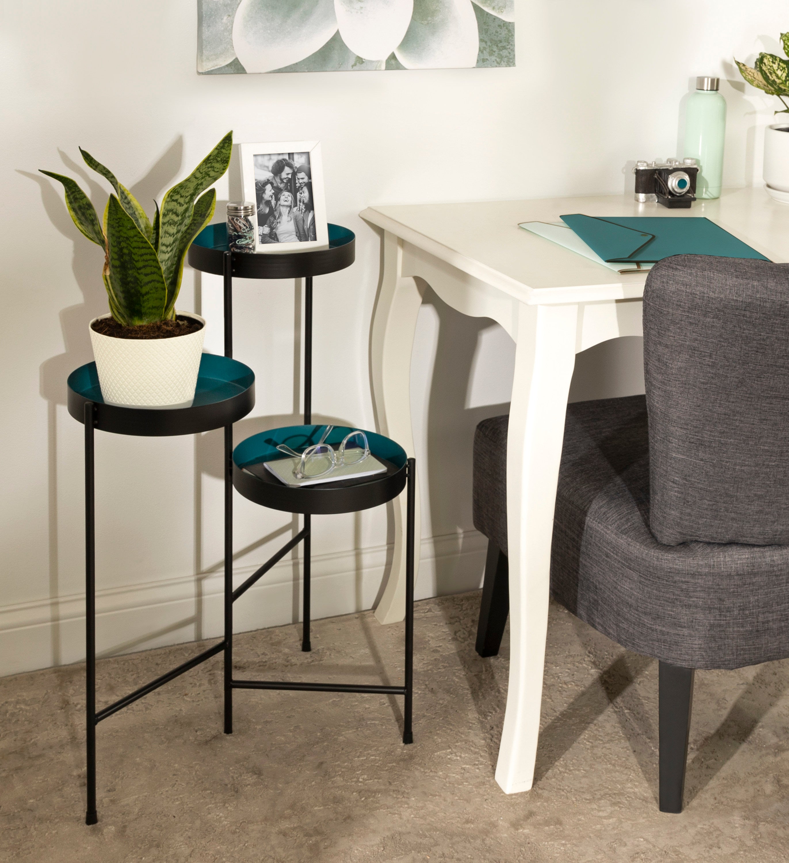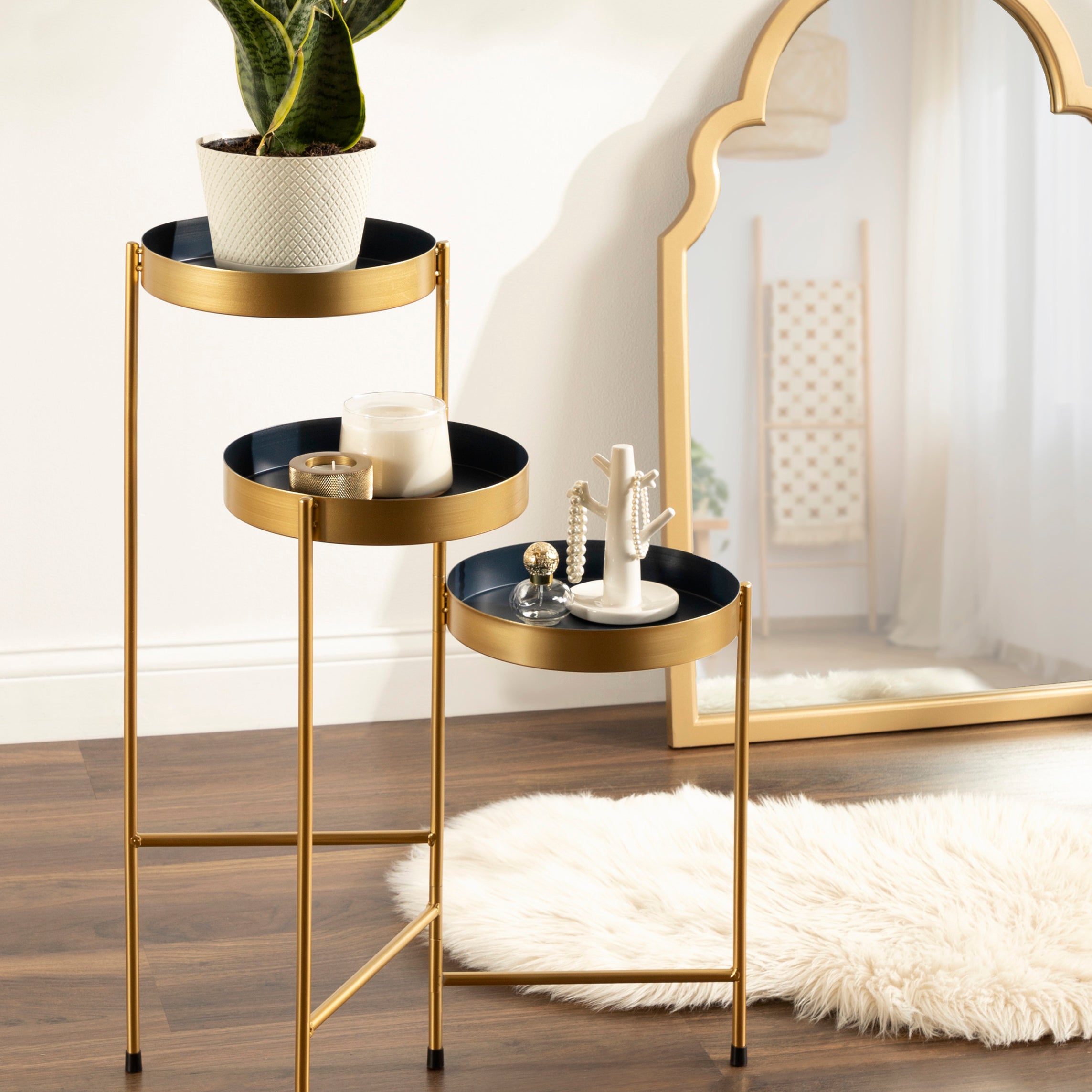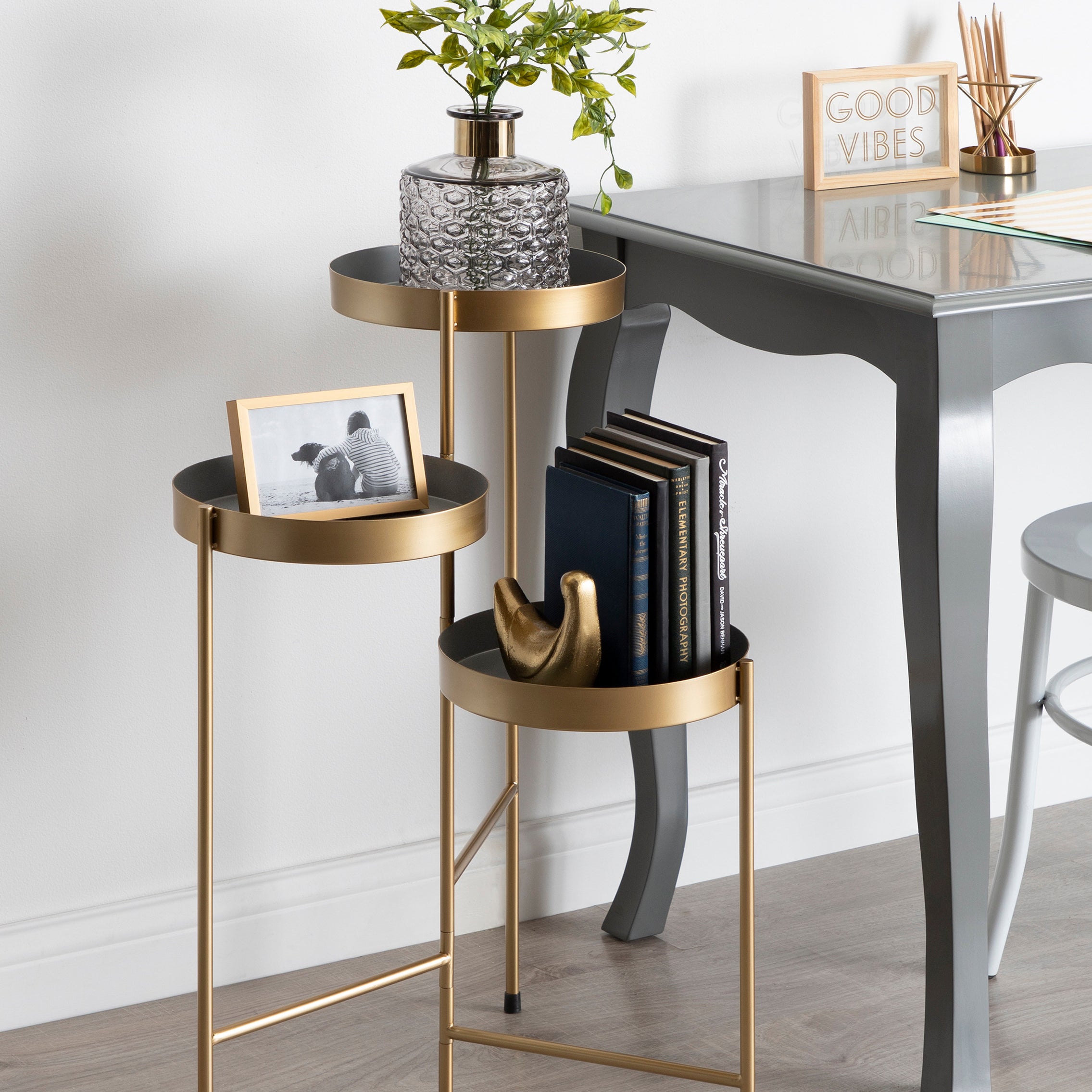 Perfectly present your plants with the Finn tri-level plant stand. The versatility is in the design. The graceful stair-step arrangement can display three large plants in a minimum amount of space. The hinged legs allow you to arrange it in a way the suits you or store away when necessary. Its a modern look with a glamorous style that will fit in with your contemporary home.