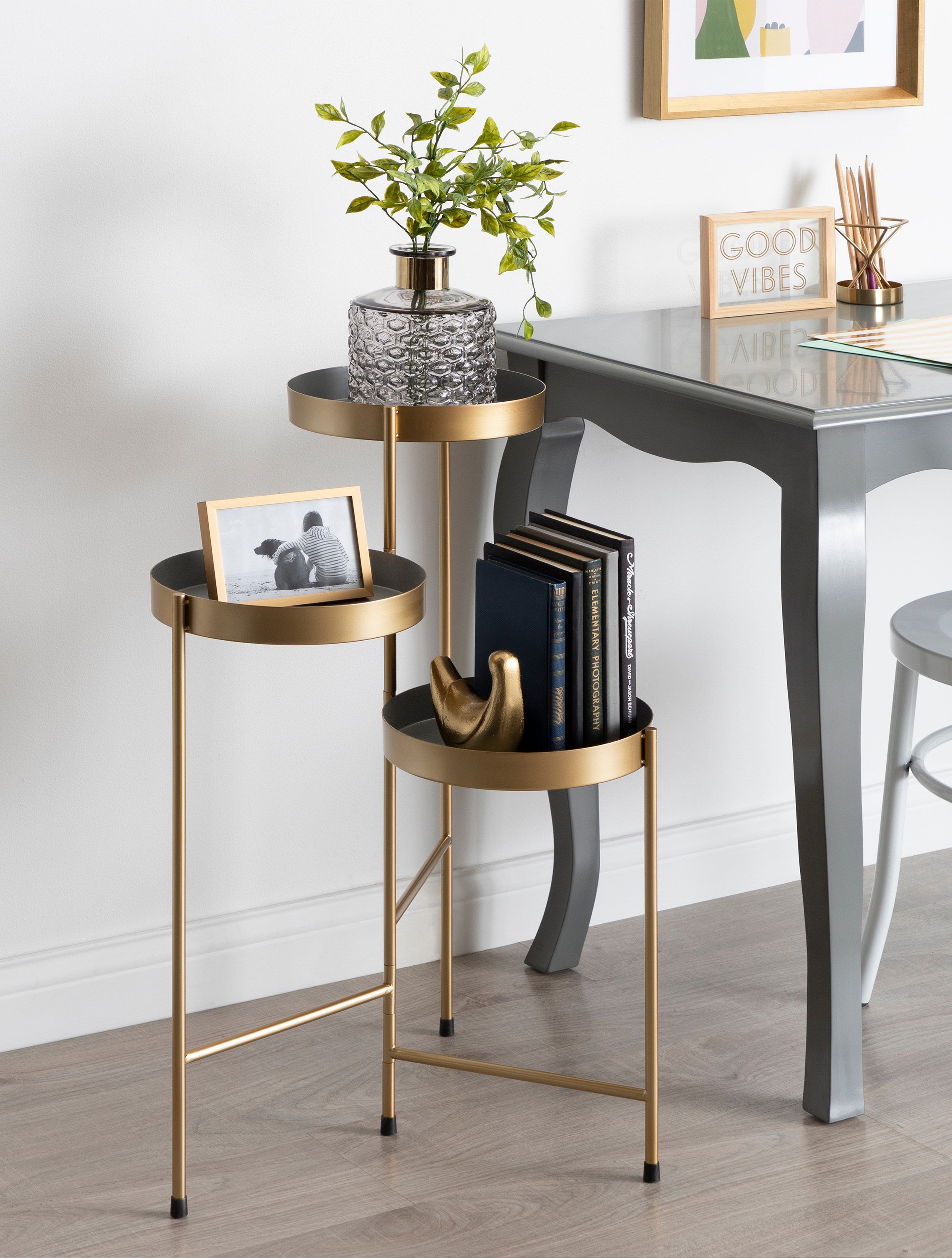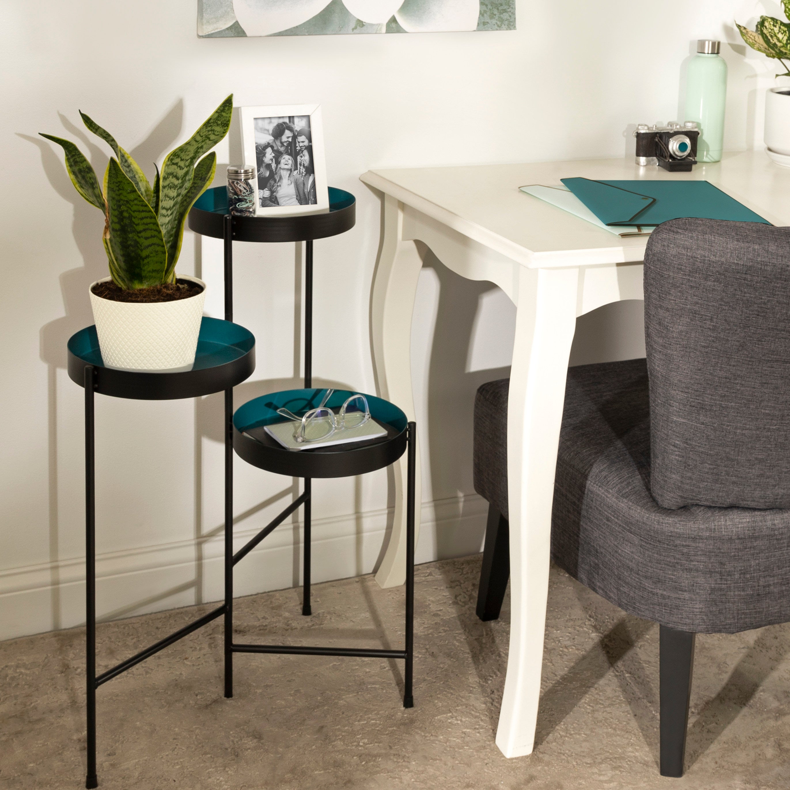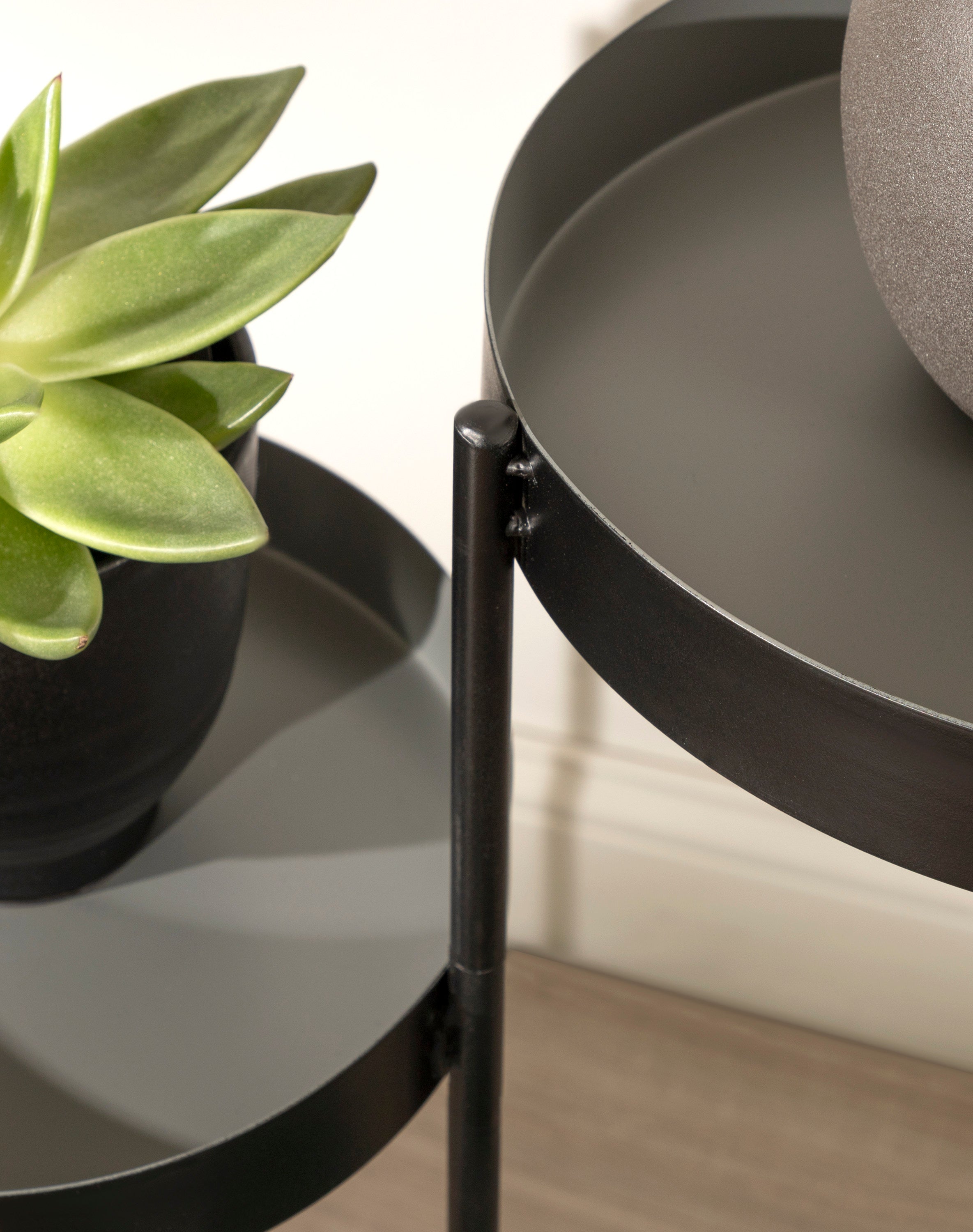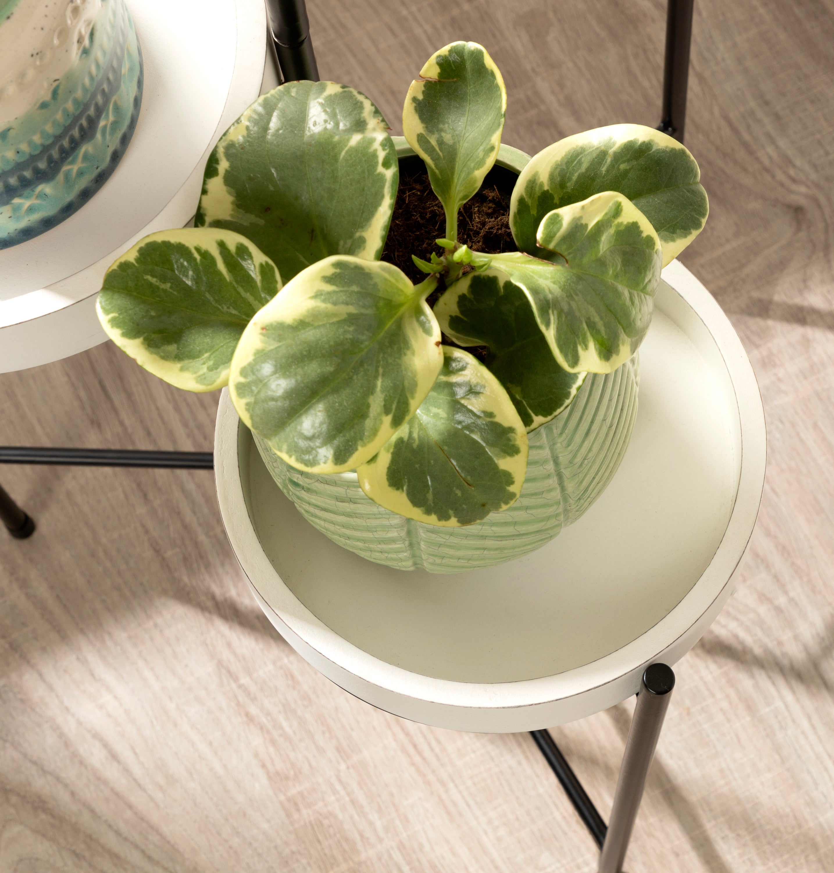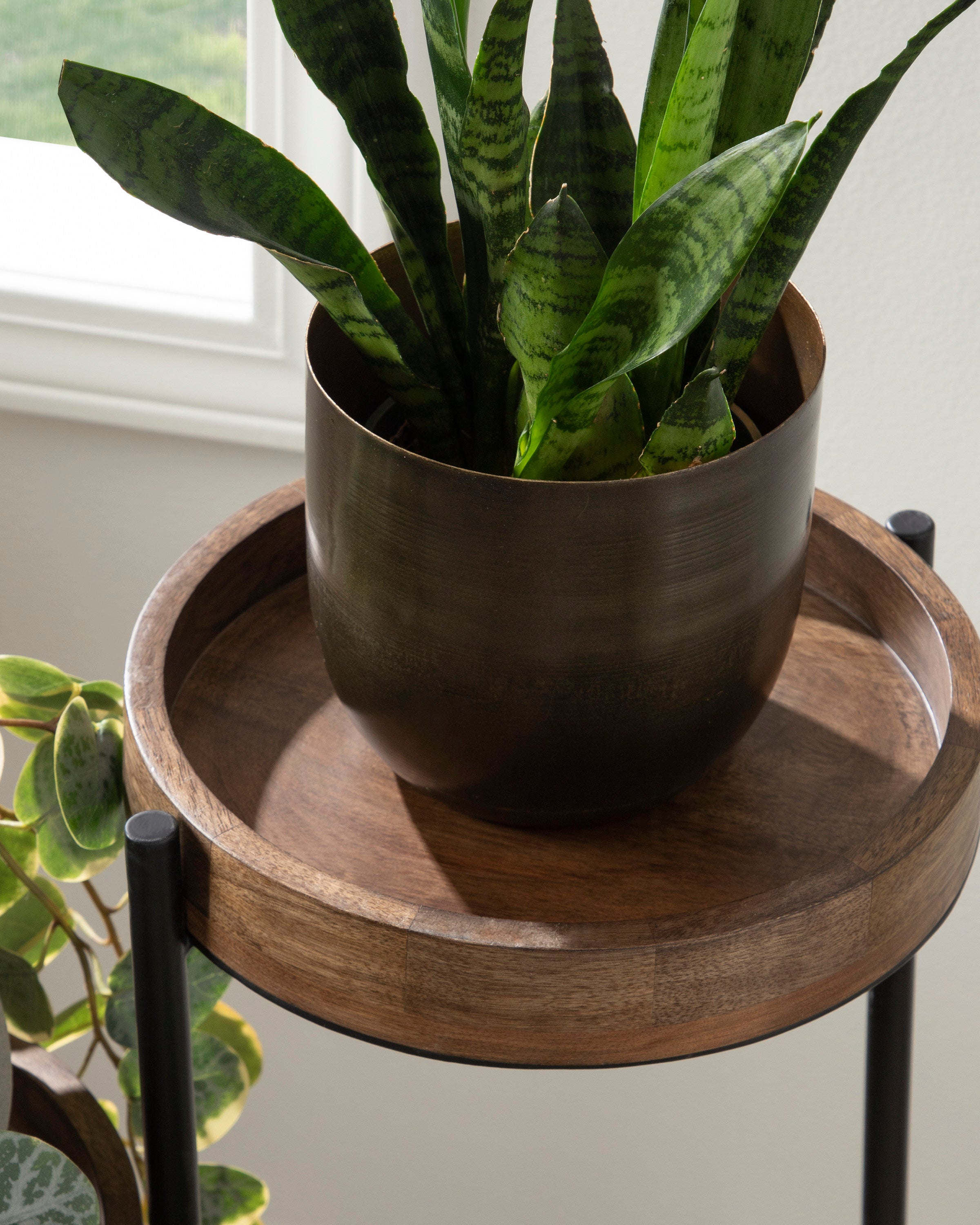 Perfectly present your plants with the Finn tri-level plant stand. The versatility is in the design. The graceful stair-step arrangement can display three large plants in a minimum amount of space. The hinged legs allow you to arrange it in a way the suits you or store away when necessary. Its a modern look with a glamorous style that will fit in with your contemporary home.