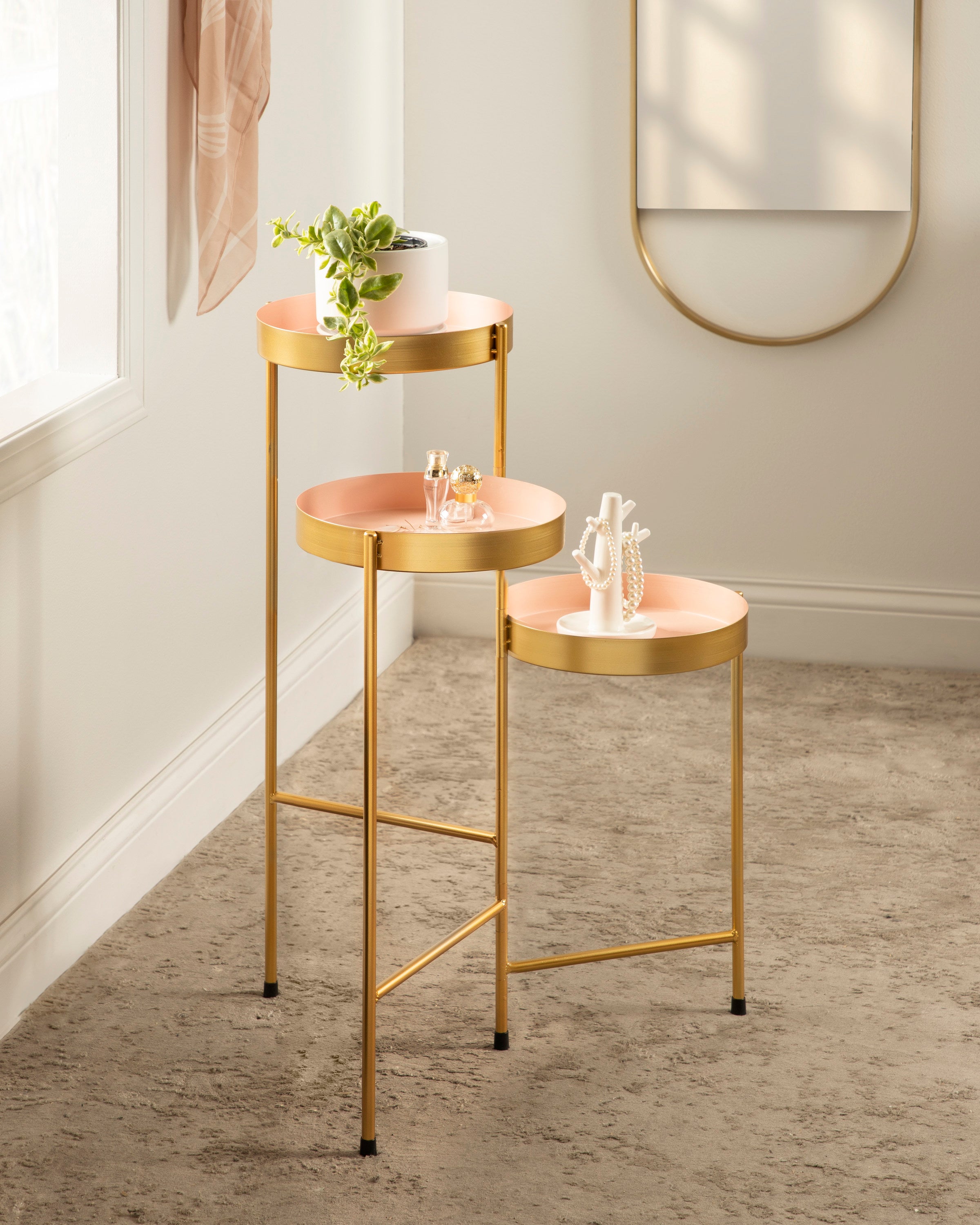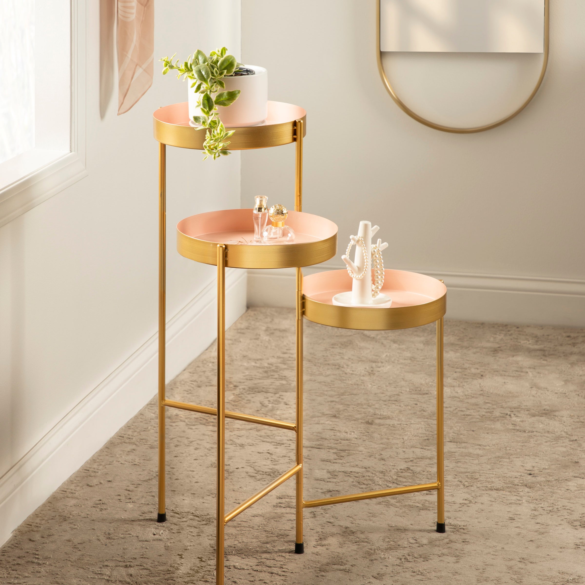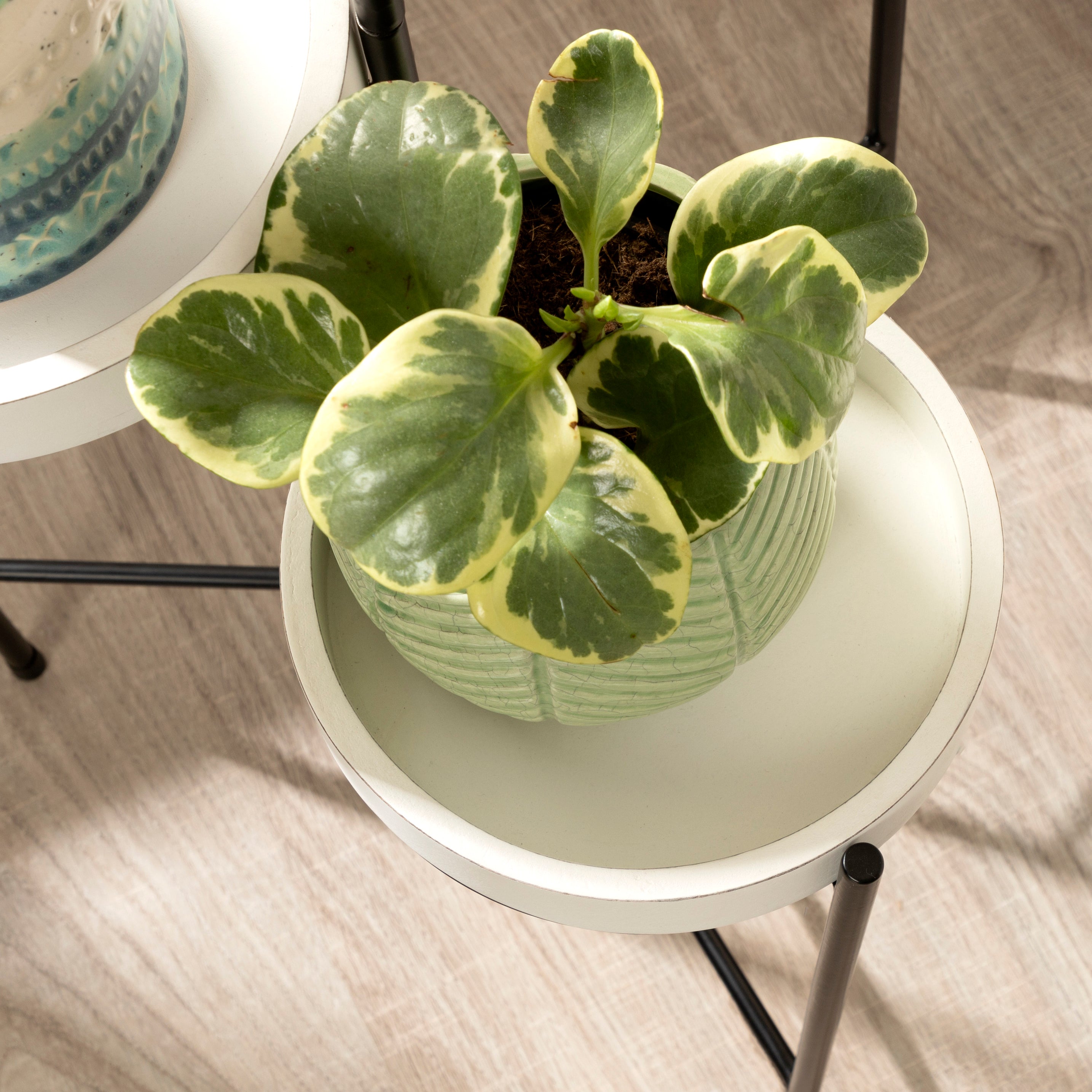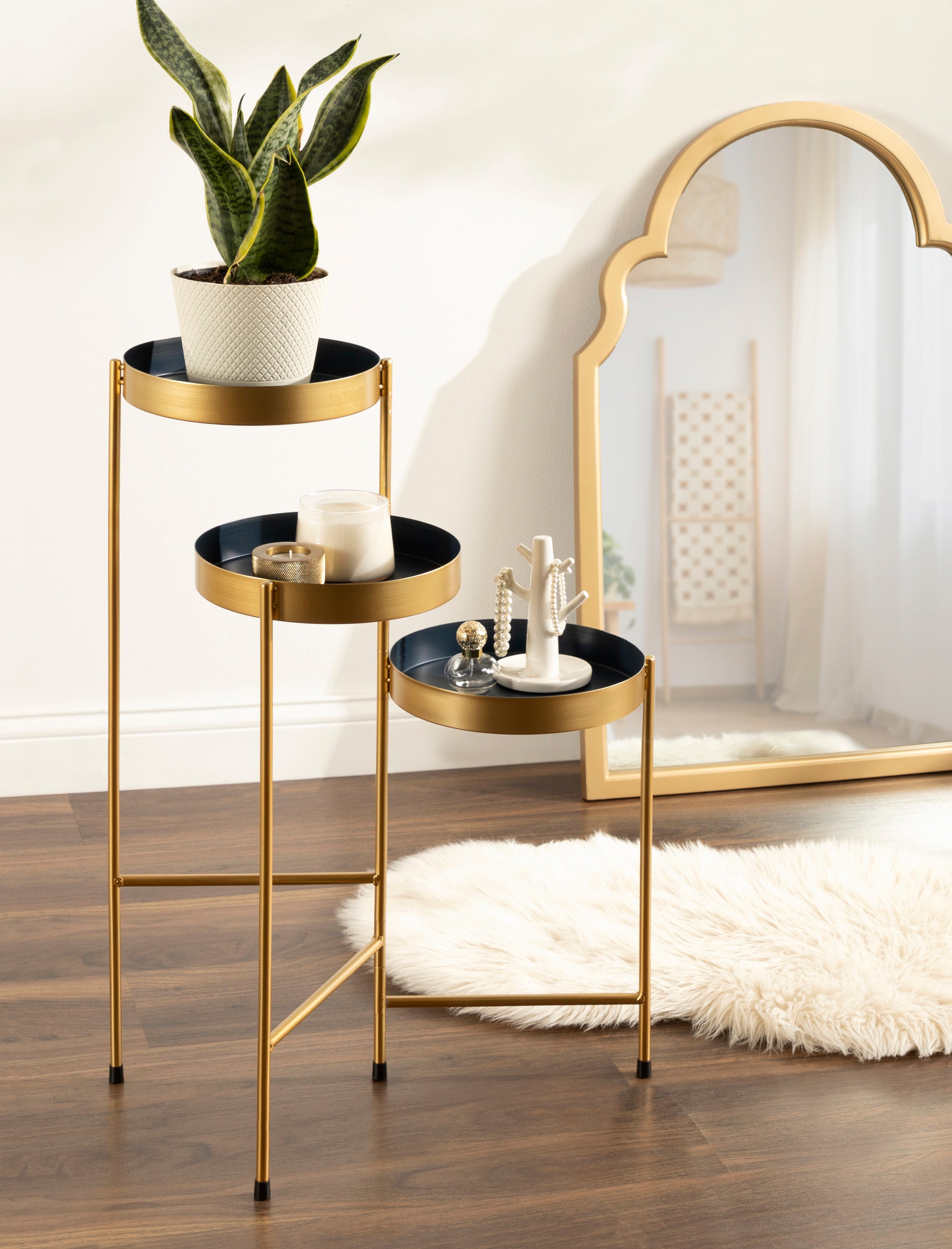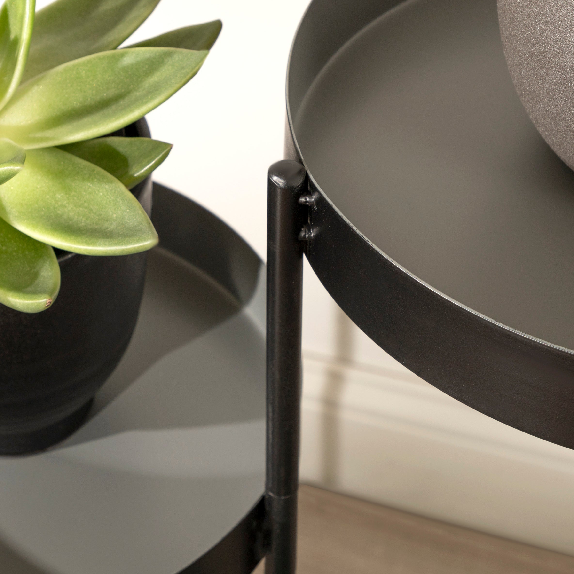 Perfectly present your plants with the Finn tri-level plant stand. The versatility is in the design. The graceful stair-step arrangement can display three large plants in a minimum amount of space. The hinged legs allow you to arrange it in a way the suits you or store away when necessary. Its a modern look with a glamorous style that will fit in with your contemporary home.