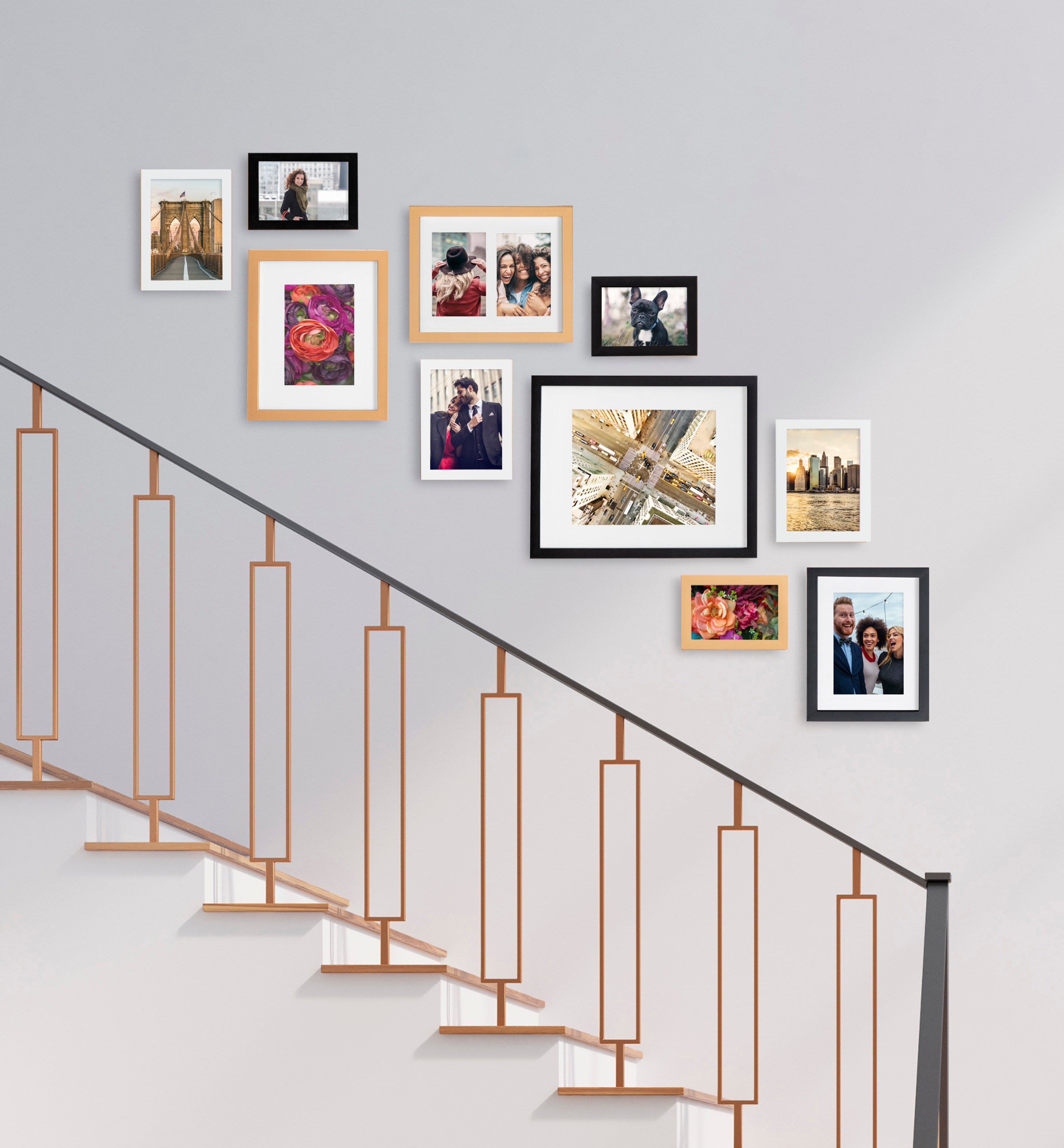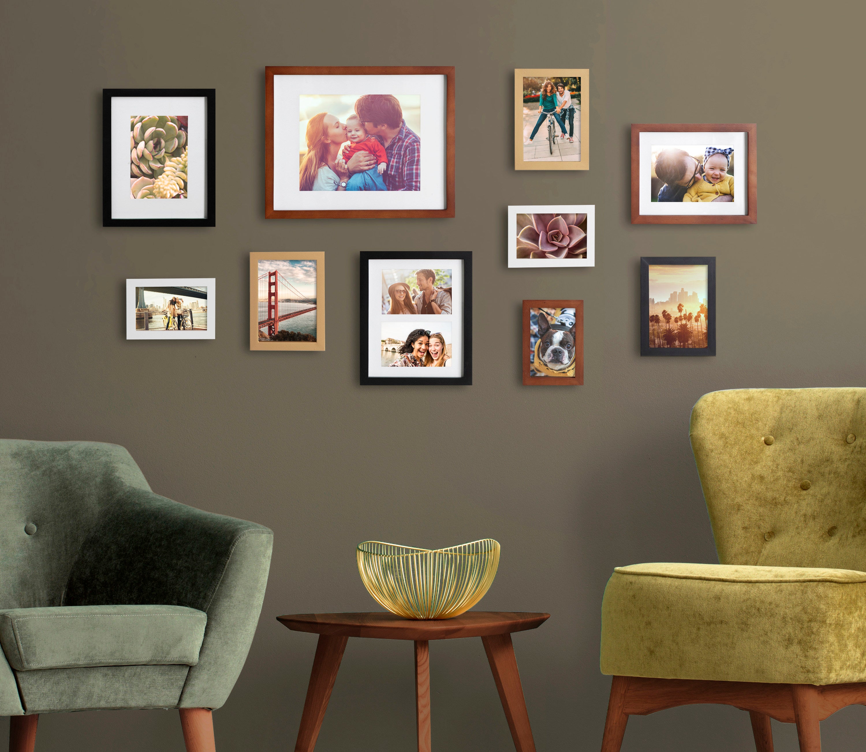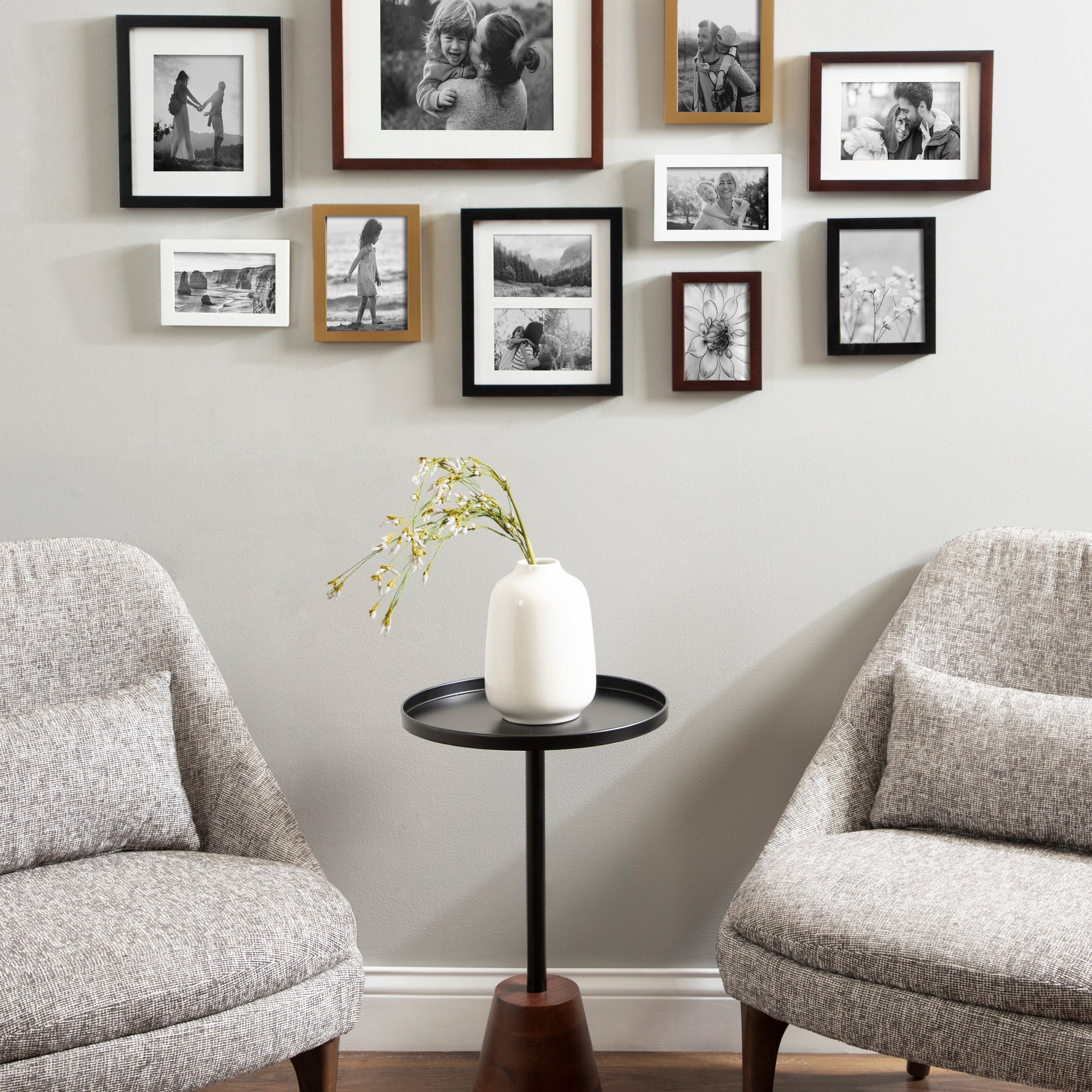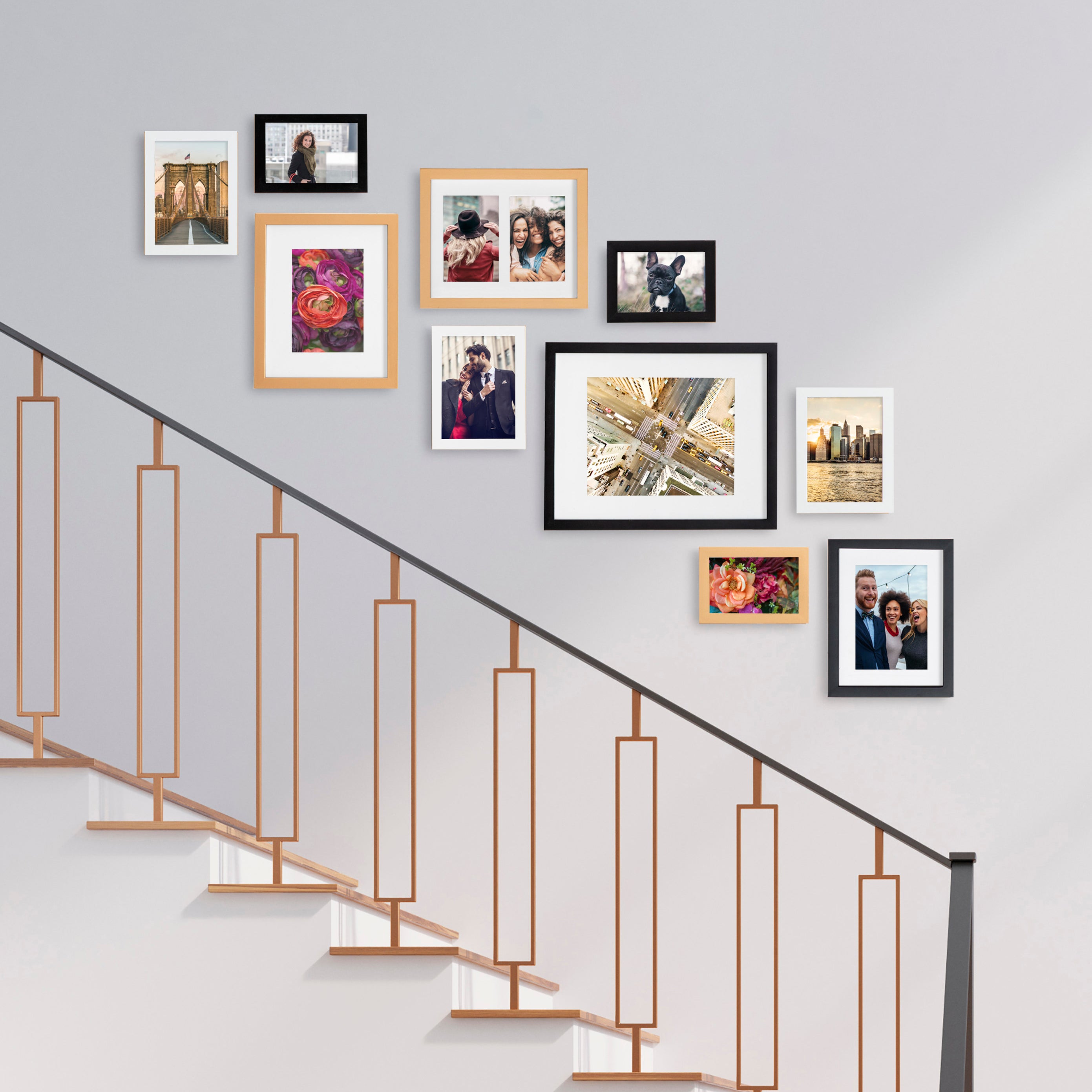 Create a stunning gallery wall with this beautiful 10-piece Gallery picture frame set from Kate and Laurel. With differing sizes and finishes, this marvelous collection can absolutely transform any open wall into a delightful combination of memories, scenery, and refinement. Family photographs should be displayed where they can be a constant reminder that time spent with family and friends should be remembered and enjoyed by everyone. Sharing those photos is a joy that brings not only you satisfaction but also entertains your guests.