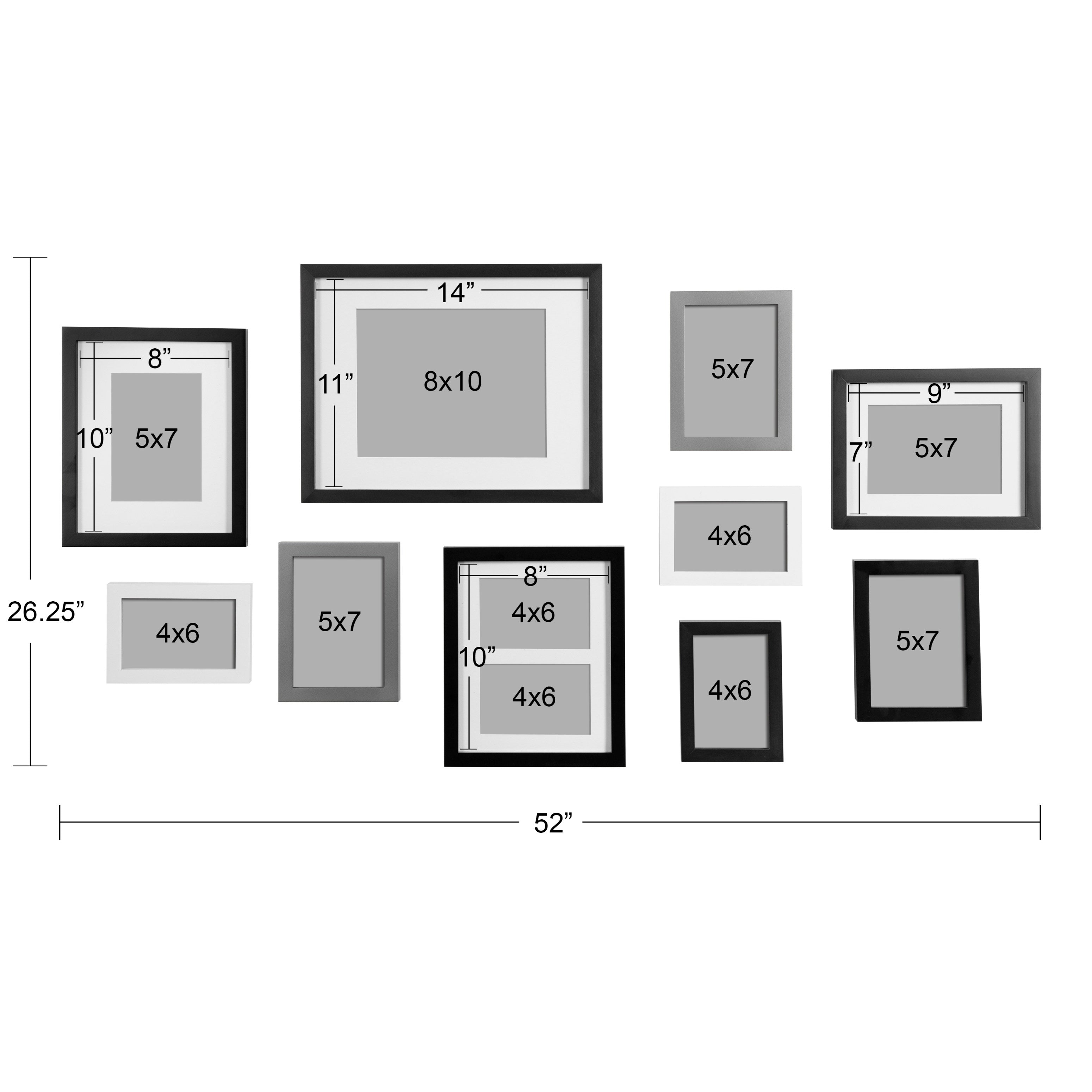 - Includes two 8x10, one 11x14, one 7x9, three 5x7, and three 4x6 frames