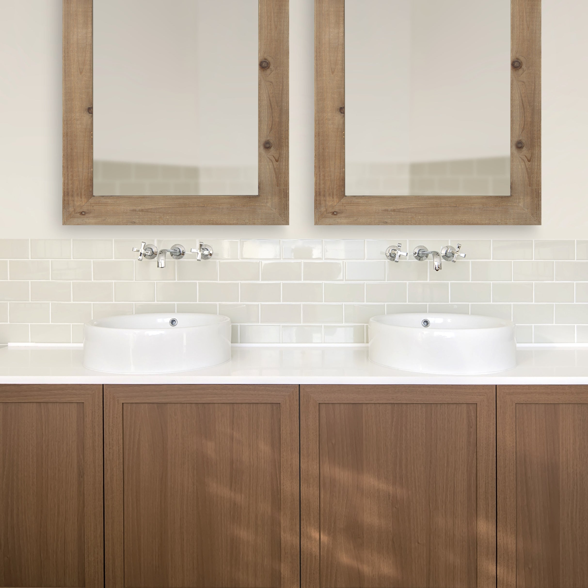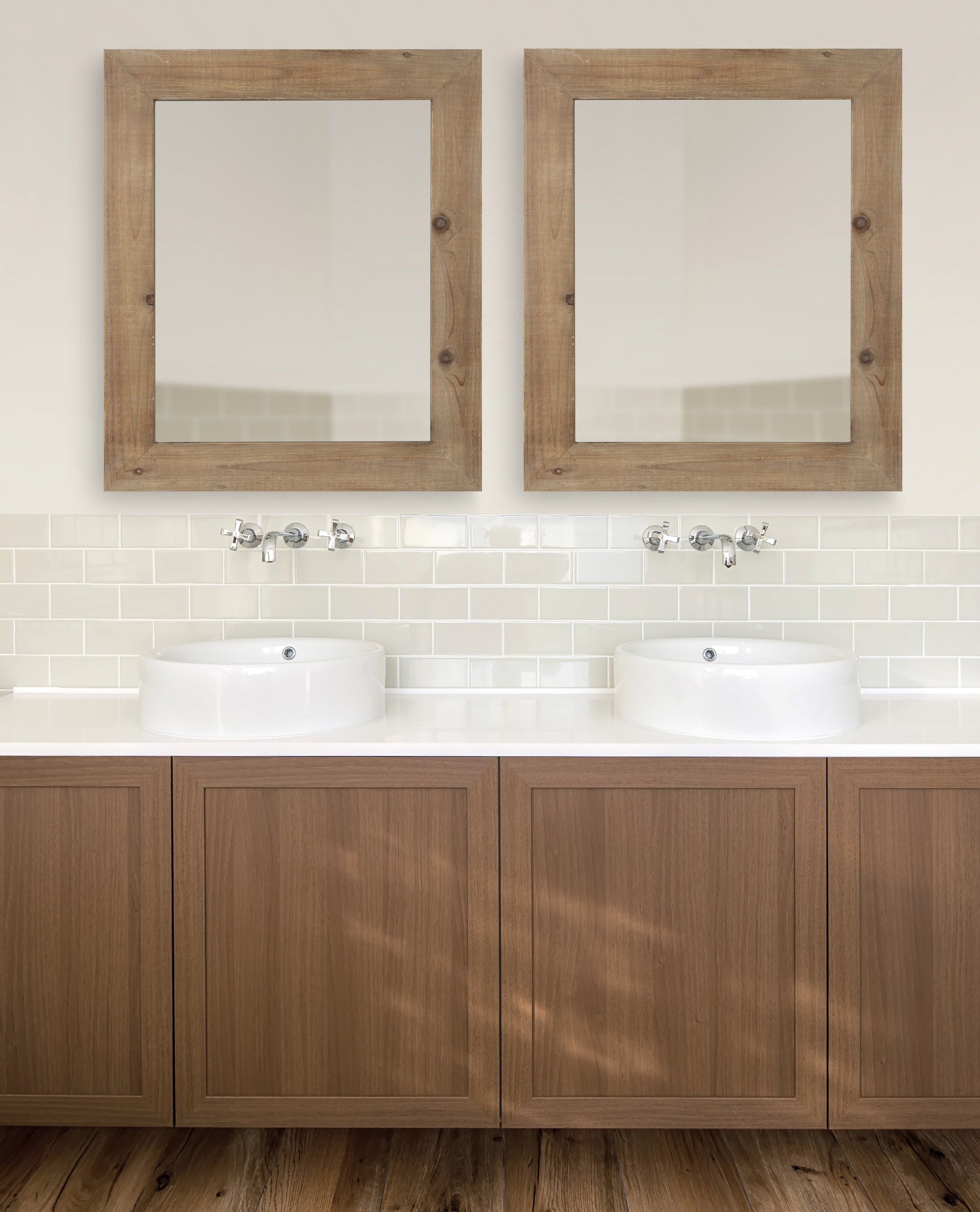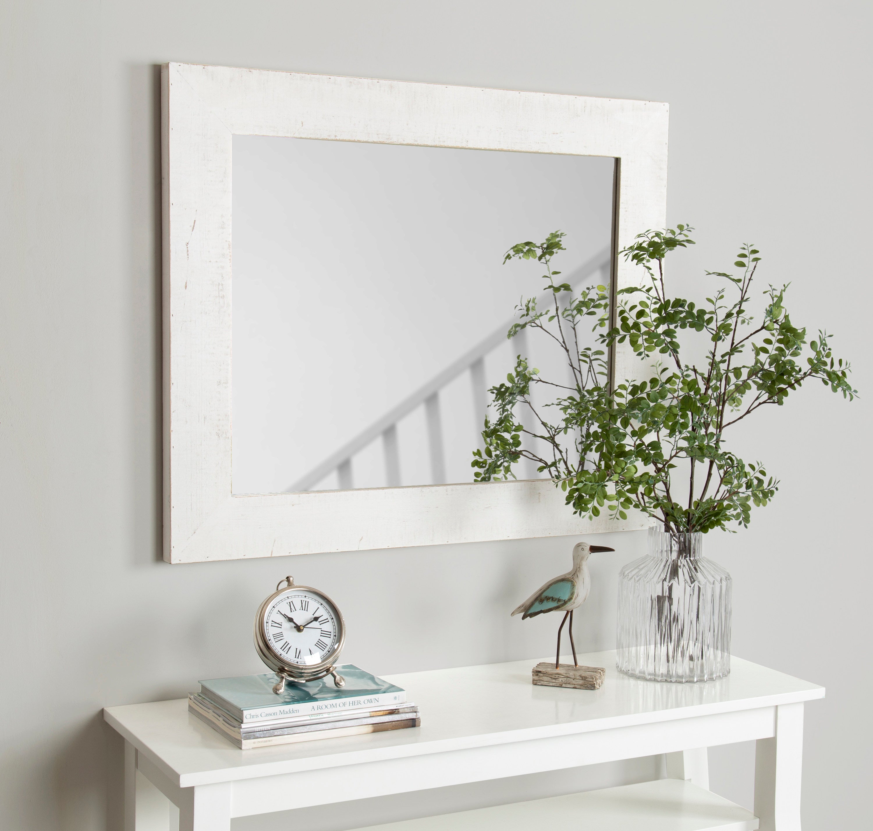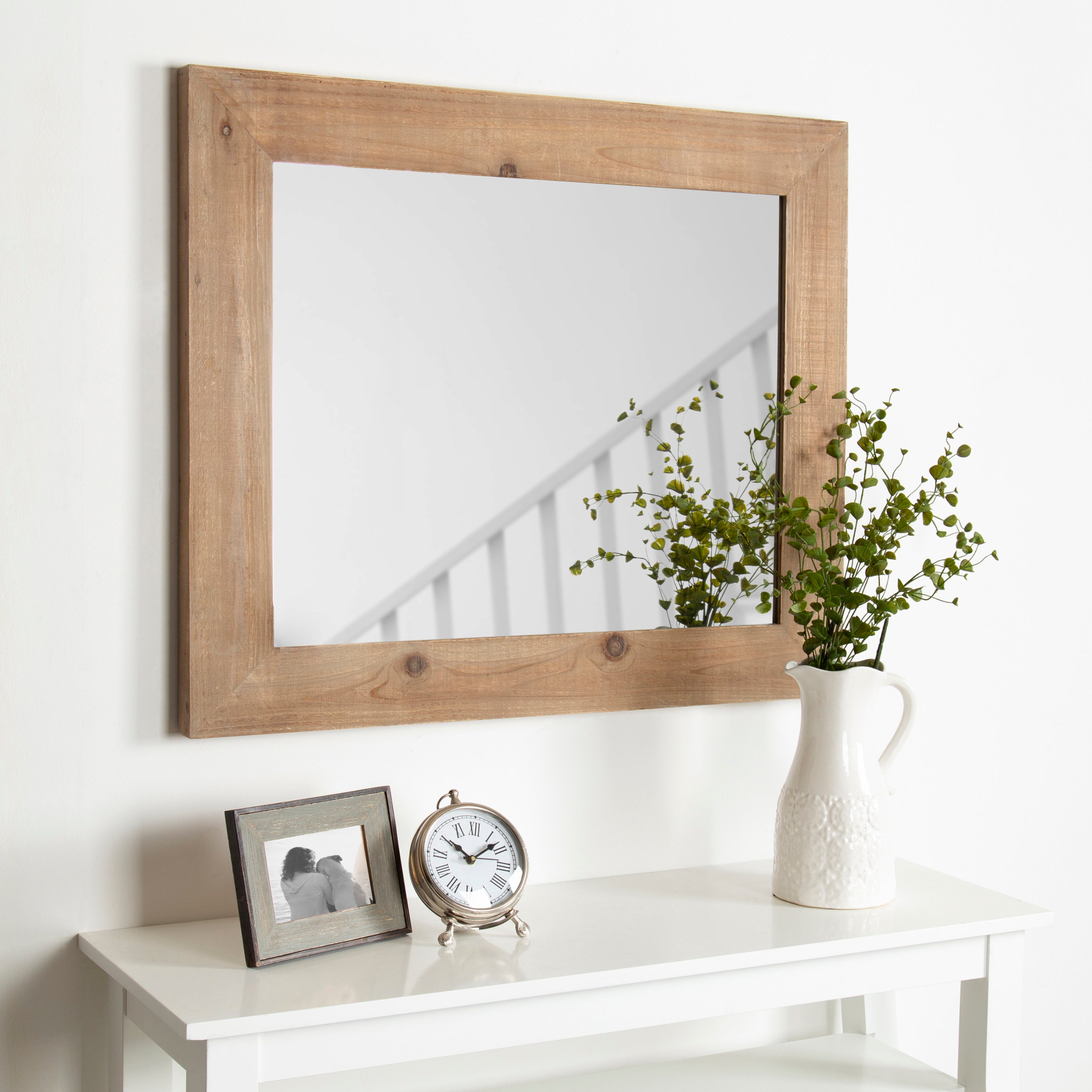Decorate your home in rustic elegance with this wall mirror with a wide wooden frame. It is large enough to impress but useful enough to work in many spaces.