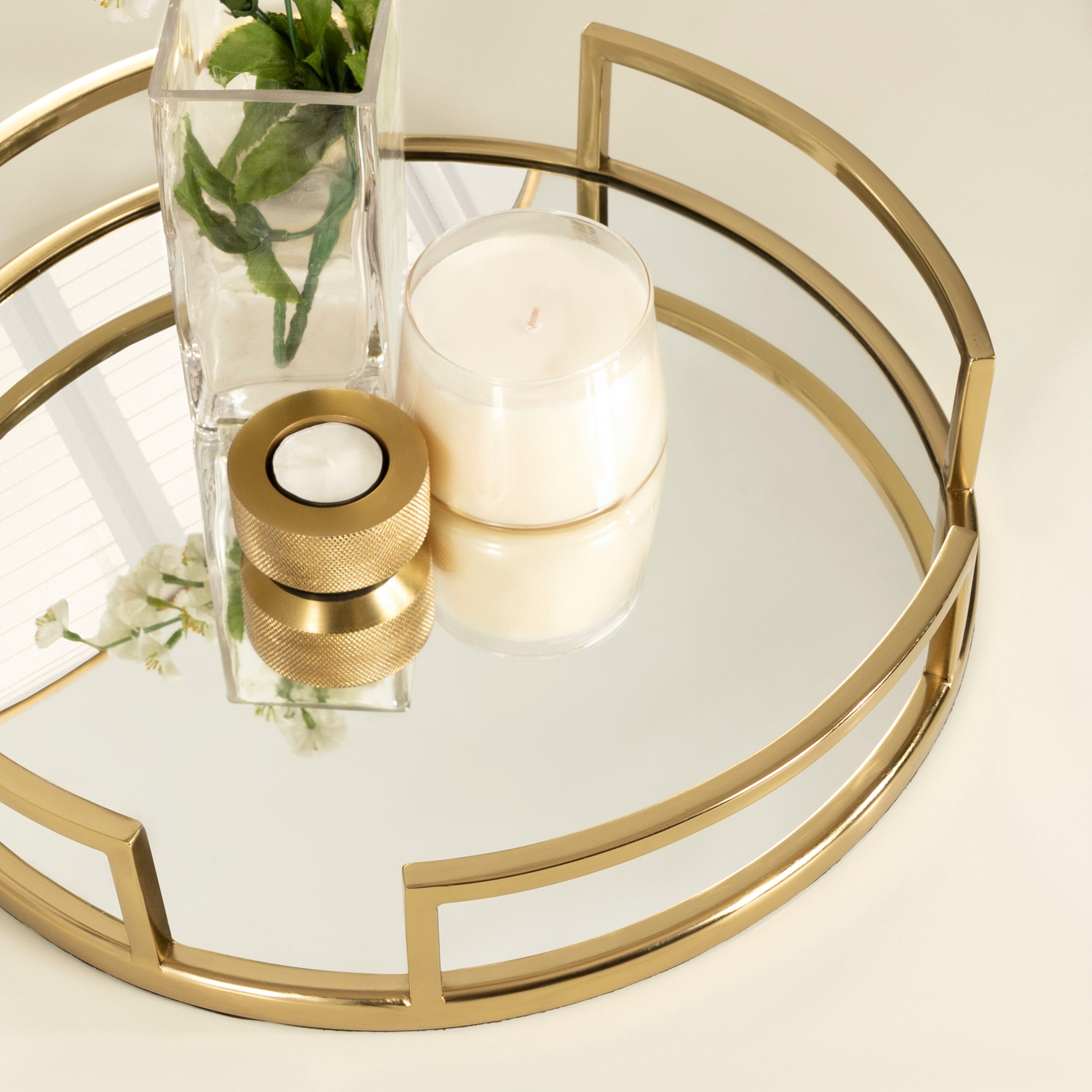 Elevate your glamorous decor aesthetic with the Gohana tray. This tray features a glam mirrored surface, with chic, modern lines for an accent that is as elegant as it is practical. Use the decorative tray for storage, display, and even serving of small cocktails. It looks excellent as a decadent centerpiece, a cocktail display, or a makeup catch-all for the vanity.
