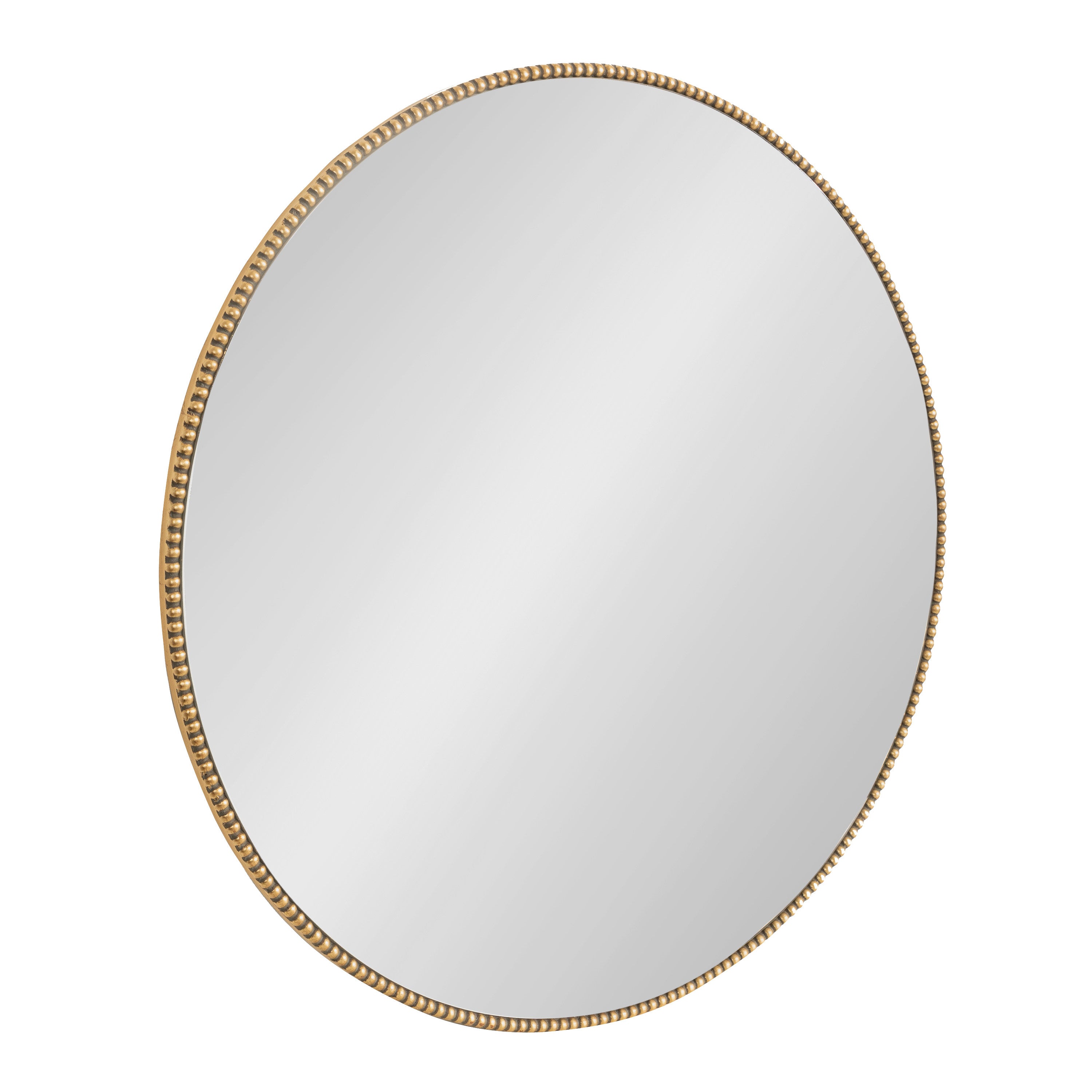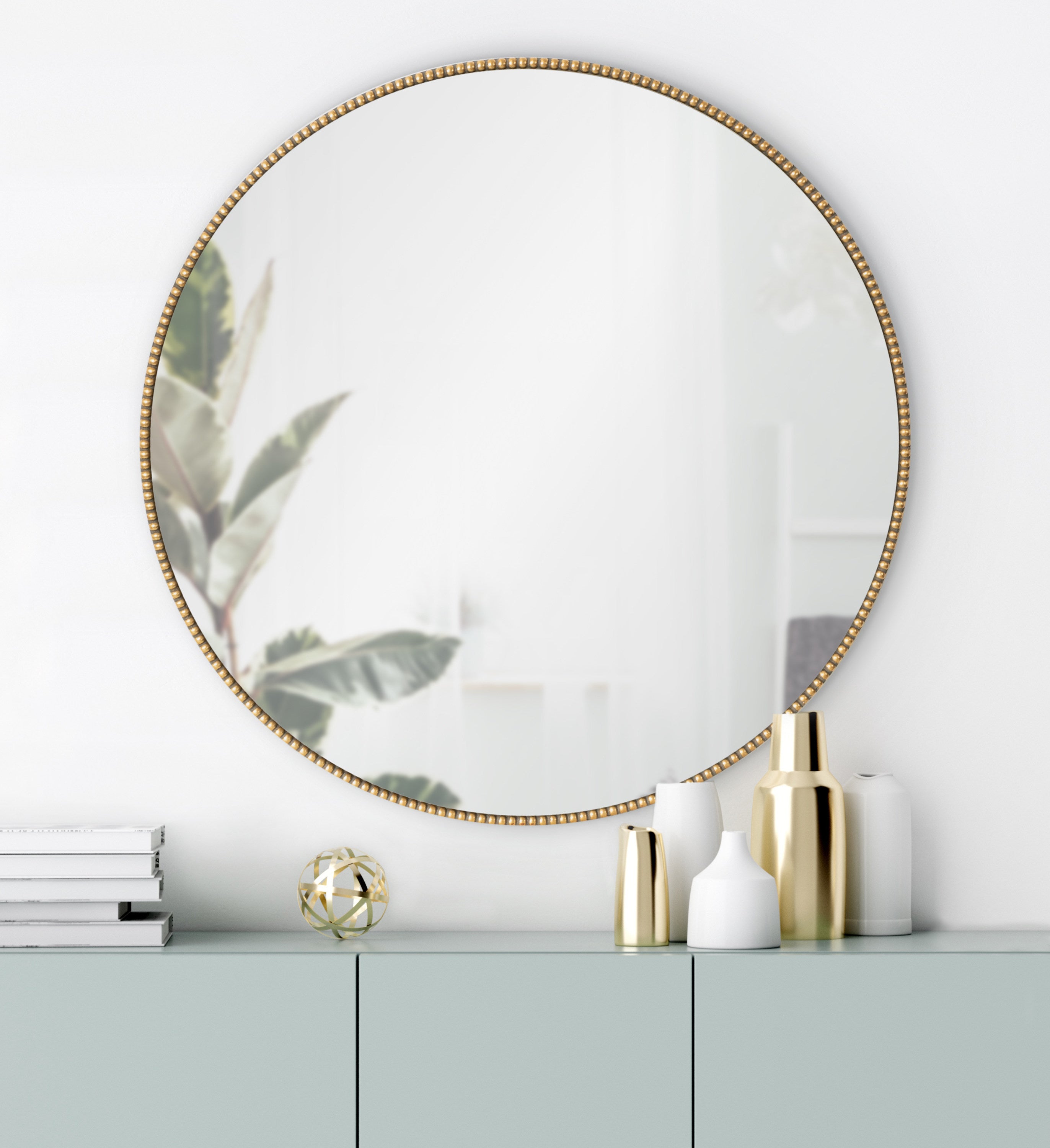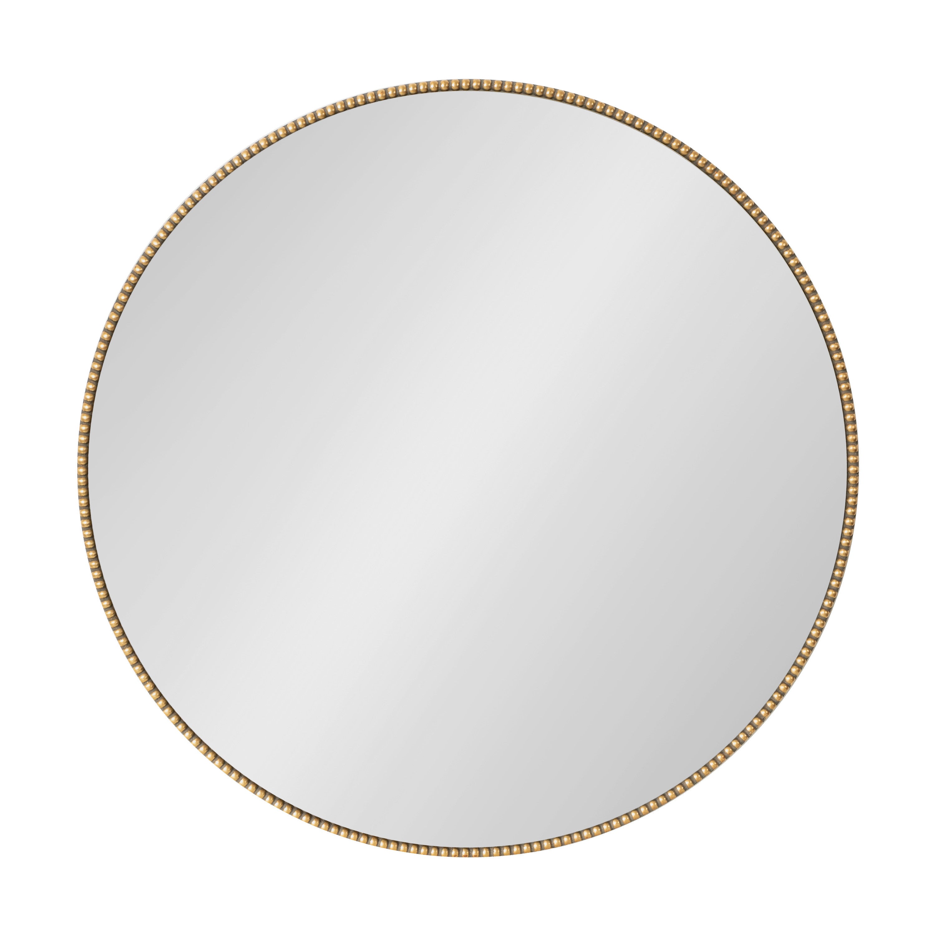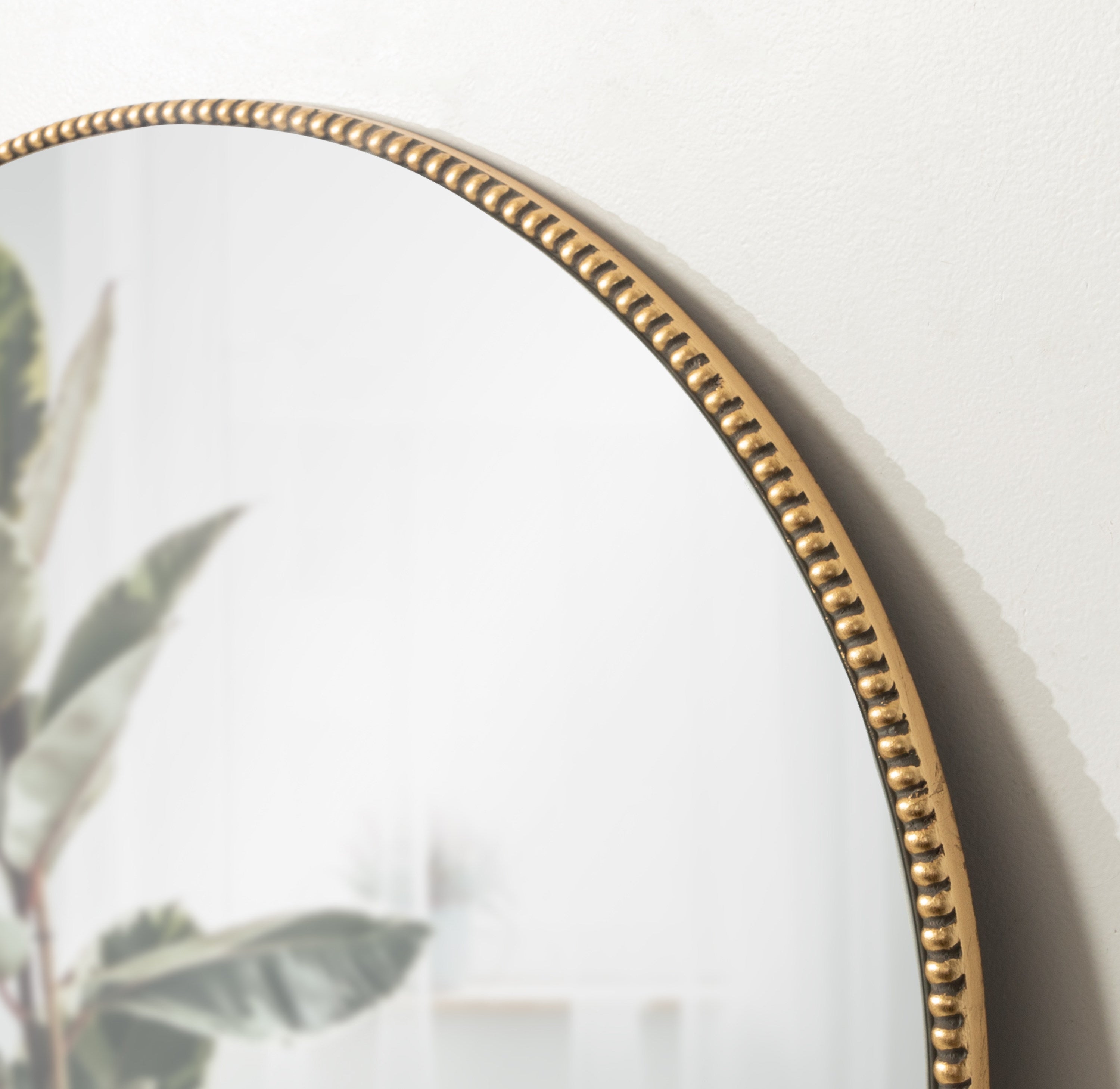 The beautiful Gwendolyn mirror showcases a stylish and glamorous aesthetic on your wall. This mirror features a beautiful beaded frame with an elegant finish to offer a textural look to elevate your decor. In addition, its large diameter and round shape make this the perfect mirror to create a dazzling focal point in your home, highlighting your elevated modern taste. Showcase it in the bedroom, over a console, on your living room mantle, or in your bathroom above your modern vanity.