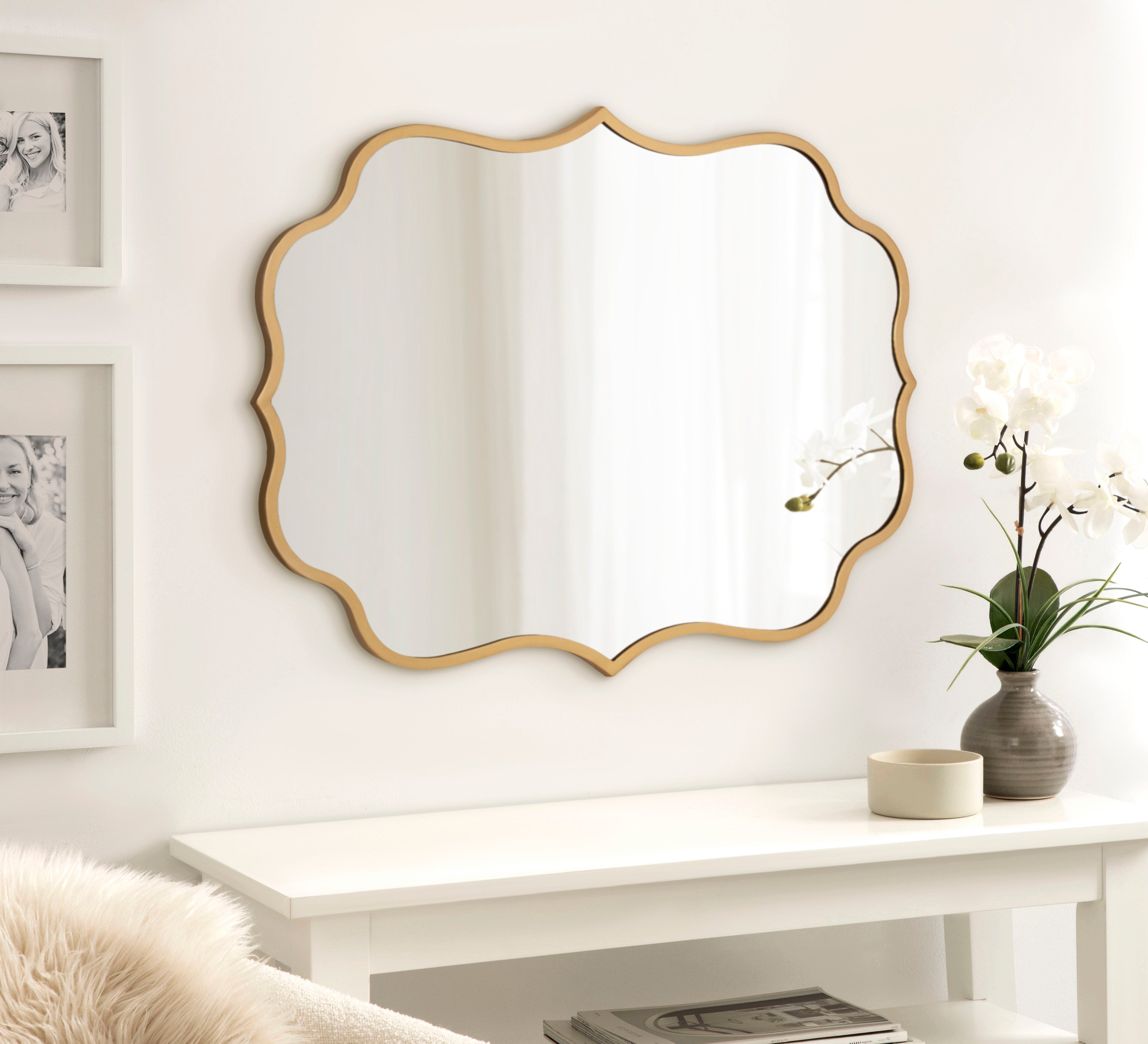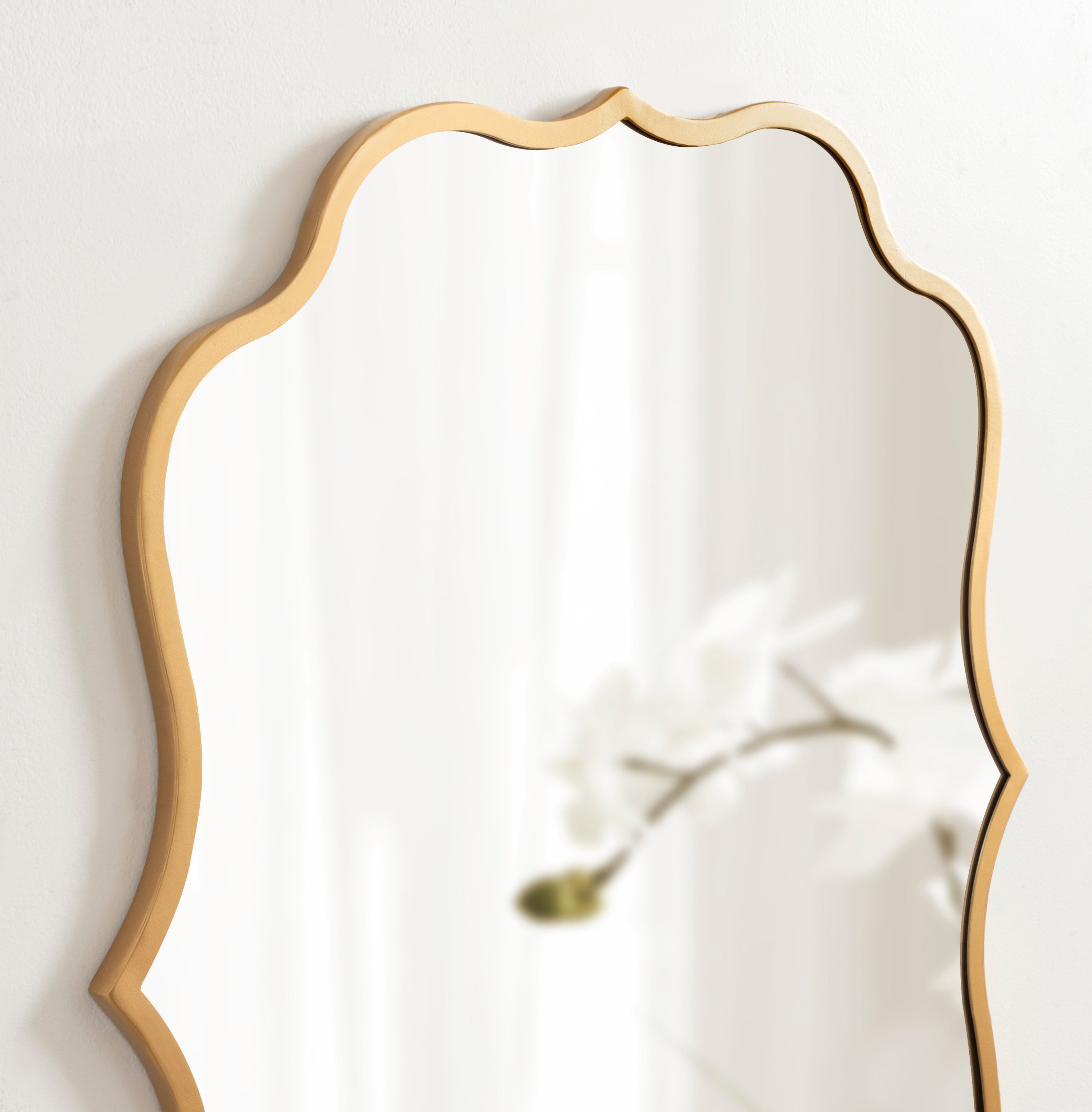 Bring glamorous refinement into your modern home decor with the Higby mirror. This luxurious mirror features a scalloped edge and a sleek finish, making it the perfect focal point to fit in various spaces throughout the home. Its vertical orientation and large surface area make it perfect as a statement piece that enhances the vibrancy of the space and opens it up. It's also perfect as a bathroom vanity mirror, capturing your elegant style in the master bath.