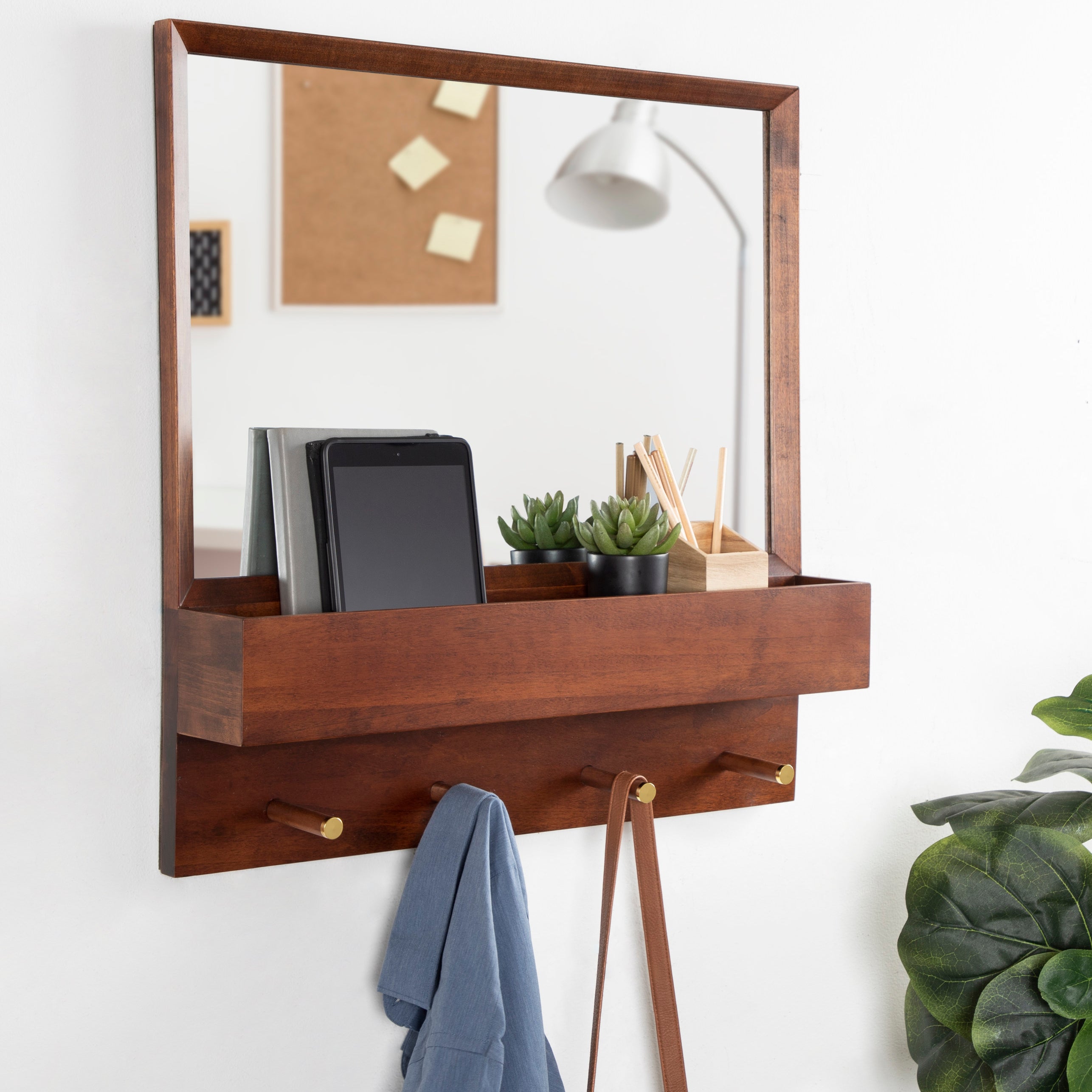 Hinter Wall Mirror with Shelf and Pegs