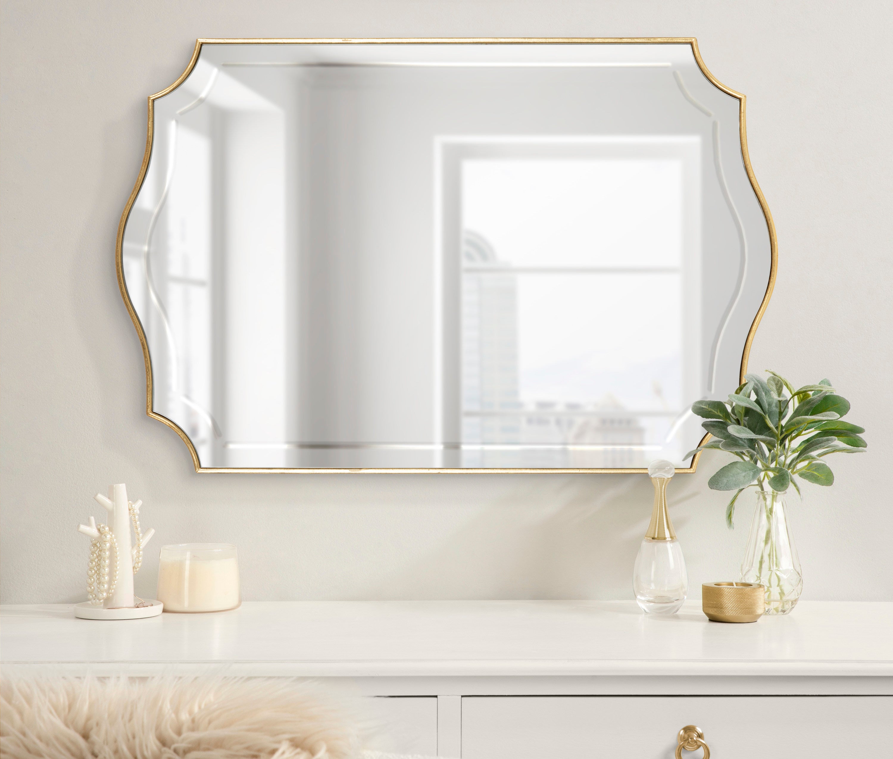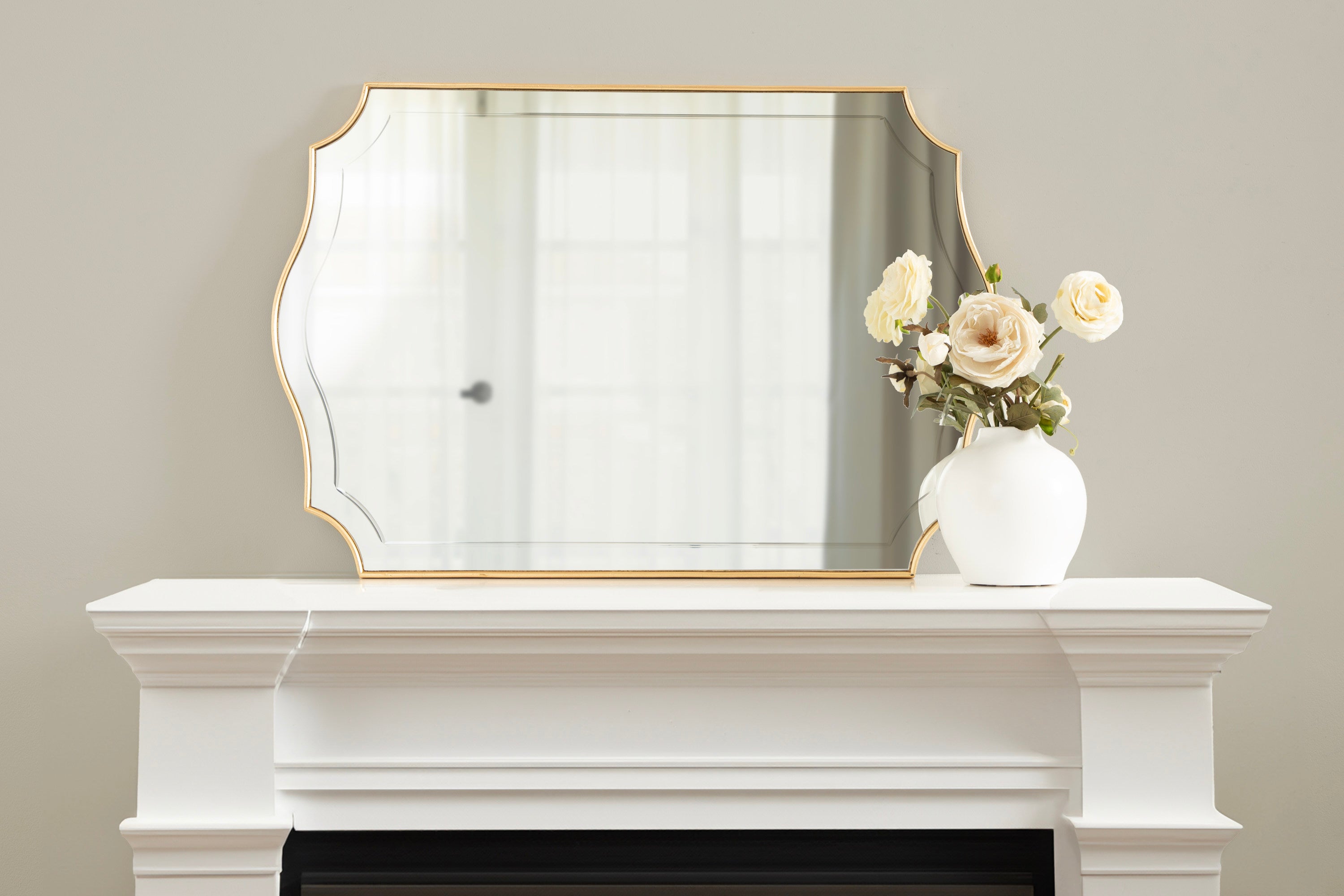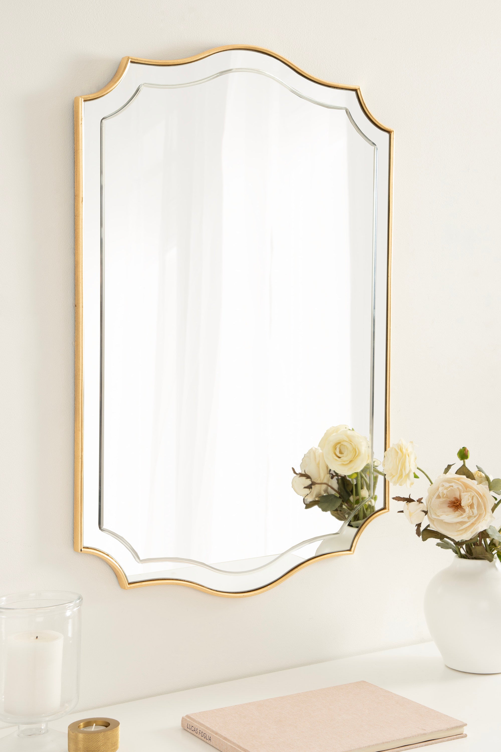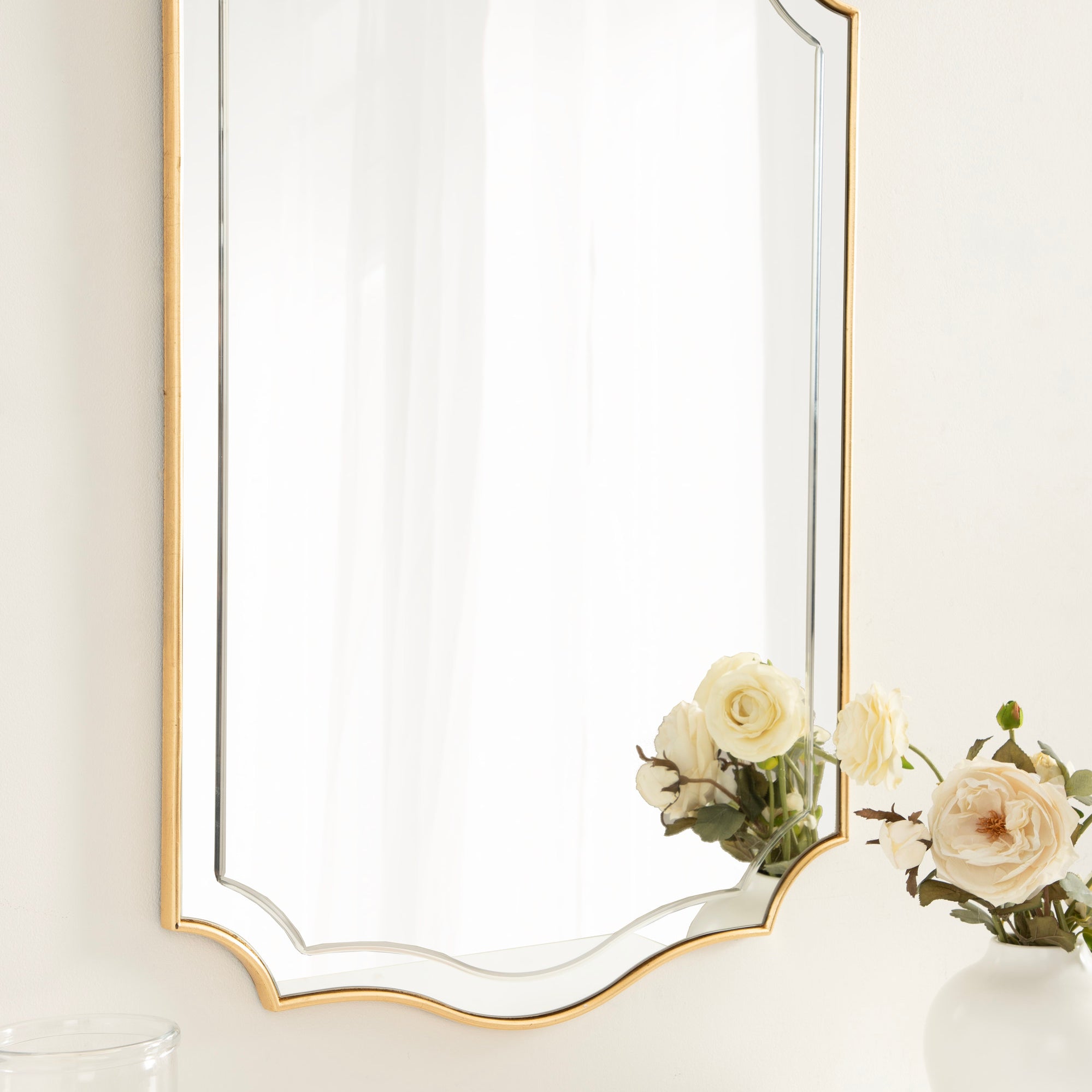 Enhance the beauty of your home and captivate your guests with the fascinating Hollyn mirror. This mirror finds inspiration in traditional glamour, with a timeless scalloped edge and a chic finish. This mirror also features a V-shaped groove to fully articulate its dimensional style. The Hollyn is a fantastic element to introduce to your bathroom vanity, console table, or living room mantle. It's a captivating display piece to showcase your style while enhancing the aesthetic of your space.