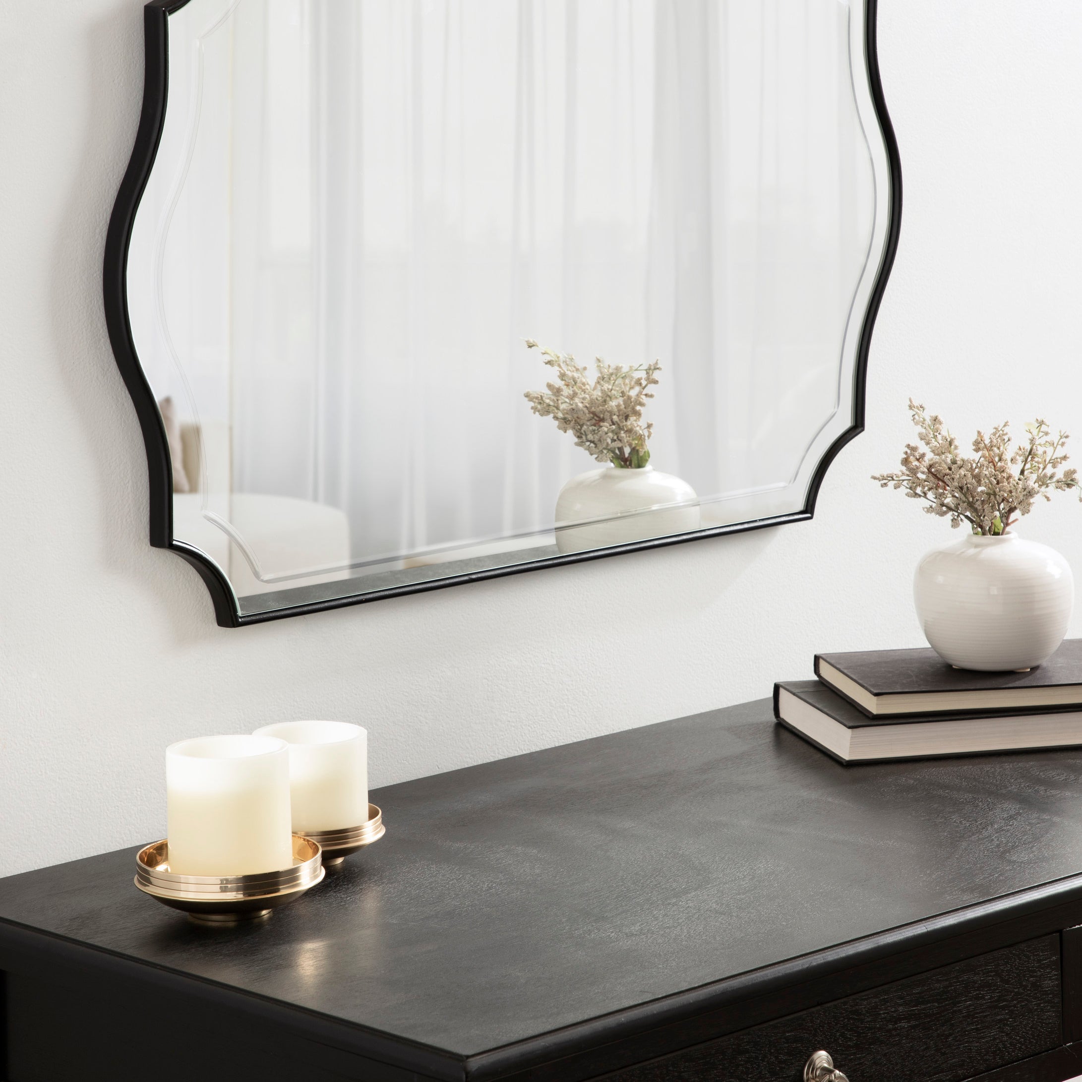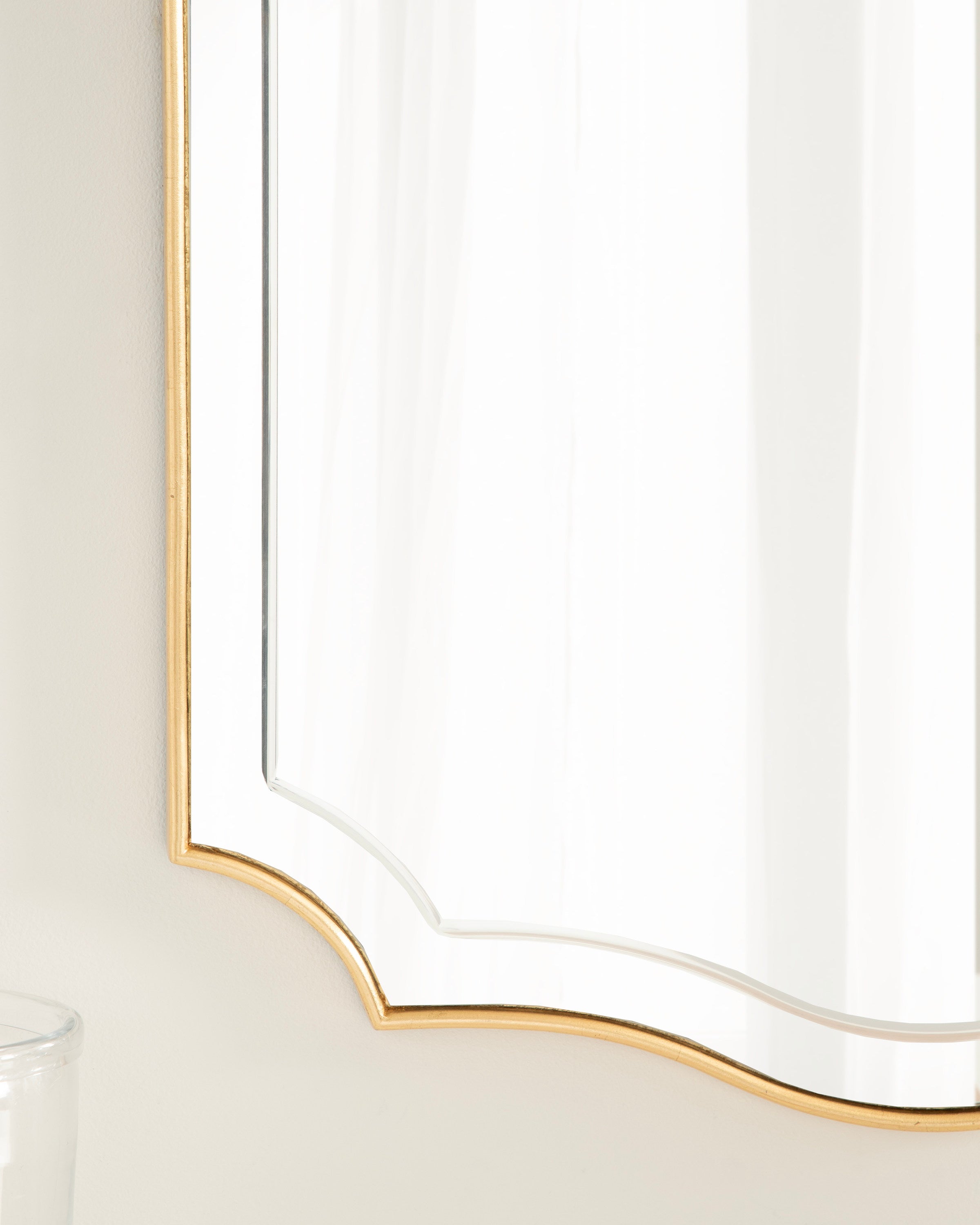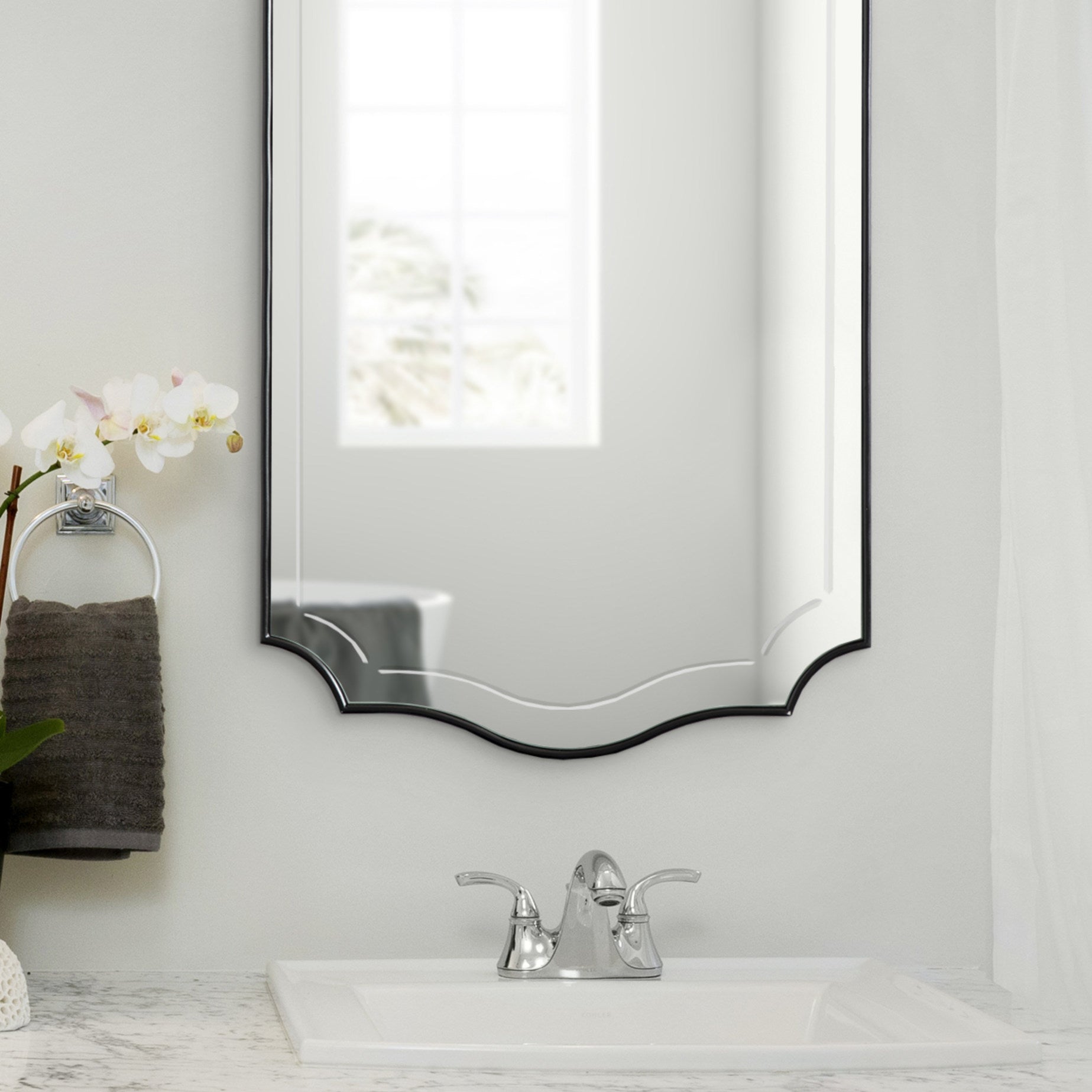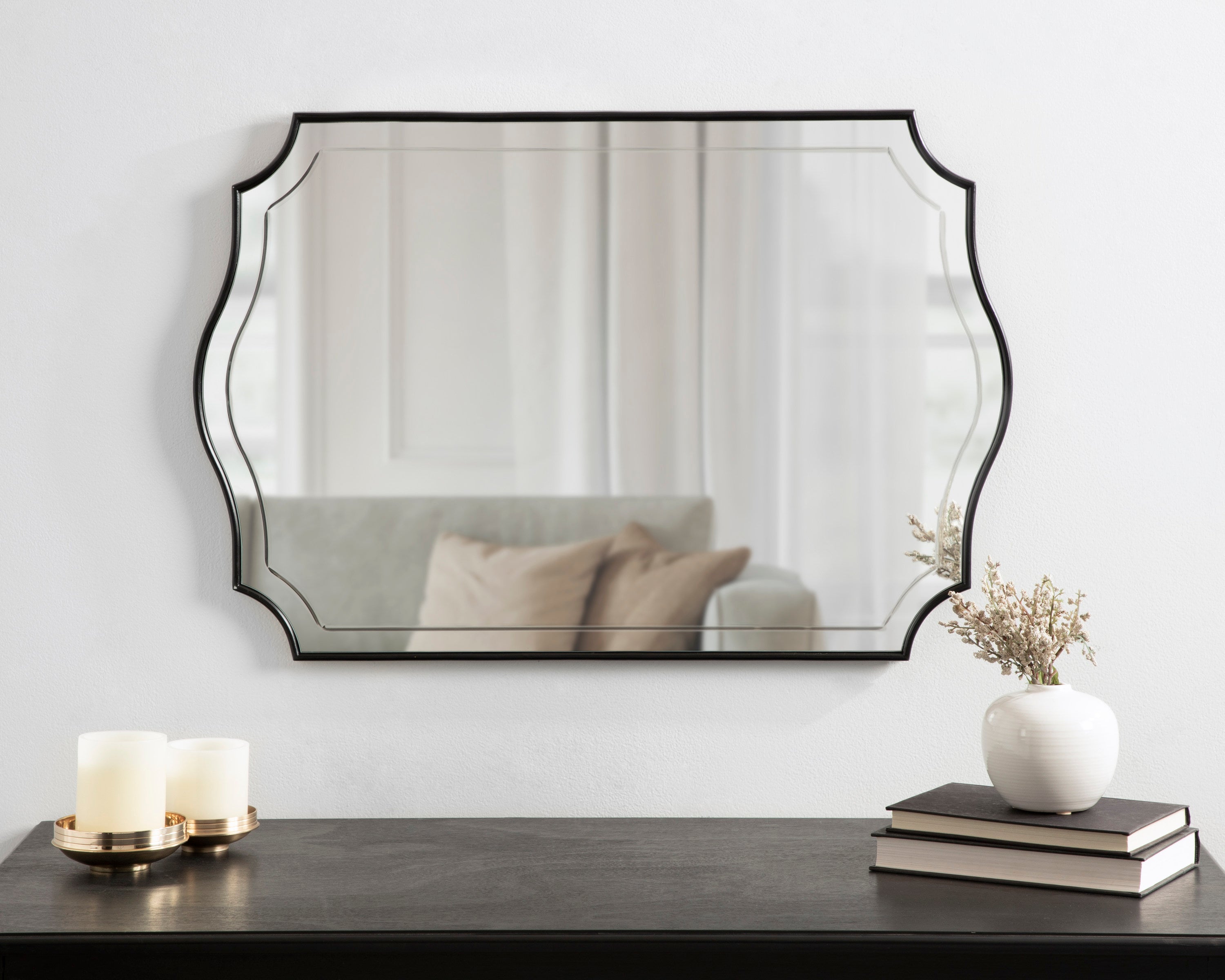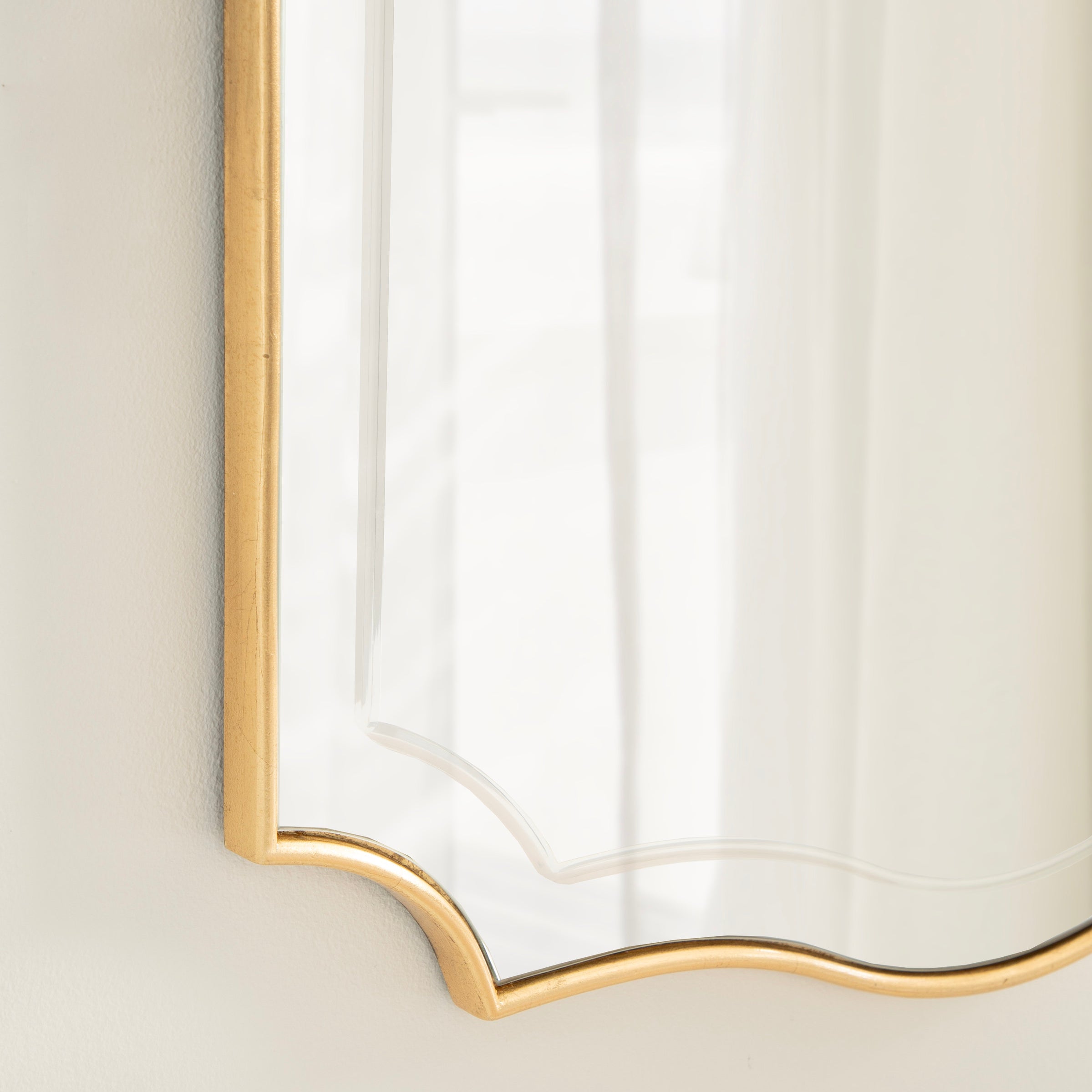 Enhance the beauty of your home and captivate your guests with the fascinating Hollyn mirror. This mirror finds inspiration in traditional glamour, with a timeless scalloped edge and a chic finish. This mirror also features a V-shaped groove to fully articulate its dimensional style. The Hollyn is a fantastic element to introduce to your bathroom vanity, console table, or living room mantle. It's a captivating display piece to showcase your style while enhancing the aesthetic of your space.