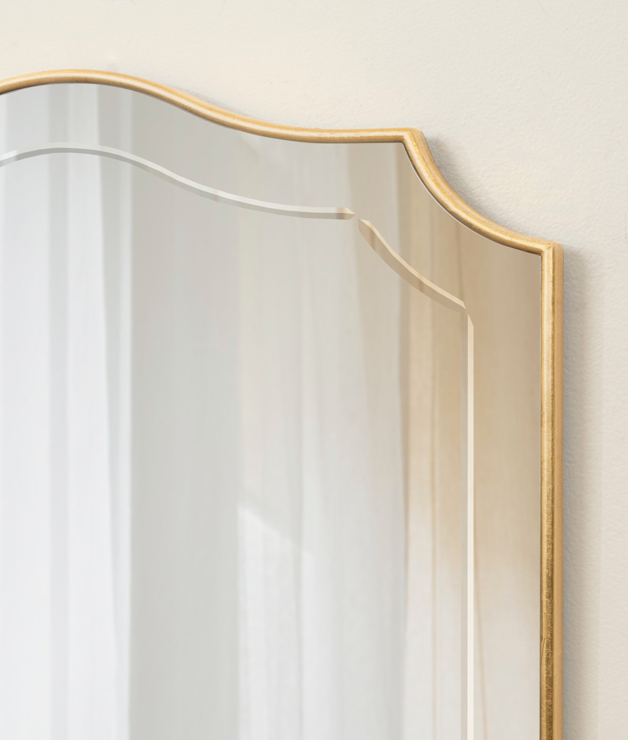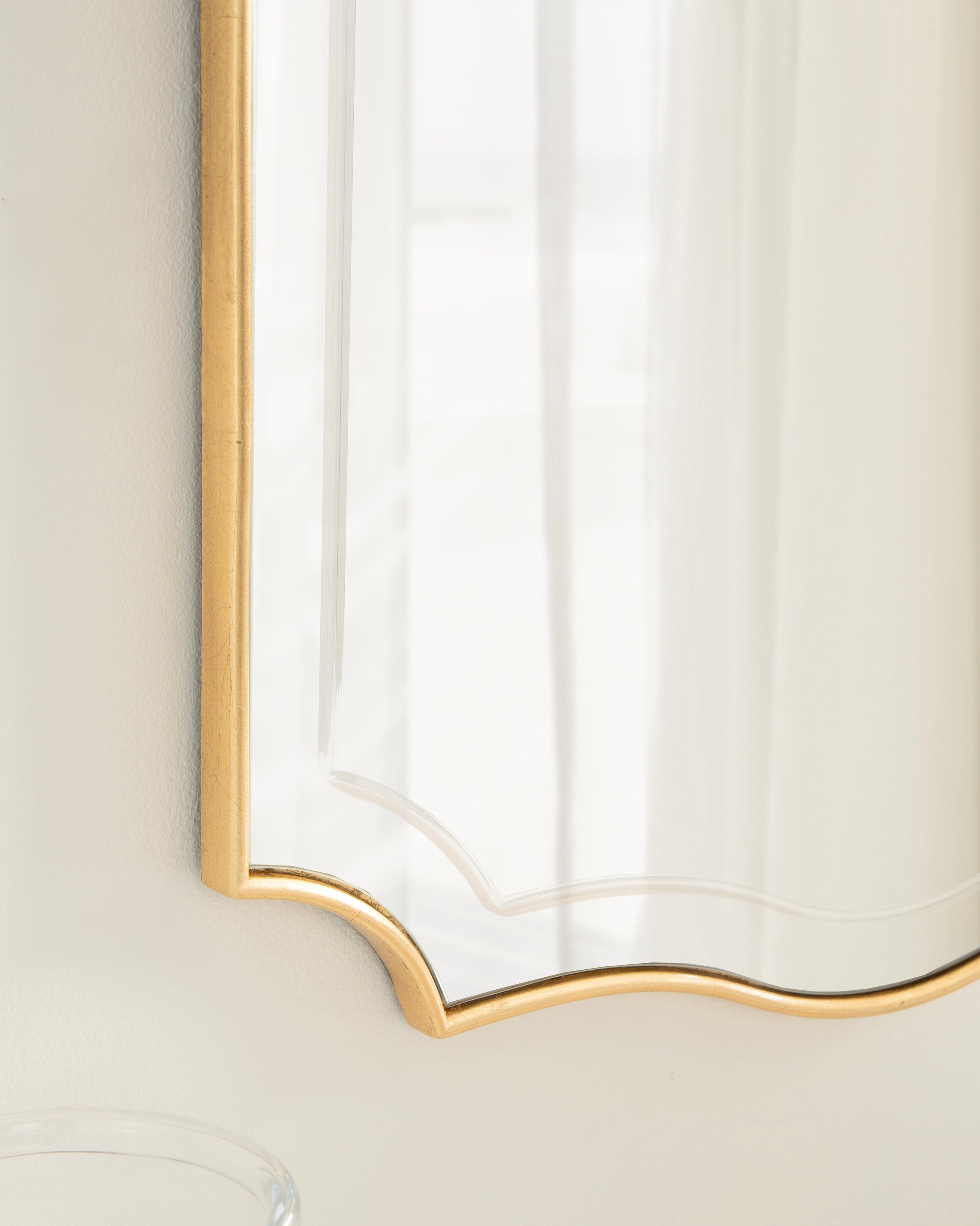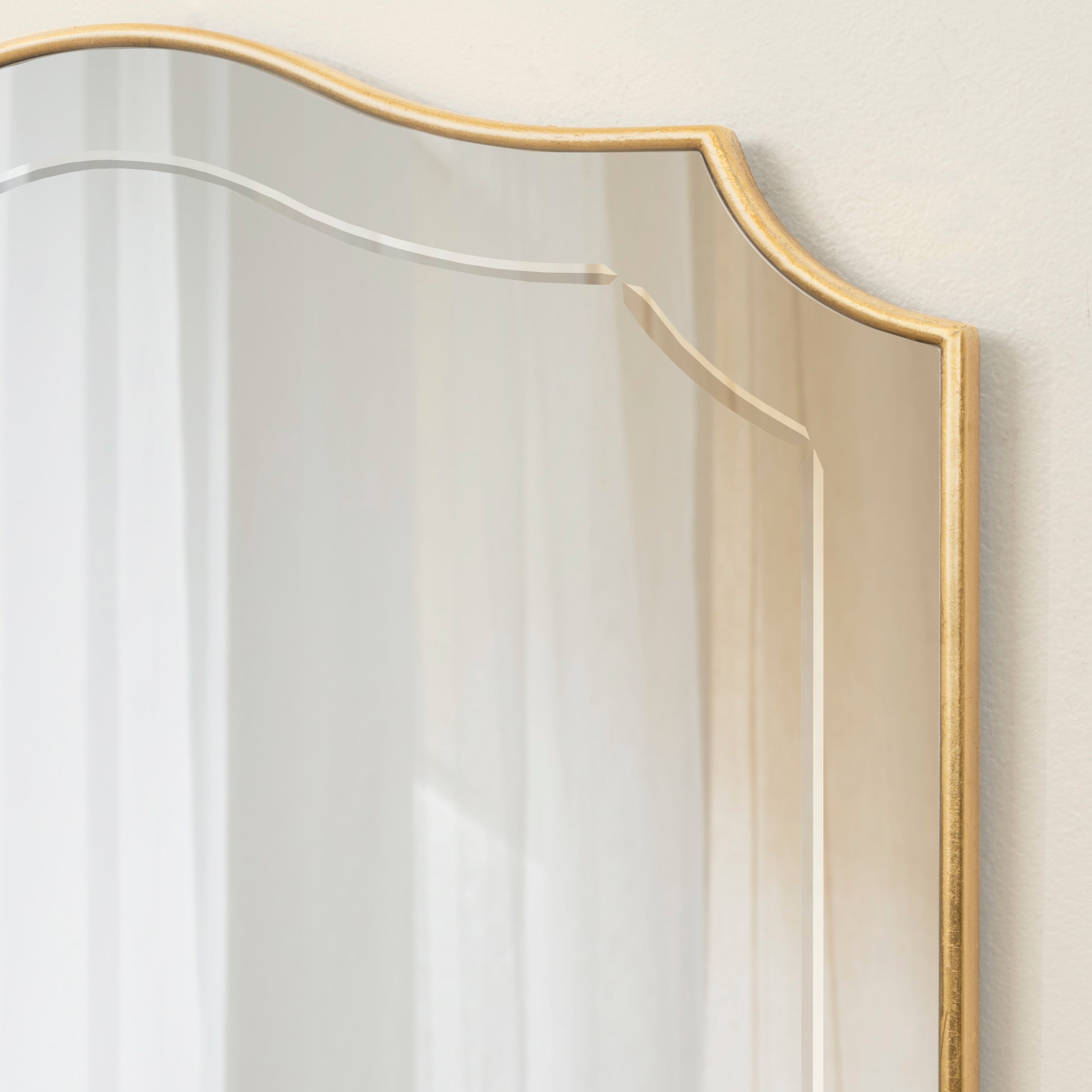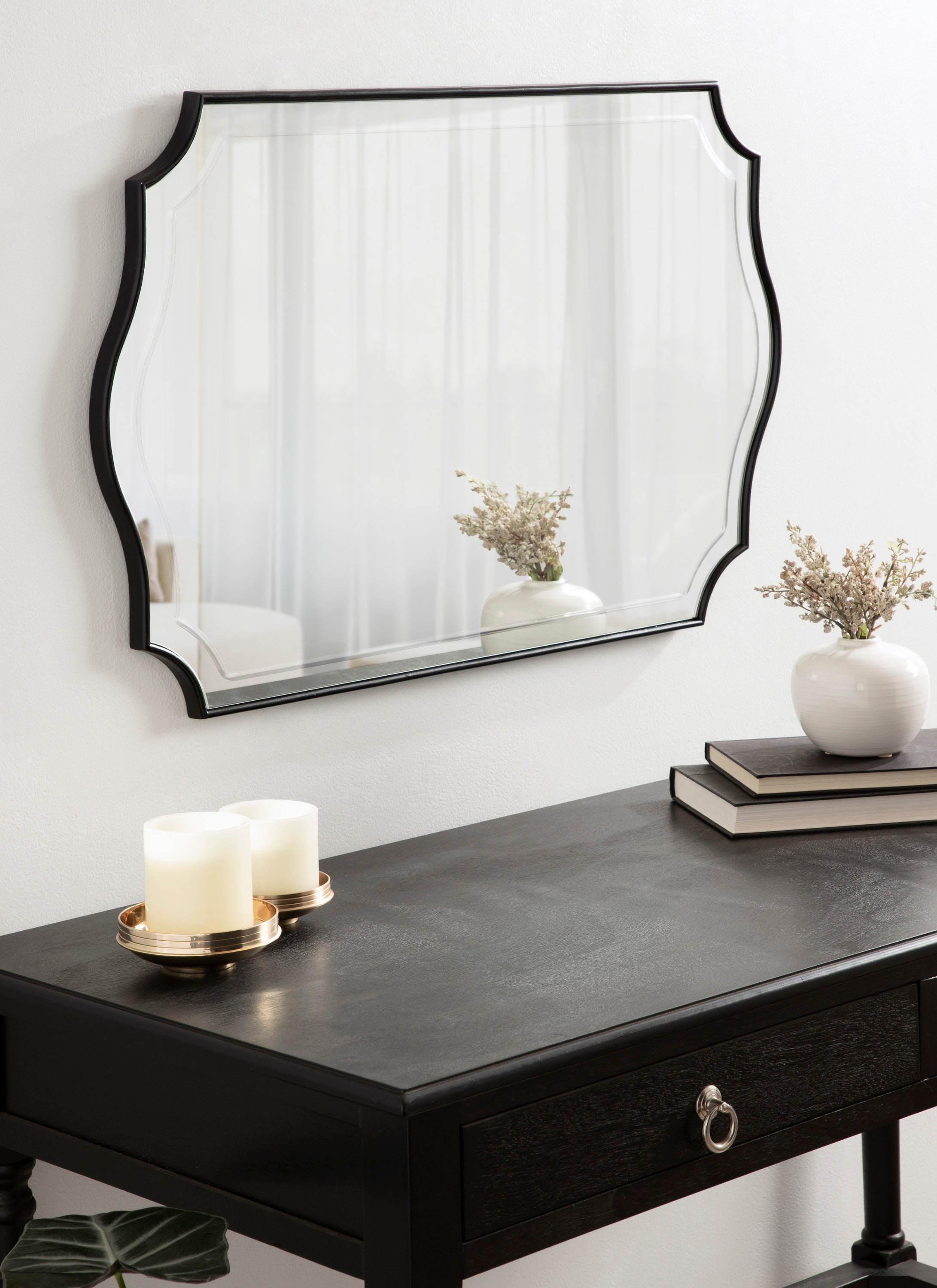 Enhance the beauty of your home and captivate your guests with the fascinating Hollyn mirror. This mirror finds inspiration in traditional glamour, with a timeless scalloped edge and a chic finish. This mirror also features a V-shaped groove to fully articulate its dimensional style. The Hollyn is a fantastic element to introduce to your bathroom vanity, console table, or living room mantle. It's a captivating display piece to showcase your style while enhancing the aesthetic of your space.