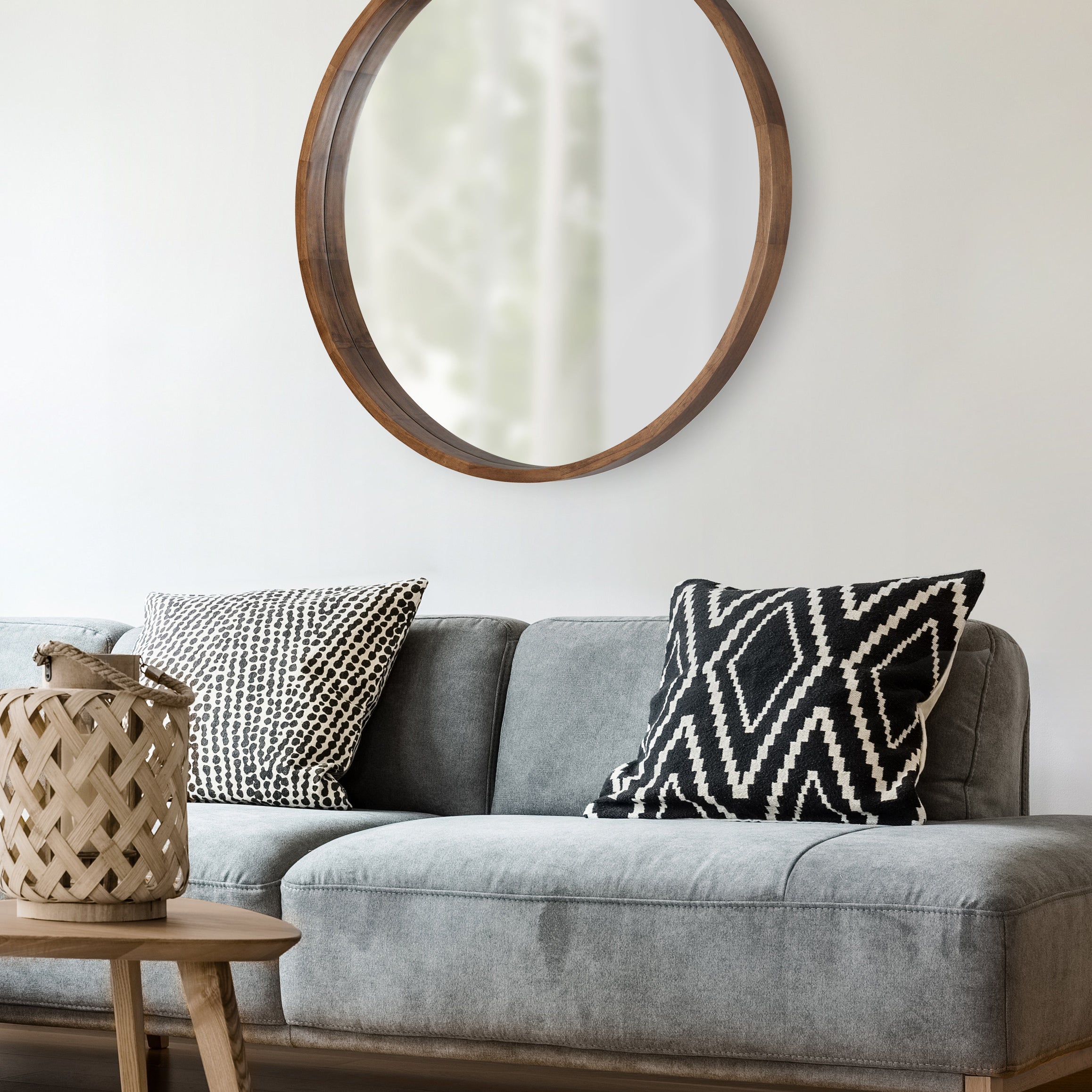 Hutton Round Wood Wall Mirror