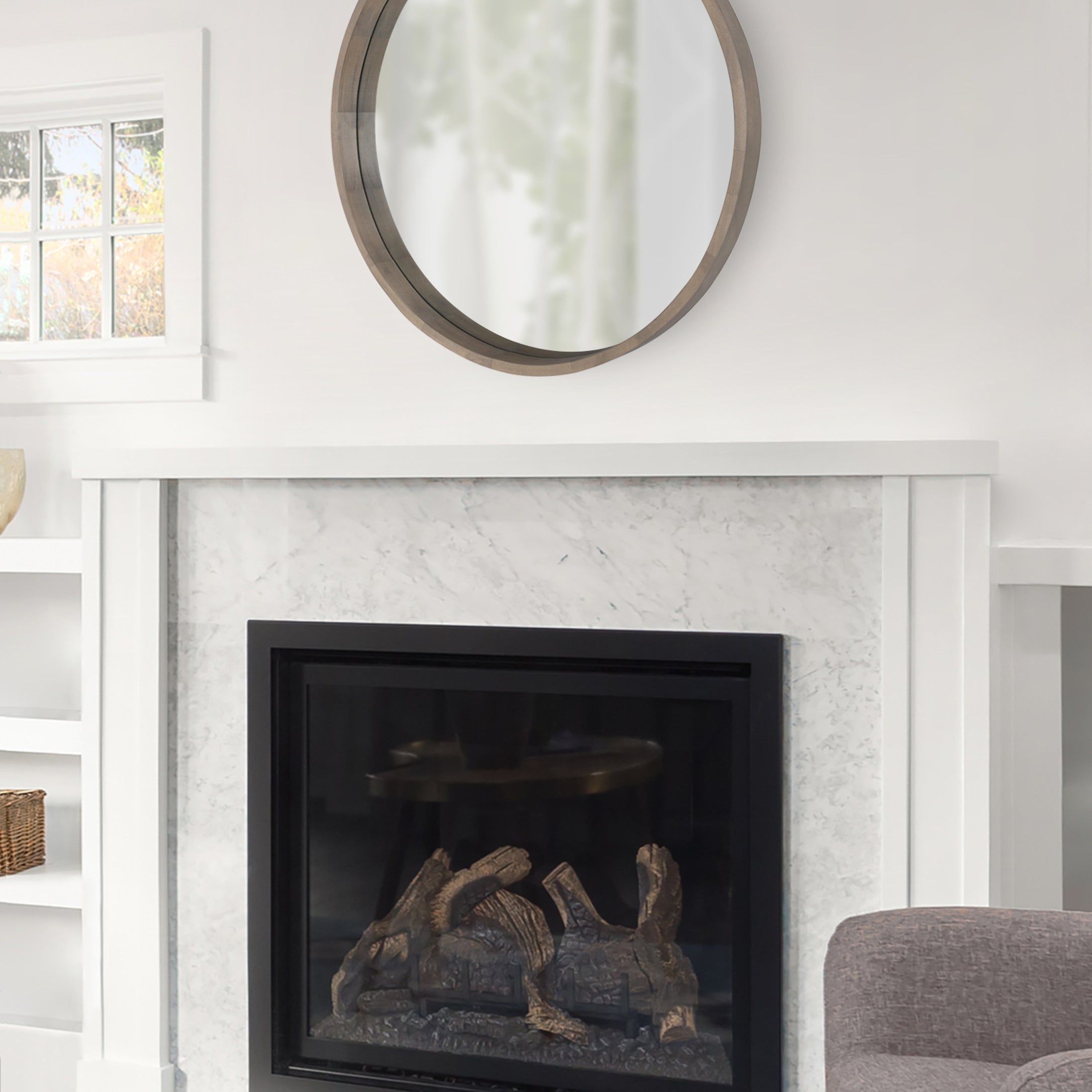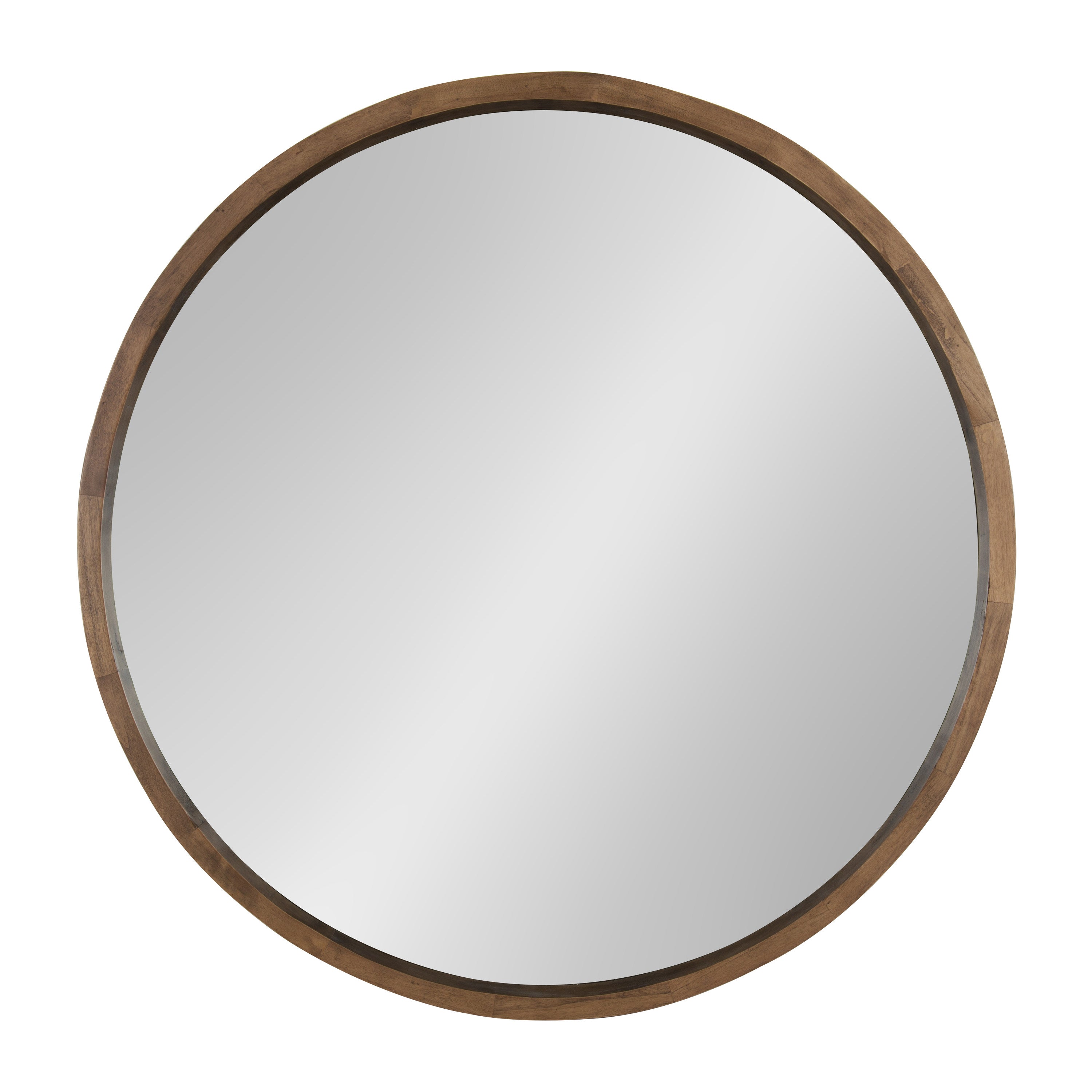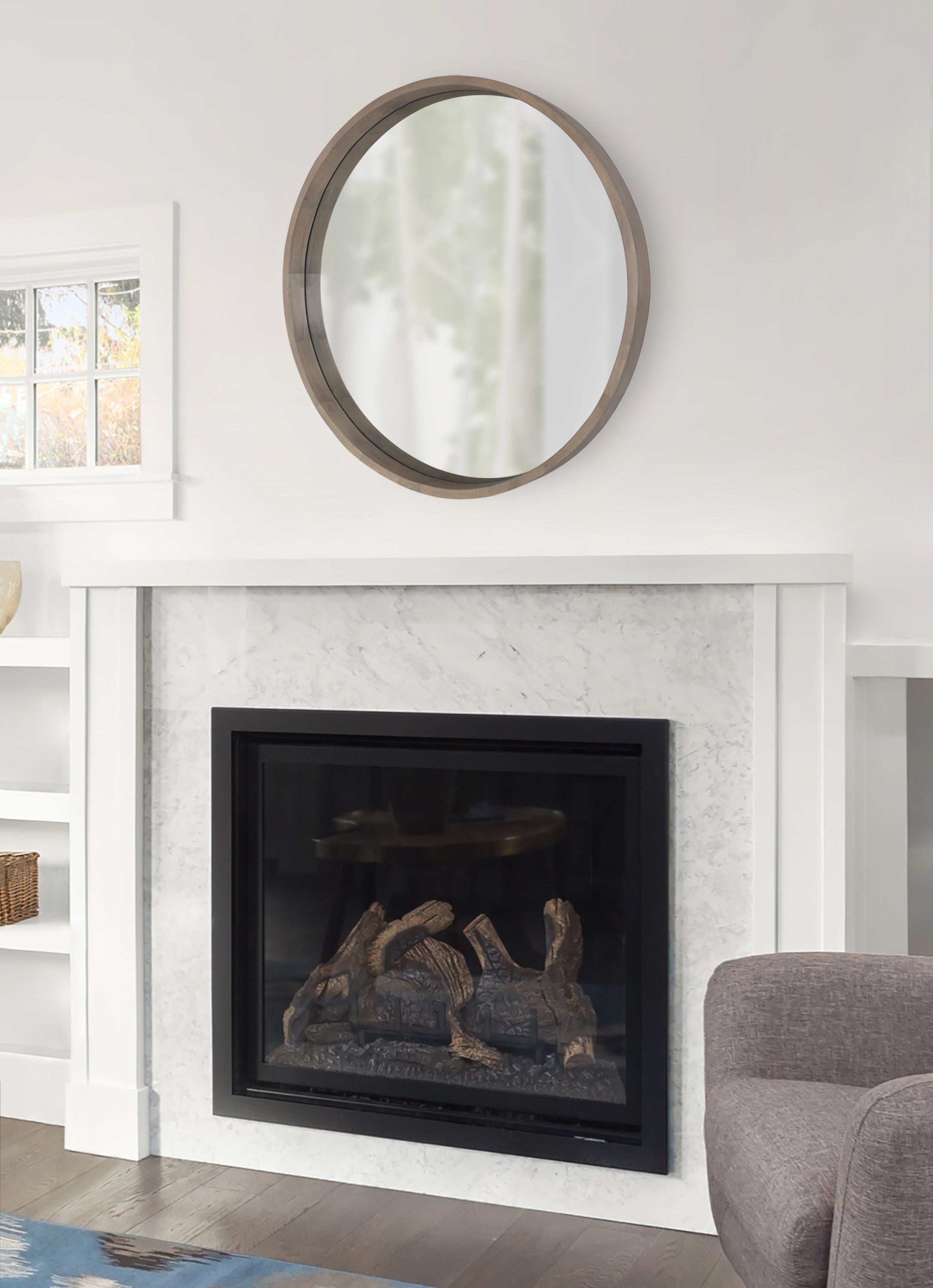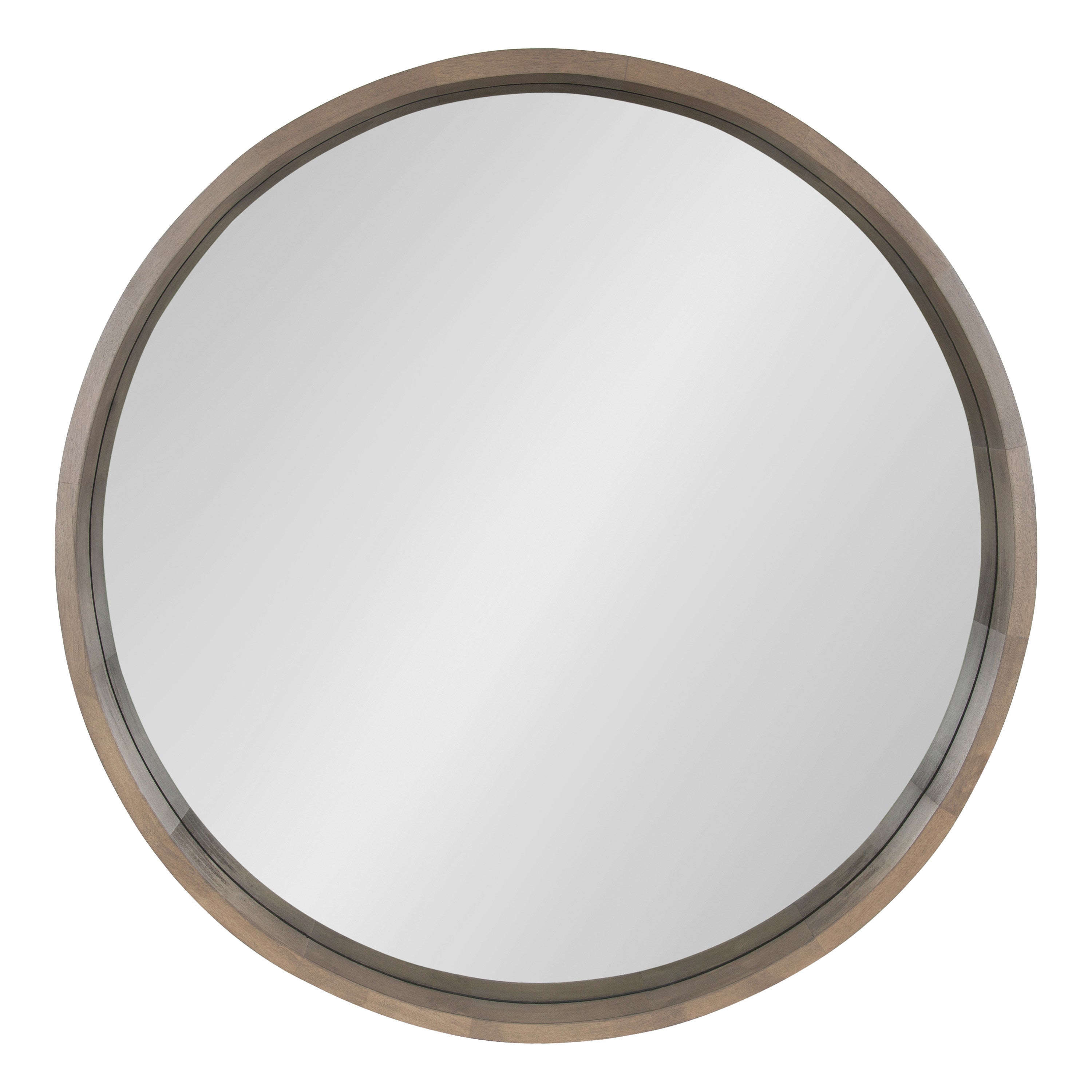 The Hutton round wood mirror makes a beautiful yet functional statement piece for your home. Indulge your proclivity for rustic-yet-modern farmhouse decor with its genuine solid poplar wood frame. Its ample diameter creates a stellar focal point for whichever room you decide to put it in. Add traditional charm to your living room mantle, above the console table in the entry, or over the bed in your master bedroom. However you decide to display it, it installs in only seconds with metal D-ring hangers already attached.