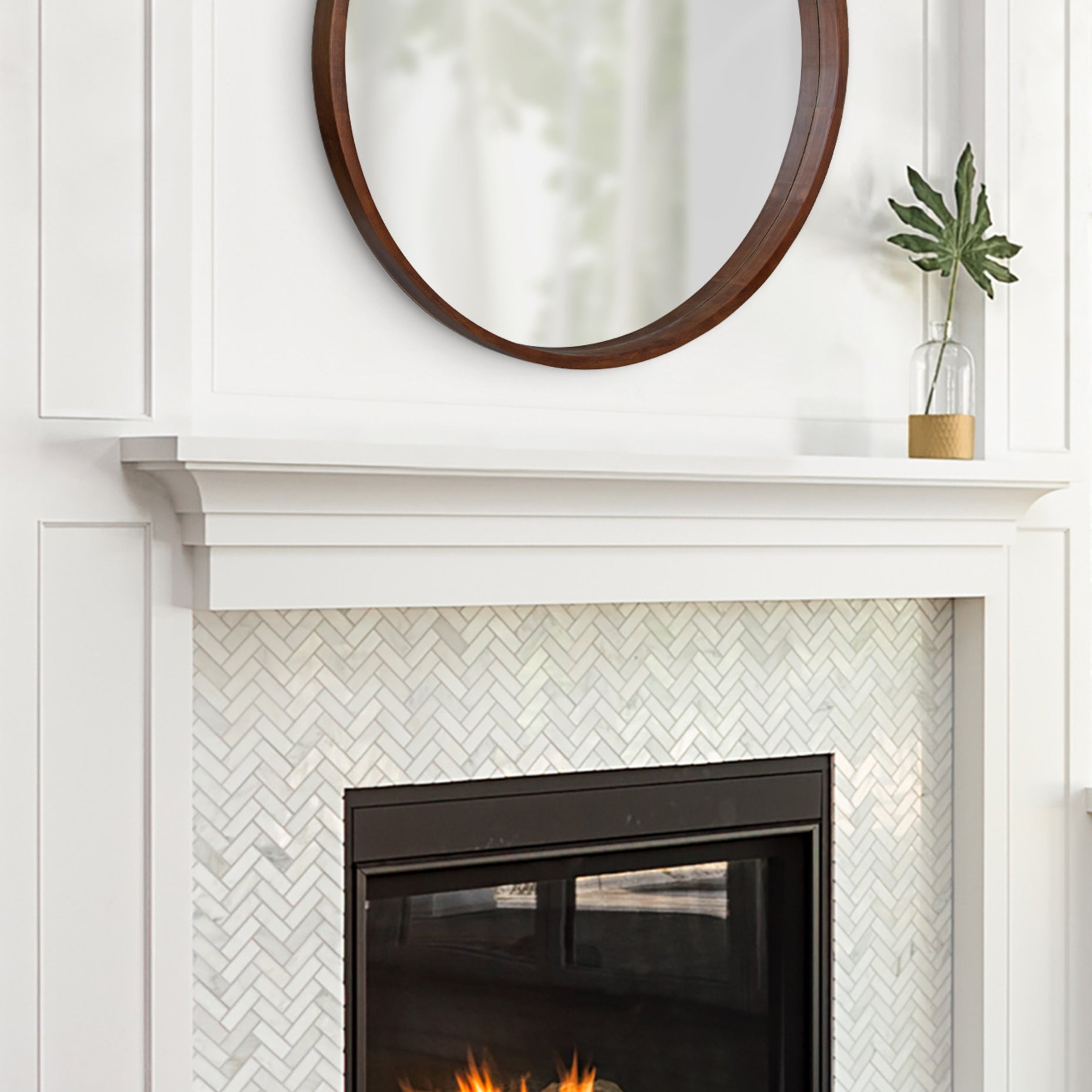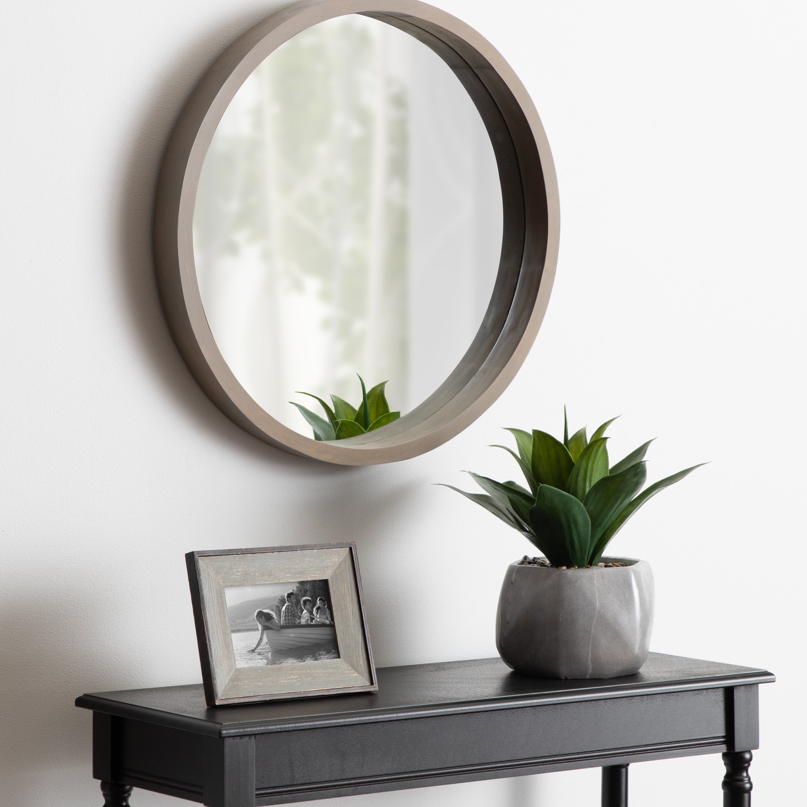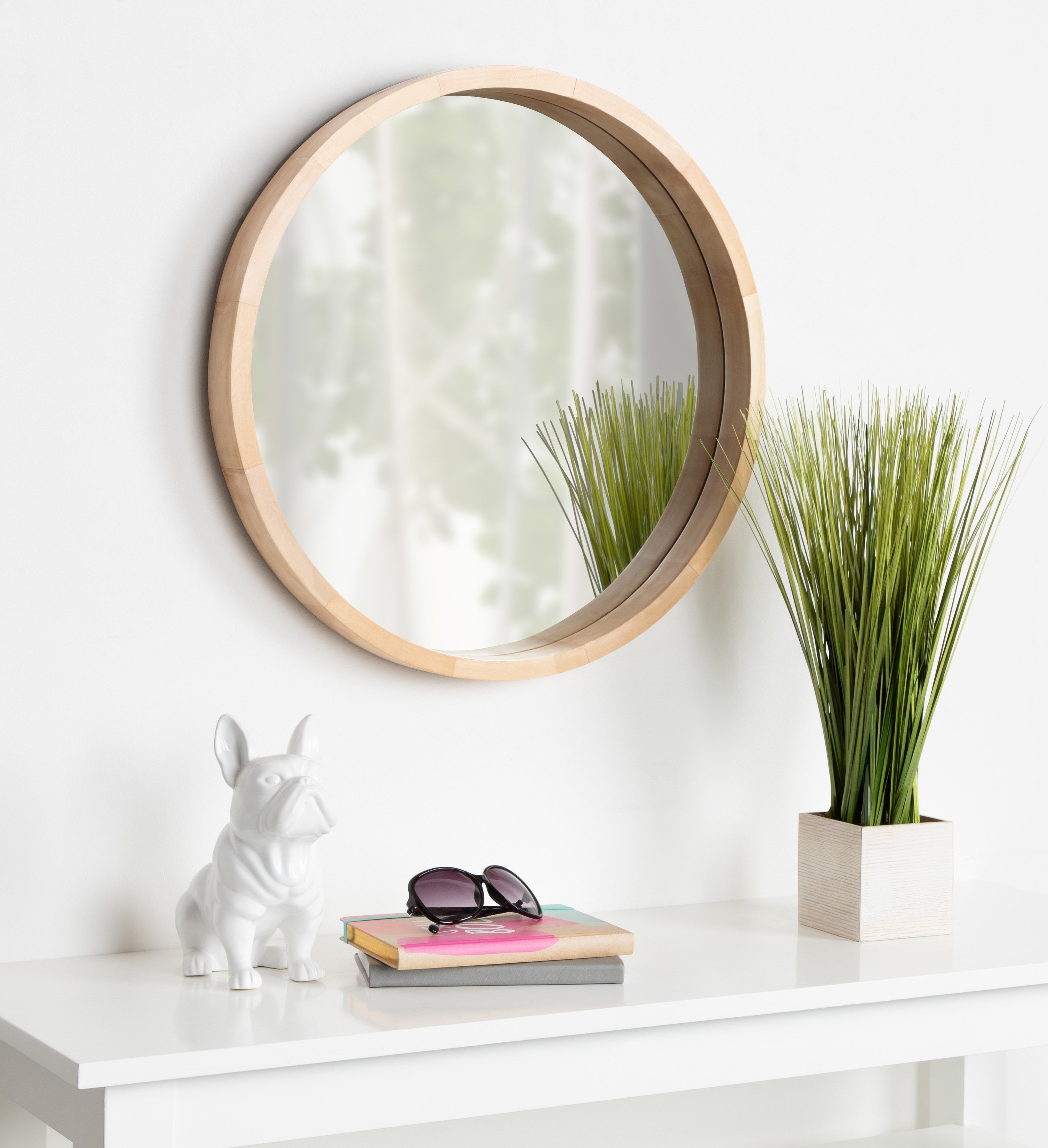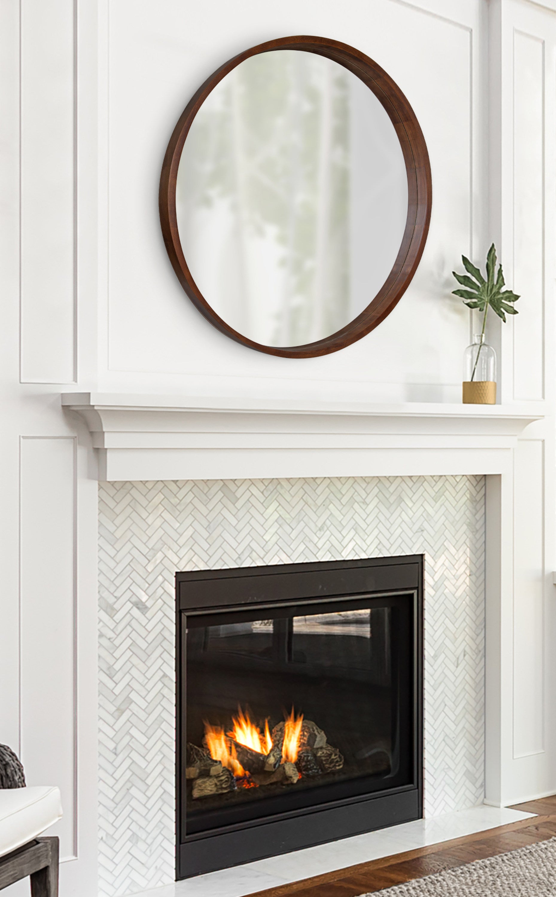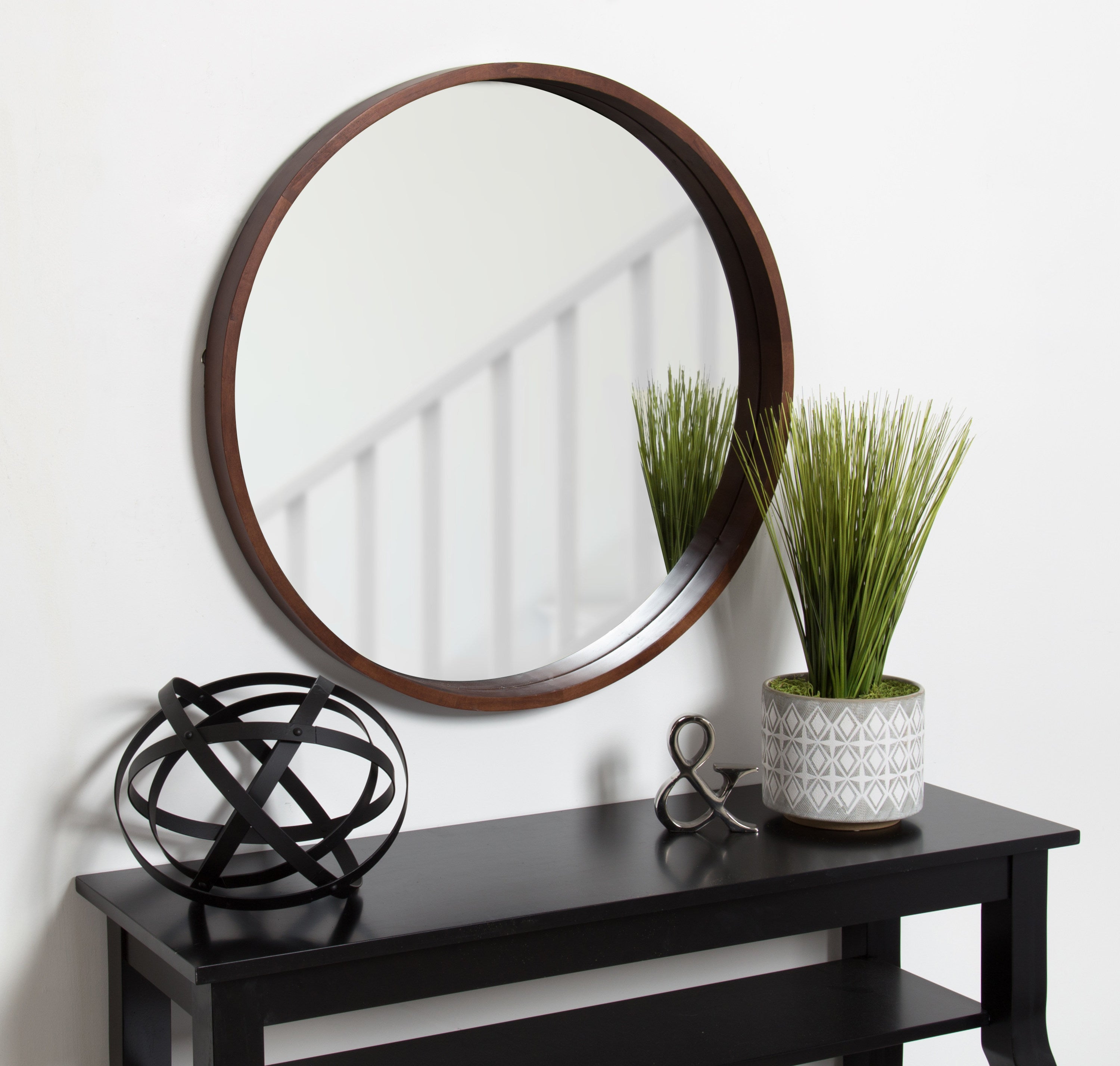 The Hutton round wood mirror makes a beautiful yet functional statement piece for your home. Indulge your proclivity for rustic-yet-modern farmhouse decor with its genuine solid poplar wood frame. Its ample diameter creates a stellar focal point for whichever room you decide to put it in. Add traditional charm to your living room mantle, above the console table in the entry, or over the bed in your master bedroom. However you decide to display it, it installs in only seconds with metal D-ring hangers already attached.