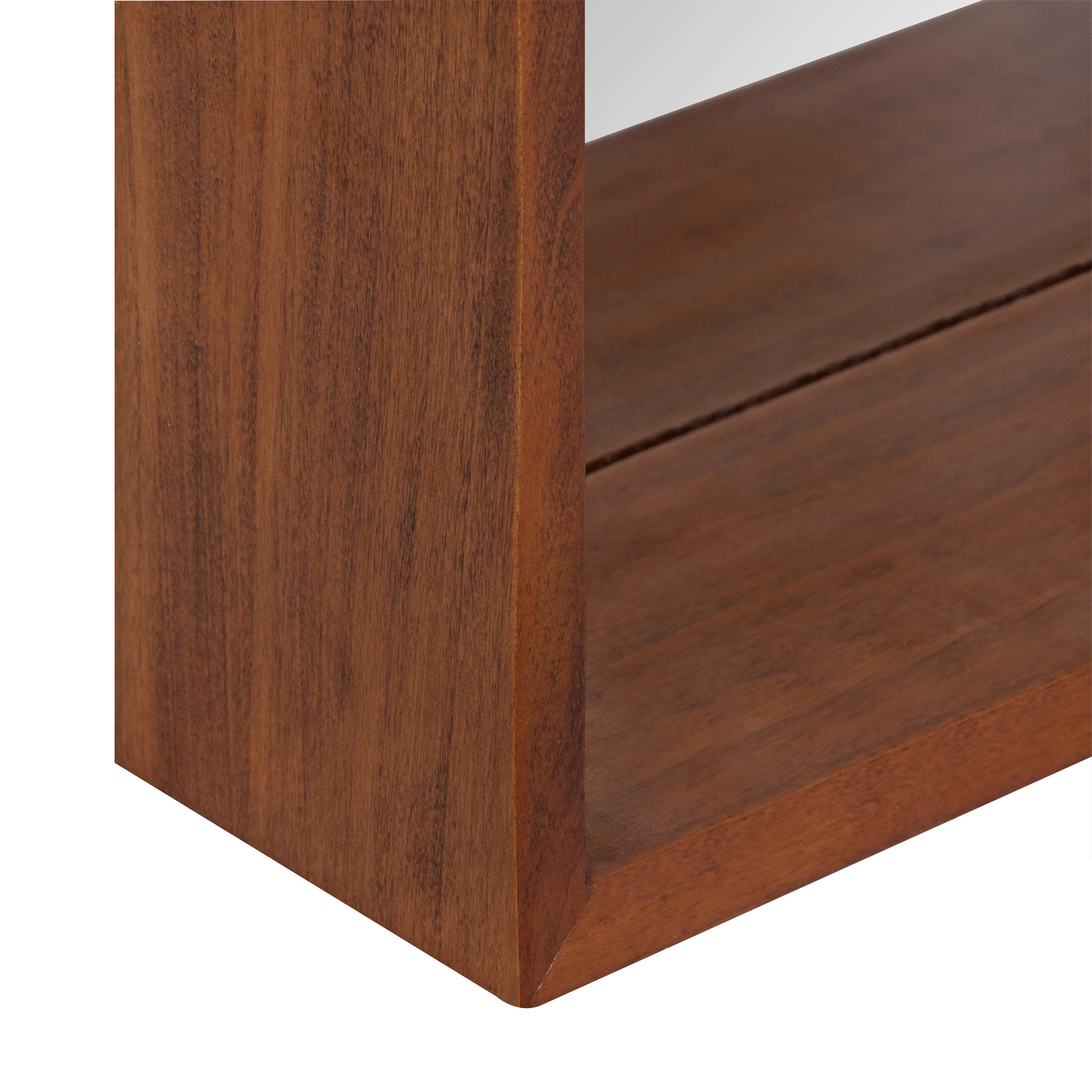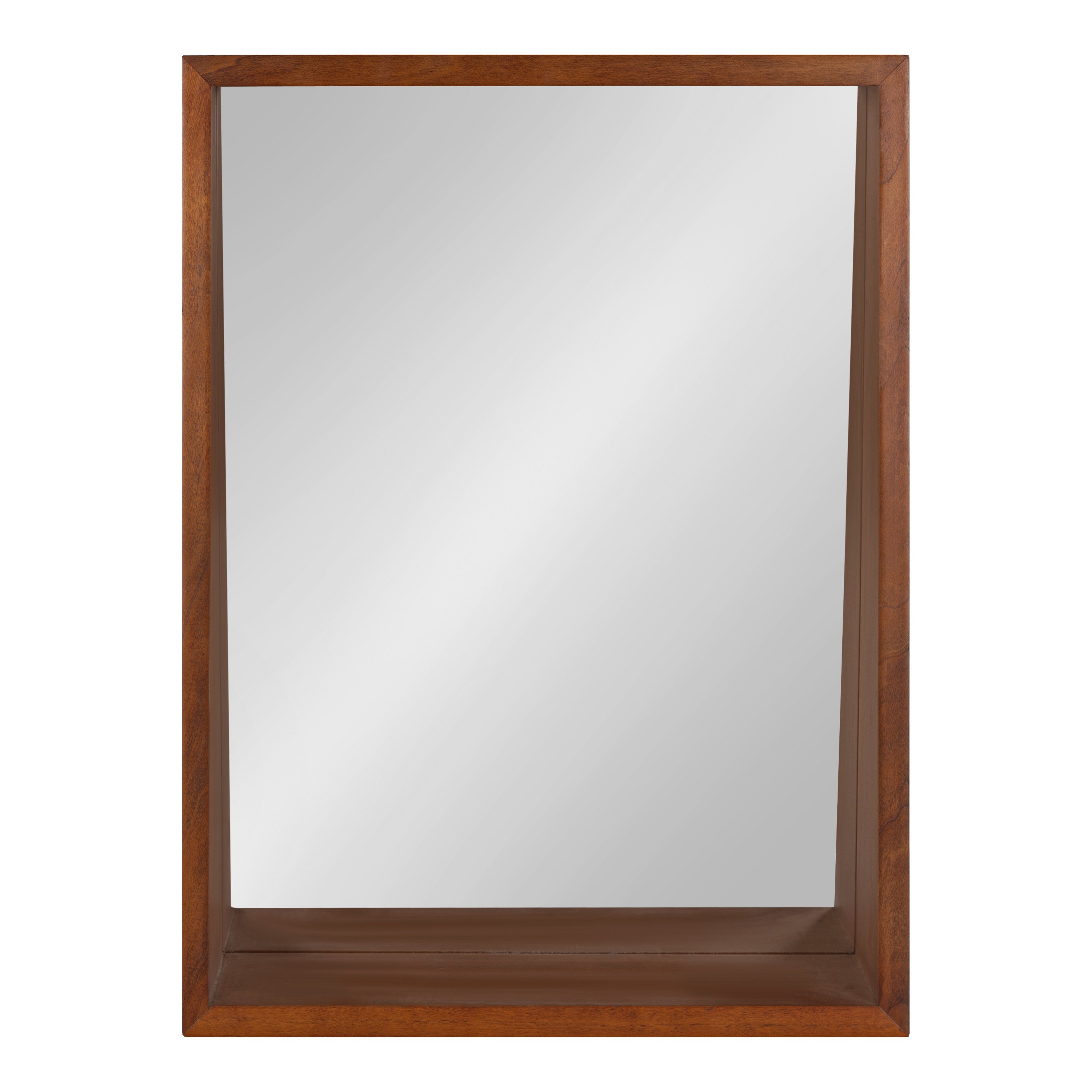 Showcase functional style in your home with the sophisticated Hutton wall mirror. As a practical piece of decor, this mirror features a deep profile that also operates as a functional shelf for soaps, lotions, bathroom necessities, photos, or small succulents. Its frame has solid wood construction built with clean lines and a lasting resiliency.