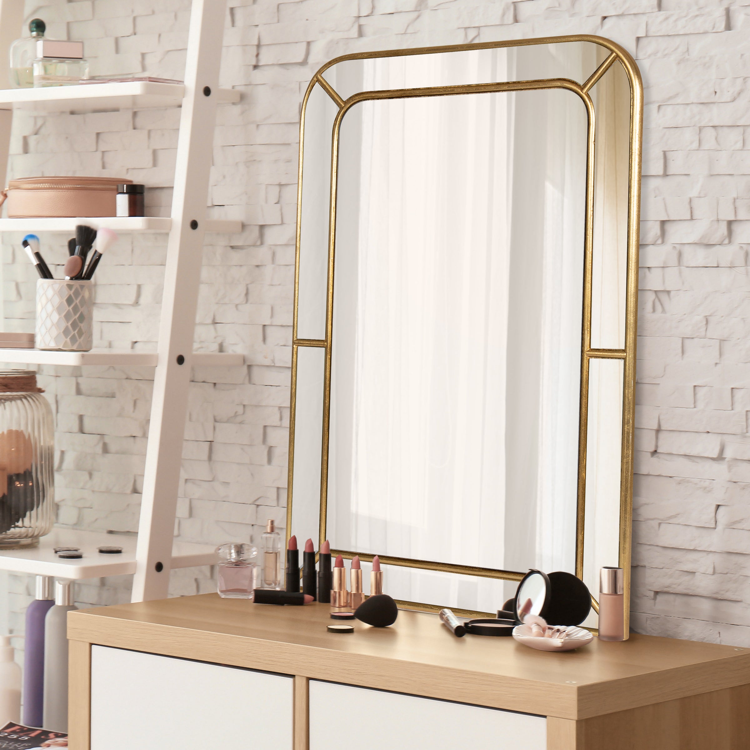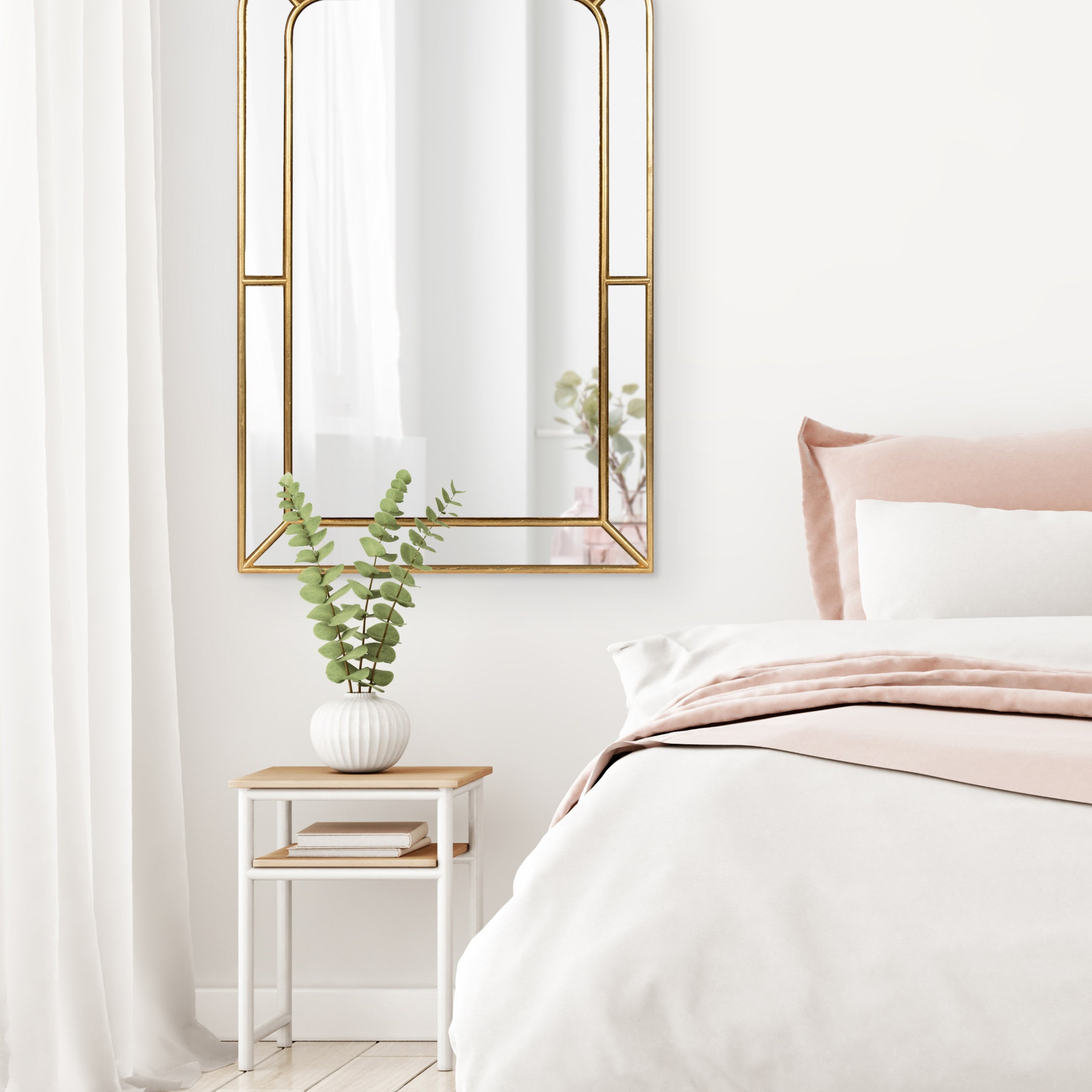 Give your home decor a glamorous theme with the Lamson mirror. Utilizing a segmented overlay surrounding the glass, the Lamson draws the eye to the focal point of the glass with its visually arresting design. The frame and overlay were have a sleek modern style, giving it both a beautiful look and high-quality performance. It functions well as a decorative focal point on your wall and also works well as a bathroom vanity mirror!