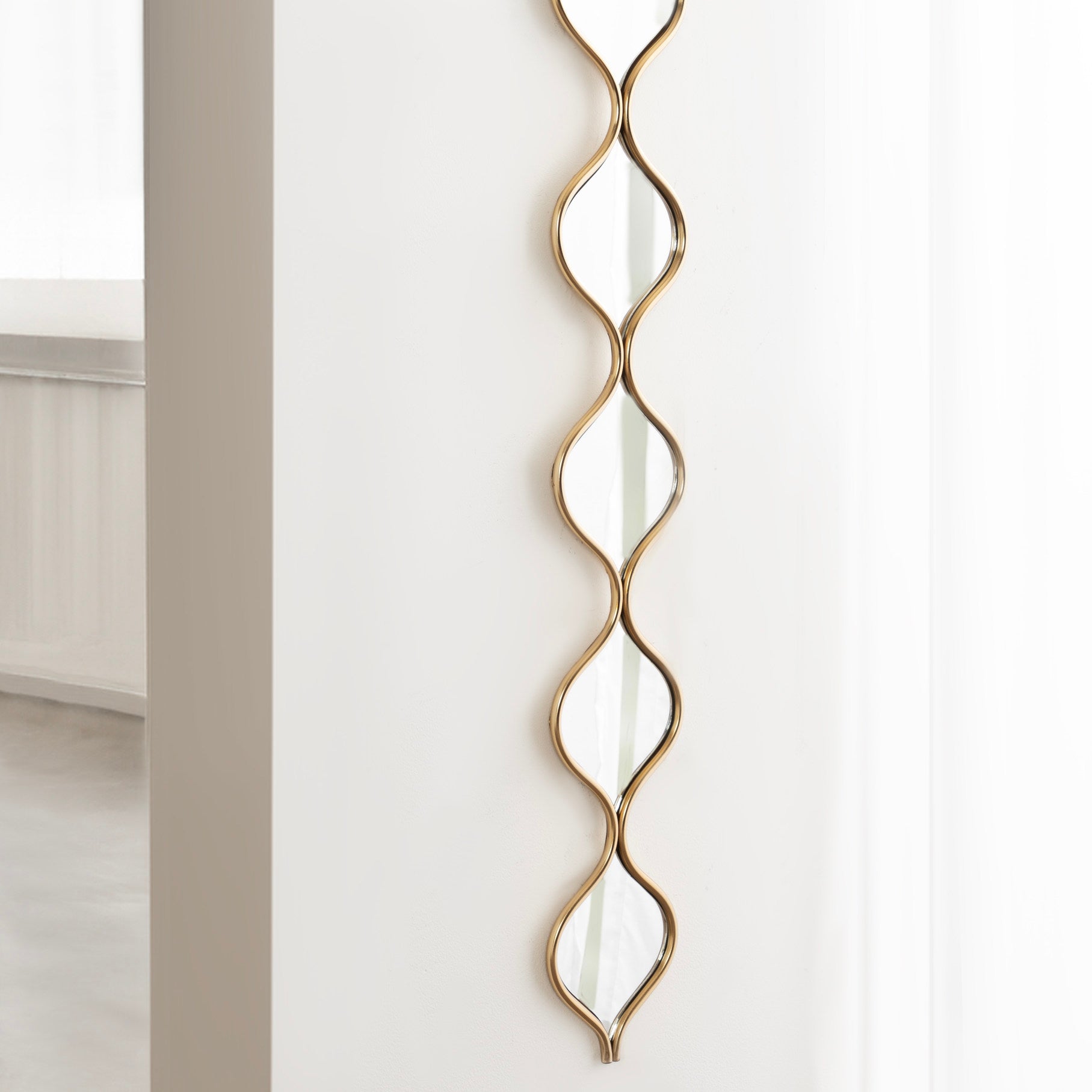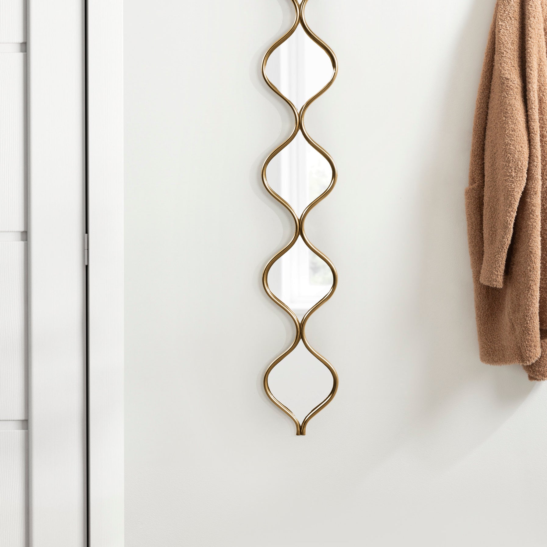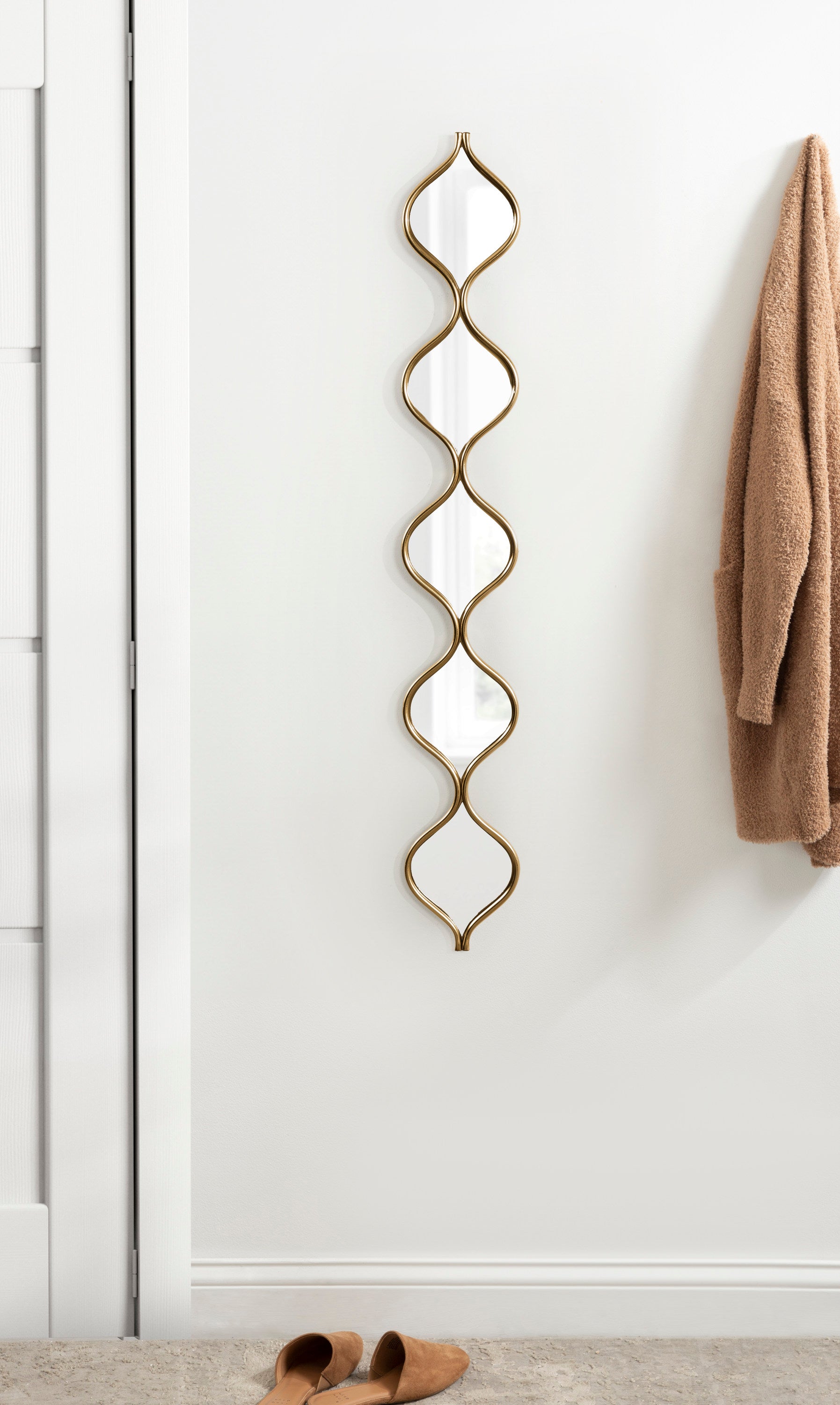 The Loxi wall mirror communicates a glam yet sophisticated decor theme on your wall. It features a repeating teardrop shape with decorative curvature all along the profile. The frame itself was made from metal, making it sturdy and easy to move and hang. The panel mirror also looks fantastic as a decorative bedroom mirror option above your headboard or as an accent elsewhere in your room. Its skinny mirror size makes it fantastic for hanging in multiples, creating an expansive wall display. Hang this mirror or multiples in a slim entryway wall space or in a bedroom that needs a bit more natural light.