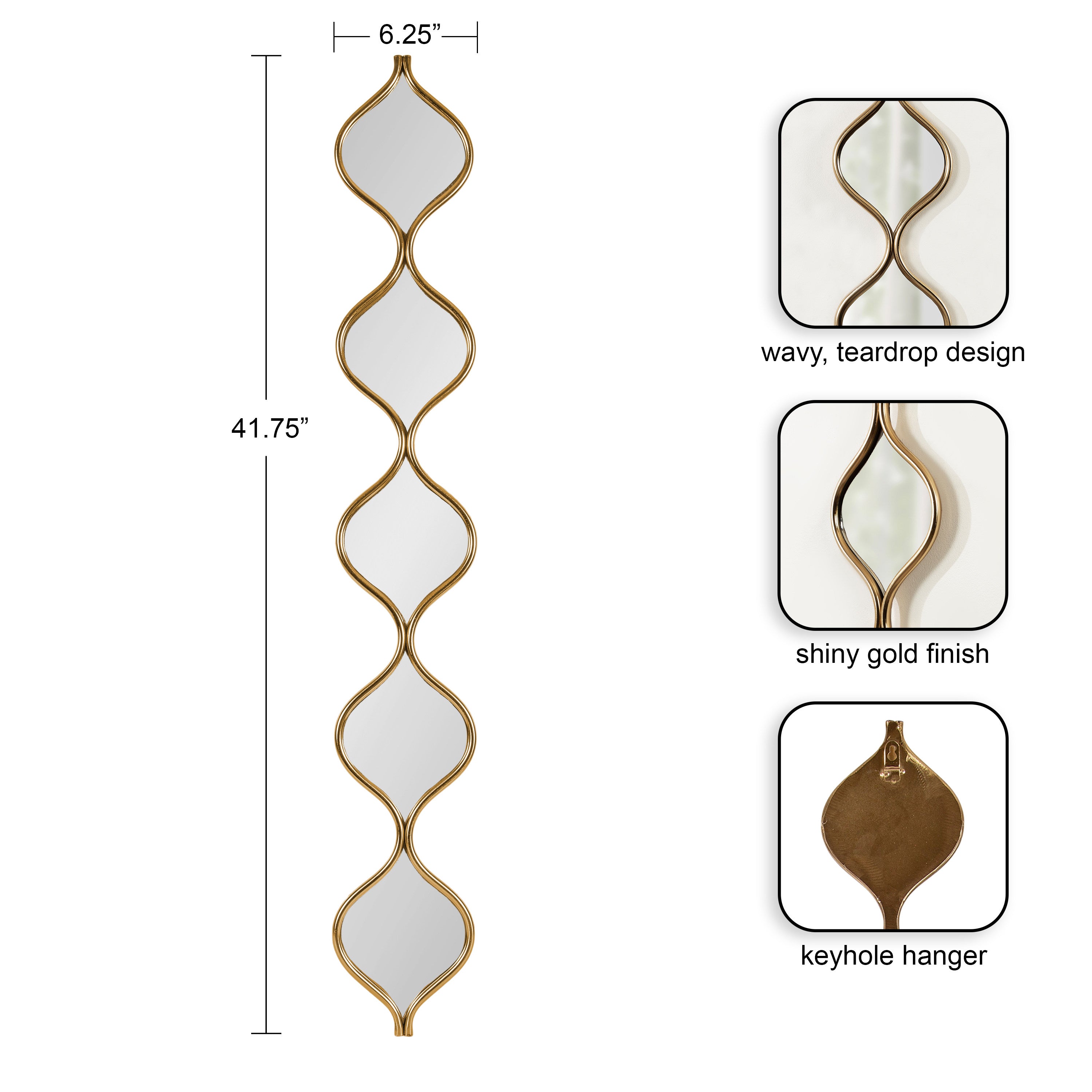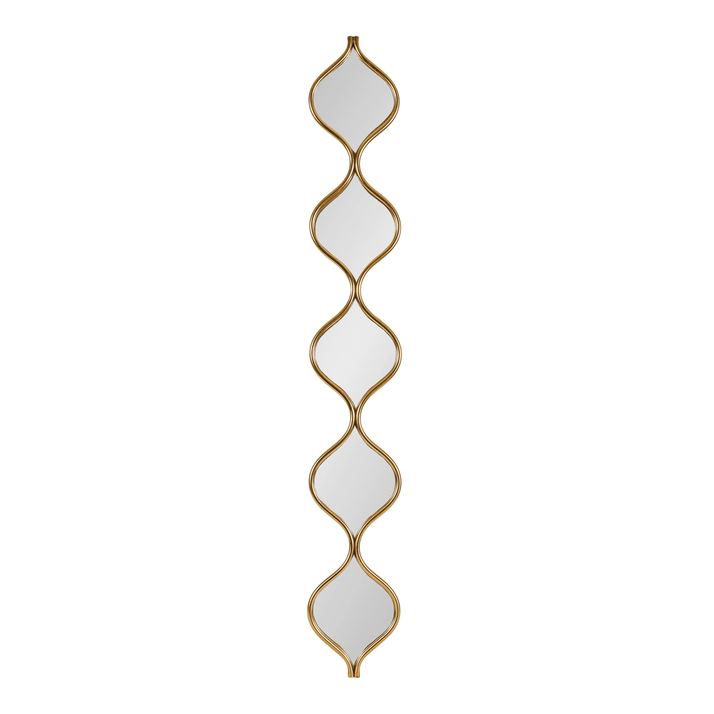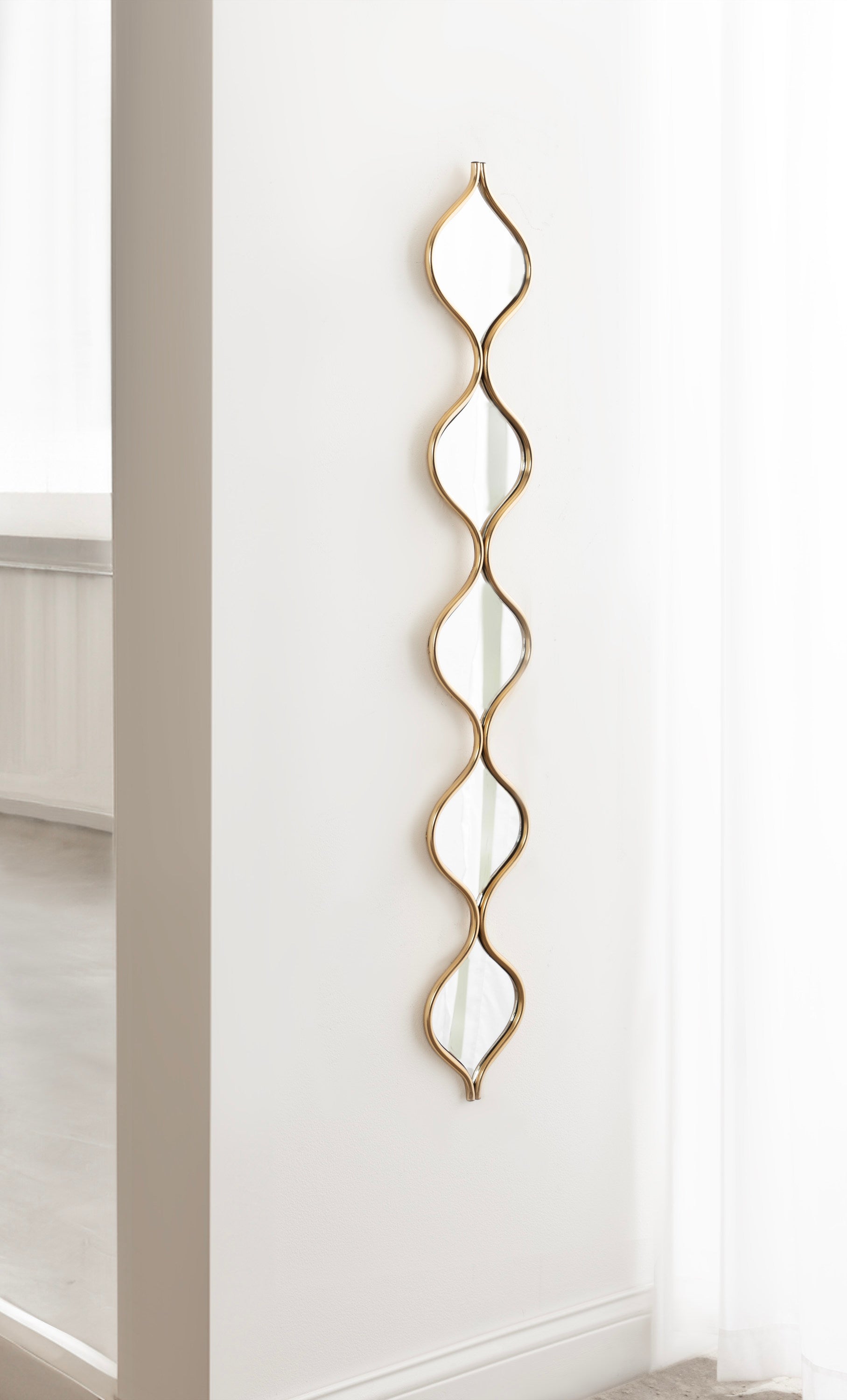 The Loxi wall mirror communicates a glam yet sophisticated decor theme on your wall. It features a repeating teardrop shape with decorative curvature all along the profile. The frame itself was made from metal, making it sturdy and easy to move and hang. The panel mirror also looks fantastic as a decorative bedroom mirror option above your headboard or as an accent elsewhere in your room. Its skinny mirror size makes it fantastic for hanging in multiples, creating an expansive wall display. Hang this mirror or multiples in a slim entryway wall space or in a bedroom that needs a bit more natural light.
