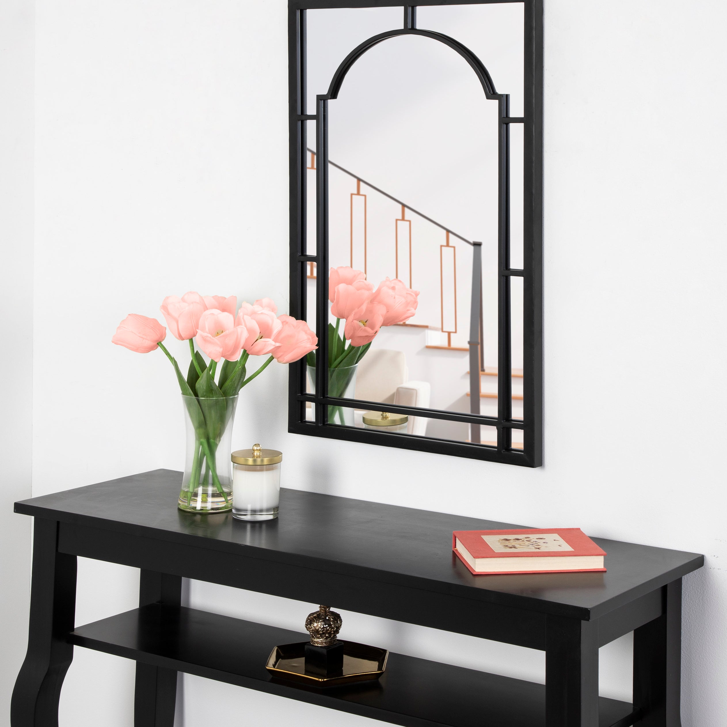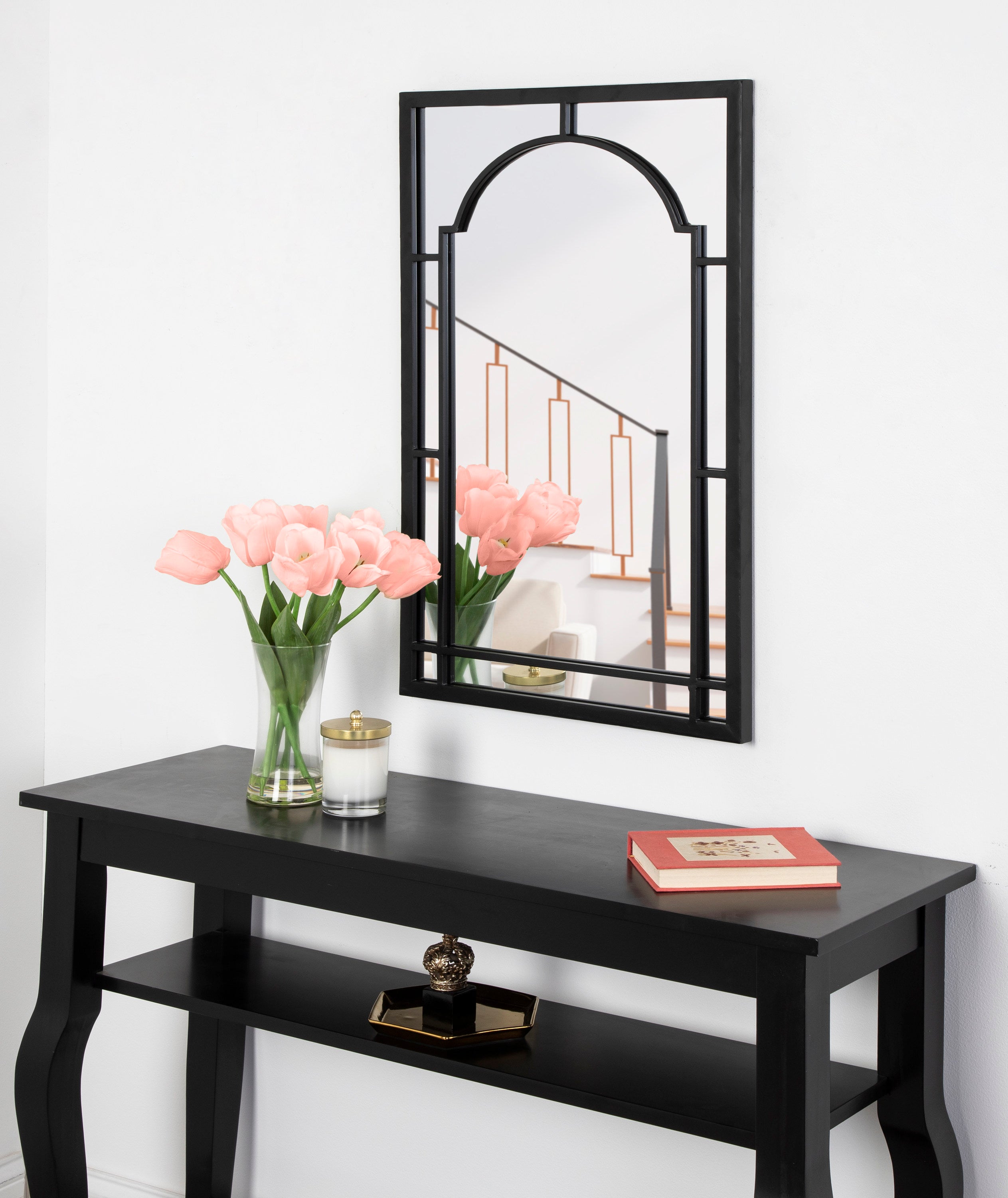 Create a bold, glamorous wall display in your home with this robust modern mirror. The Lyla wall mirror features a metal frame and arched inlay for an eye-catching accent for any room of the home. Adding a glamorous mirror to your home spreads light throughout your space, providing more depth and dimension.