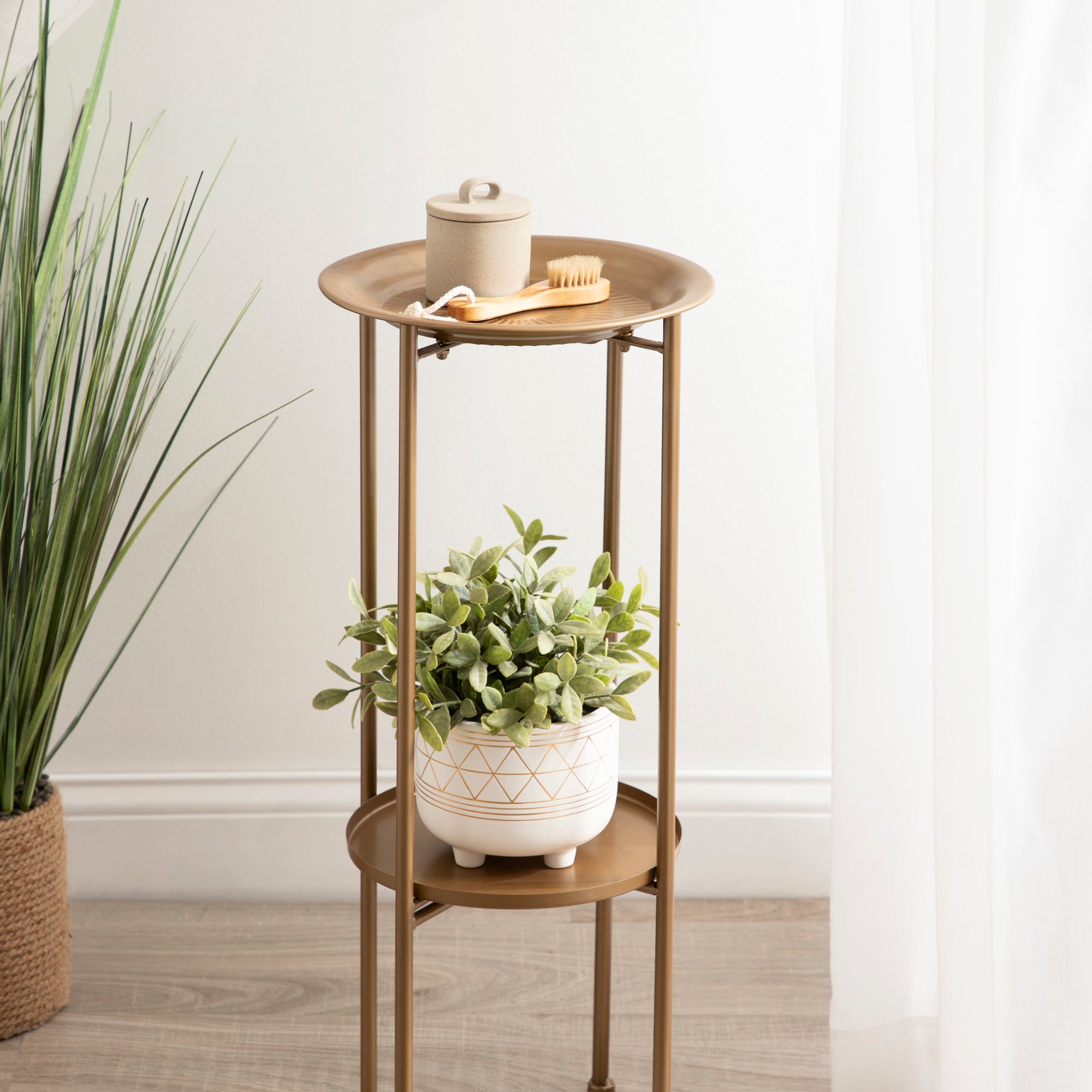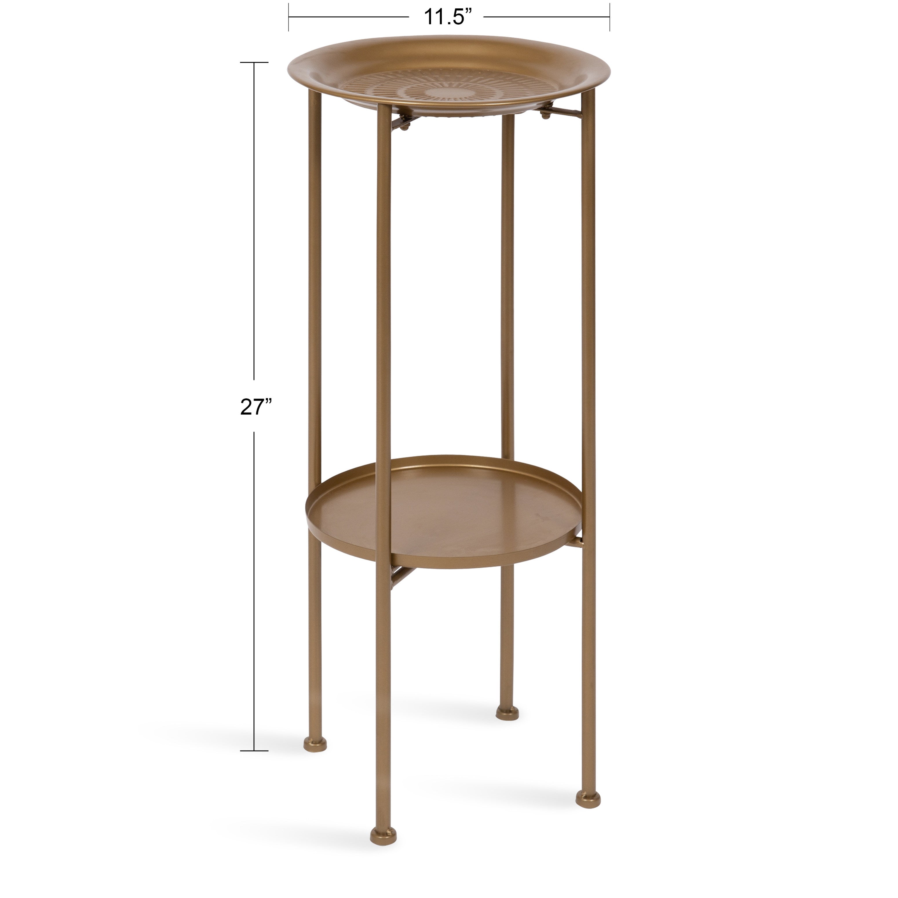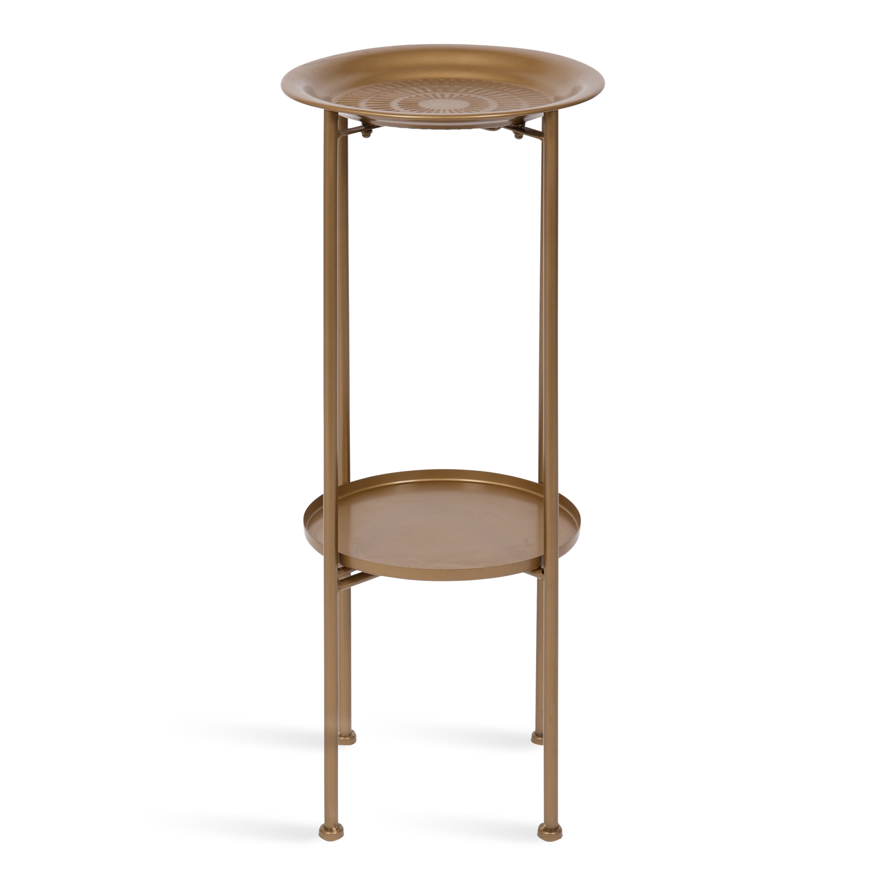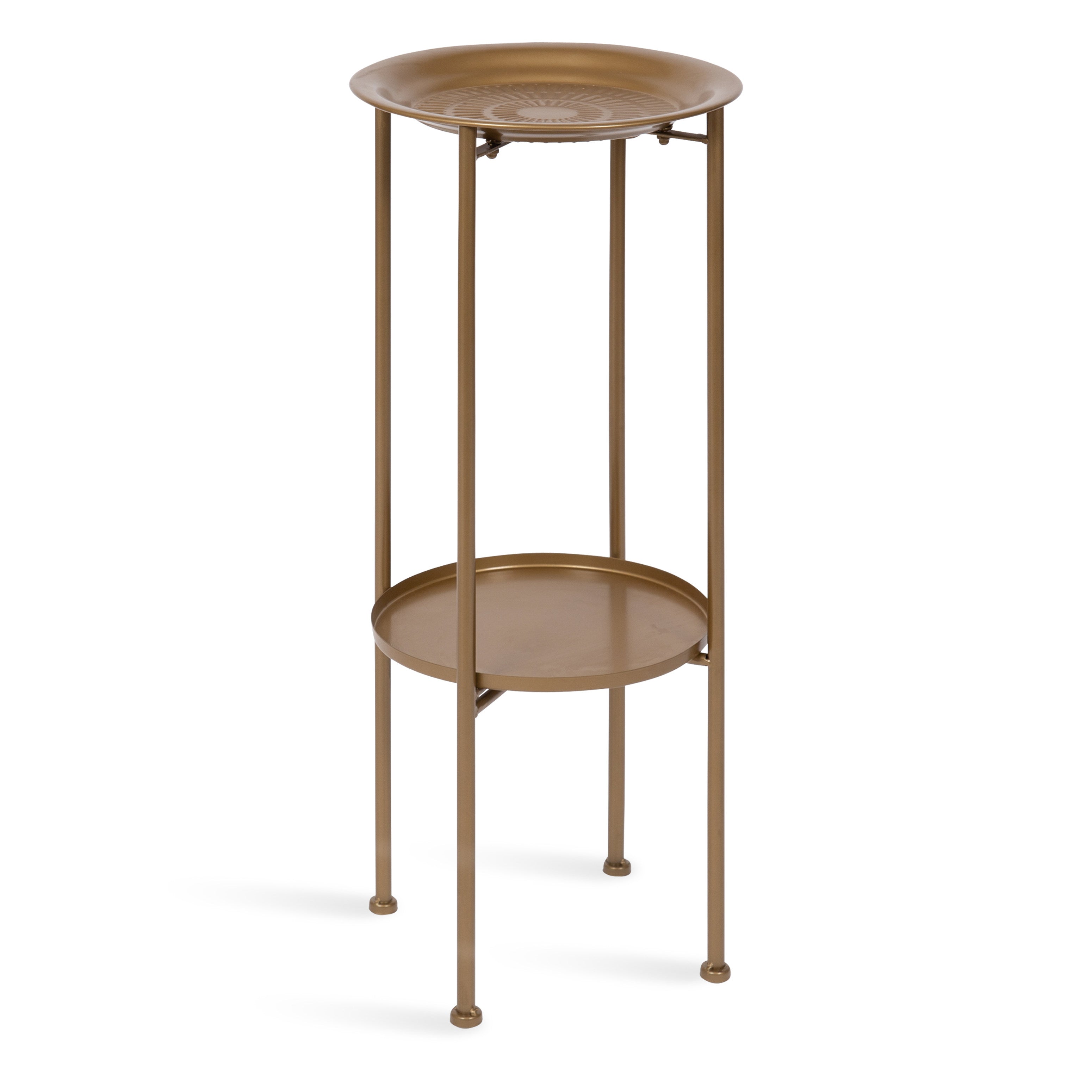 The Mahdavi plant stand table creates a commanding multi-functional focal point for any living room or bedroom. The tabletop features an embossed, organic patterning inspired by Moroccan design with its tactile feel. The frame is easy to assemble in a matter of minutes. It's also handy when you need to store the table away to create more room to move at your next gathering! The Mahdavi plant stand table is perfect for serving drinks on coasters, displaying potted plants, storing media and books, or simply acting as a bold display piece.