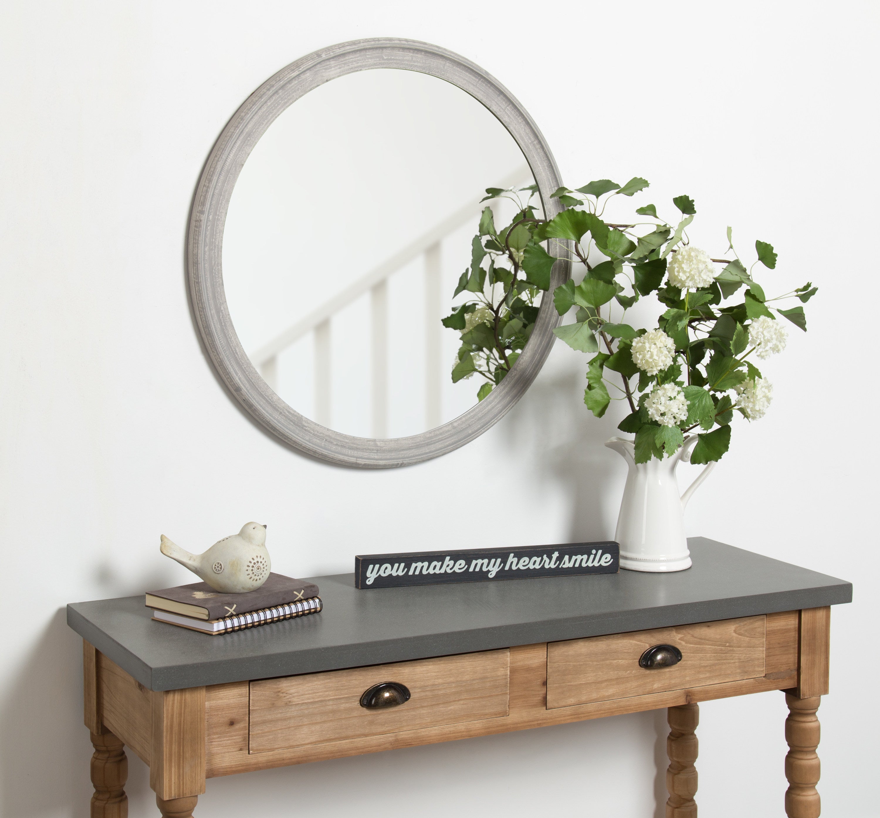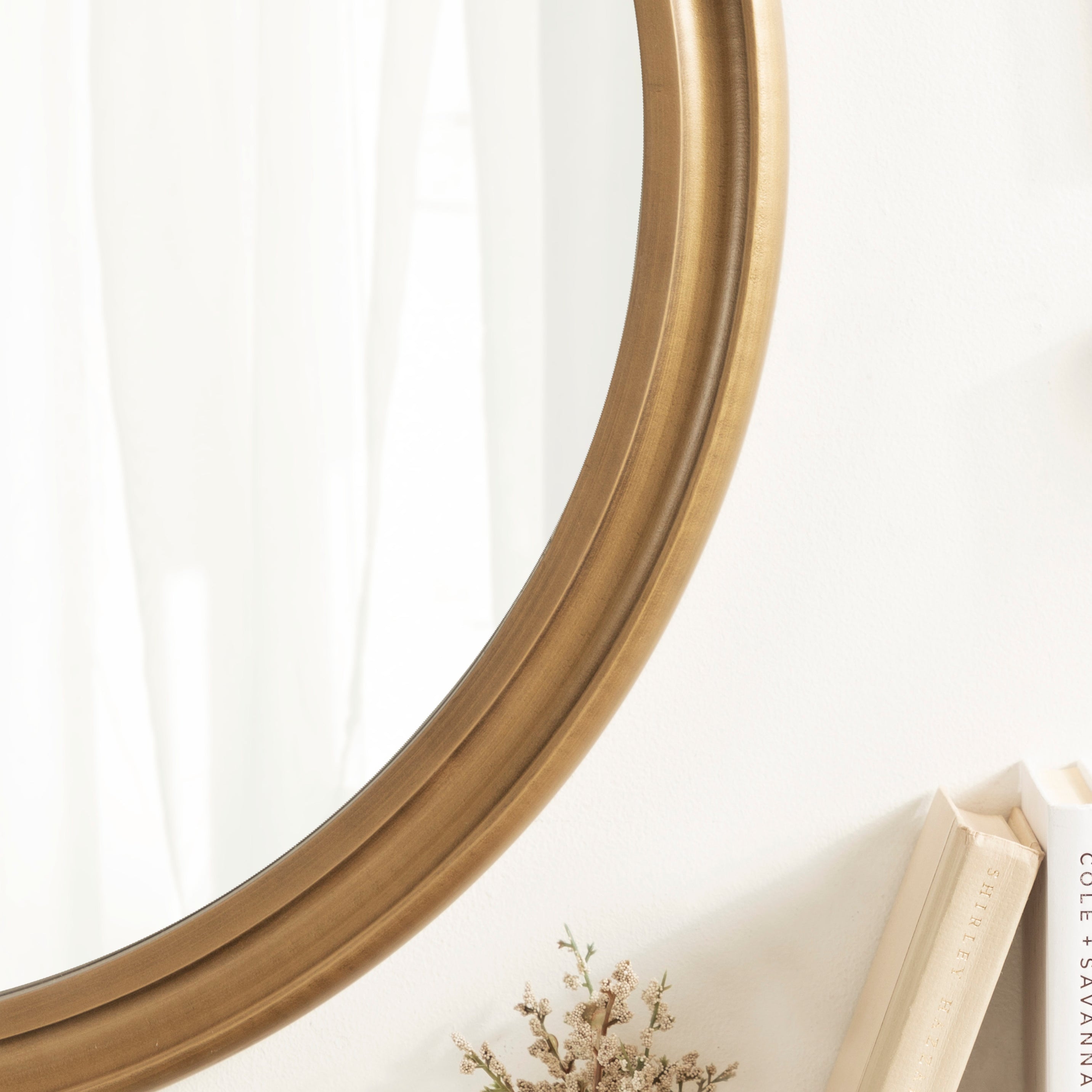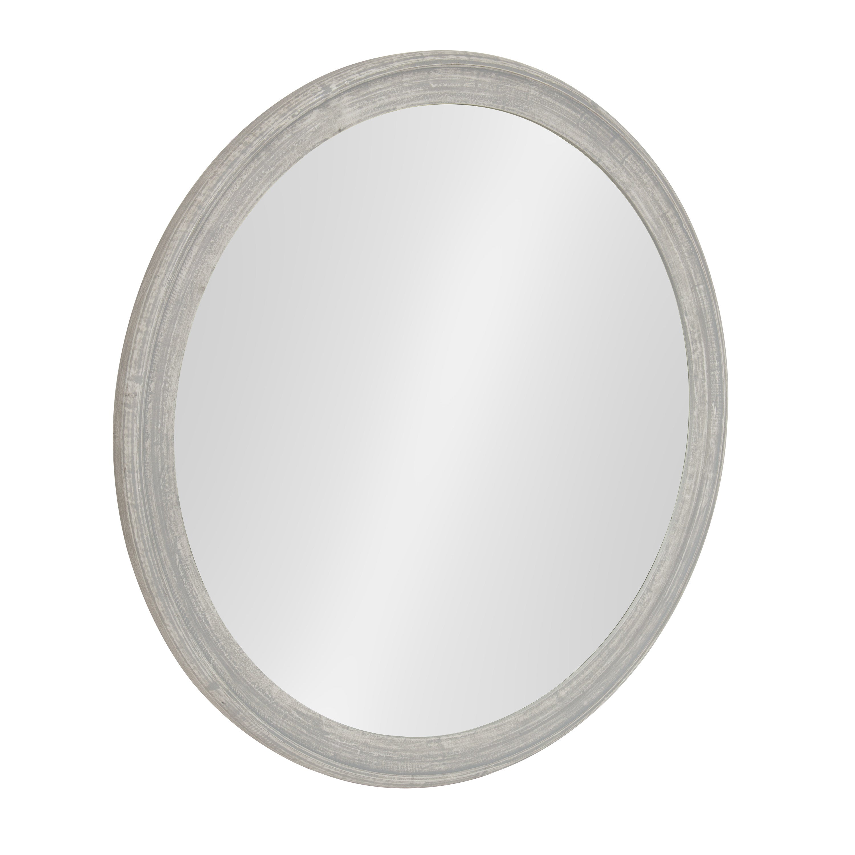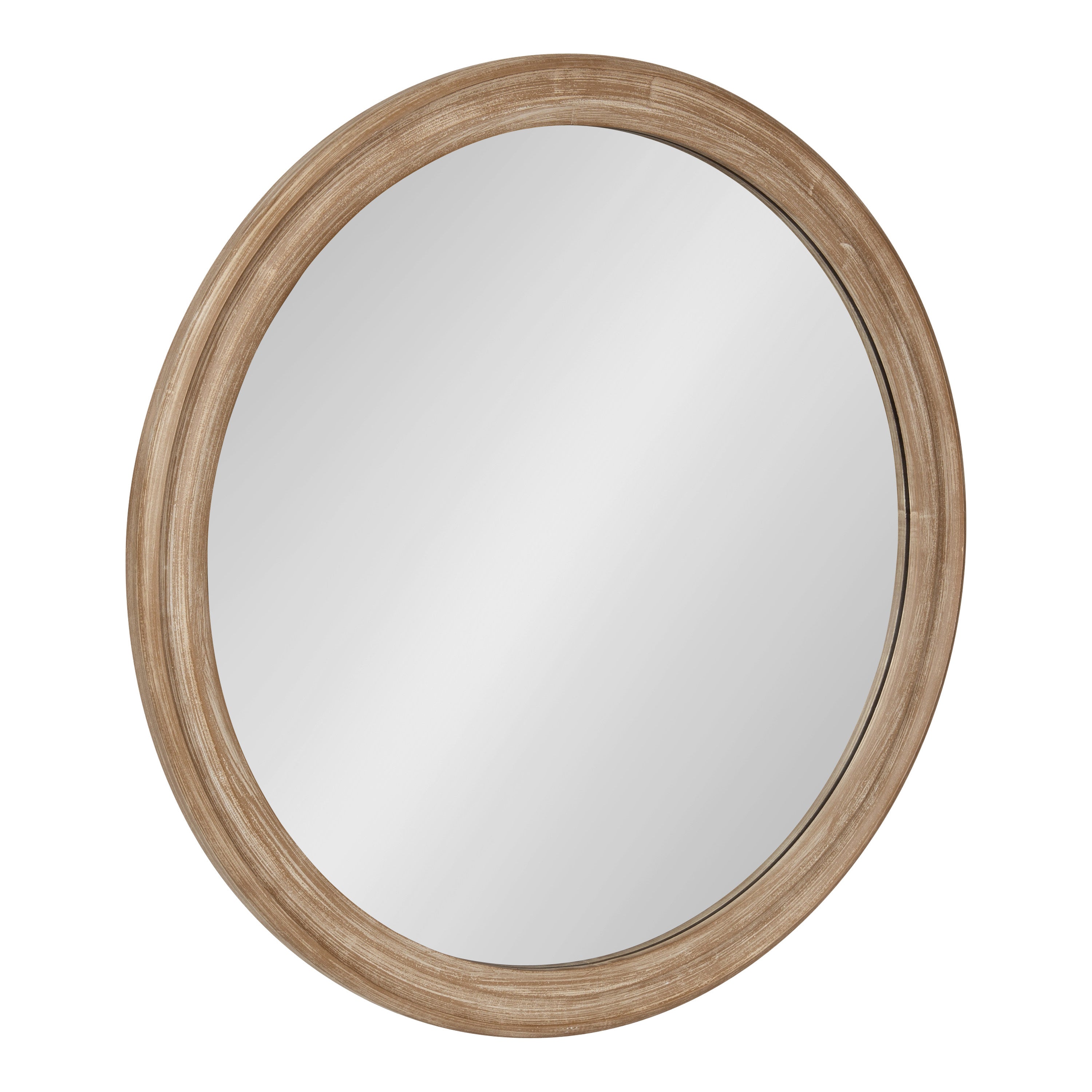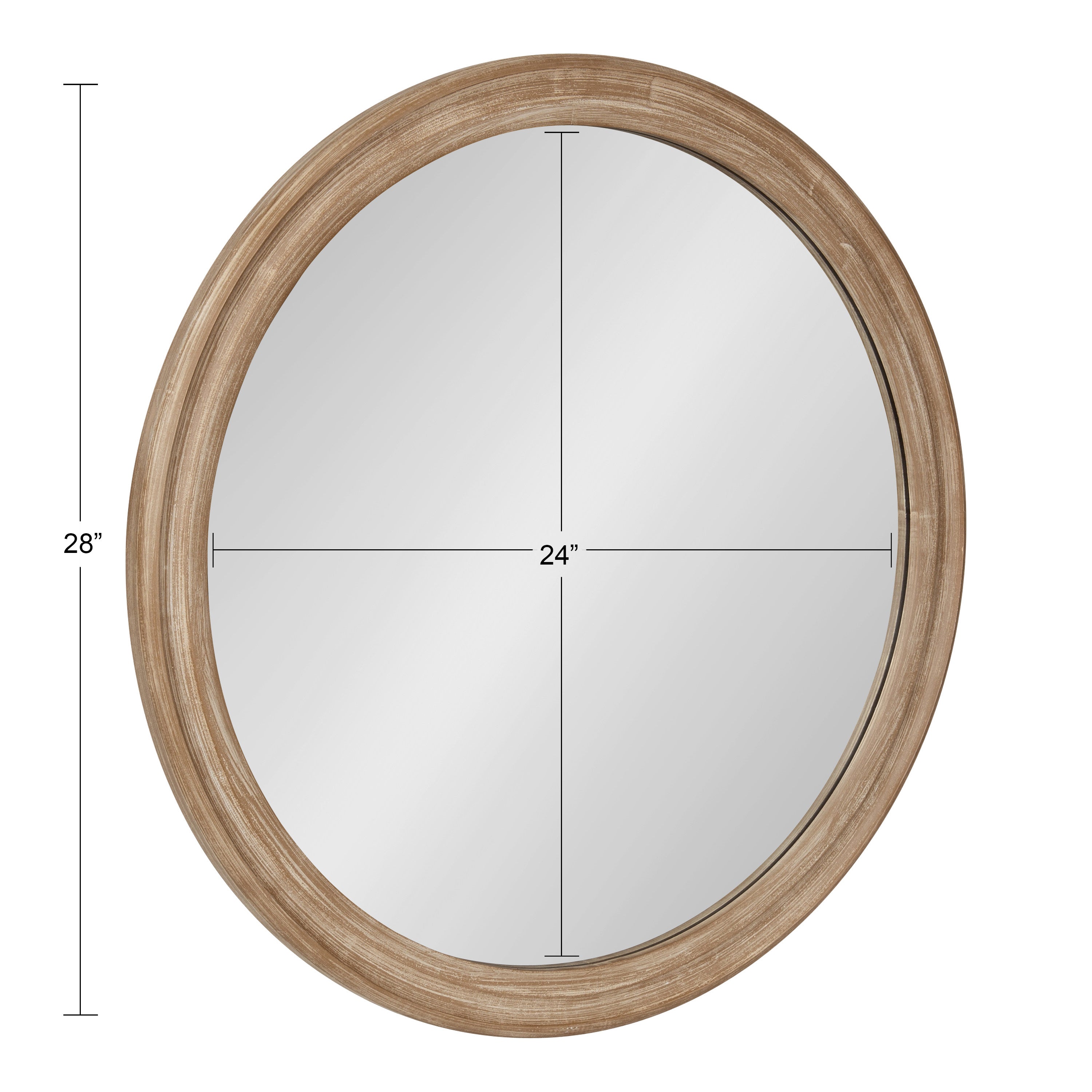 Make a bold and sophisticated statement on your wall with the beautiful transitional style of the Mansell decorative wall mirror. A well-built, ornamental wooden frame borders the curved oval glass mirror. Its sophisticated frame features a sloped style and has a durable, textured wood construction. Hang this lovely statement piece proudly over your vanity, dresser, shelf, or hang it as an accent piece in the living room, dining room, family room, or bedroom.
