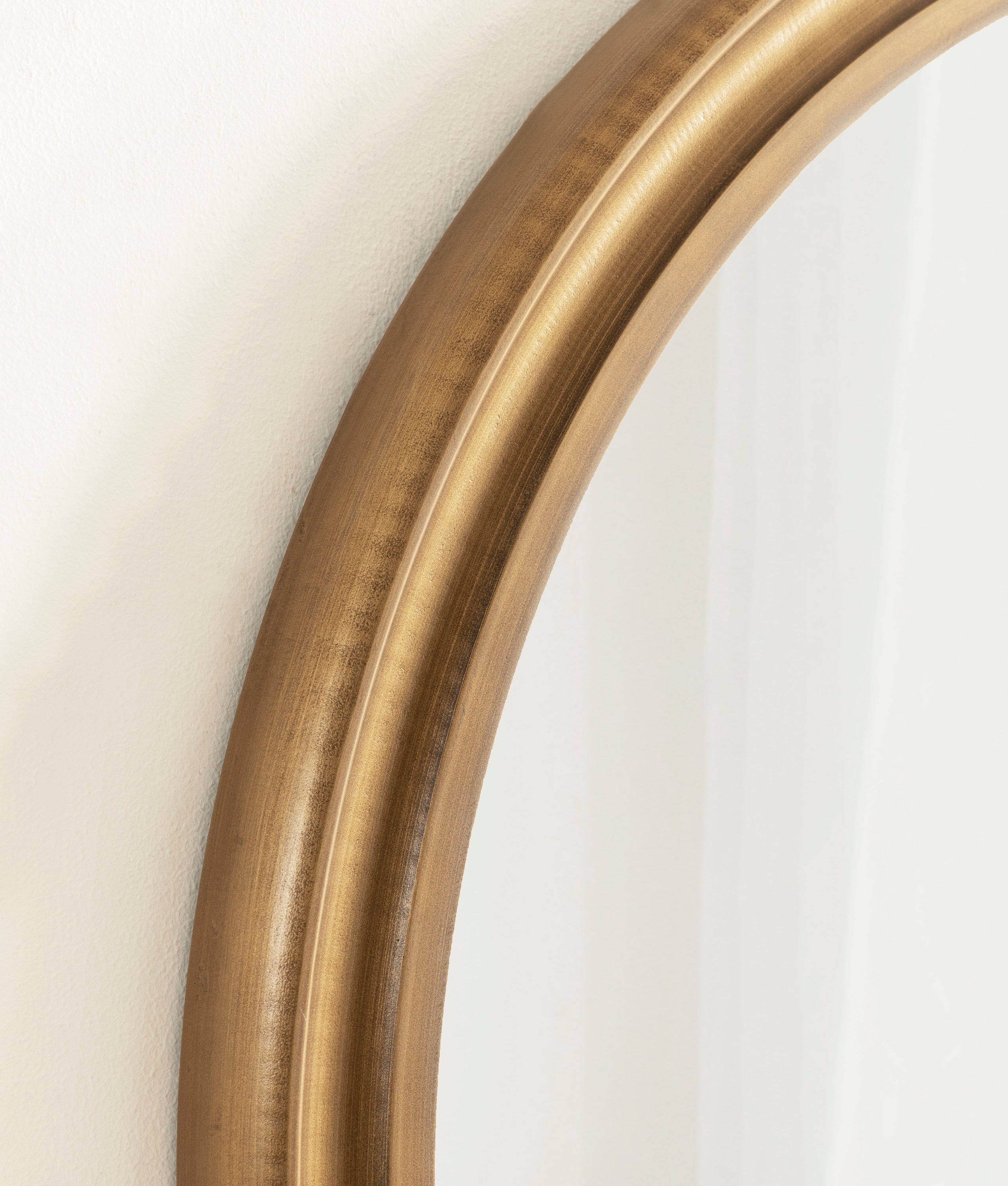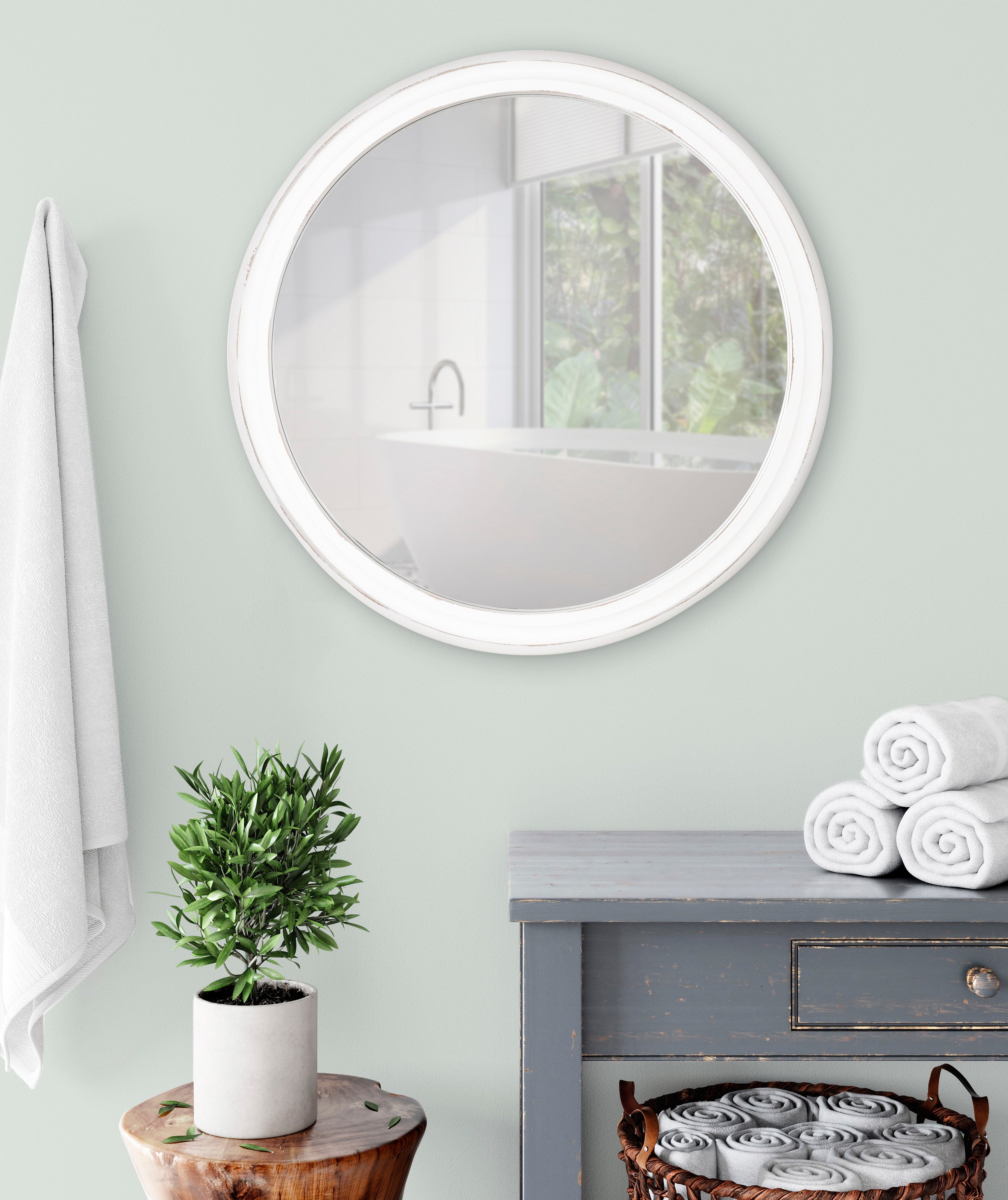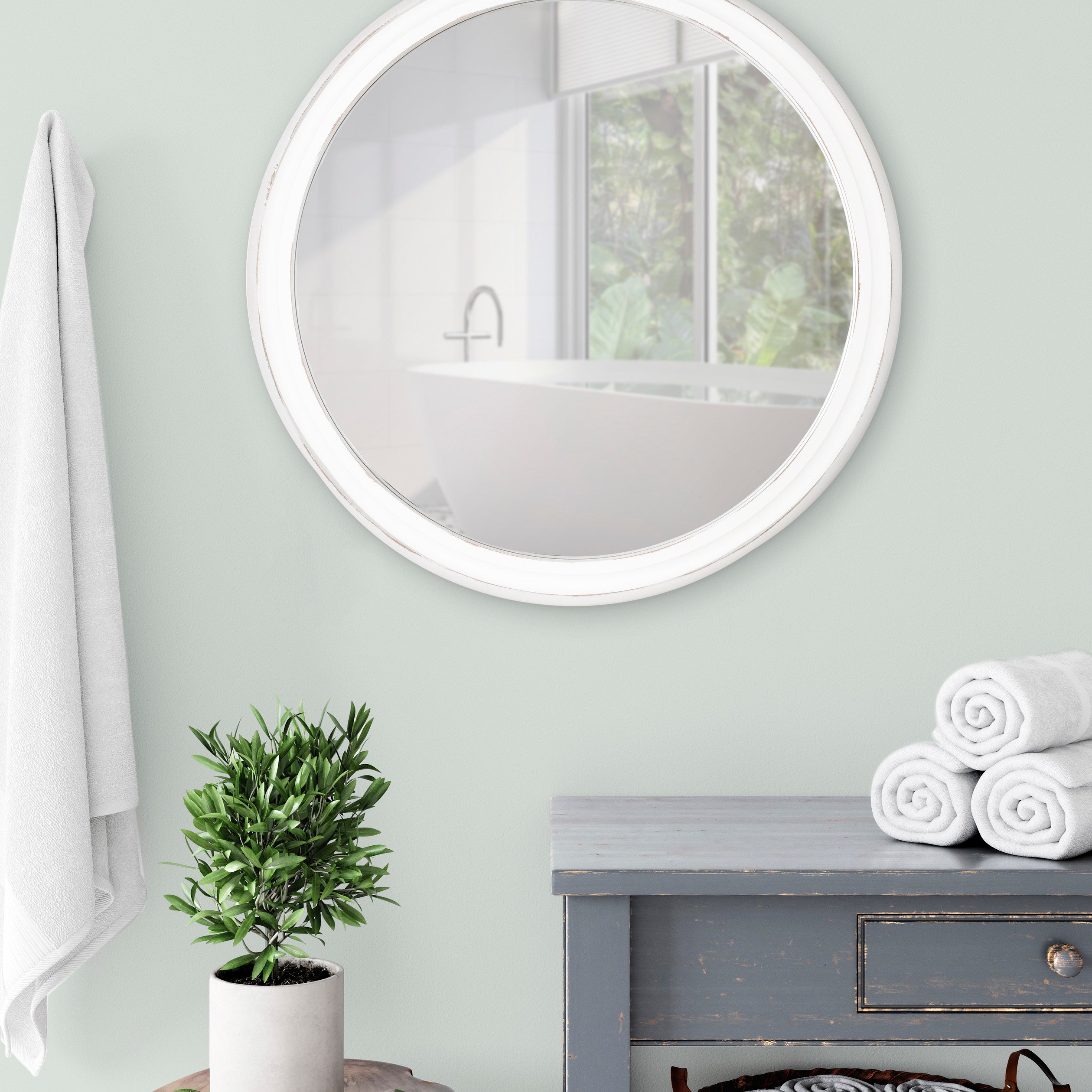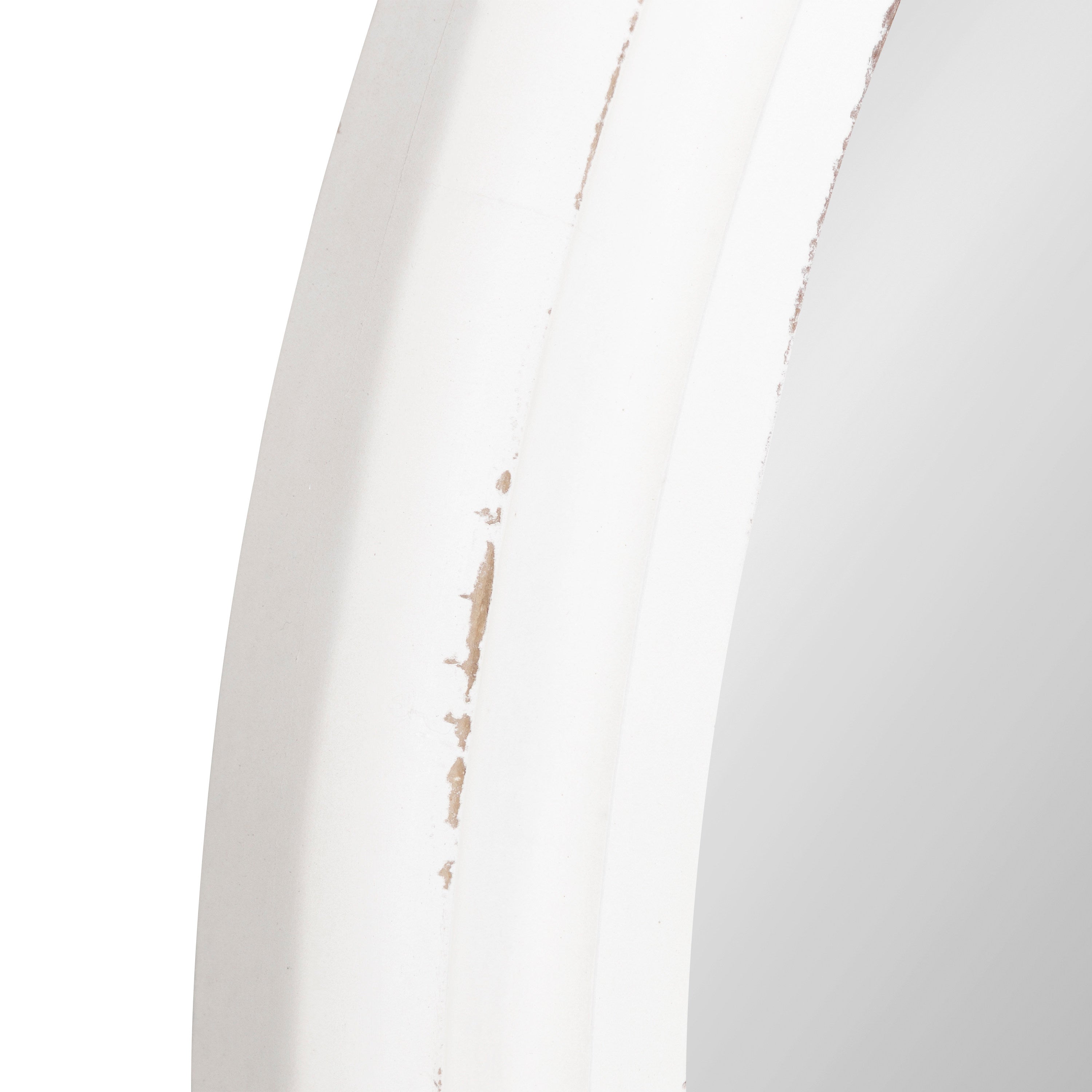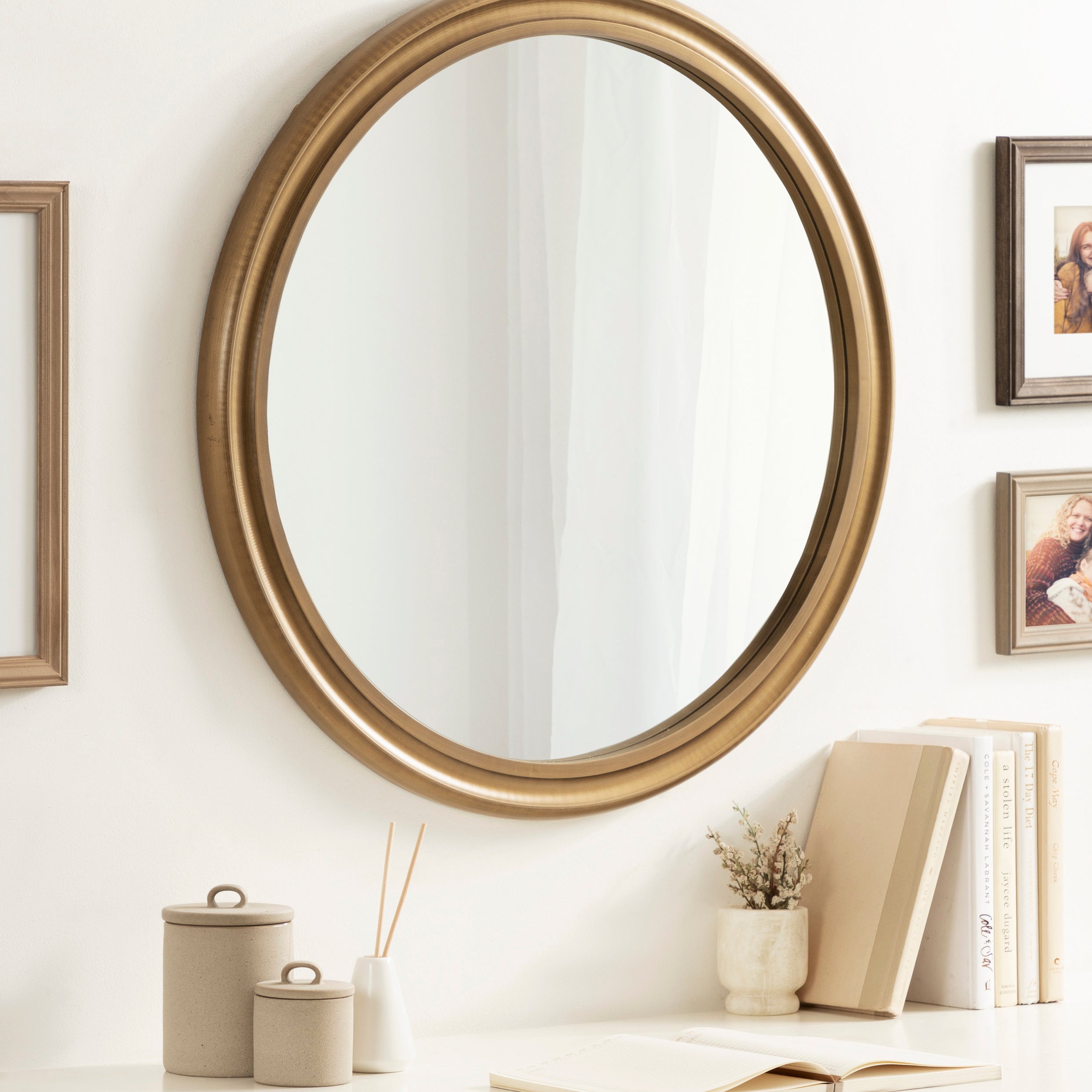 Make a bold and sophisticated statement on your wall with the beautiful transitional style of the Mansell decorative wall mirror. A well-built, ornamental wooden frame borders the curved oval glass mirror. Its sophisticated frame features a sloped style and has a durable, textured wood construction. Hang this lovely statement piece proudly over your vanity, dresser, shelf, or hang it as an accent piece in the living room, dining room, family room, or bedroom.