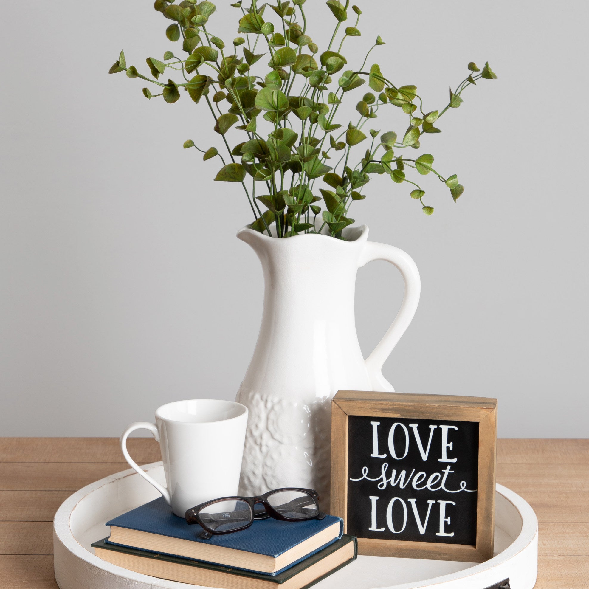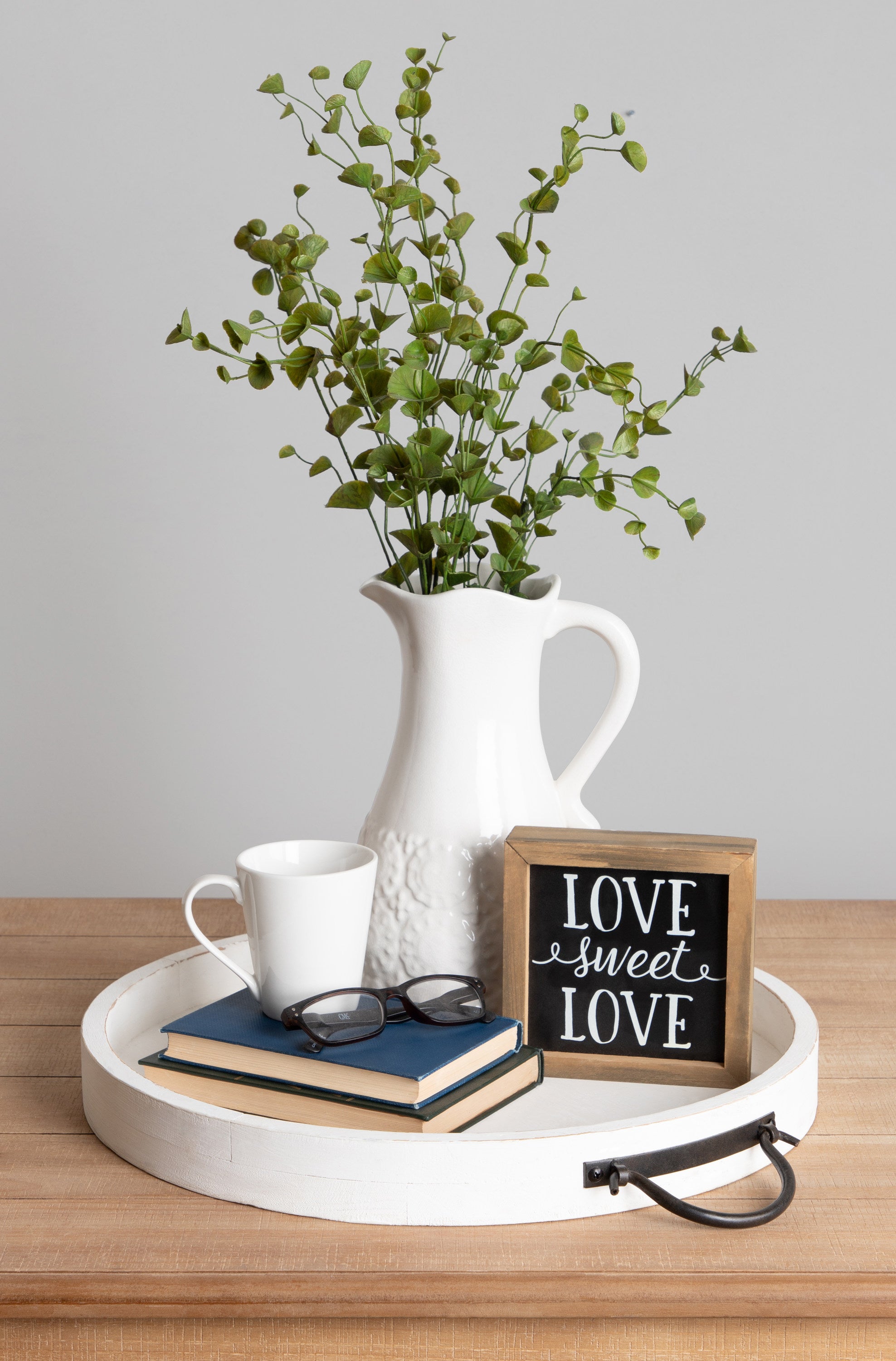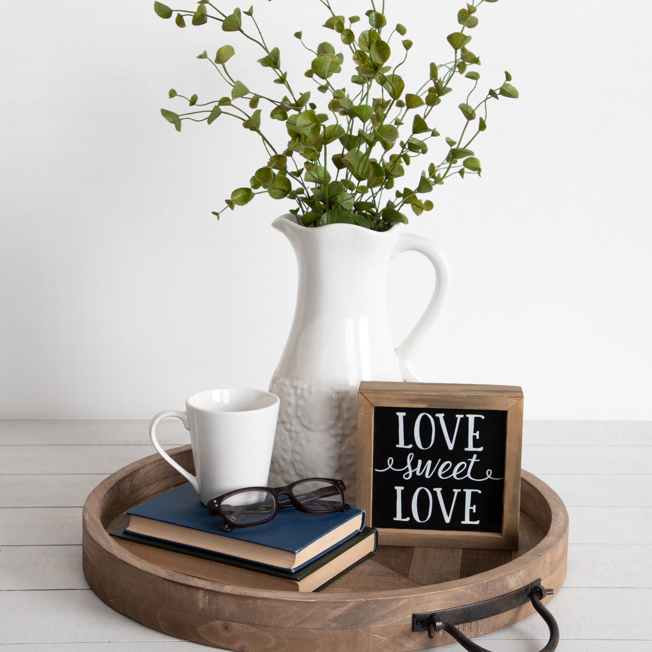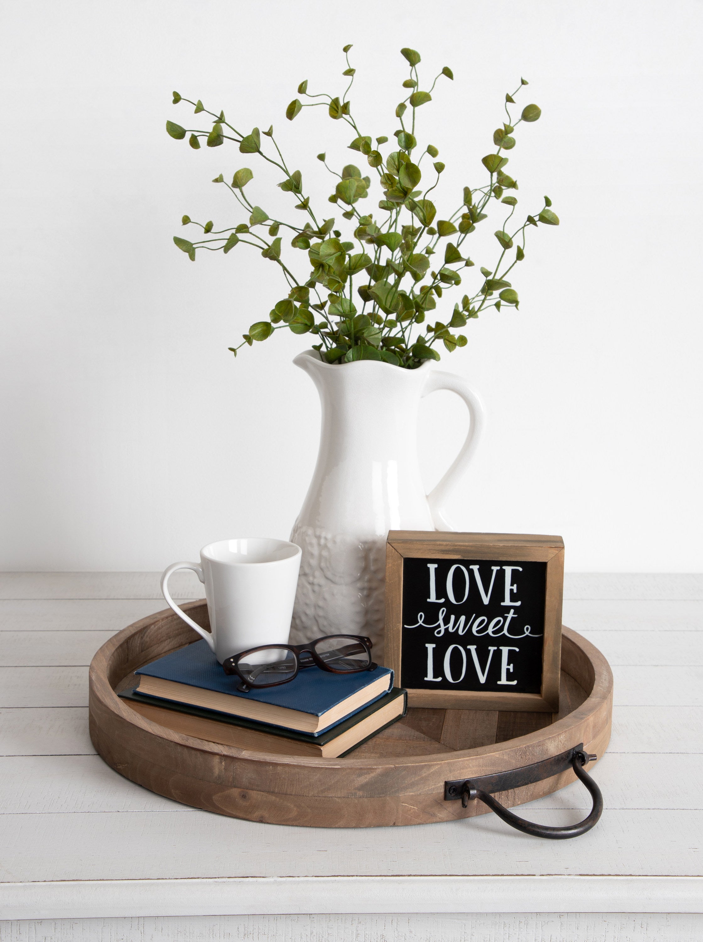The Marmora wooden tray has a cozy natural texture that you'll love. It's a fantastic way to decorate and organize in farmhouse chic and create a casual rustic style that'll blend well with your home decor.