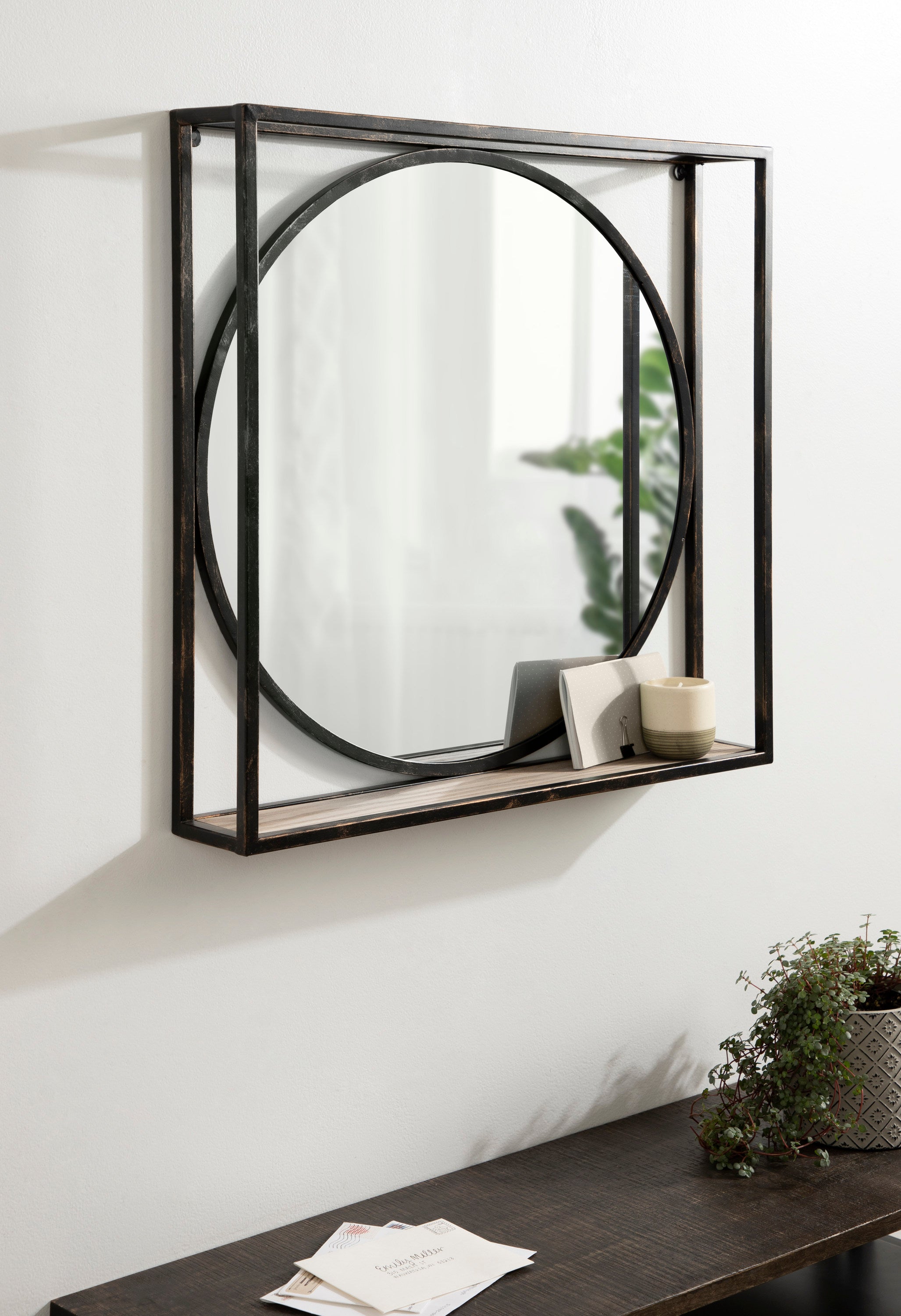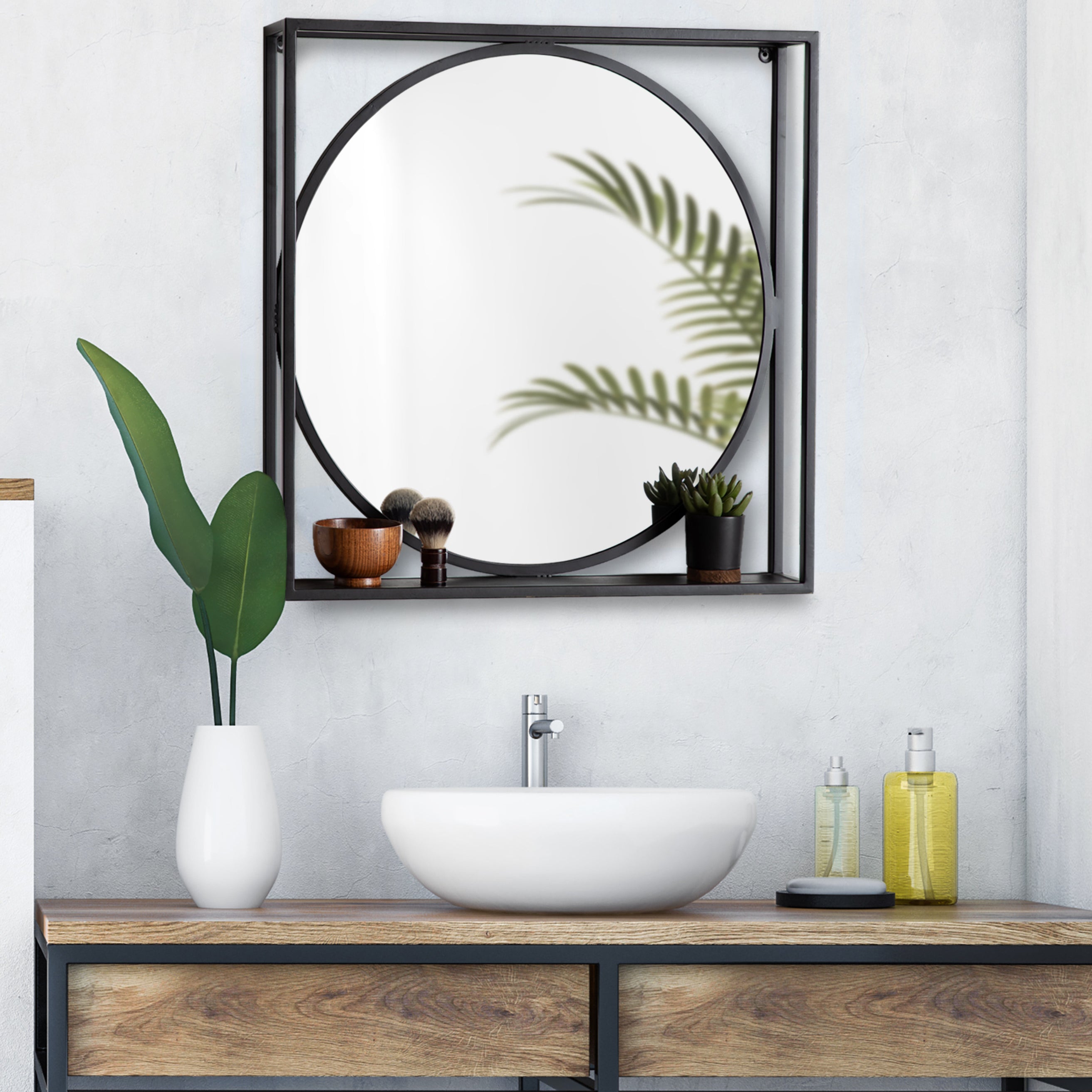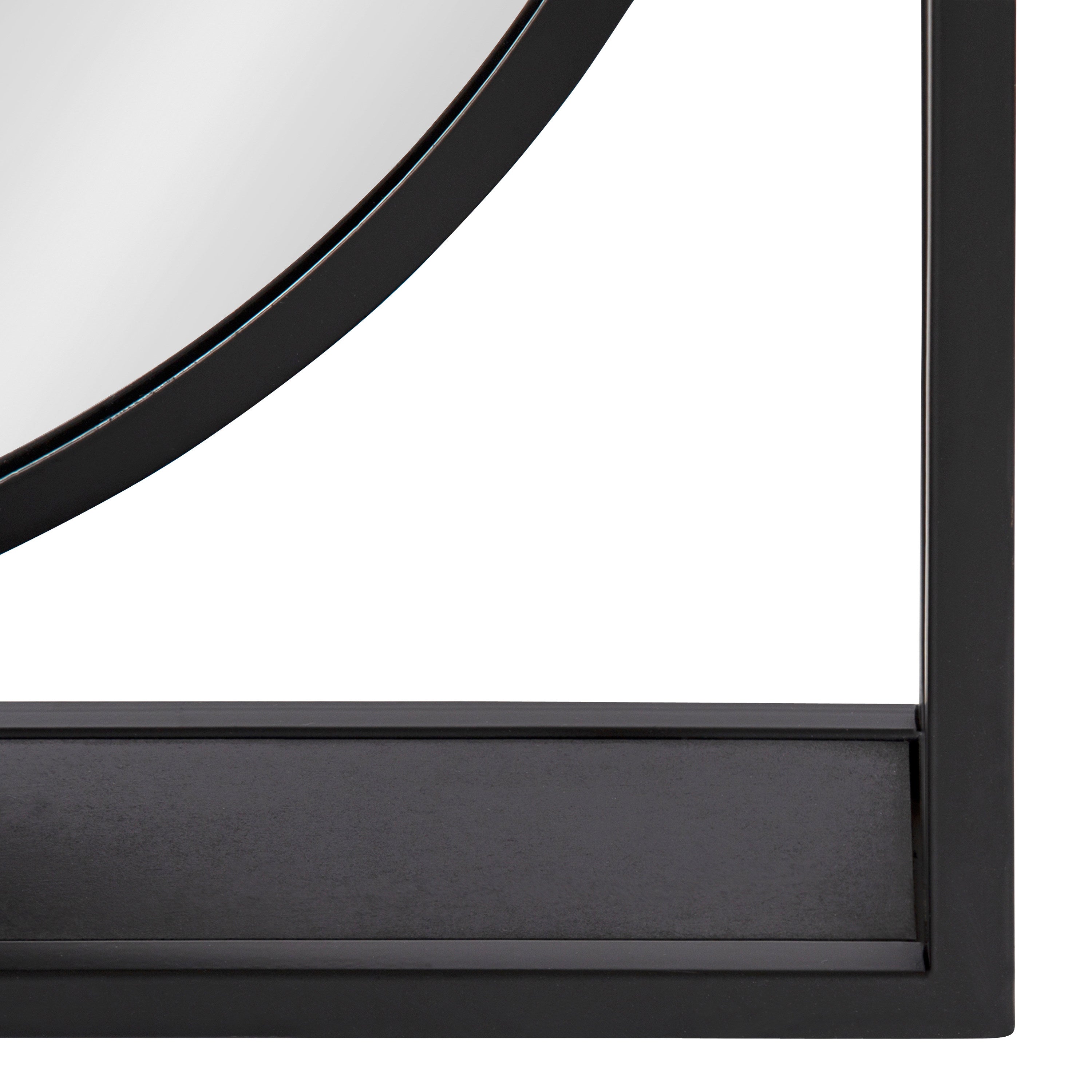The McCauley Wall-Mounted Mirror creates the perfect modern addition to your home with its trendy geometric shape and clean black finish. Designed with a 3.5" shelf depth, this mirror has the capability to display small plants, photos, and keepsakes. This mirror hangs in only a matter of seconds with metal eyelet hangers and no assembly required. Mount this beautiful modern statement piece in your living room, bedroom, entryway, bathroom, or dining room.