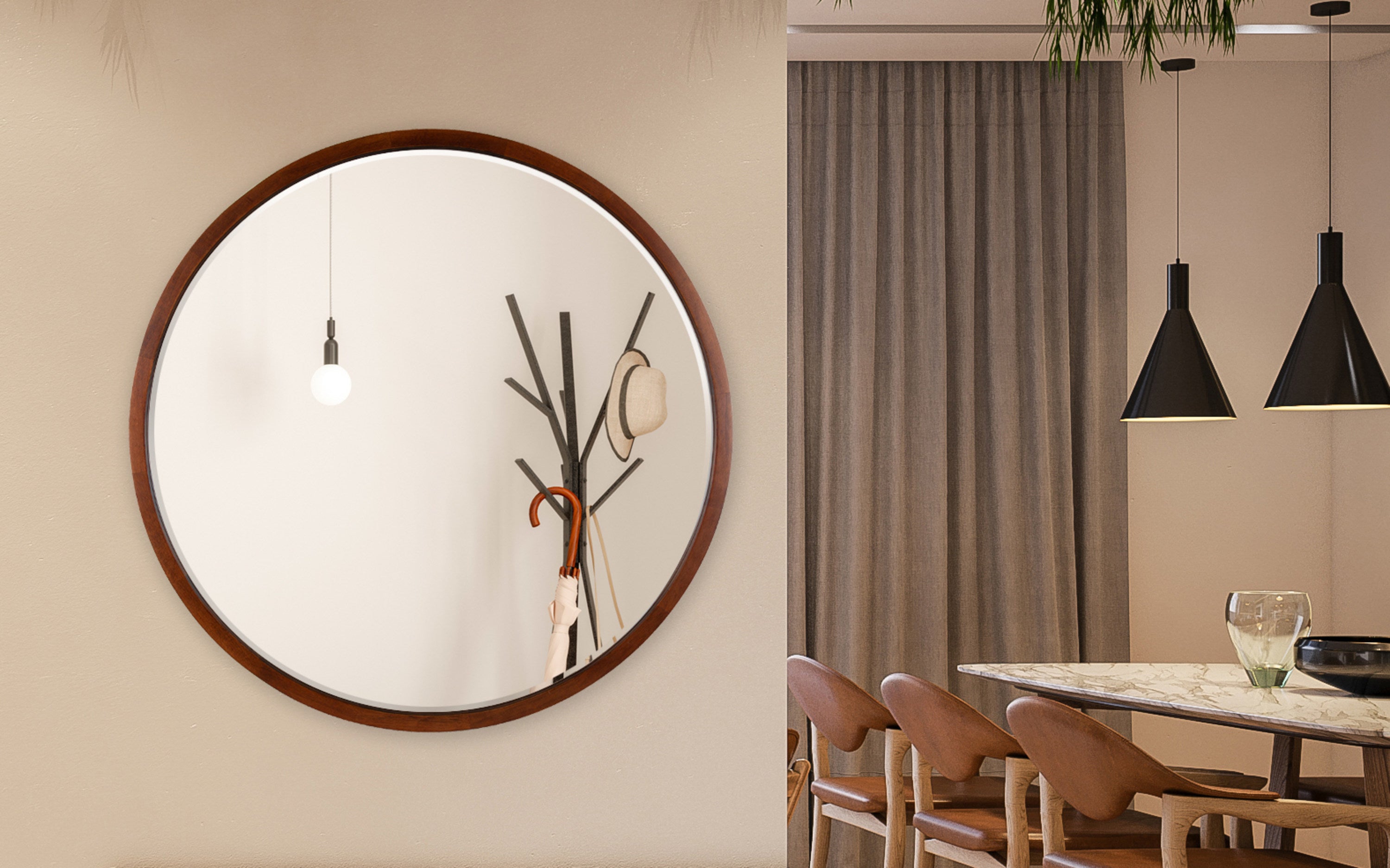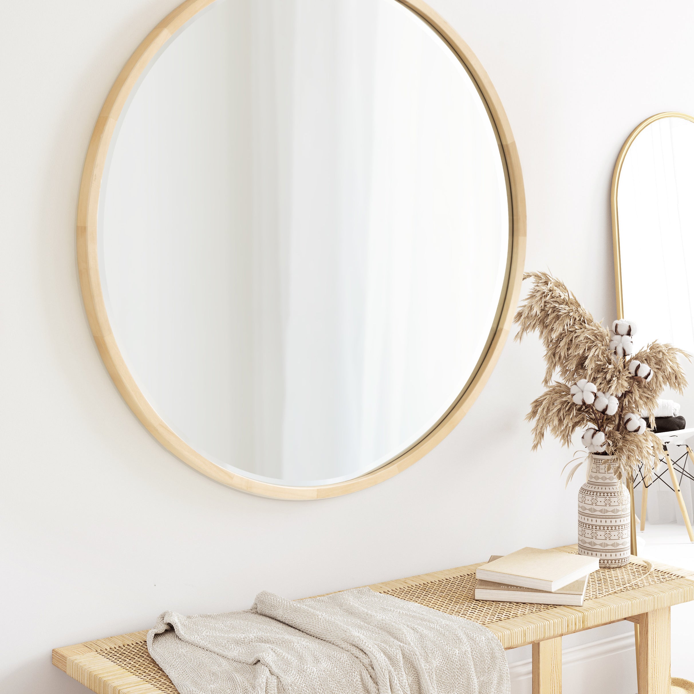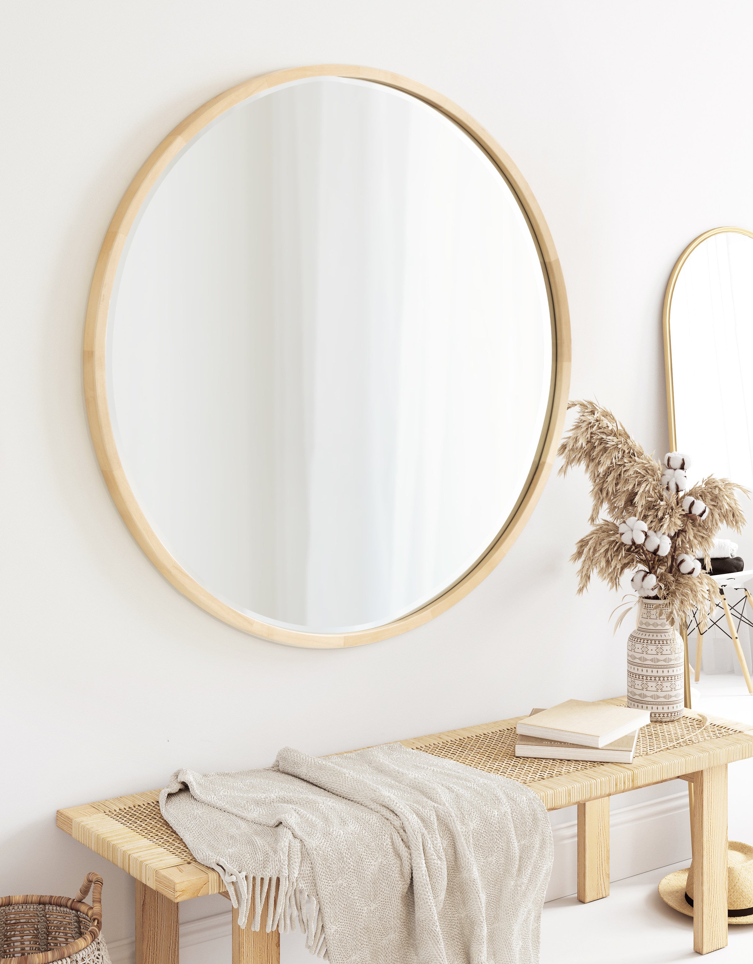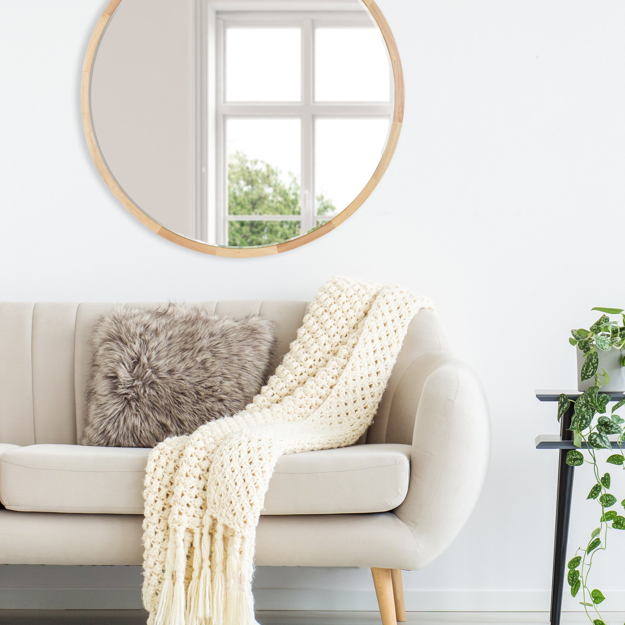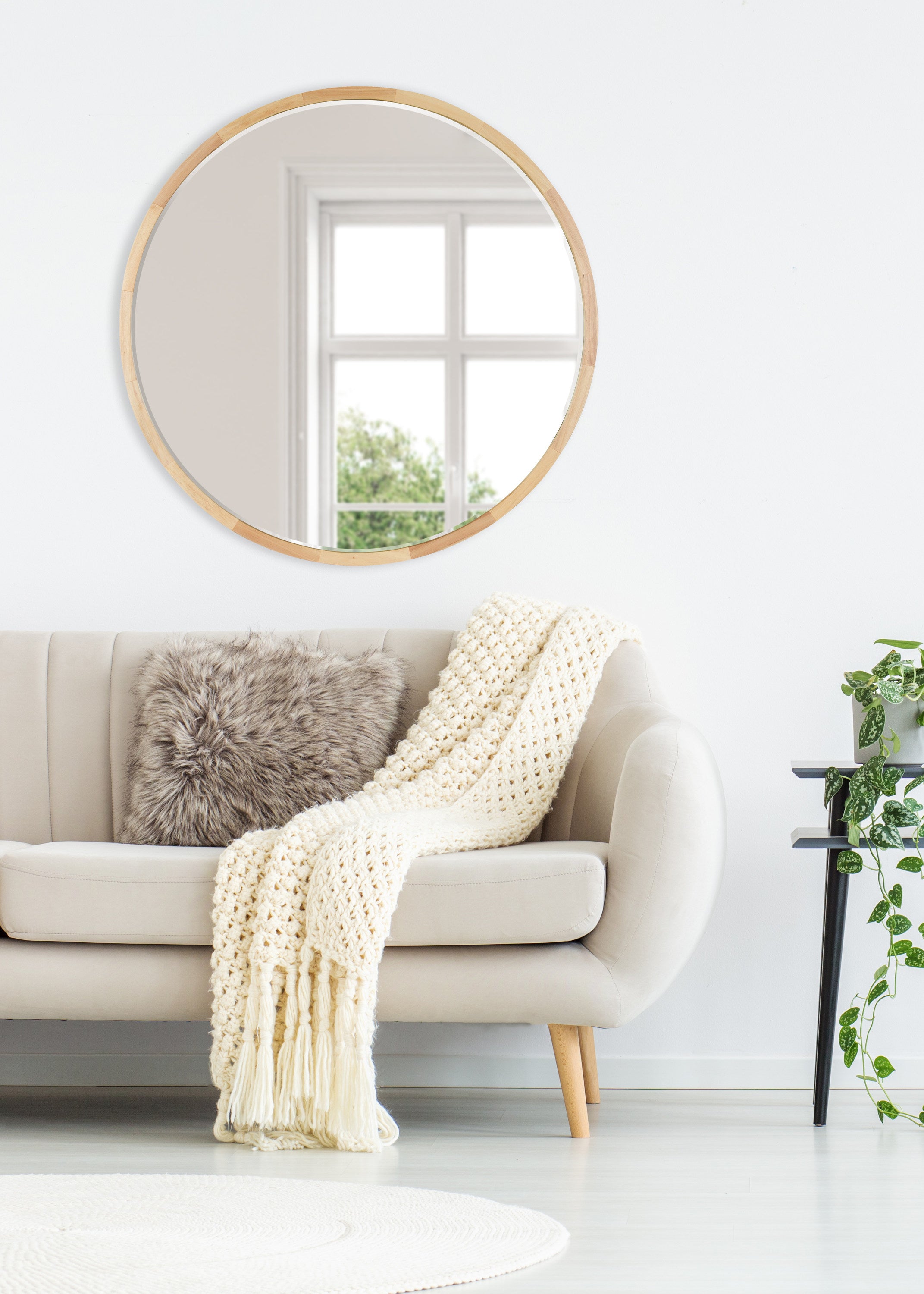 McLean Round Wood Framed Wall Mirror