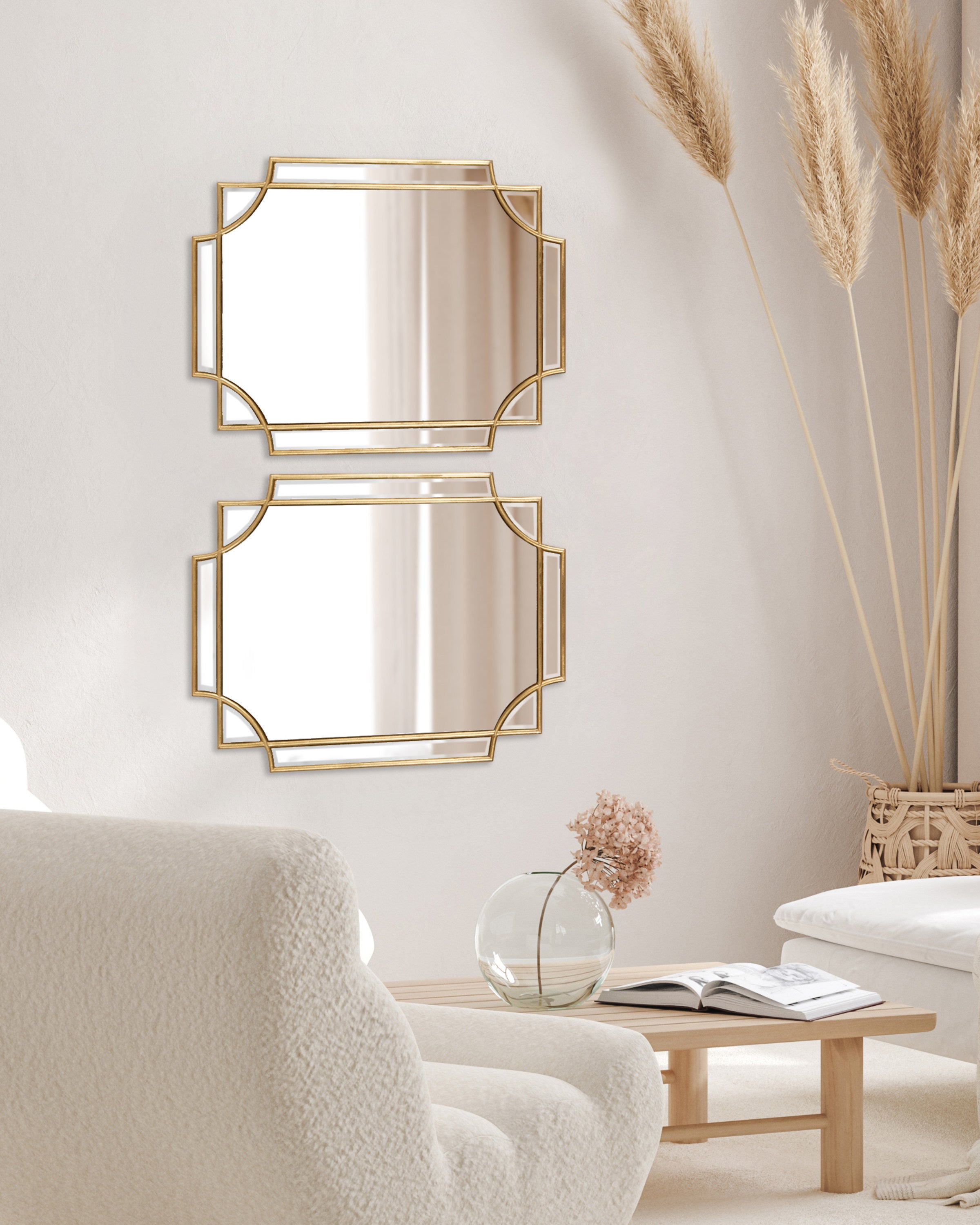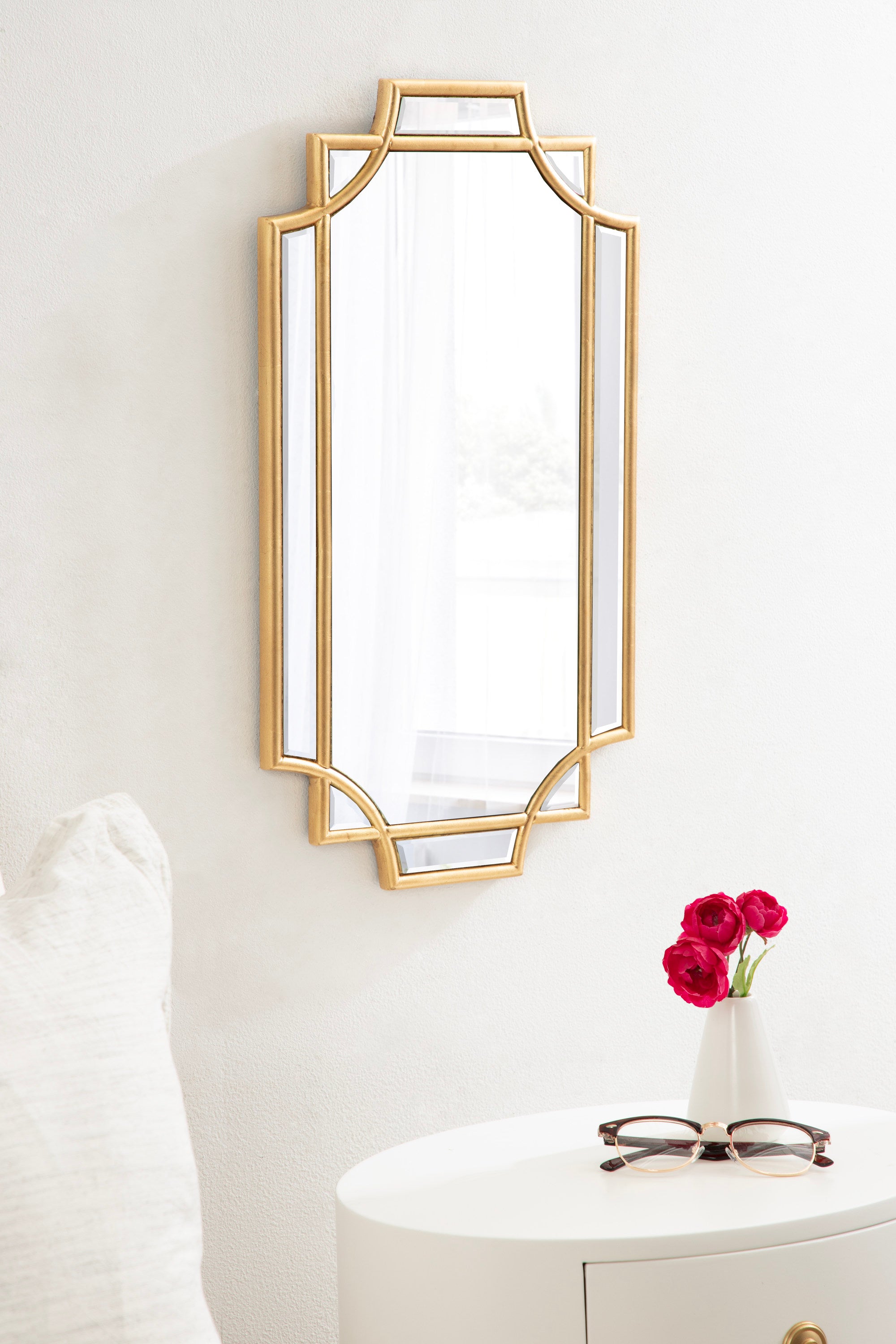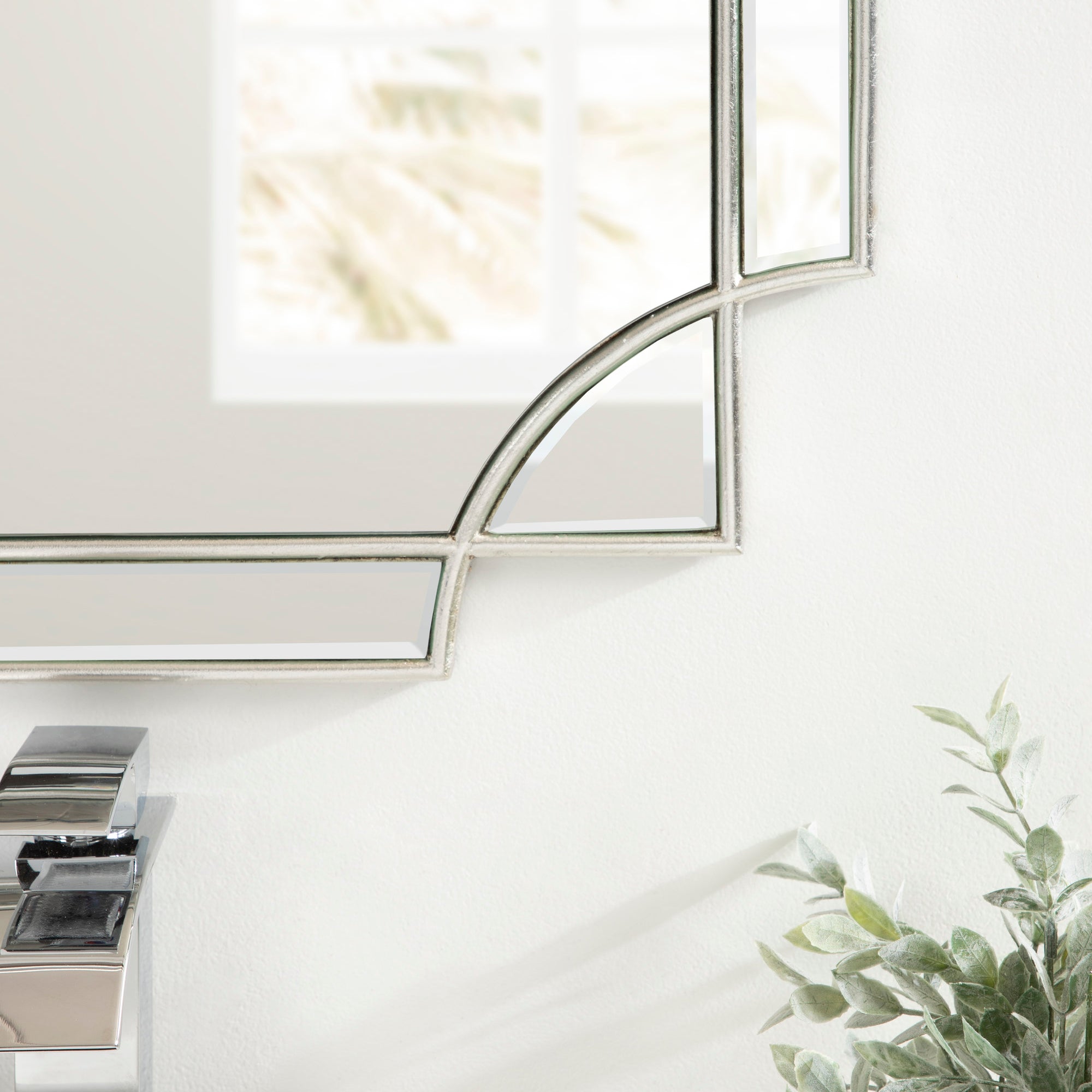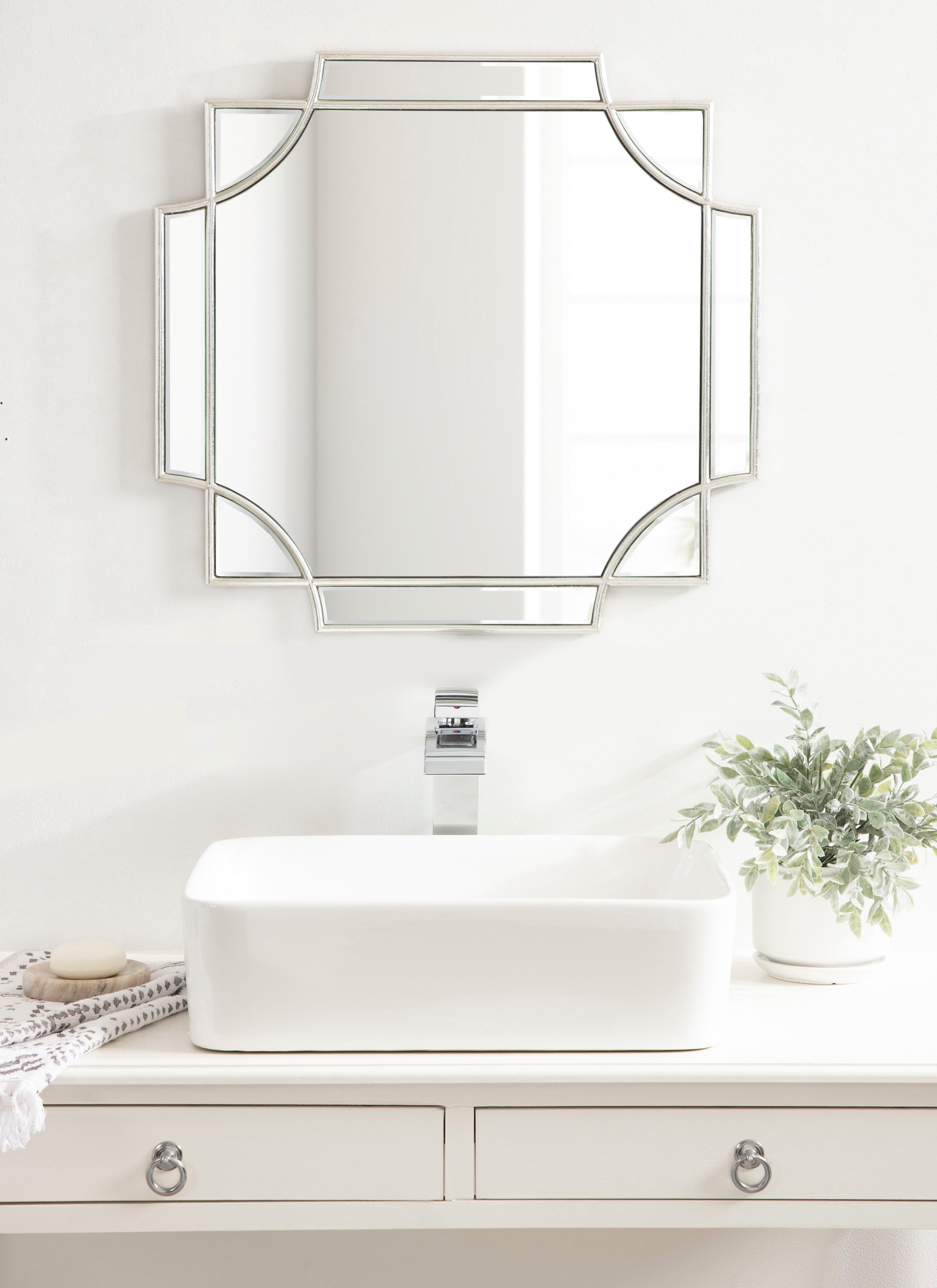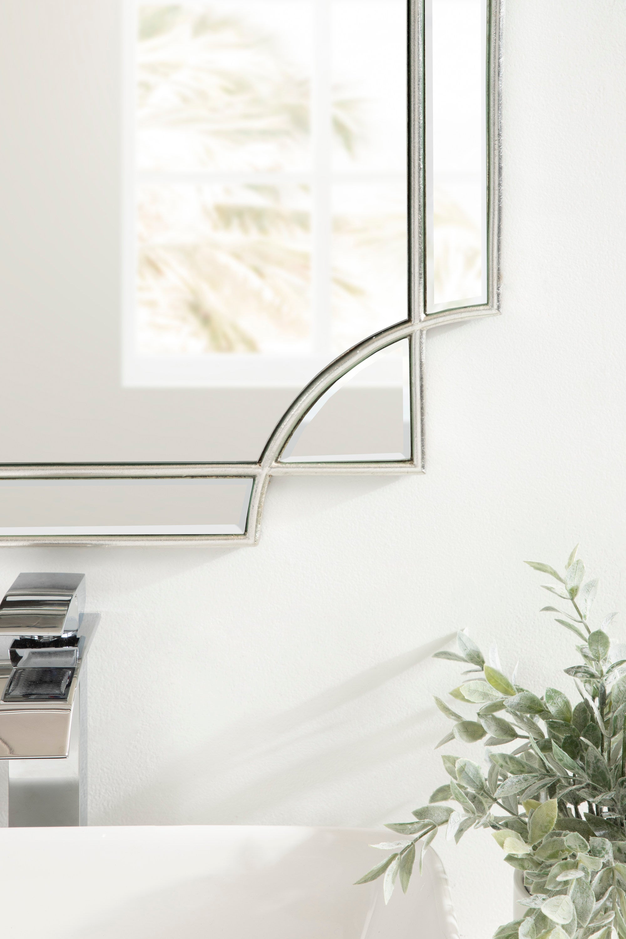Add a timeless wall mirror to your home in the Minuette wall mirror. Inspired by the glamorous decadence of the turn of the century, the Minuette wall mirror has an overlapping, interlocking geometric shape. Hang it in any room of the home with its timeless, clean white finish allowing it to stand proudly with the rest of your glam decor. Easily display this mirror in any upscale living room, bedroom, entryway, dining room, or bathroom.