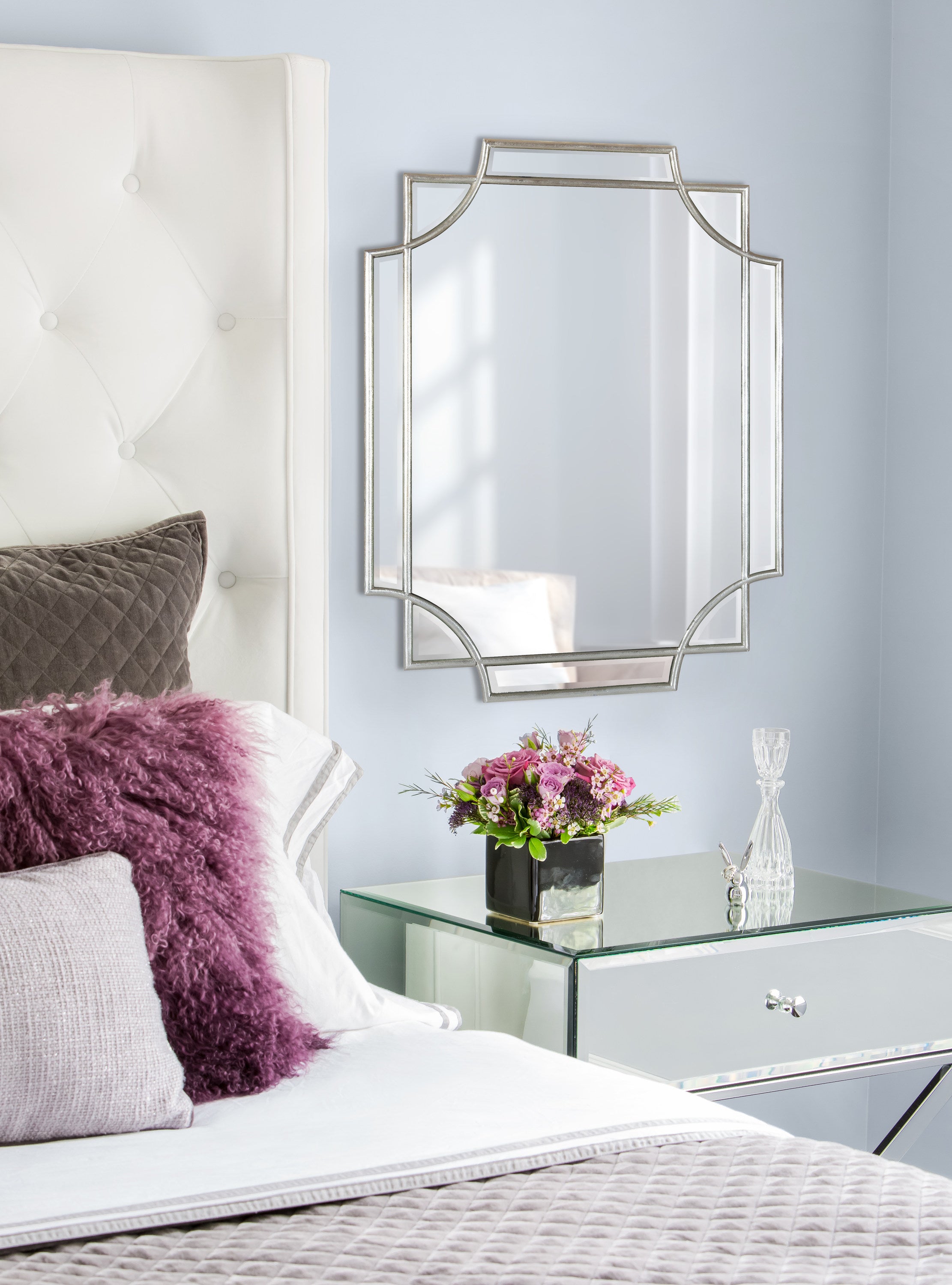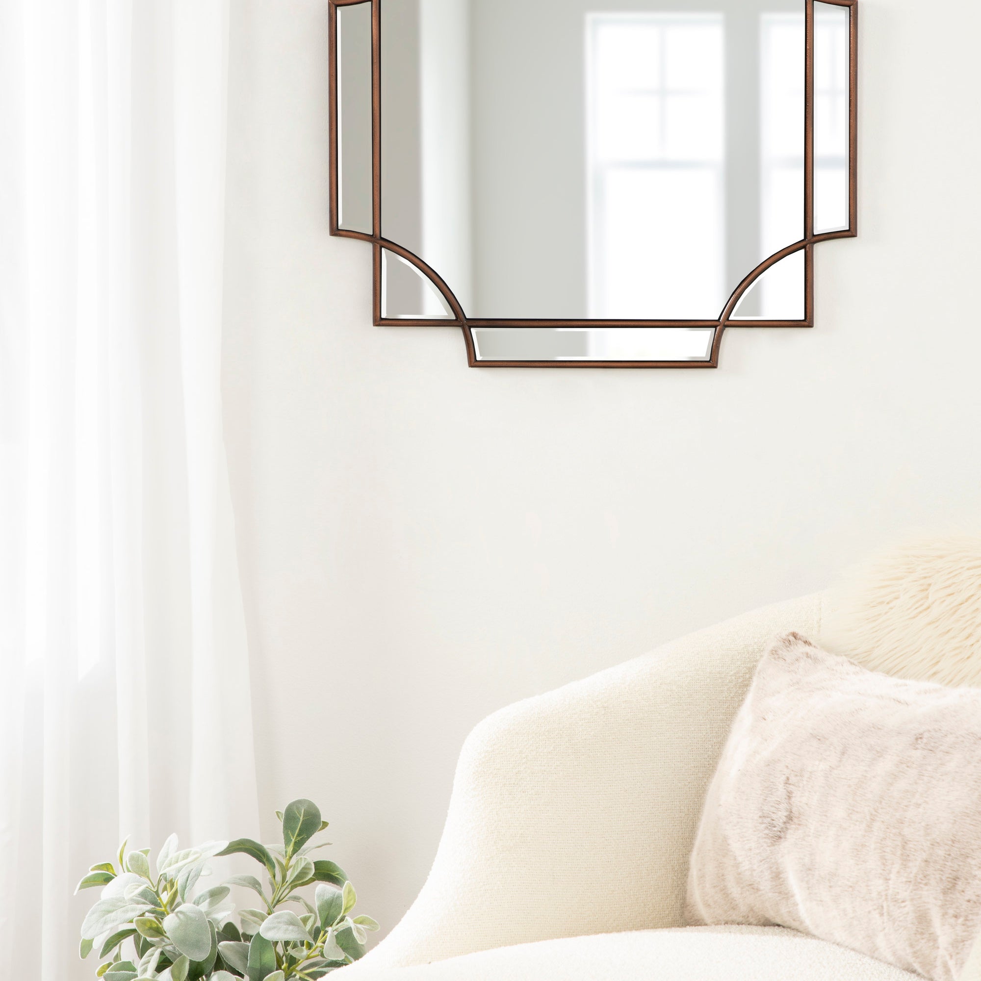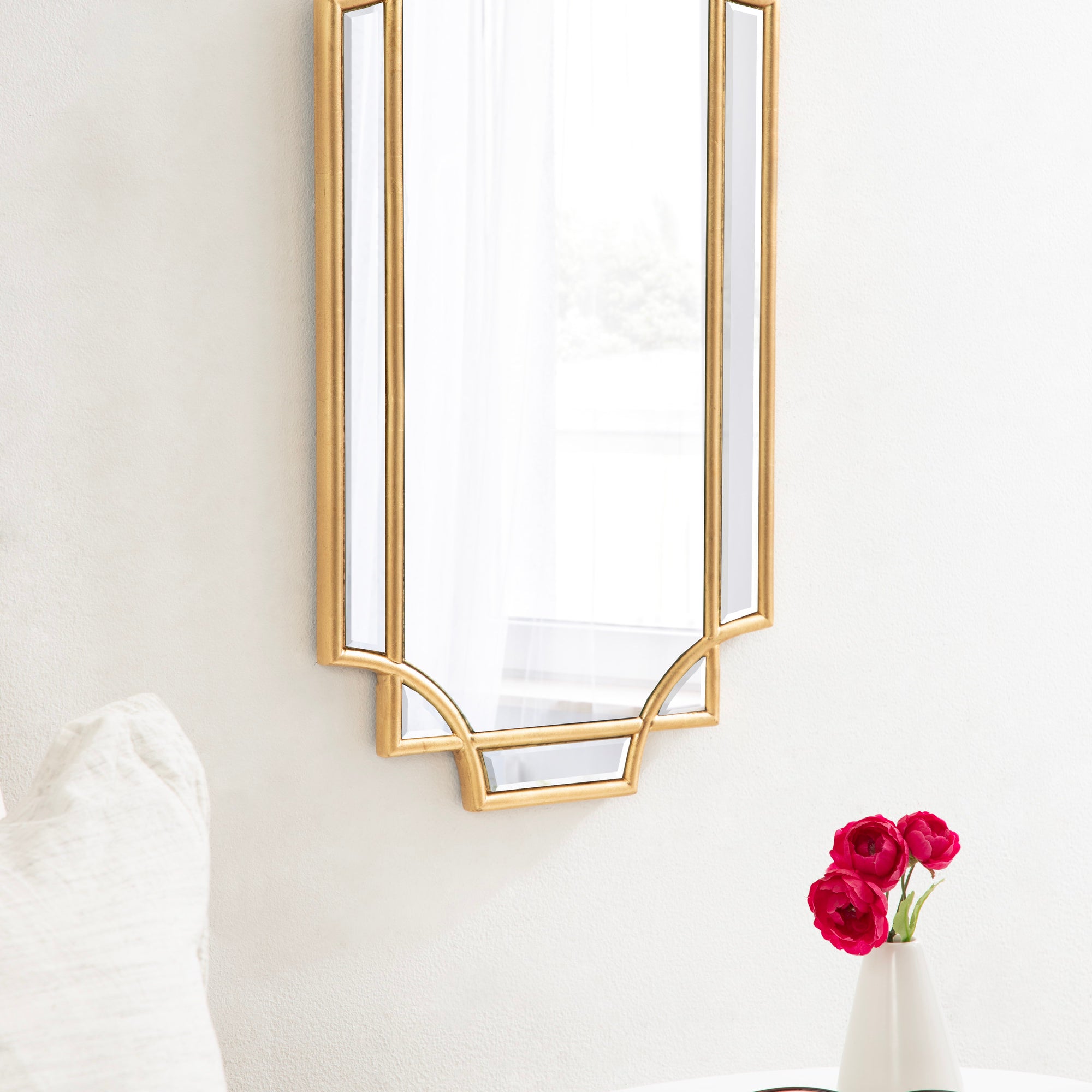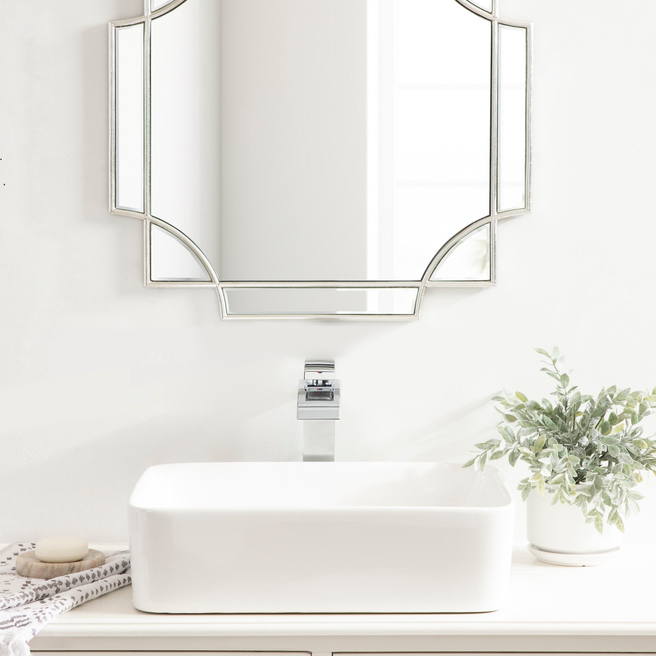 Add a timeless wall mirror to your home in the Minuette wall mirror. Inspired by the glamorous decadence of the turn of the century, the Minuette wall mirror has an overlapping, interlocking geometric shape. Hang it in any room of the home with its timeless, clean white finish allowing it to stand proudly with the rest of your glam decor. Easily display this mirror in any upscale living room, bedroom, entryway, dining room, or bathroom.