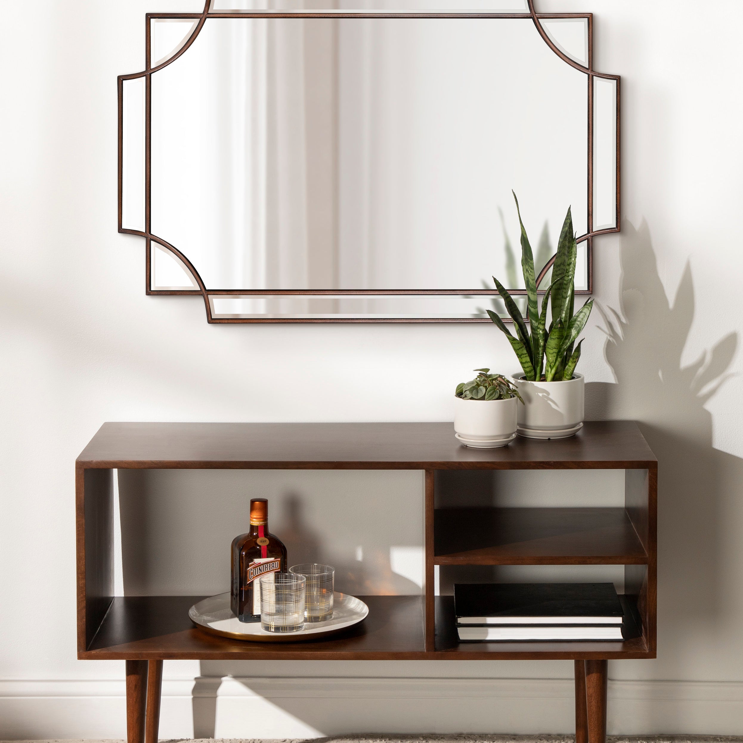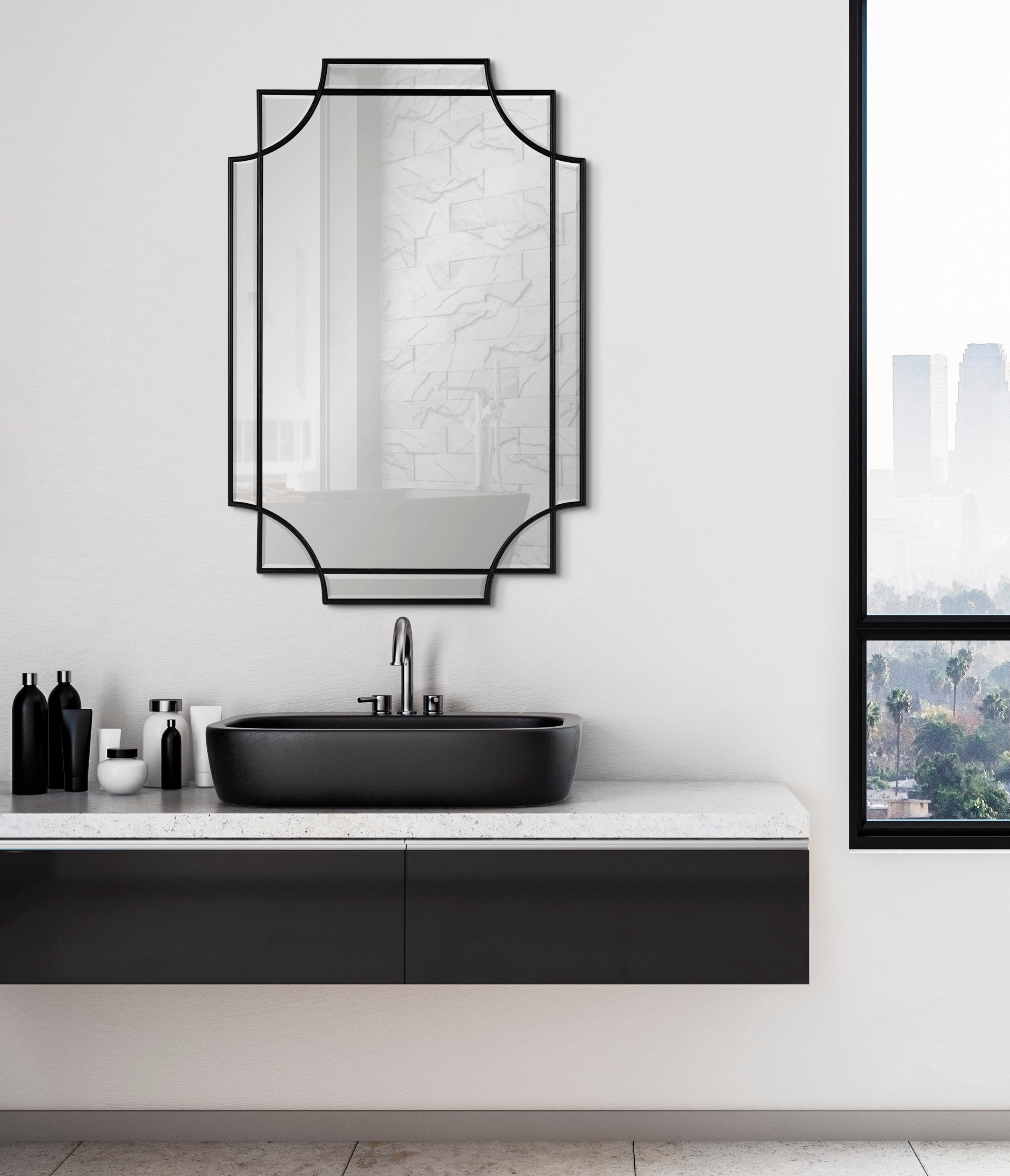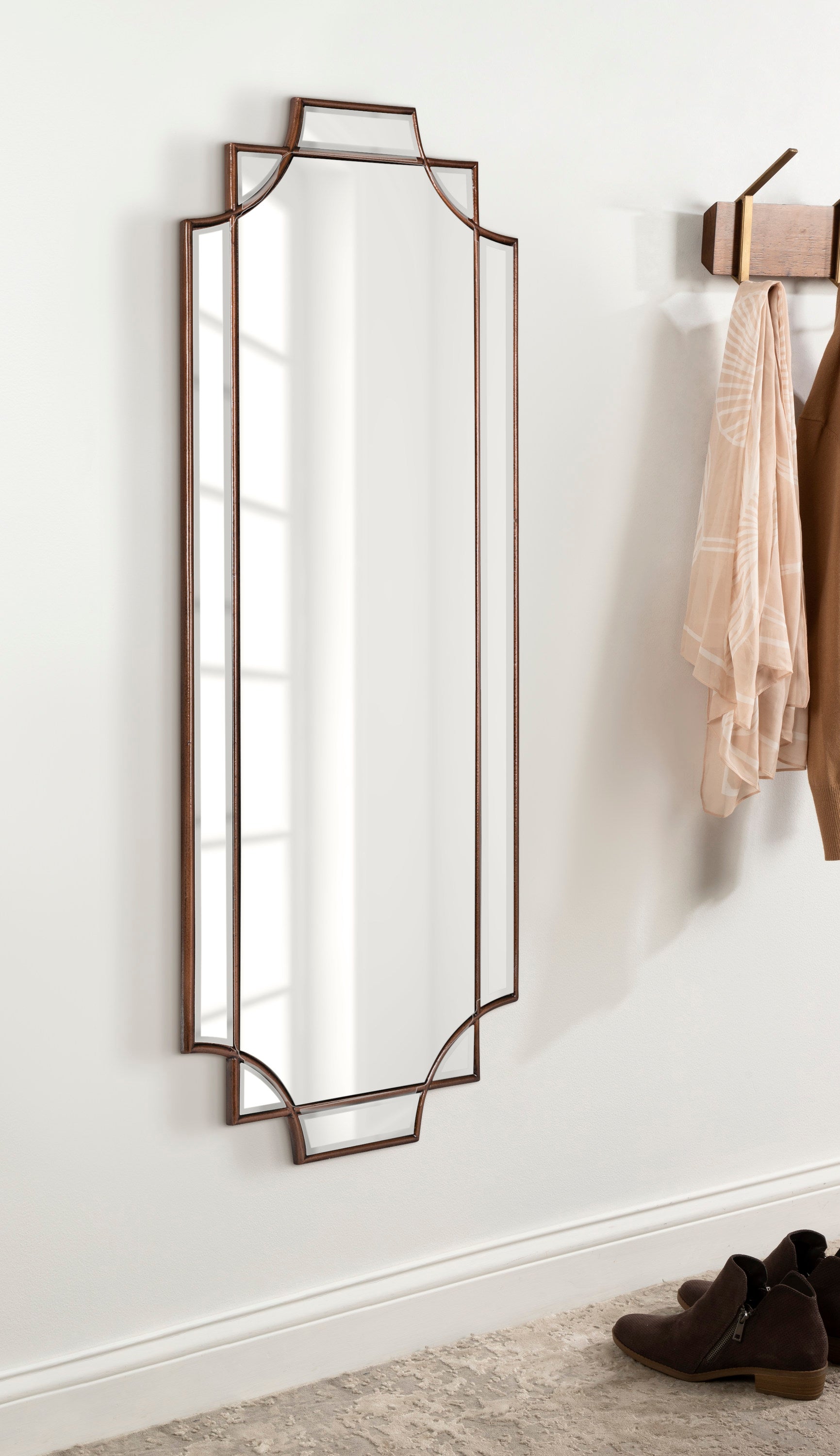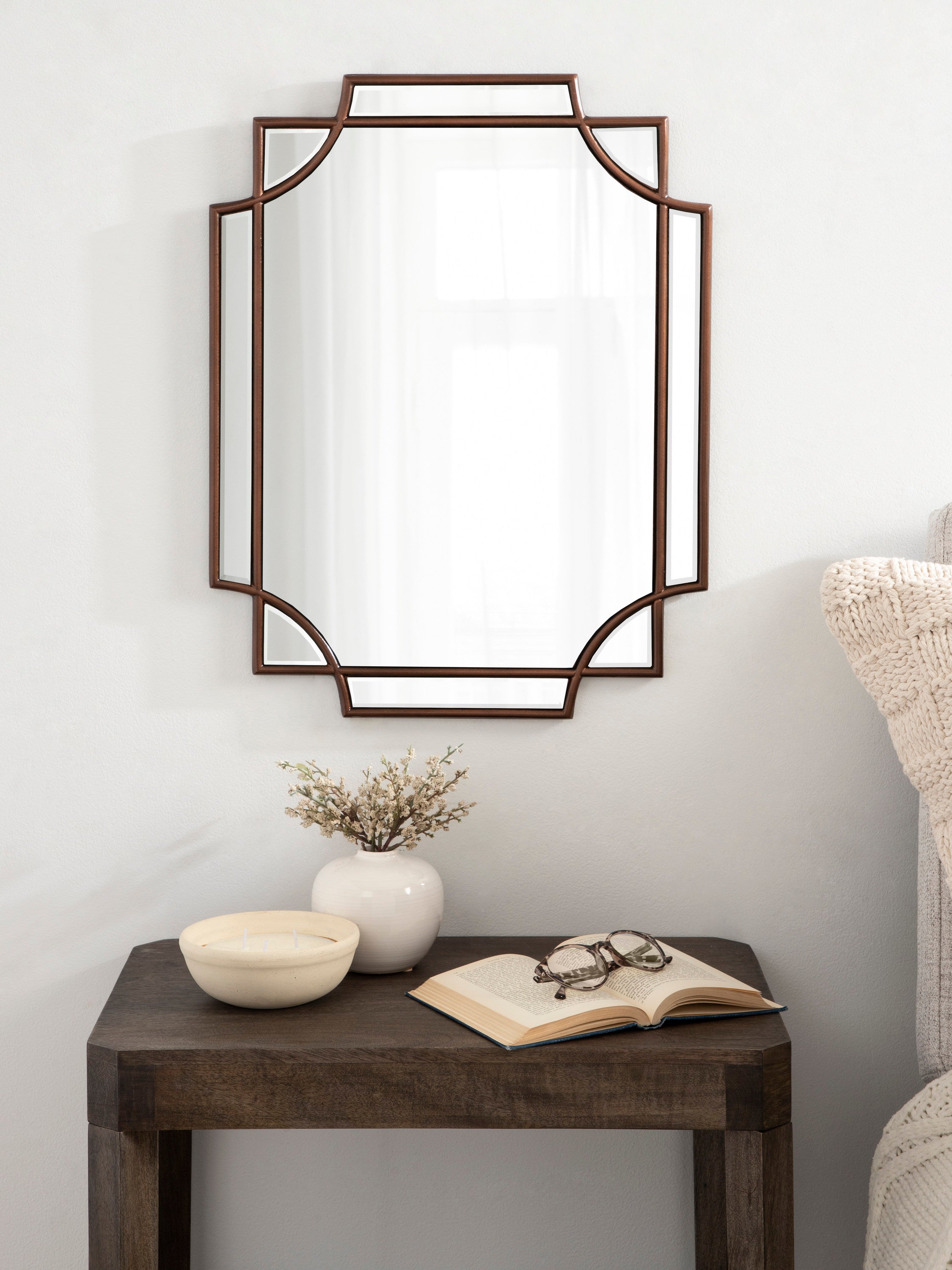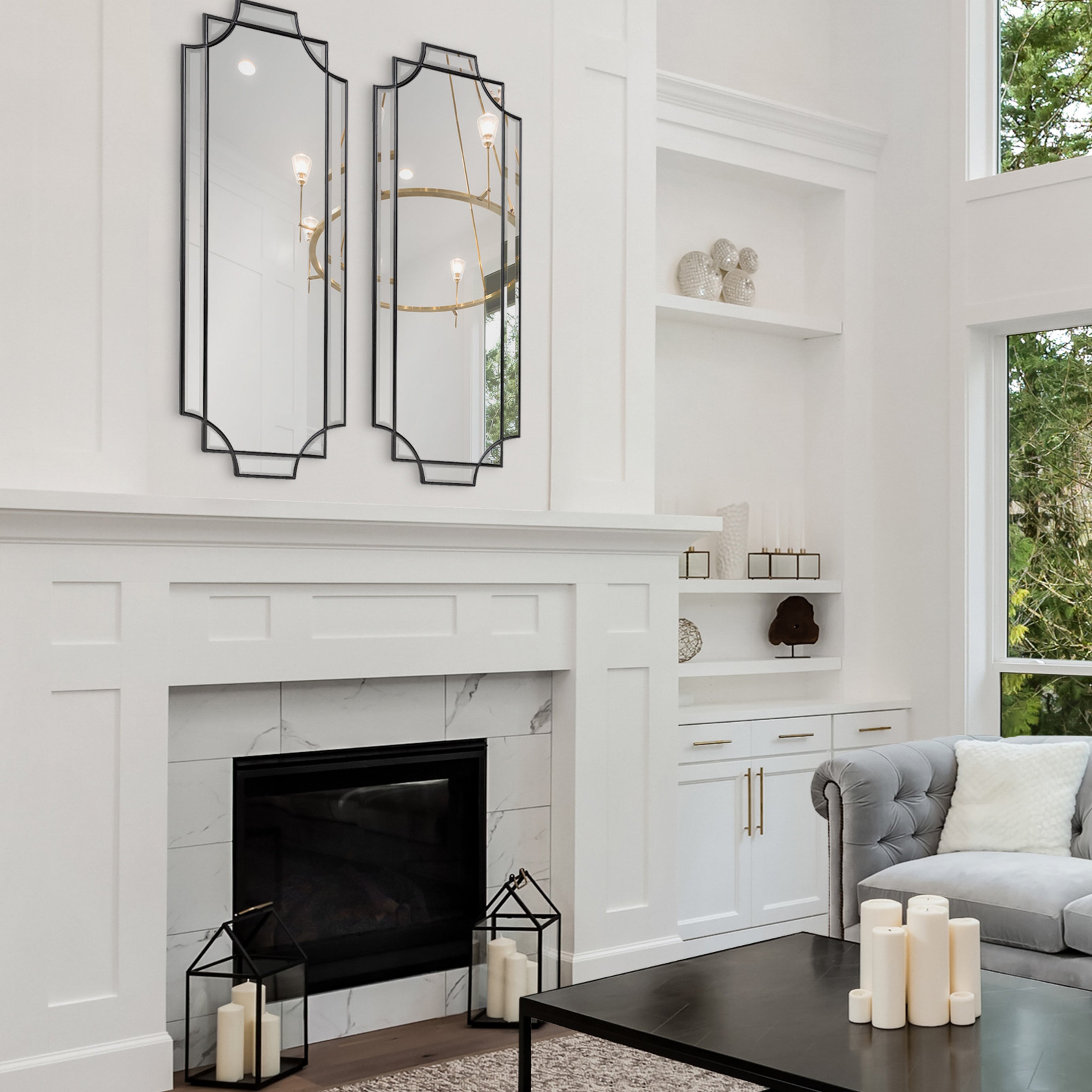 Add a timeless wall mirror to your home in the Minuette wall mirror. Inspired by the glamorous decadence of the turn of the century, the Minuette wall mirror has an overlapping, interlocking geometric shape. Hang it in any room of the home with its timeless, clean white finish allowing it to stand proudly with the rest of your glam decor. Easily display this mirror in any upscale living room, bedroom, entryway, dining room, or bathroom.