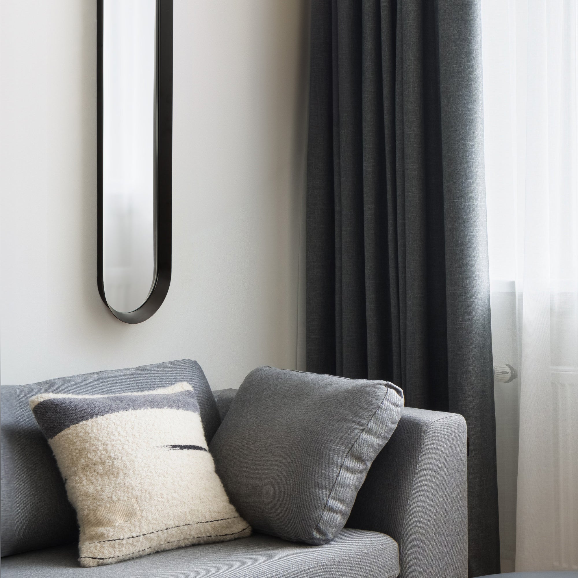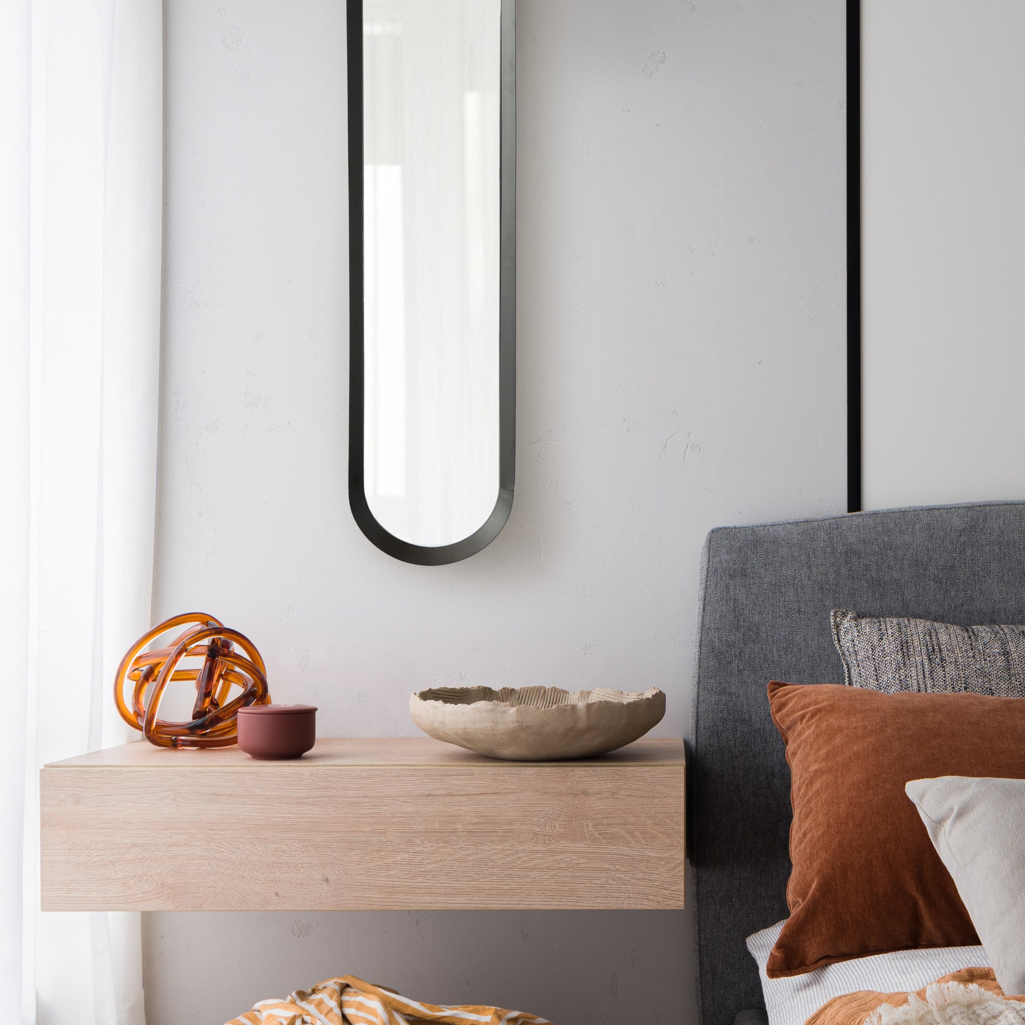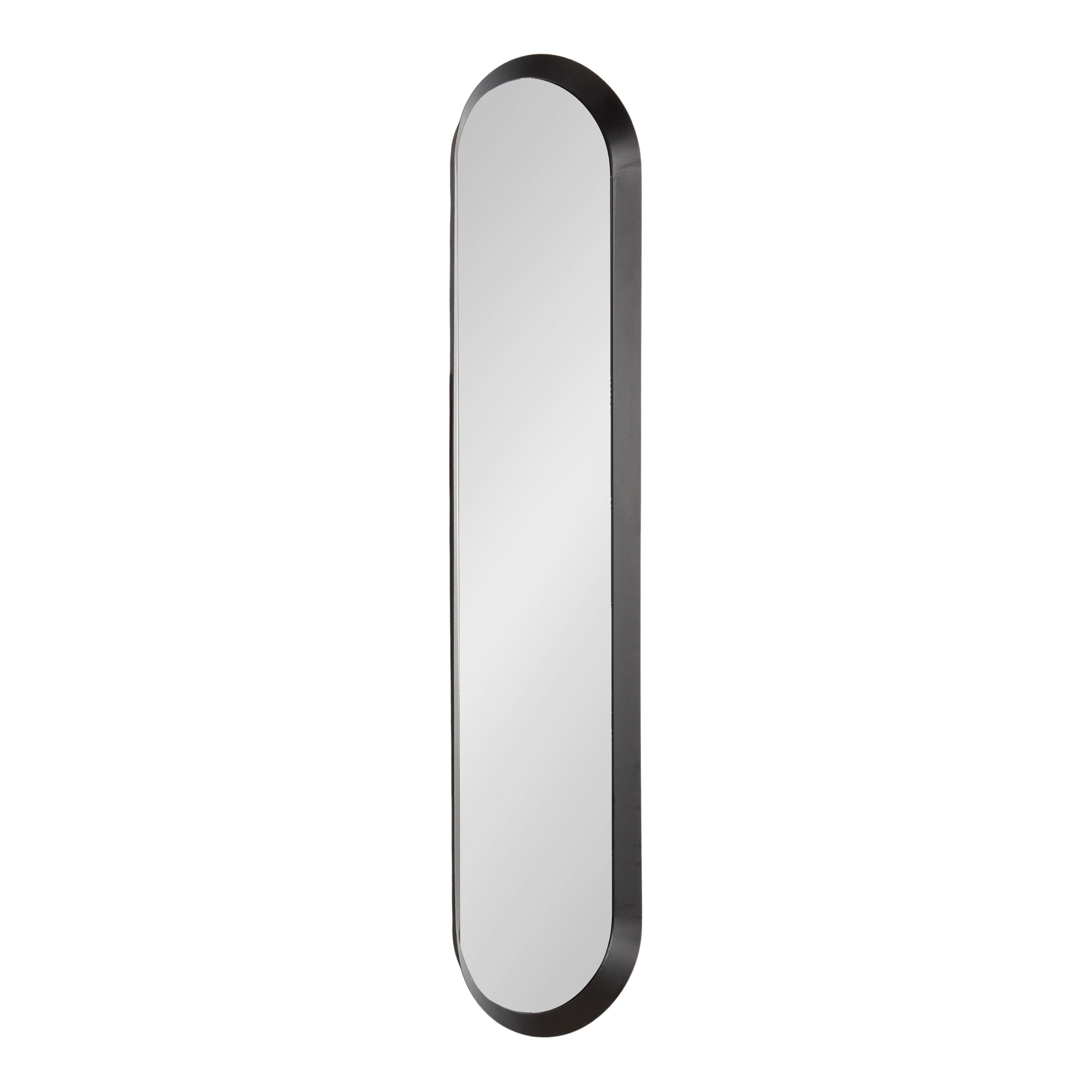 The Niya wall mirror communicates a glam yet sophisticated decor theme on your wall. It features a slim capsule shape with a unique scooped profile on the frame. The refined finish heightens this elegance, taking cues from principles of traditional design. The frame itself was made from metal, making it a sturdy, resilient mirror that is built to last. The Niya also looks fantastic as a decorative mirror as part of a modern gallery wall or as an accent elsewhere in your room. Its skinny mirror size allows it to seamlessly hang in multiples, creating an expansive wall display. Hang this mirror in a slim entryway wall space or as a unique bathroom mirror accent to give your space a much-needed addition of light and dimension.