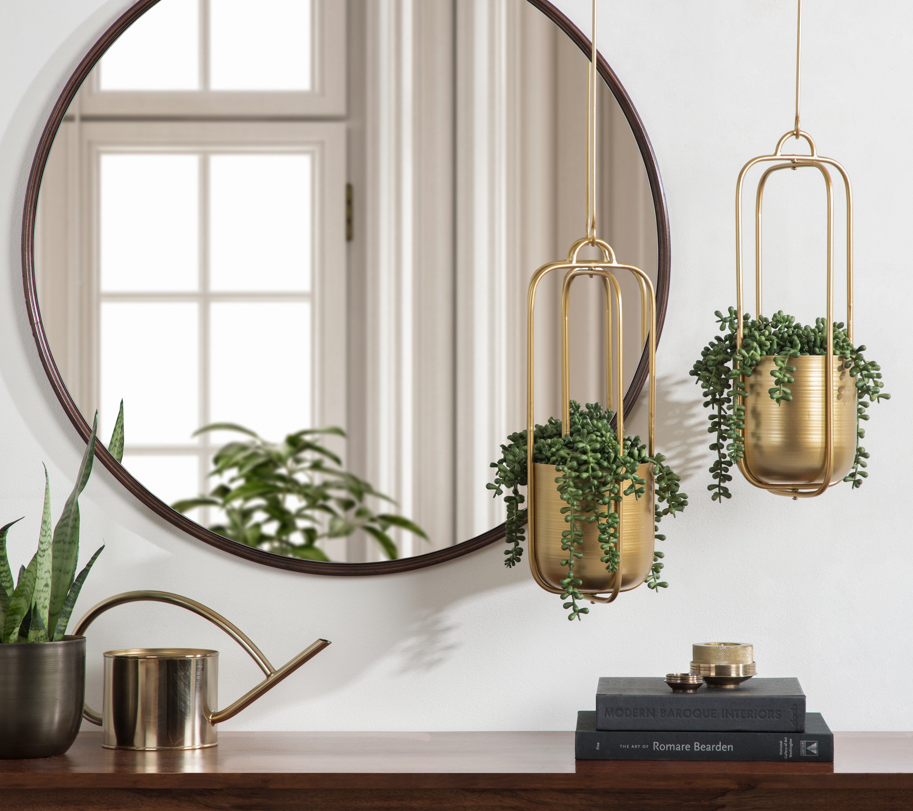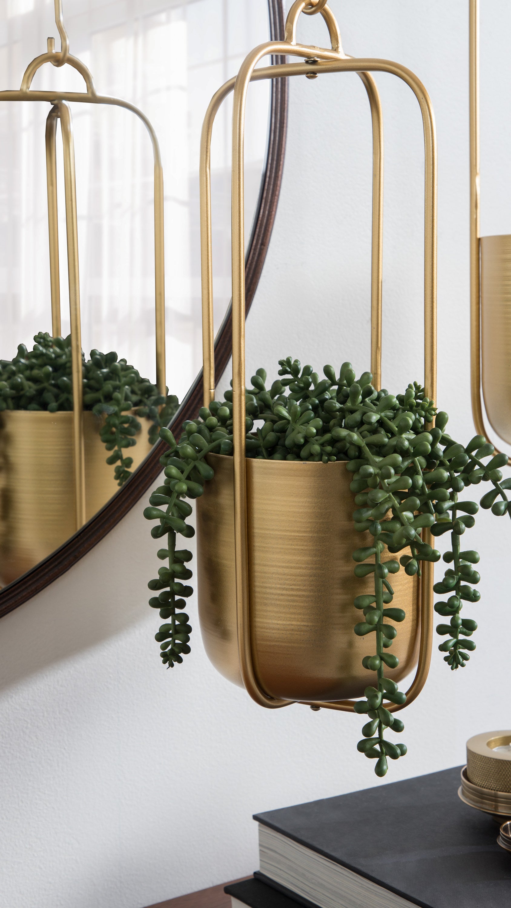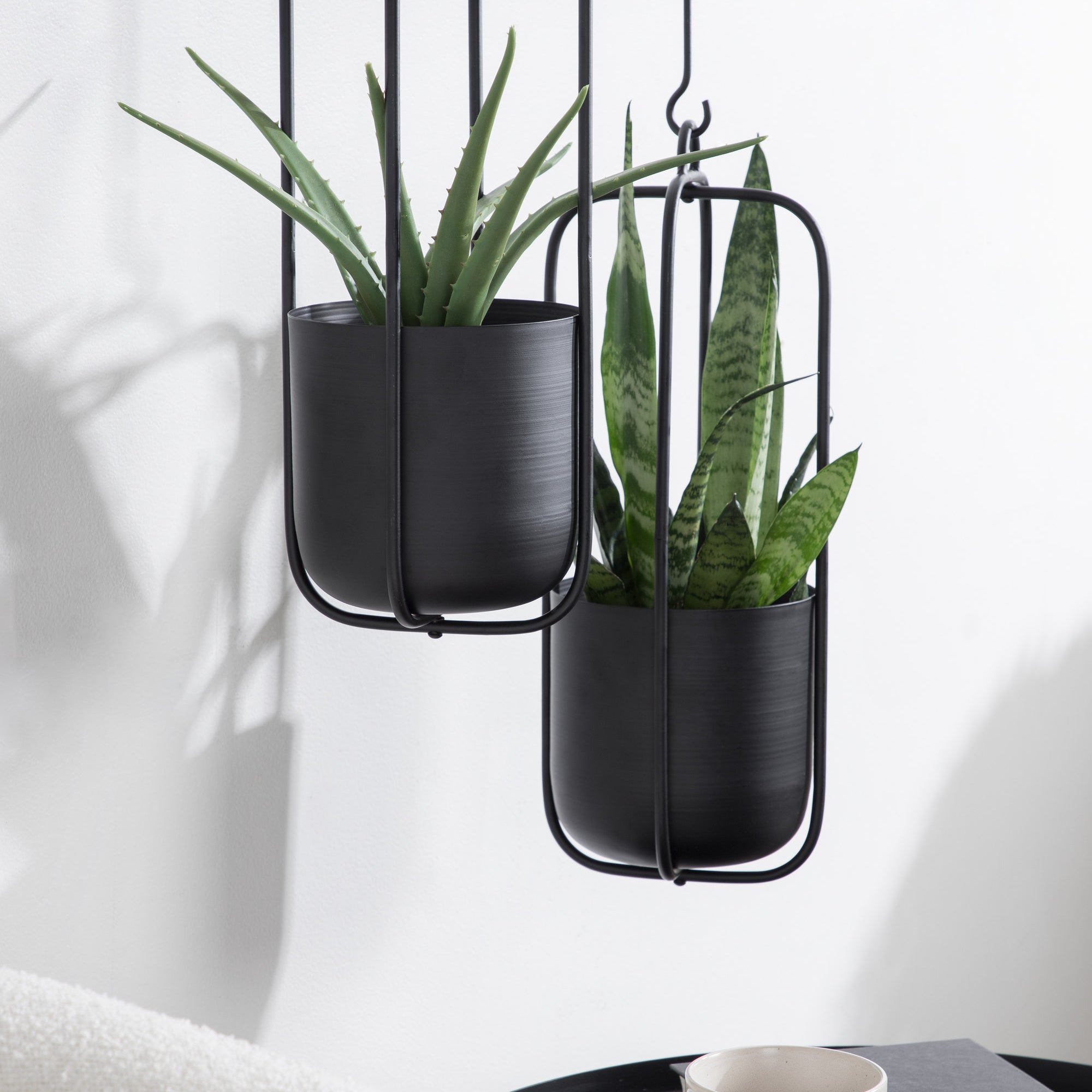 Decorate your home with modern aesthetics and lovely greenery with the Nobrey hanging planters. These planters feature a pop-up frame with a pot that sits inside them, perfect for your favorite small succulent or faux plant. Each Nobrey planter comes with a hanging rod with a distinct size: the smaller Nobrey hanging rod is 20 inches long, while the larger rod is 26 inches long. These graduated sizes allow you to create your dynamic plant display that hangs from the wall. They're perfect for display as one set or spread throughout your home for a cohesive decor theme.