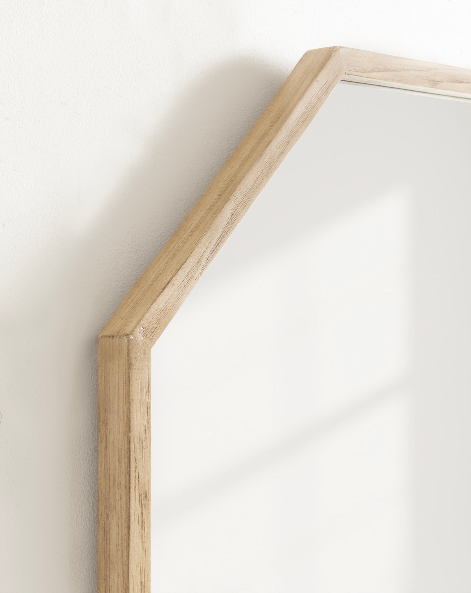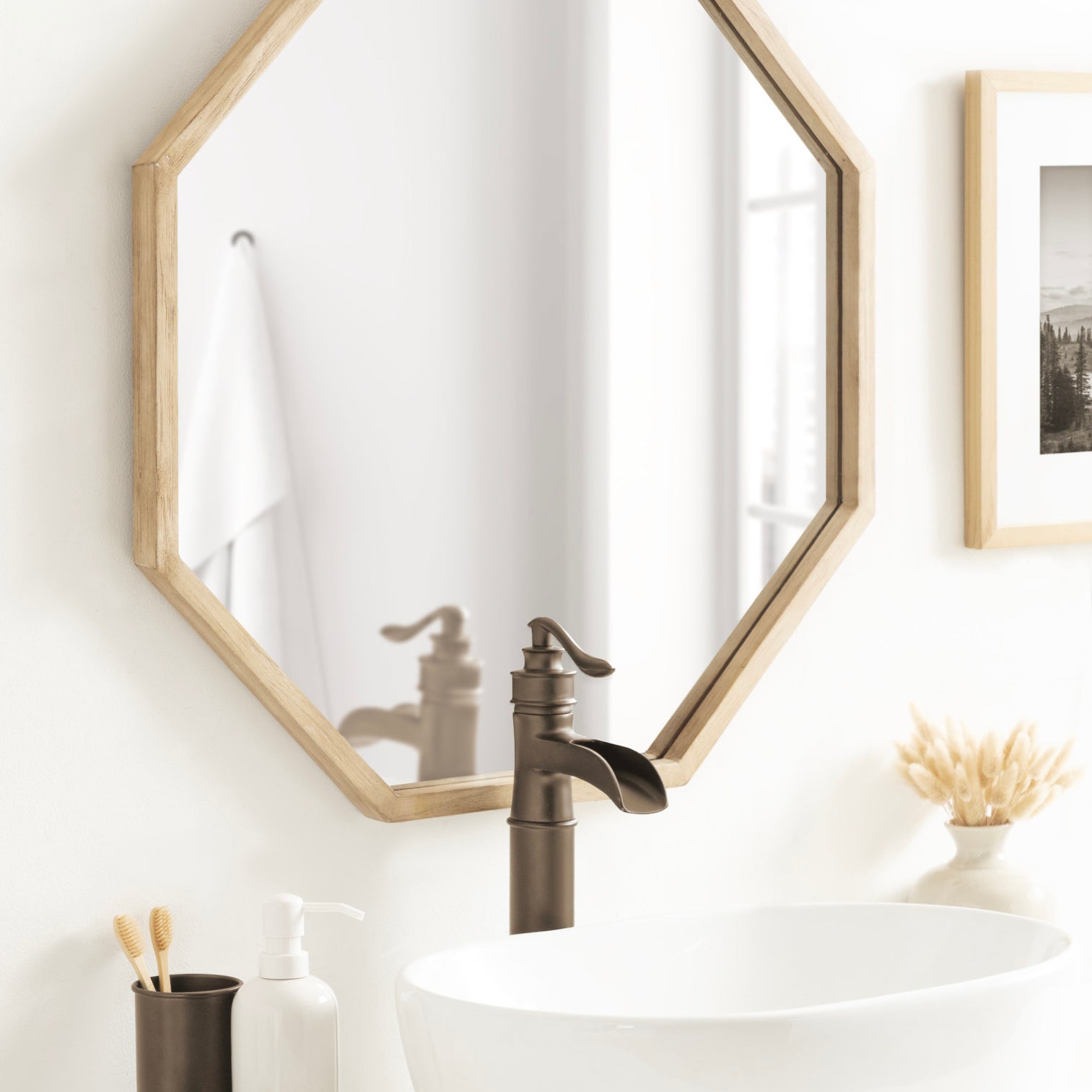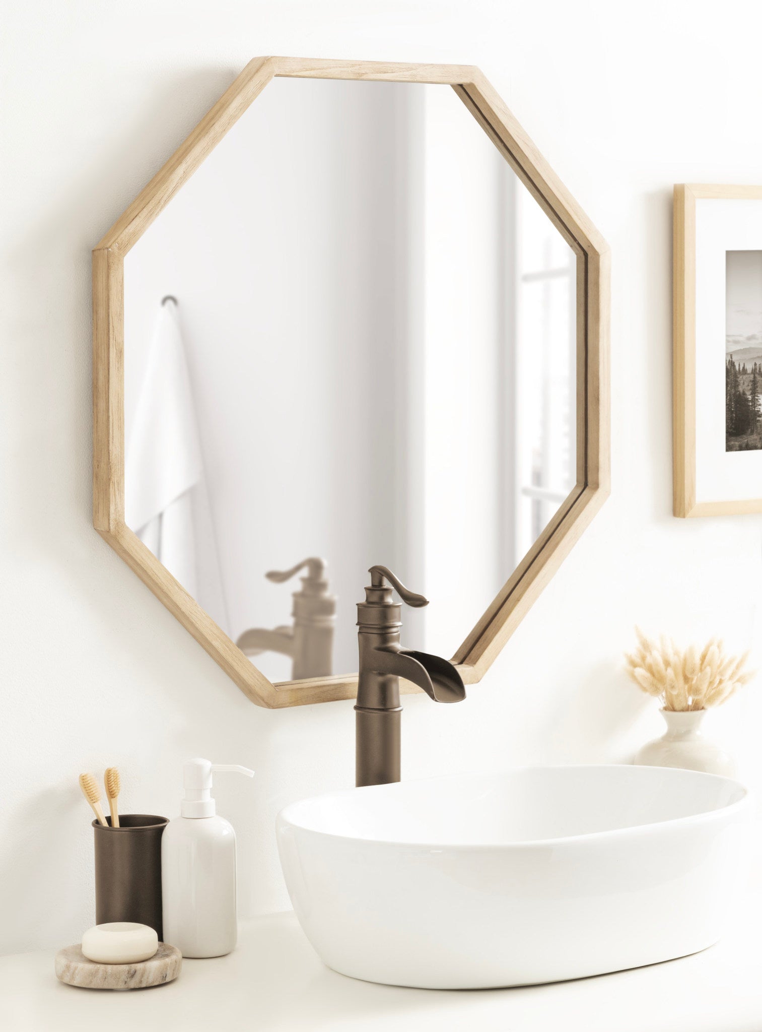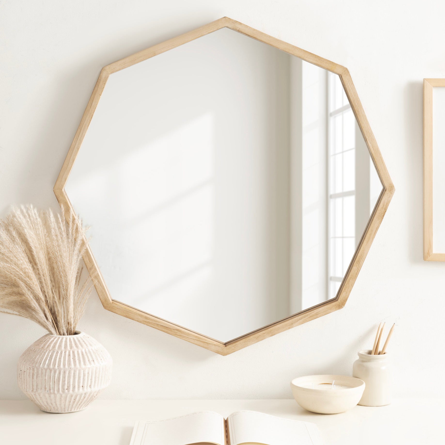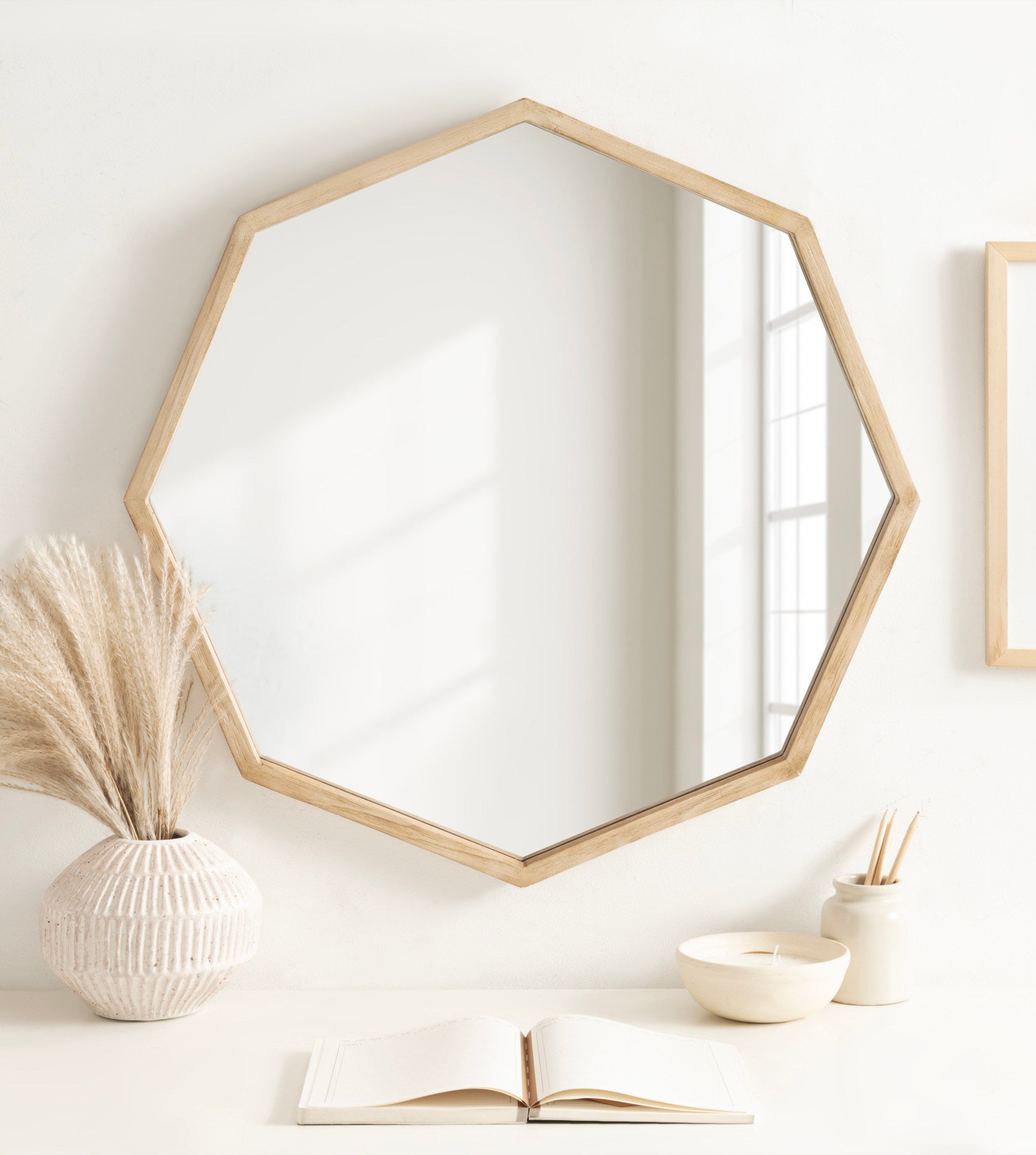 Crafted with meticulous attention to detail, this octagon mirror adds character and depth to any space. The octagon shape breaks away from traditional rectangular mirrors, making it a captivating focal point on any wall. This octagon wall mirror is not only aesthetically pleasing but also functional. It reflects light and opens up the room, making it appear larger and brighter. Hang it in your living room, bedroom, hallway, or entryway to elevate the ambiance and create an inviting atmosphere.