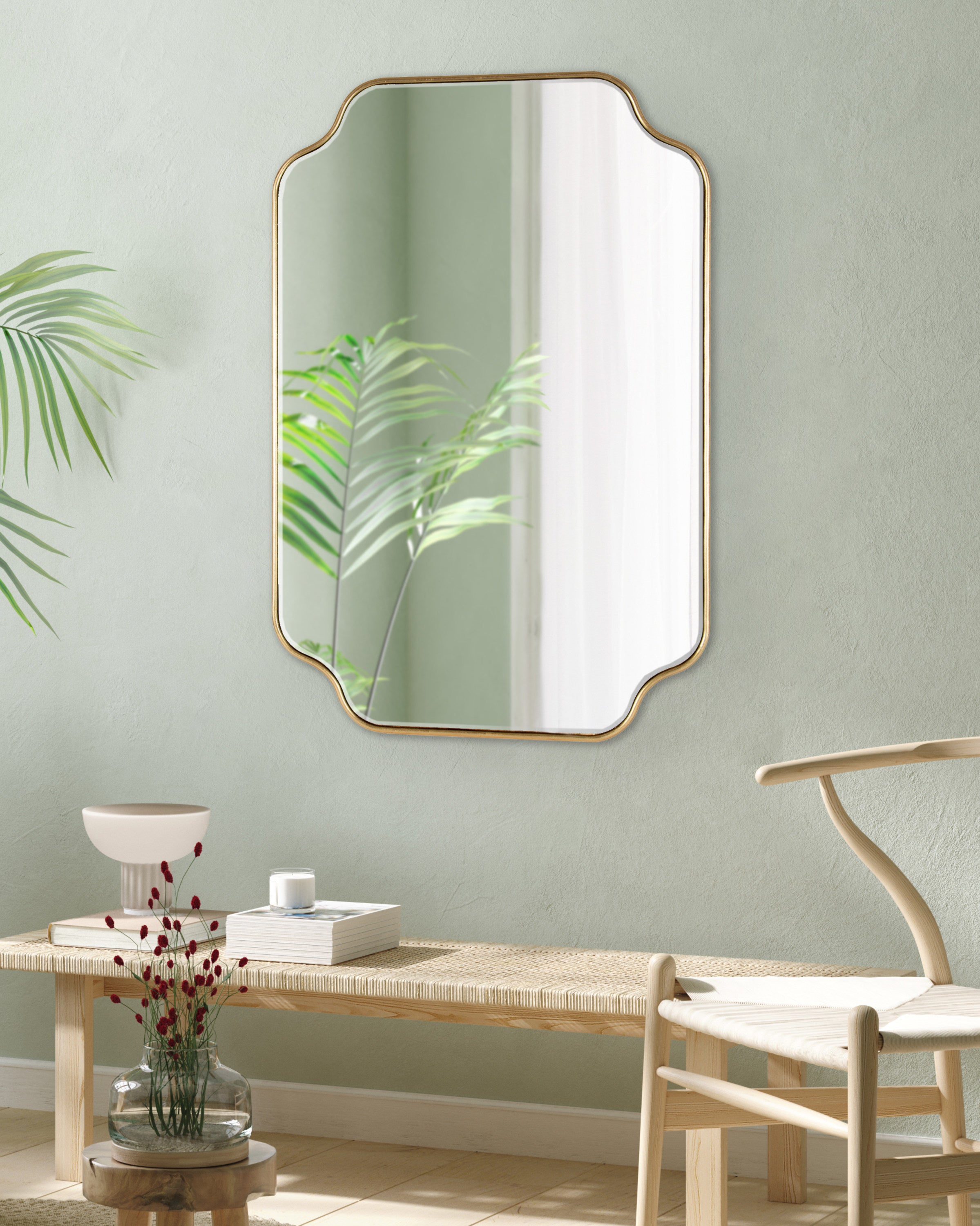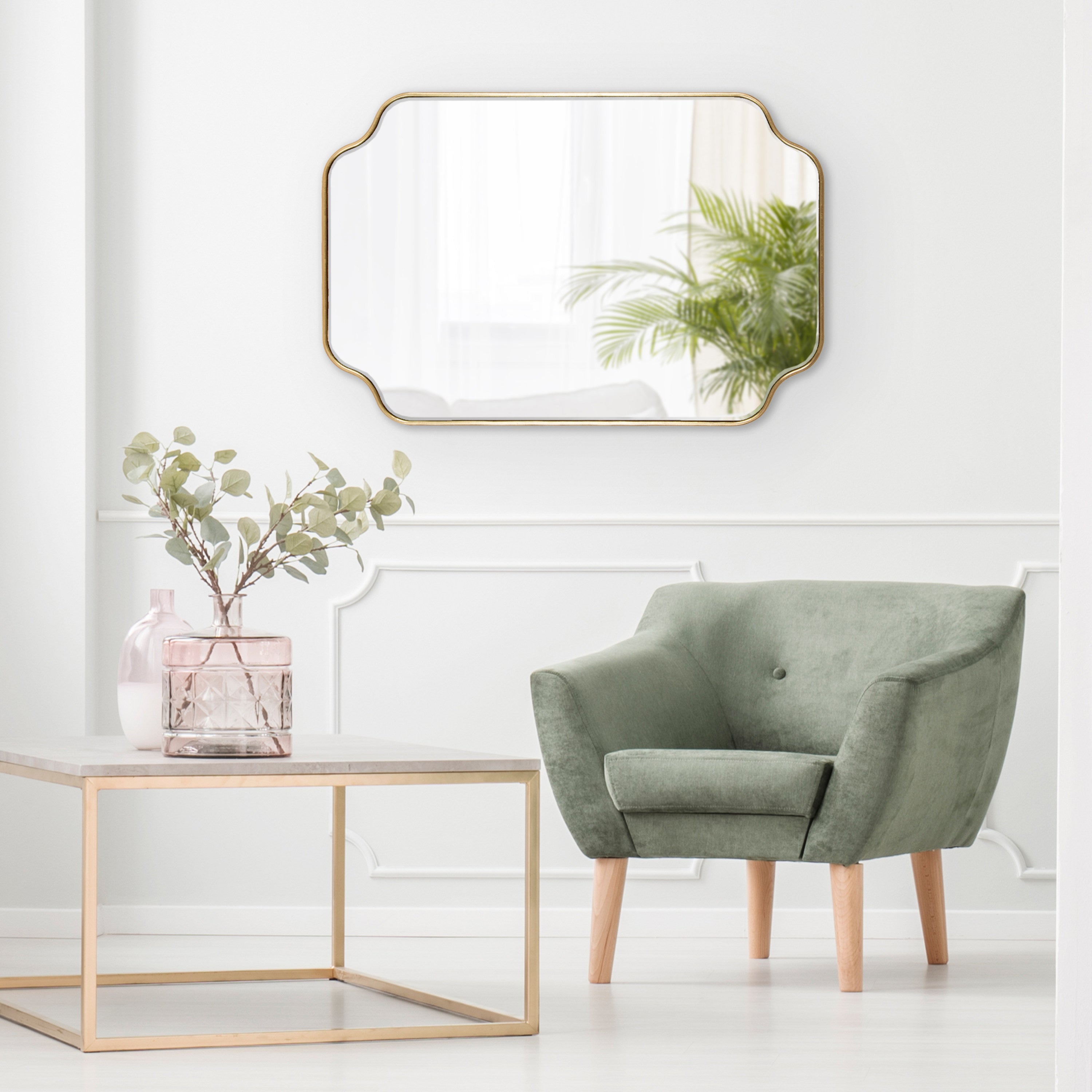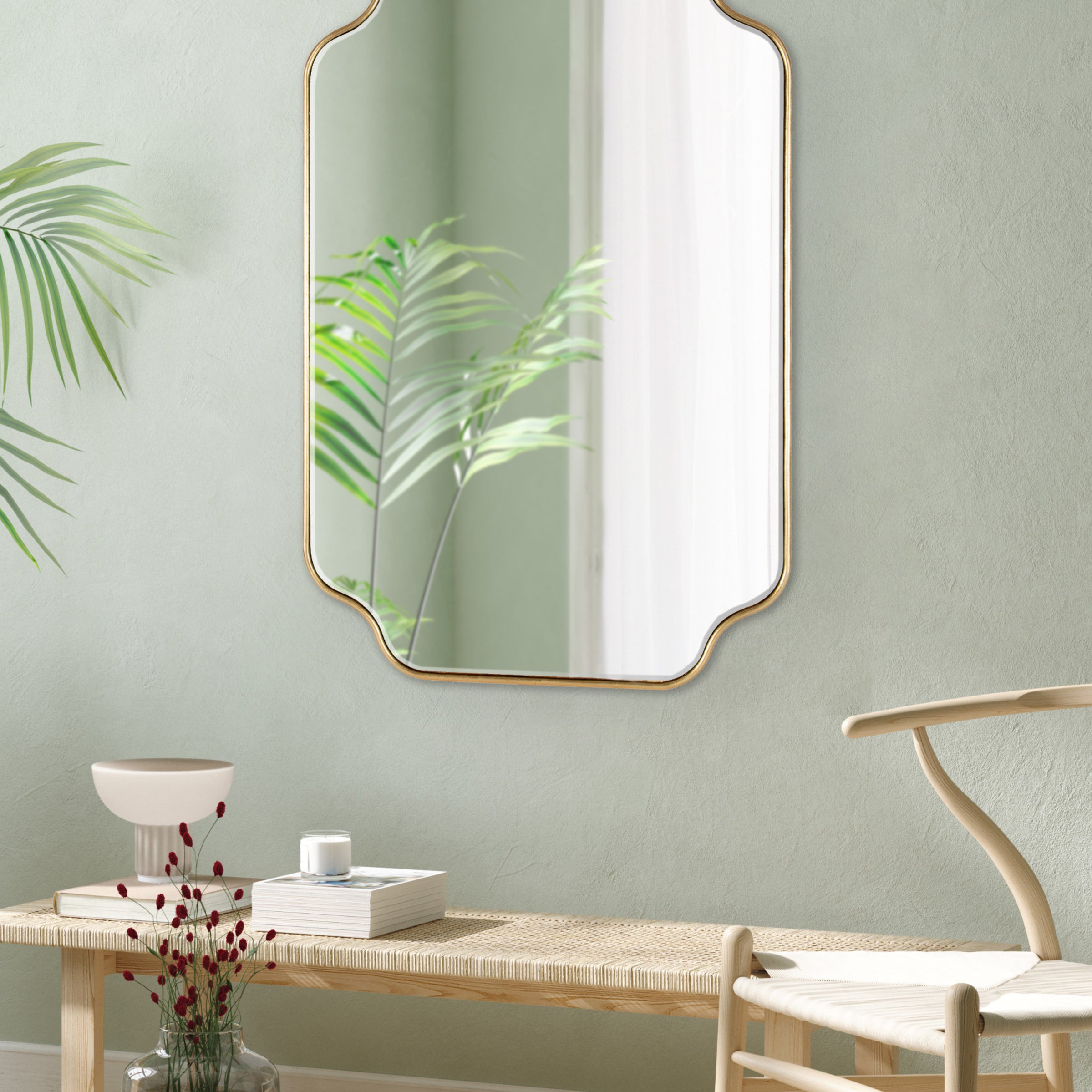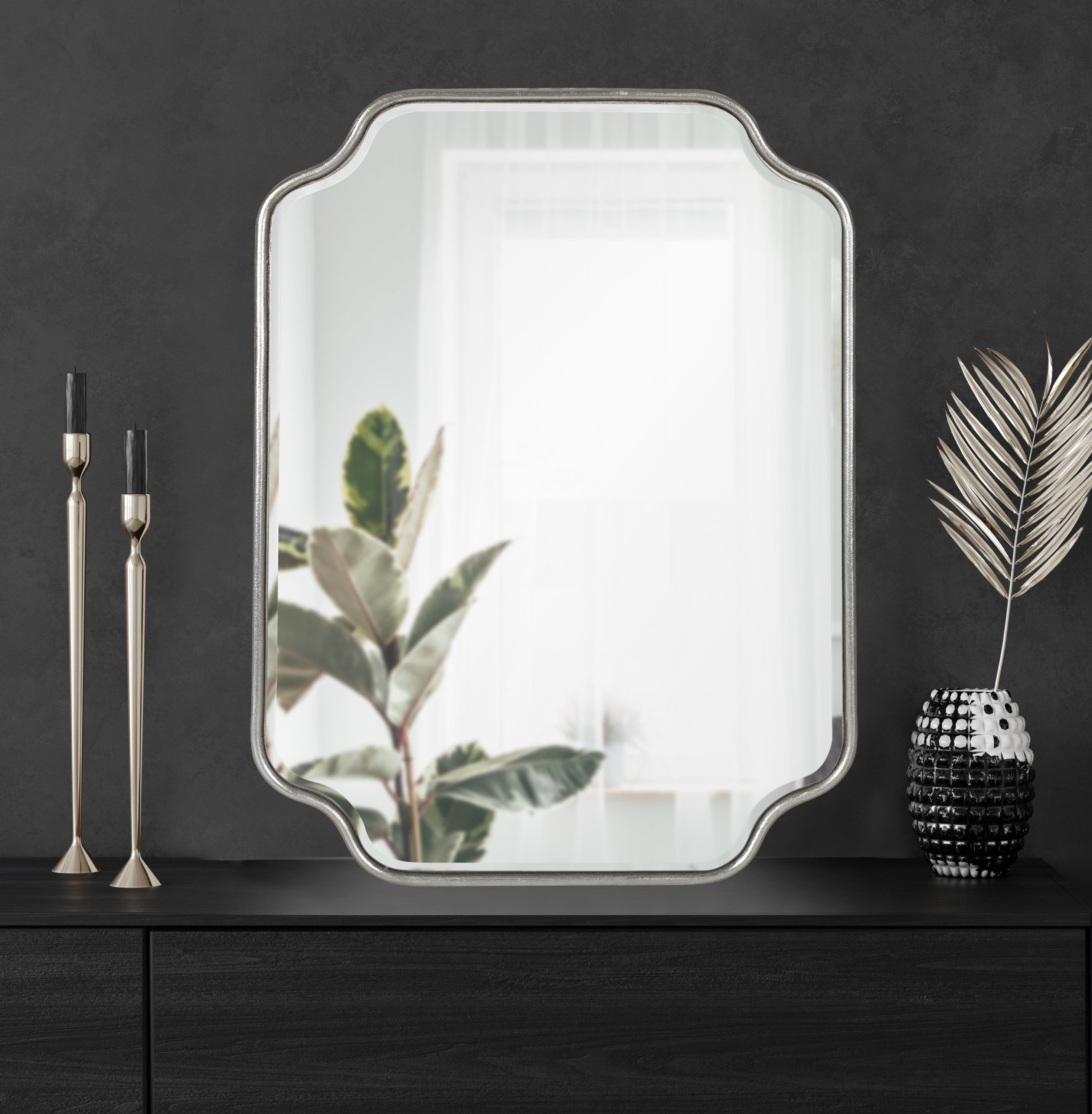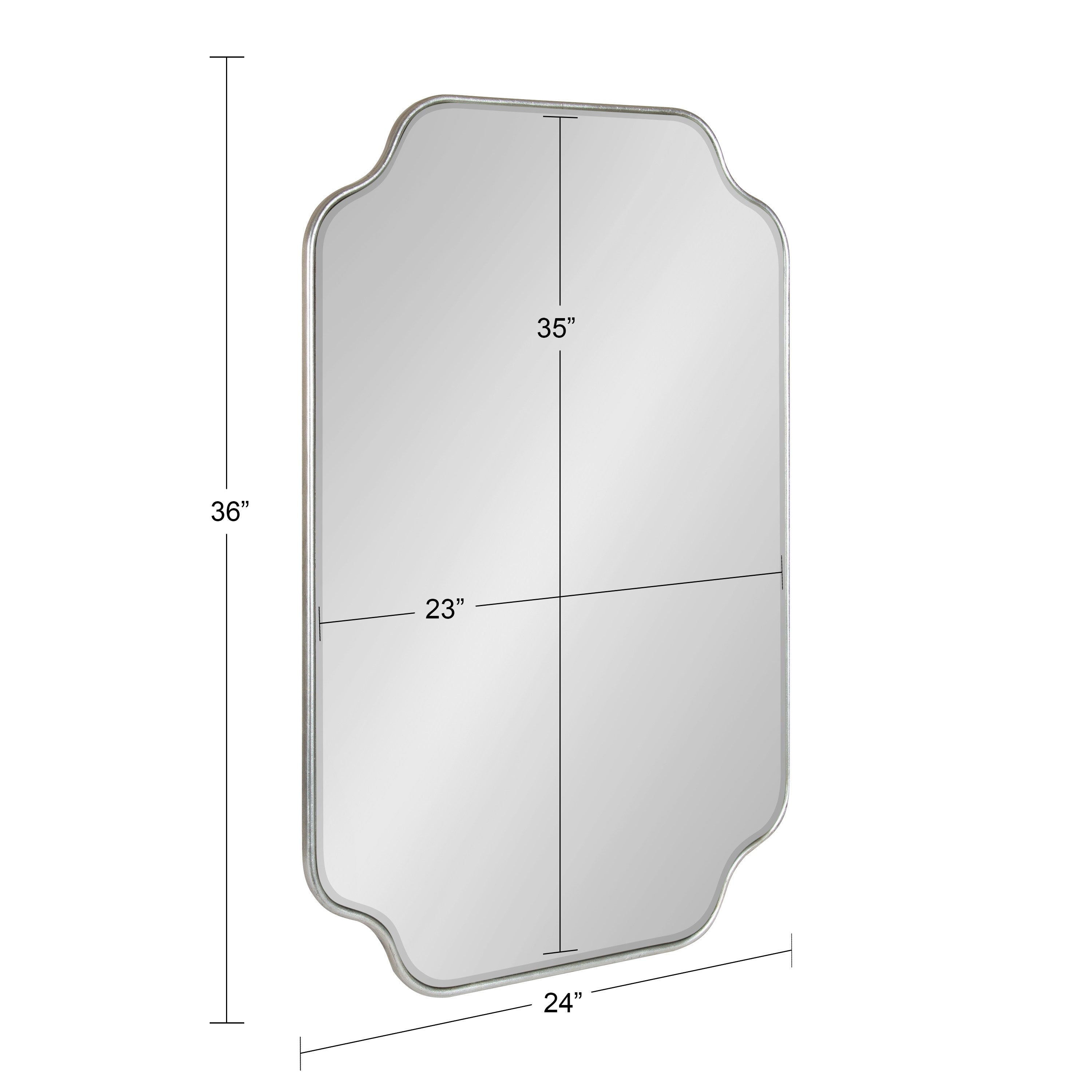 Create a glamorous and vibrant wall display in your home by hanging the sophisticated Plumley mirror. Inspired by eye-catching glamour, the Plumley mirror features a refined finish on a scalloped rectangle frame. It's a perfect substitute for wall art, enhancing the light and dimension of any space in your home. It looks fabulous as a bathroom vanity mirror or a statement piece above a console, over a mantle, or any room in your home that needs a decorative refresh.