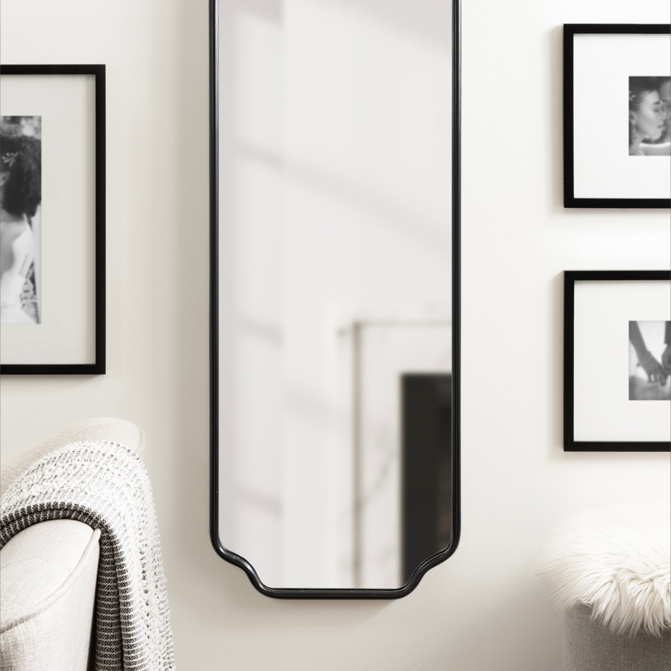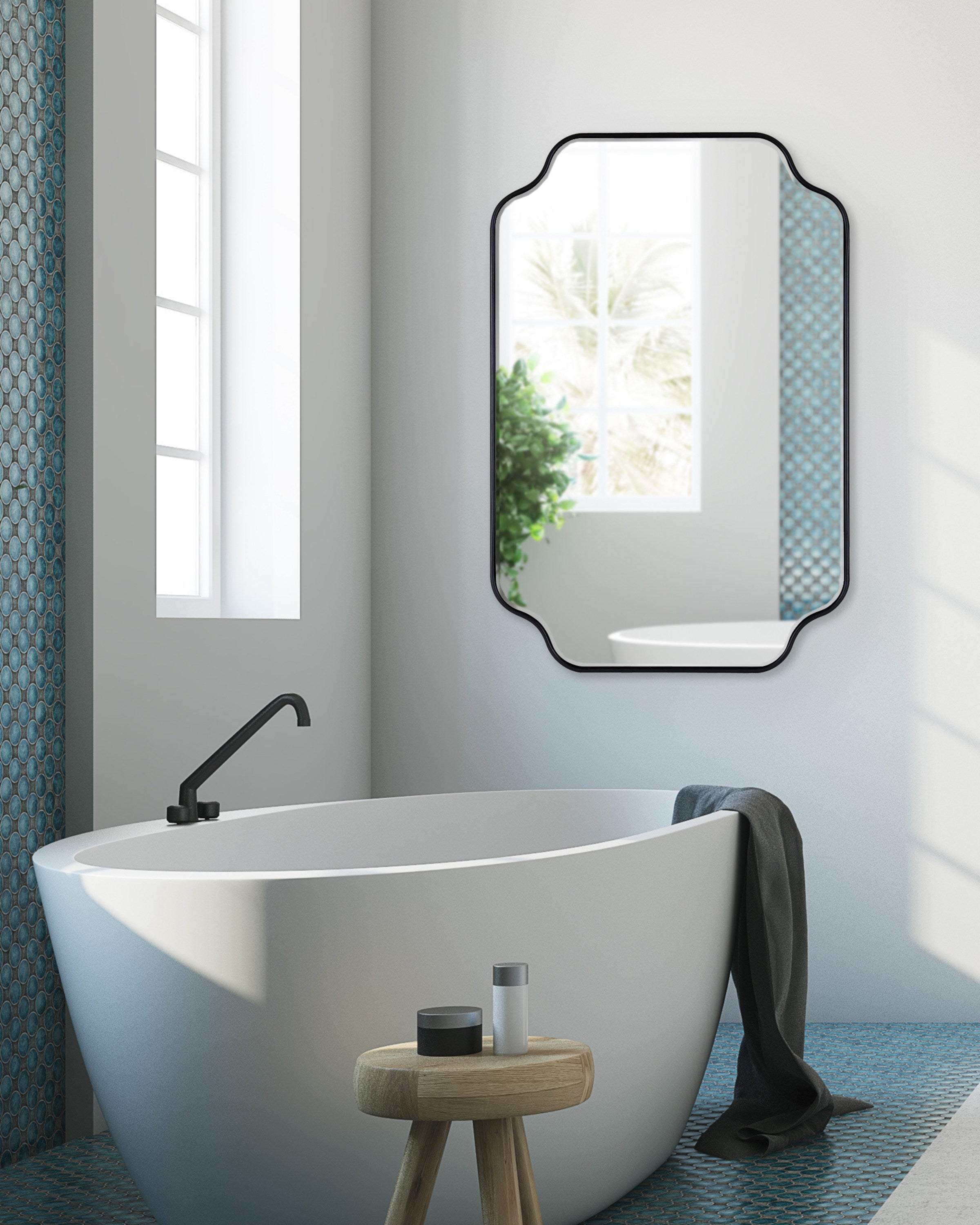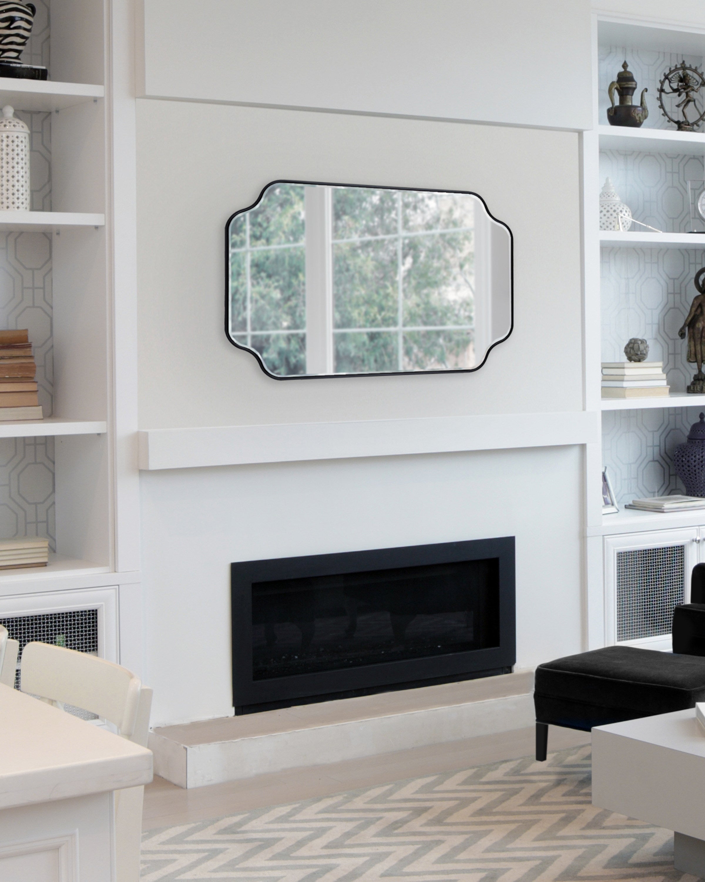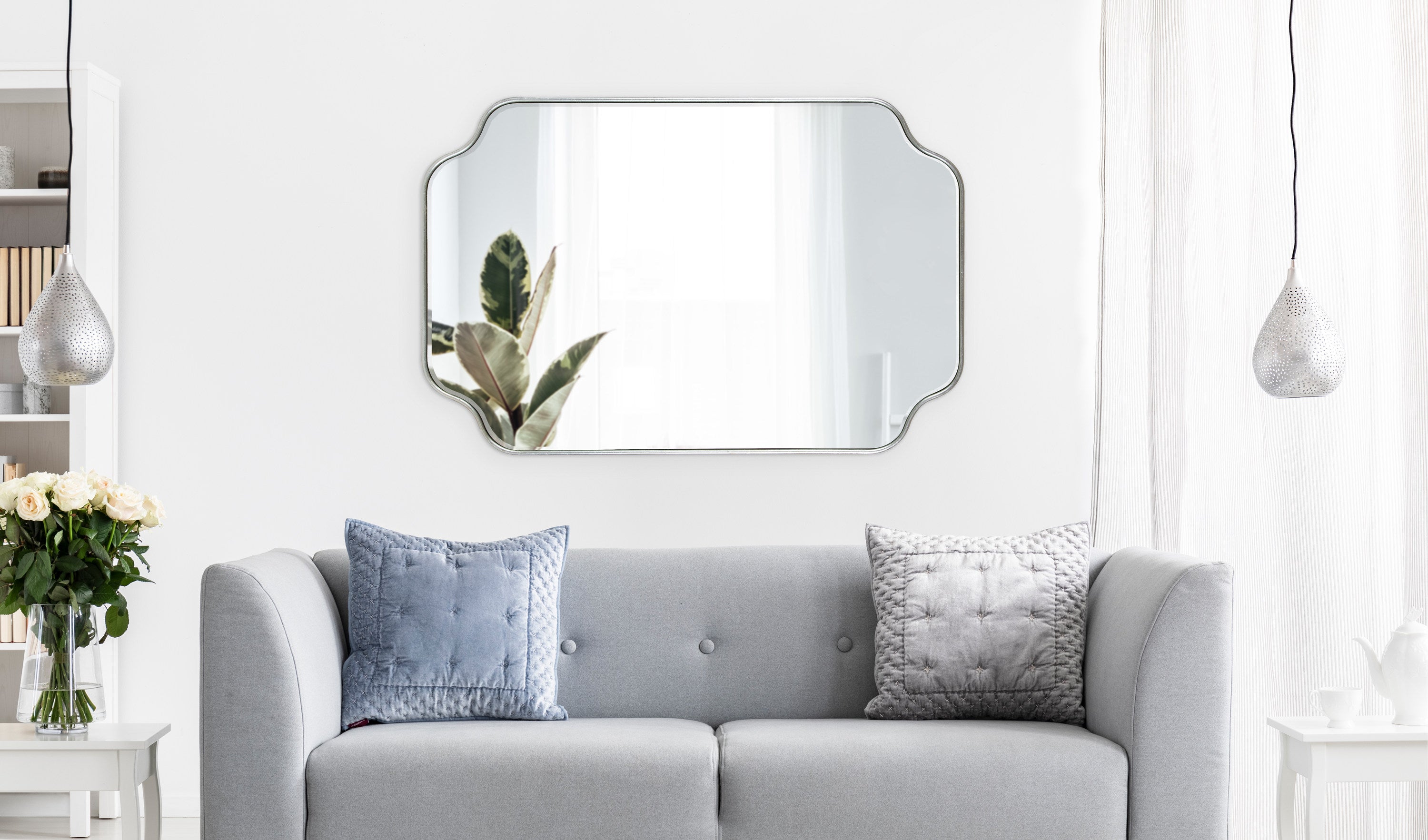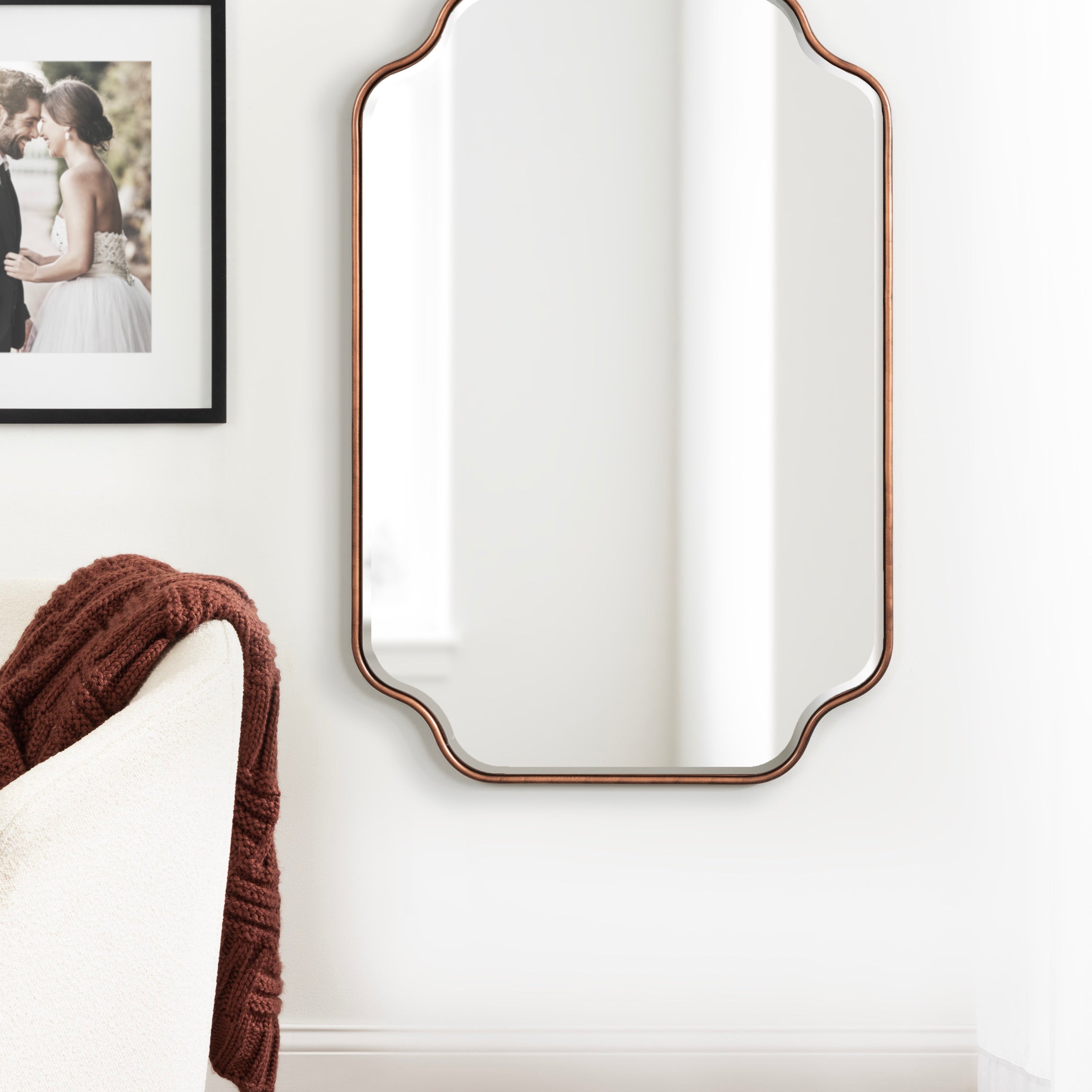 Create a glamorous and vibrant wall display in your home by hanging the sophisticated Plumley mirror. Inspired by eye-catching glamour, the Plumley mirror features a refined finish on a scalloped rectangle frame. It's a perfect substitute for wall art, enhancing the light and dimension of any space in your home. It looks fabulous as a bathroom vanity mirror or a statement piece above a console, over a mantle, or any room in your home that needs a decorative refresh.
