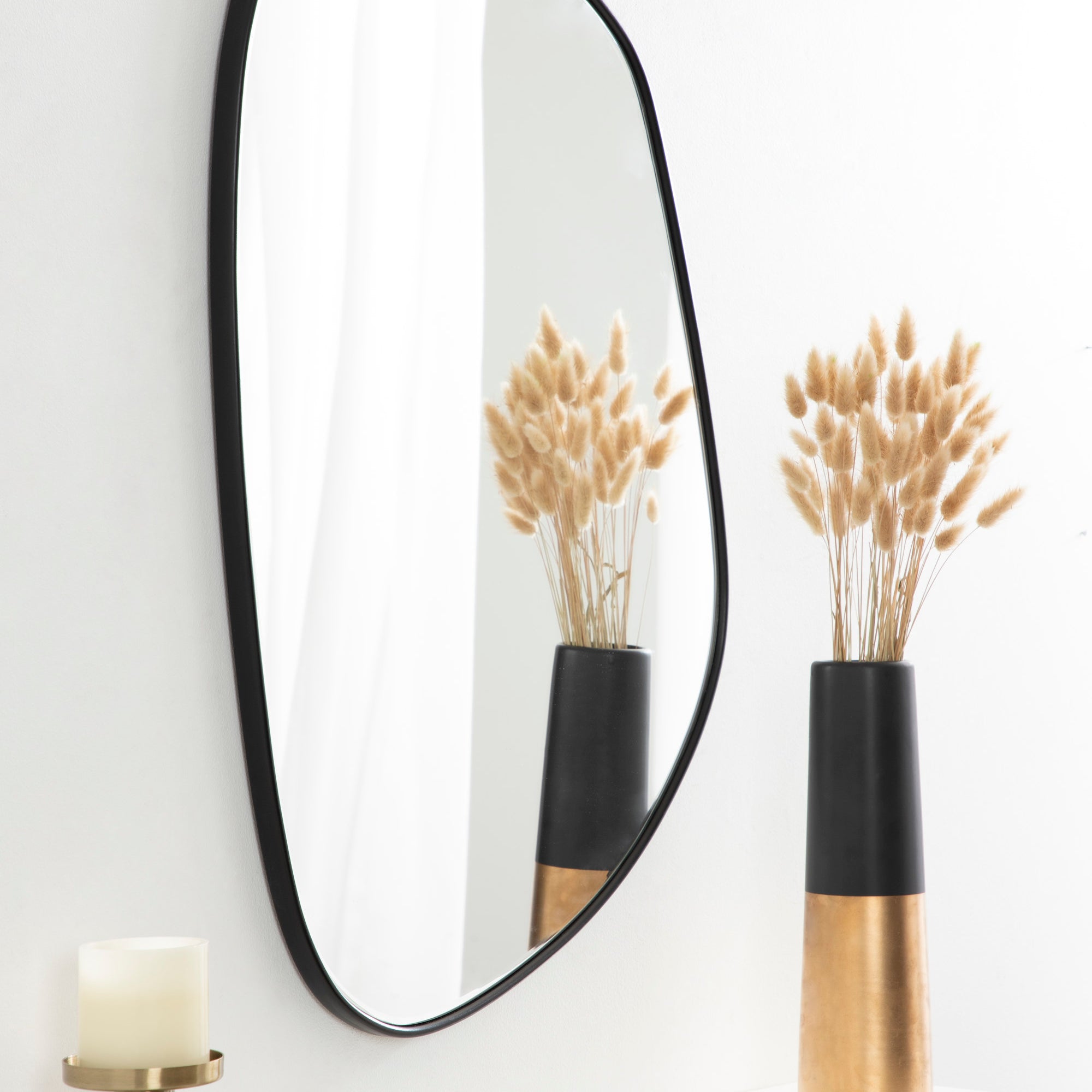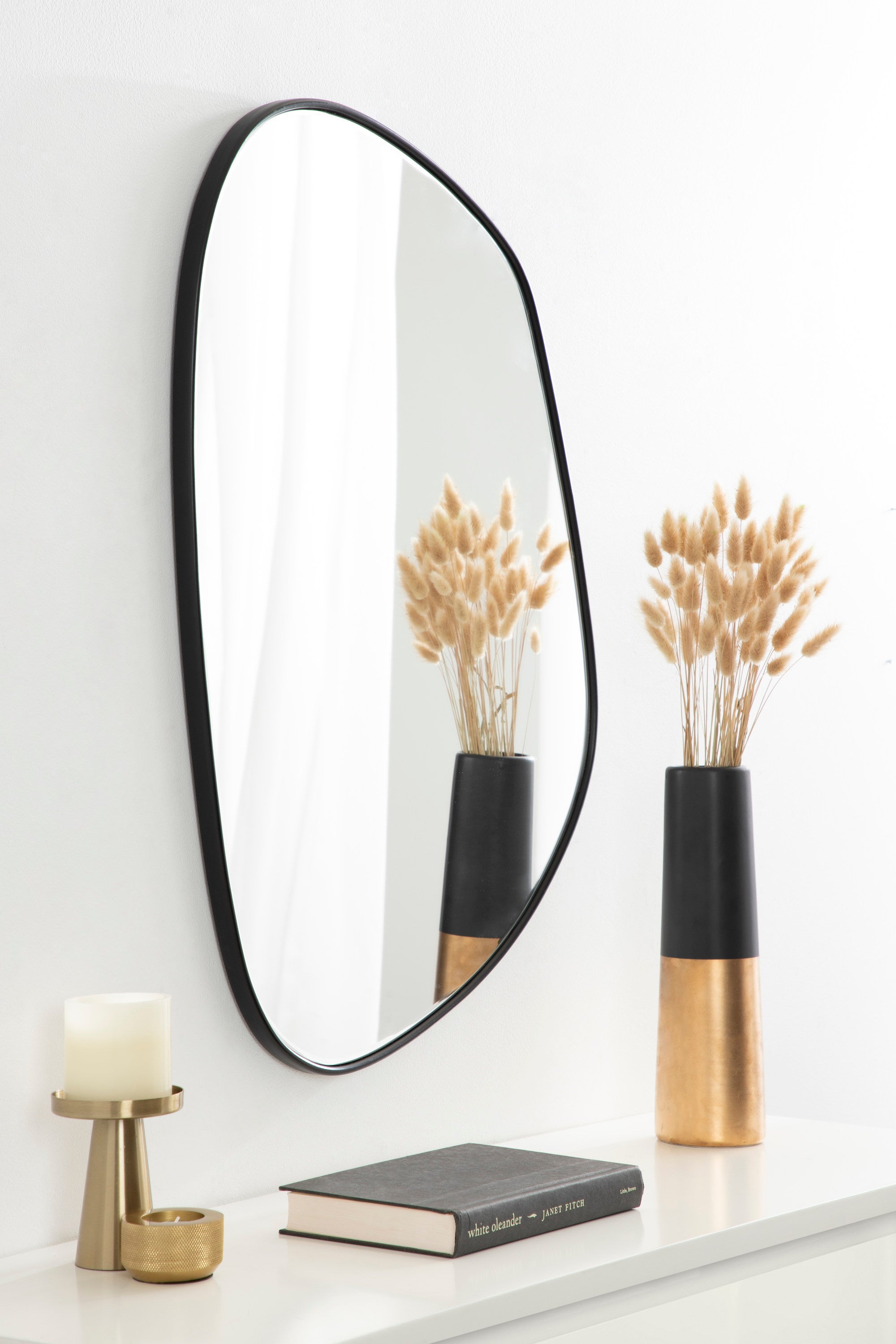 Fill your space with the abstract shaping and delightful curvature of the Ponder wall mirror. Embracing the trend of irregular frame shapes, the Ponder dazzles guests with its asymmetric, wavy style. Along with this unique shape, this hanging wall mirror features a slim, minimalist frame.