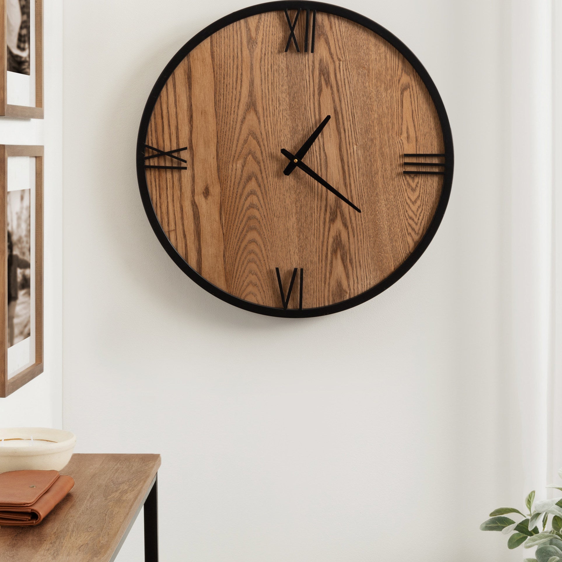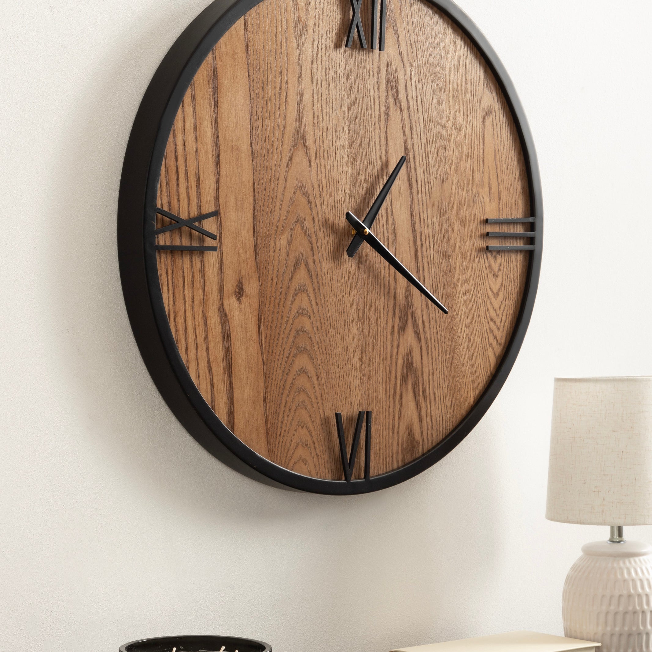 Add some personality to your home or workspace with this Pronte wall clock from Kate and Laurel. The minimal clock features a modern design inspired by contemporary aesthetics, giving your space a clean, sophisticated look. With its wood veneer face, this sturdy wall clock features stunning wood grains giving texture and dimension to the wall accent. The minimalist design looks great in any space, whether you decide to hang it in your living room, kitchen, bedroom, or dining room. It also looks great as a functional replacement for wall art, an entryway conversation piece, or a tone-setting, minimalist accent for your home office. This clock's functional design requires one AA battery to run, making it ready to give you the time at any point of the day. The AA battery does not come included with this product, but the clock requires no assembly.