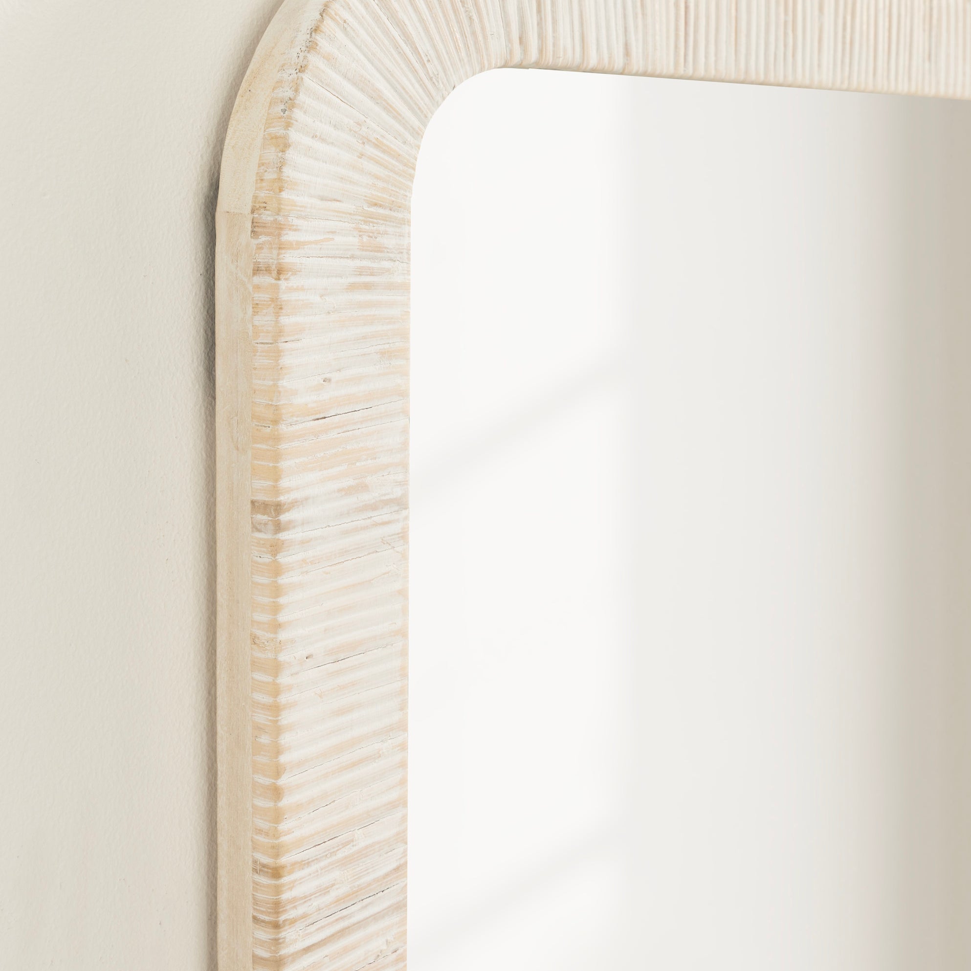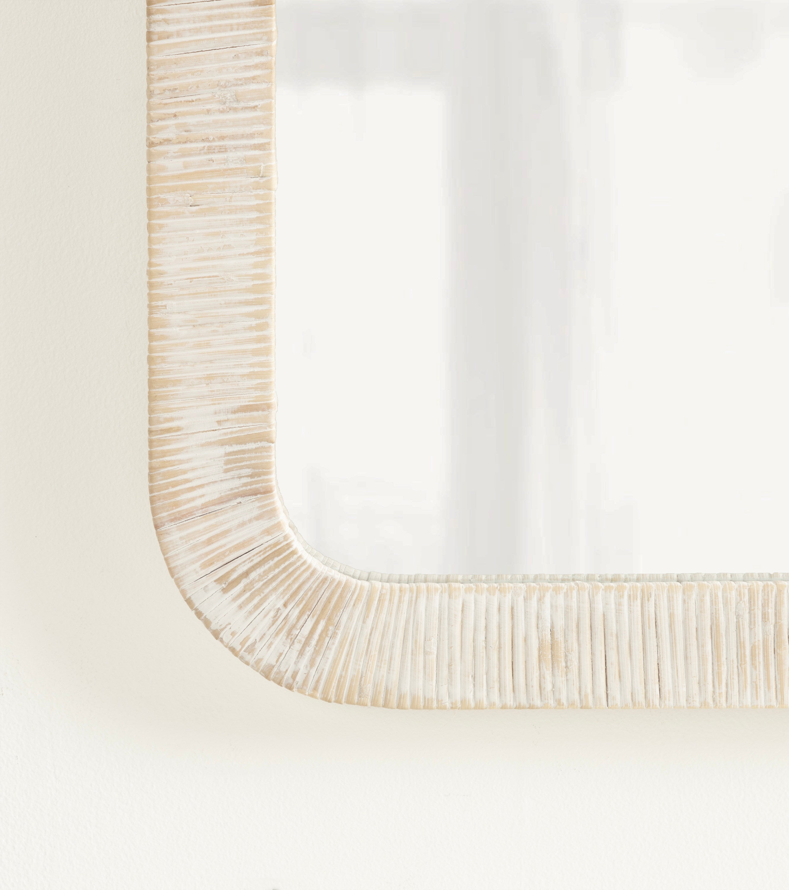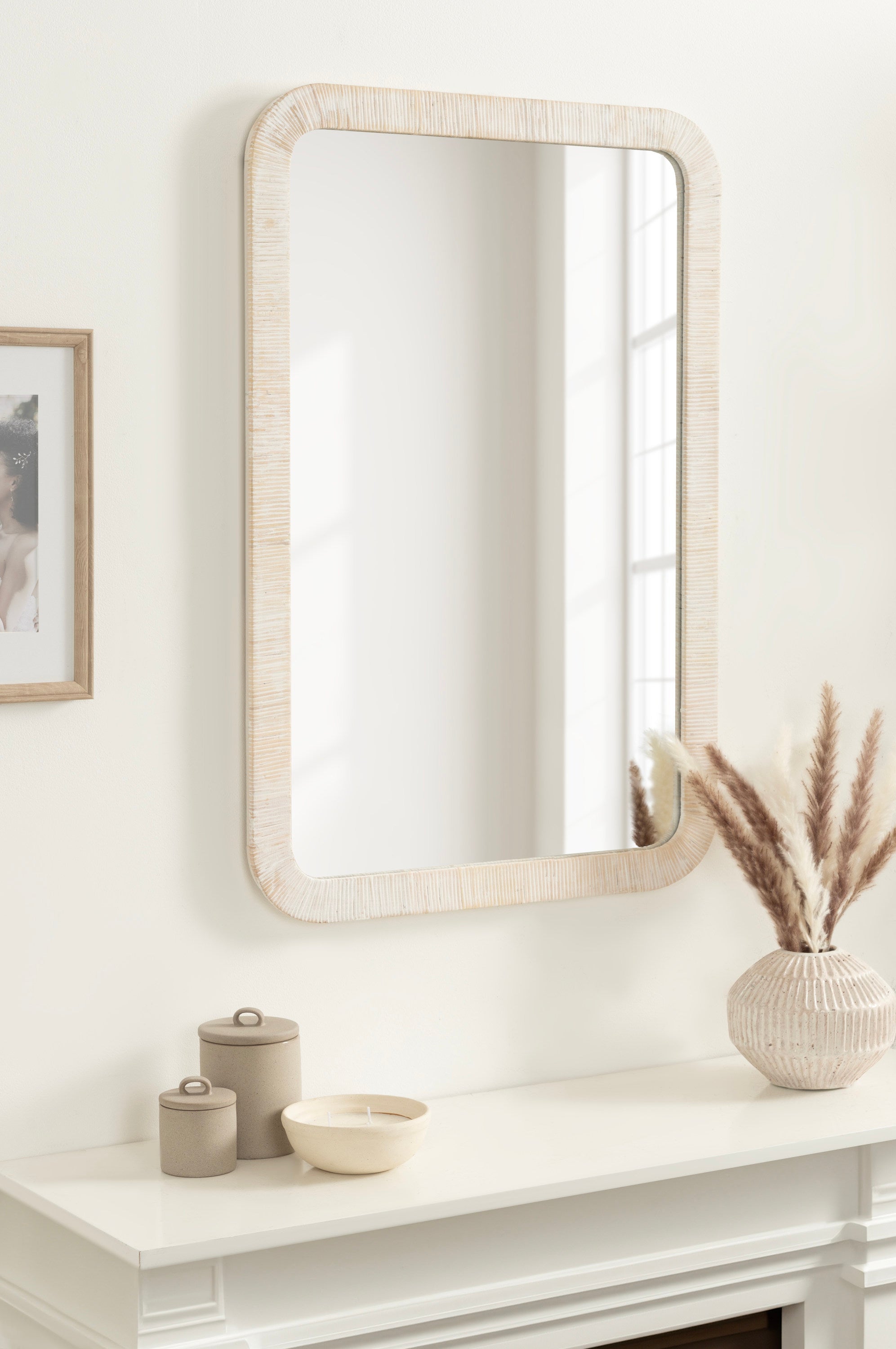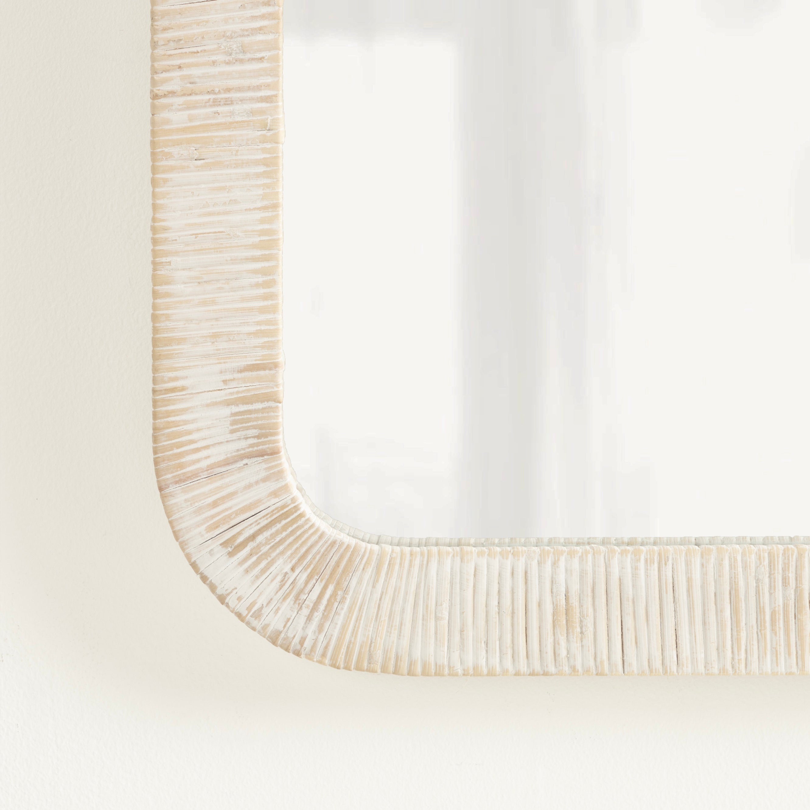 Create a bohemian aesthetic in your home with this fantastic and unique rounded rectangle wall mirror. This beautiful mirror is the epitome of boho design, featuring a natural, textured look on the frame that pops off the wall. The wonderfully wrapped frame is made from premium, high-quality rattan with a natural wood finish to show off its rich, authentic look. The rectangular shape emphasizes its unique look with a dash of modernity to showcase a geometric and trendy style on any wall. Hang this stunning piece of wall decor in your bedroom, entryway, dining room, living room, or even bathroom with its stellar and unique design.