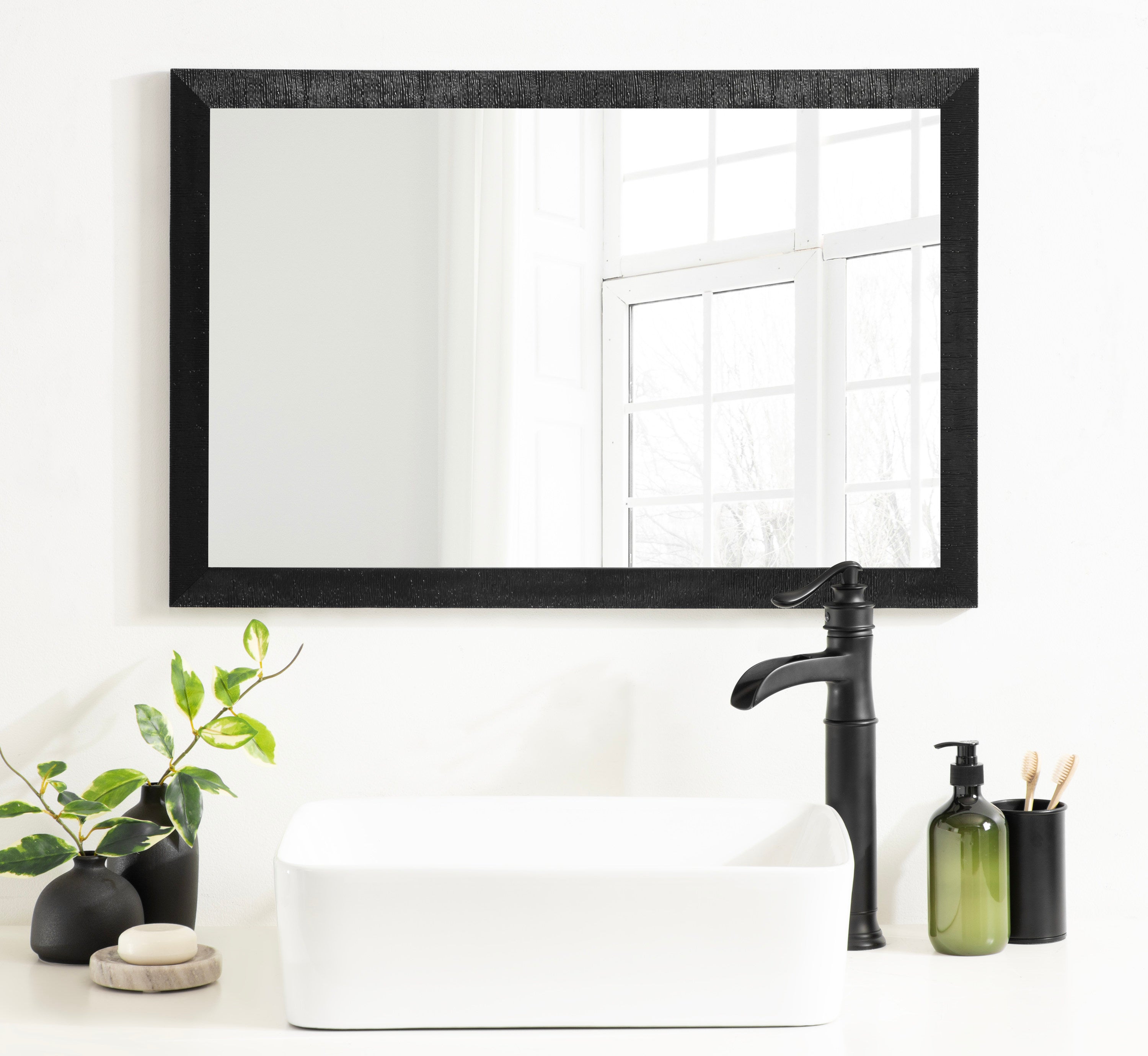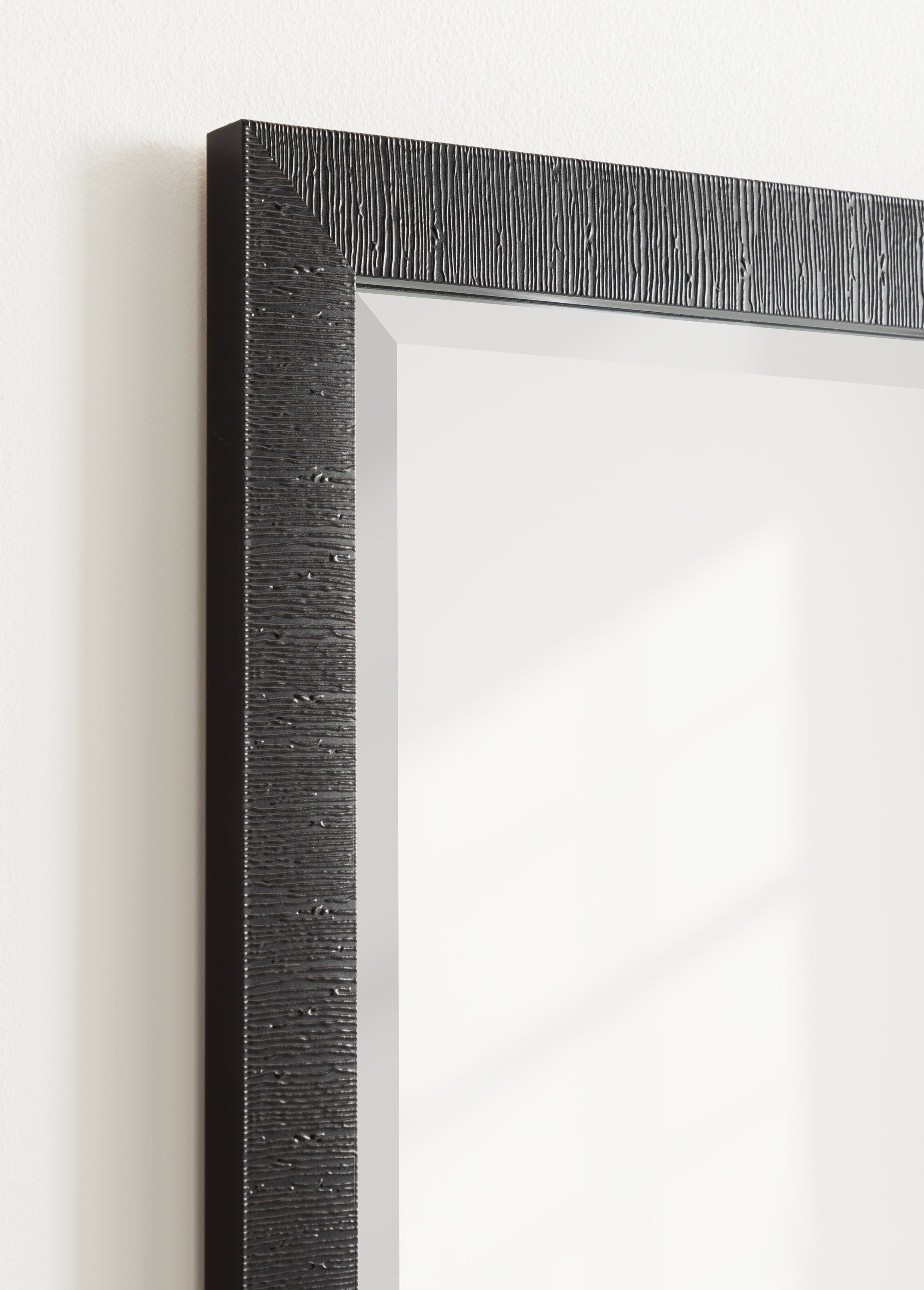 Introducing the perfect mirror addition to any fireplace mantel or office space. The ribbed texture and beveled edge add an elegant touch to the frame, making it a stylish and sophisticated addition to any room. The rectangular shape of the mirror is perfect for use as a bathroom vanity mirror, providing ample space for getting ready for the day. The mirror can be hung vertically or horizontally, depending on your preference and space requirements.