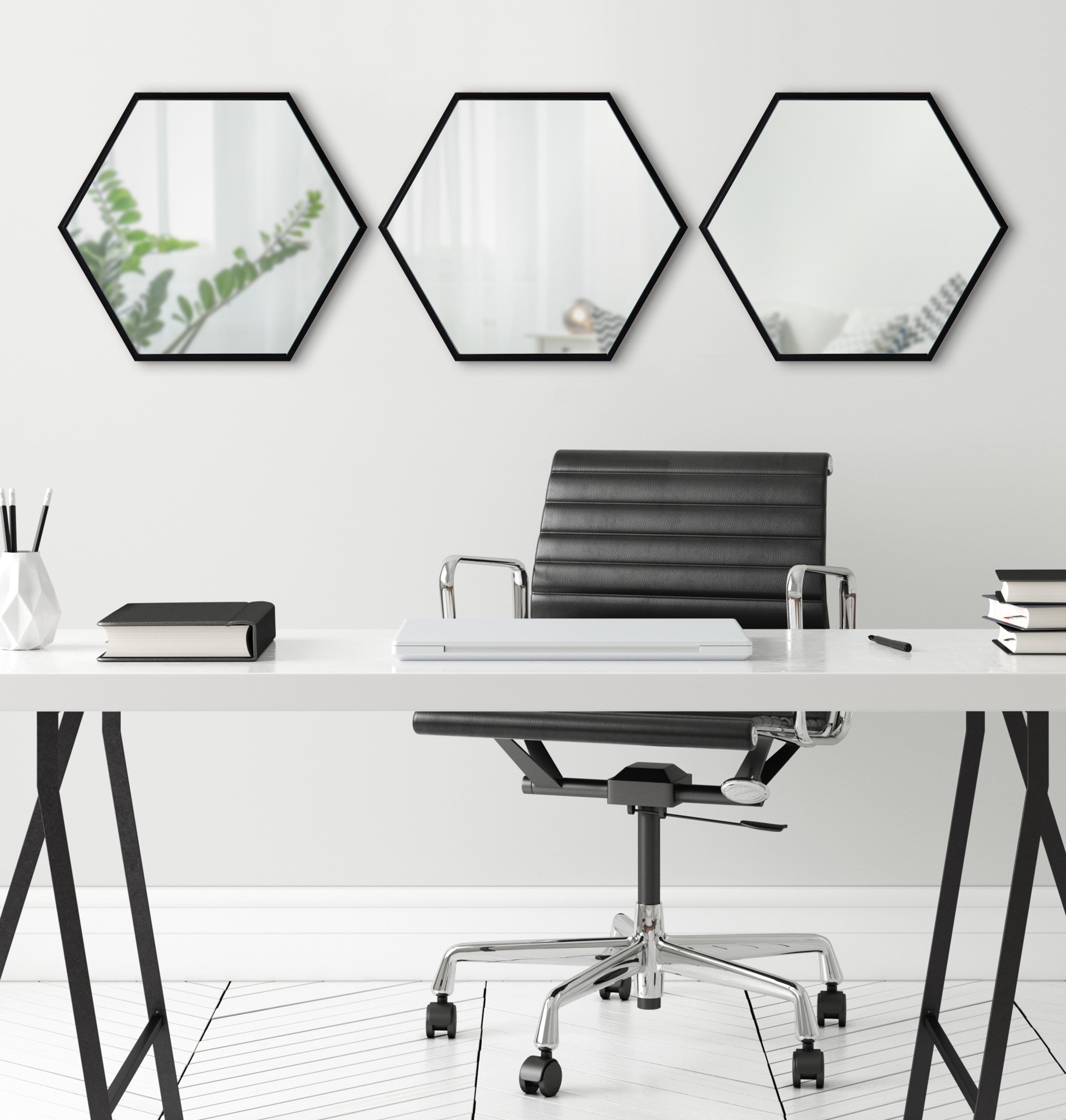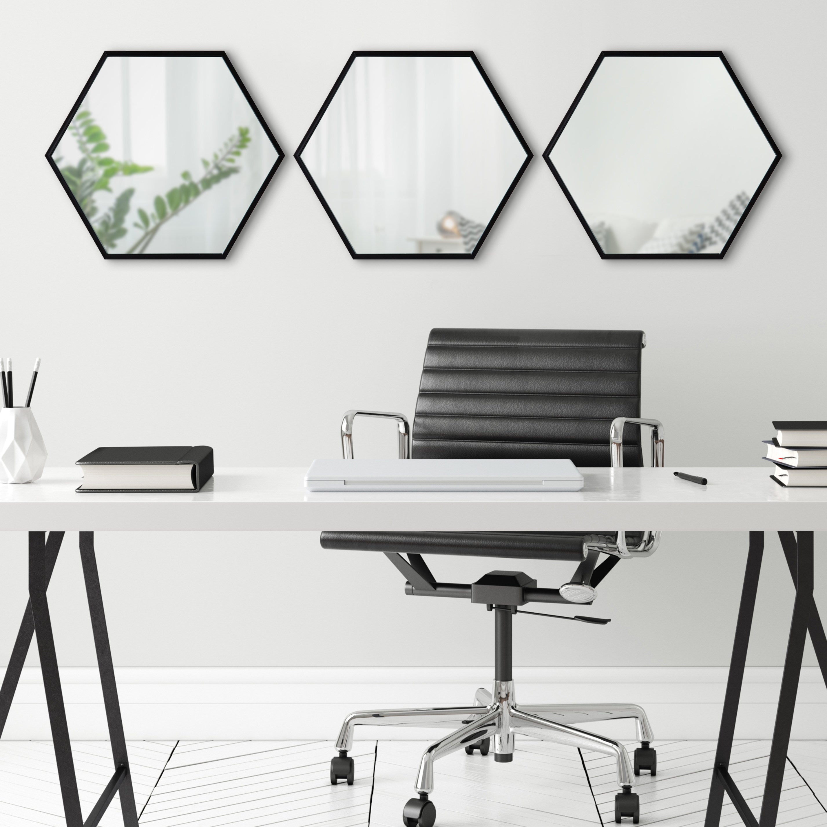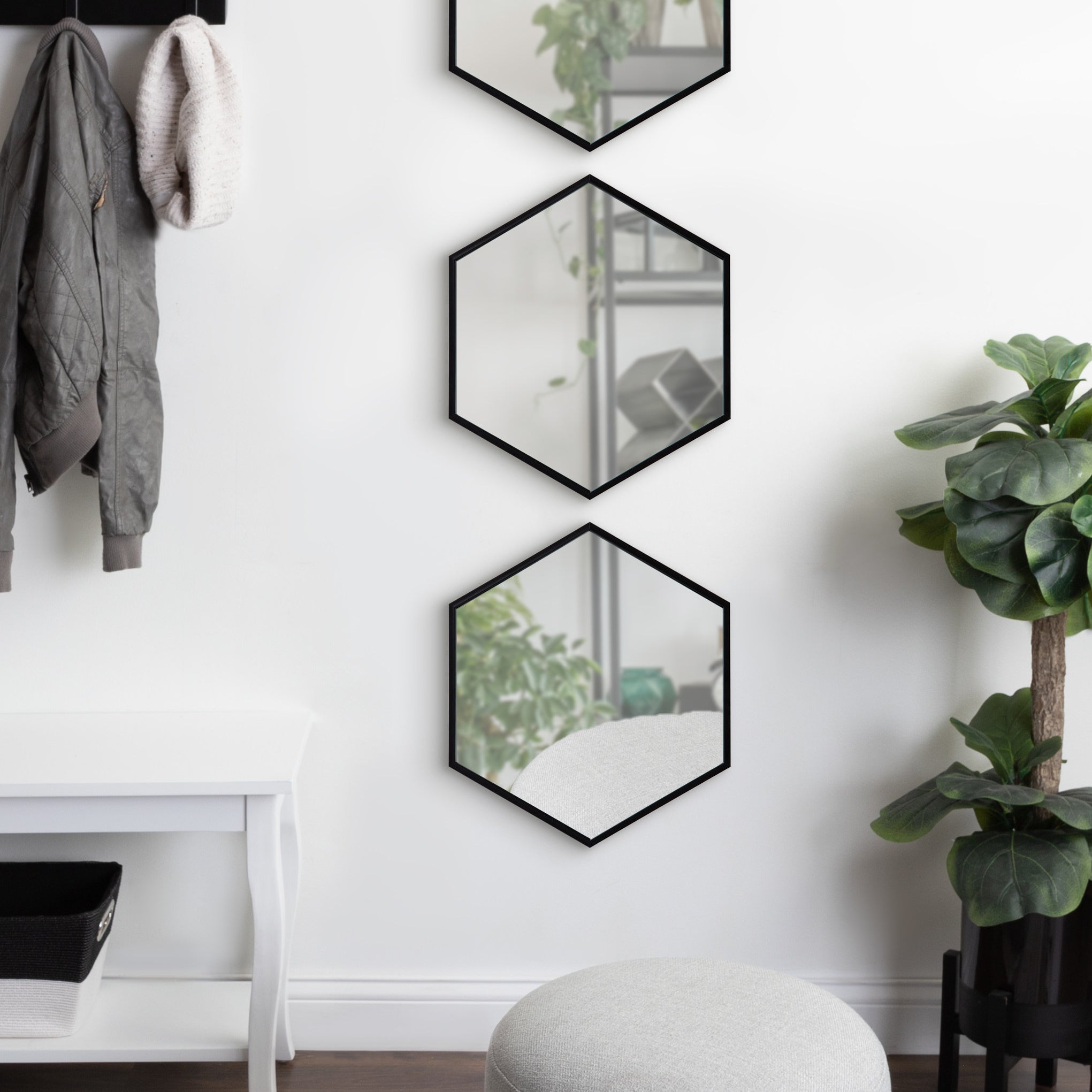 An easy way to decorate your walls while bringing light and space into the room, the Rhodes mirror set is an affordable way to add to your interior design. The sophisticated hexagon shape and the lightweight frame create an elegant display and add a beautiful, decorative element to your home decor. Display each mirror in this set together as one display or spread them throughout your home for a cohesive aesthetic.