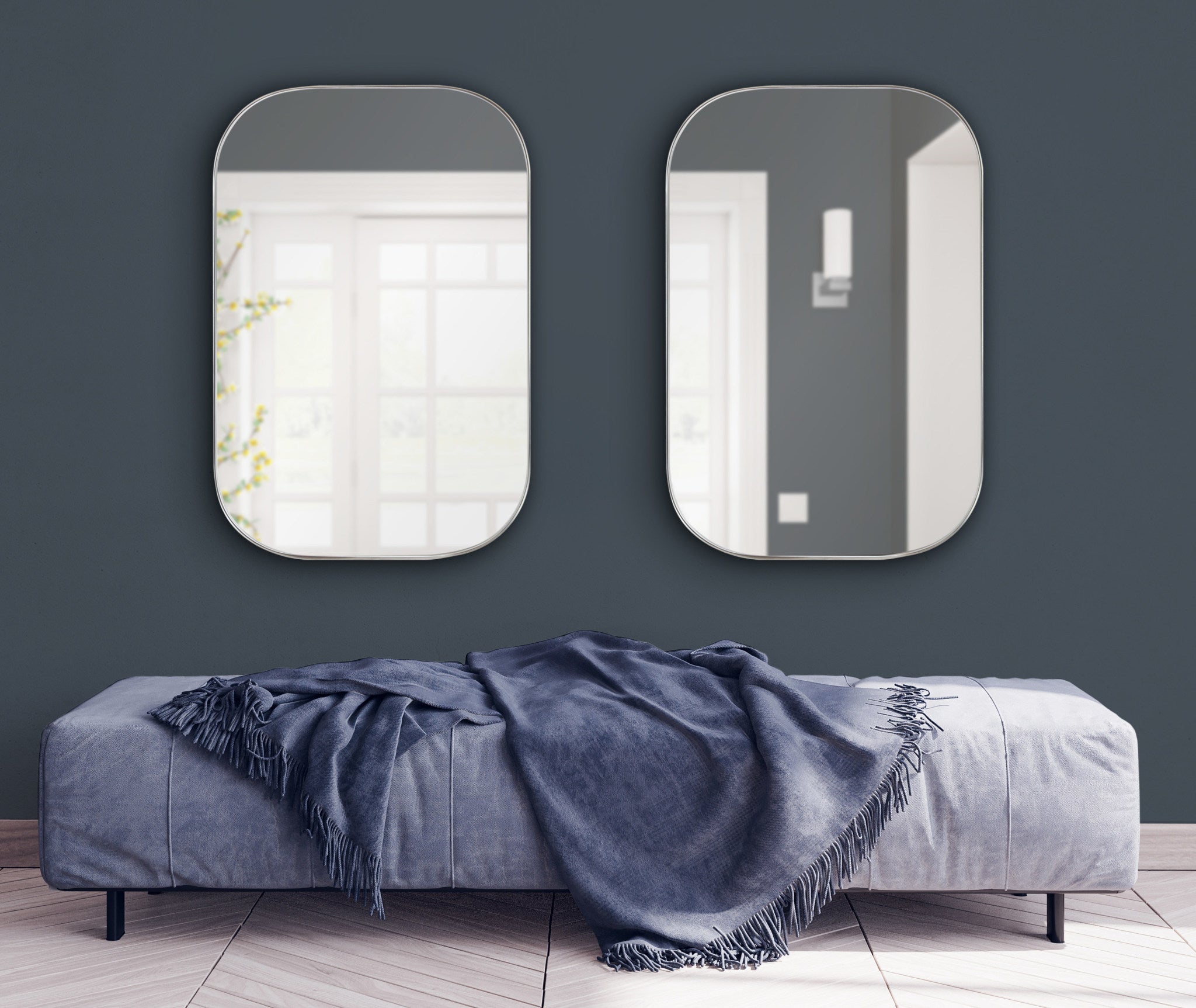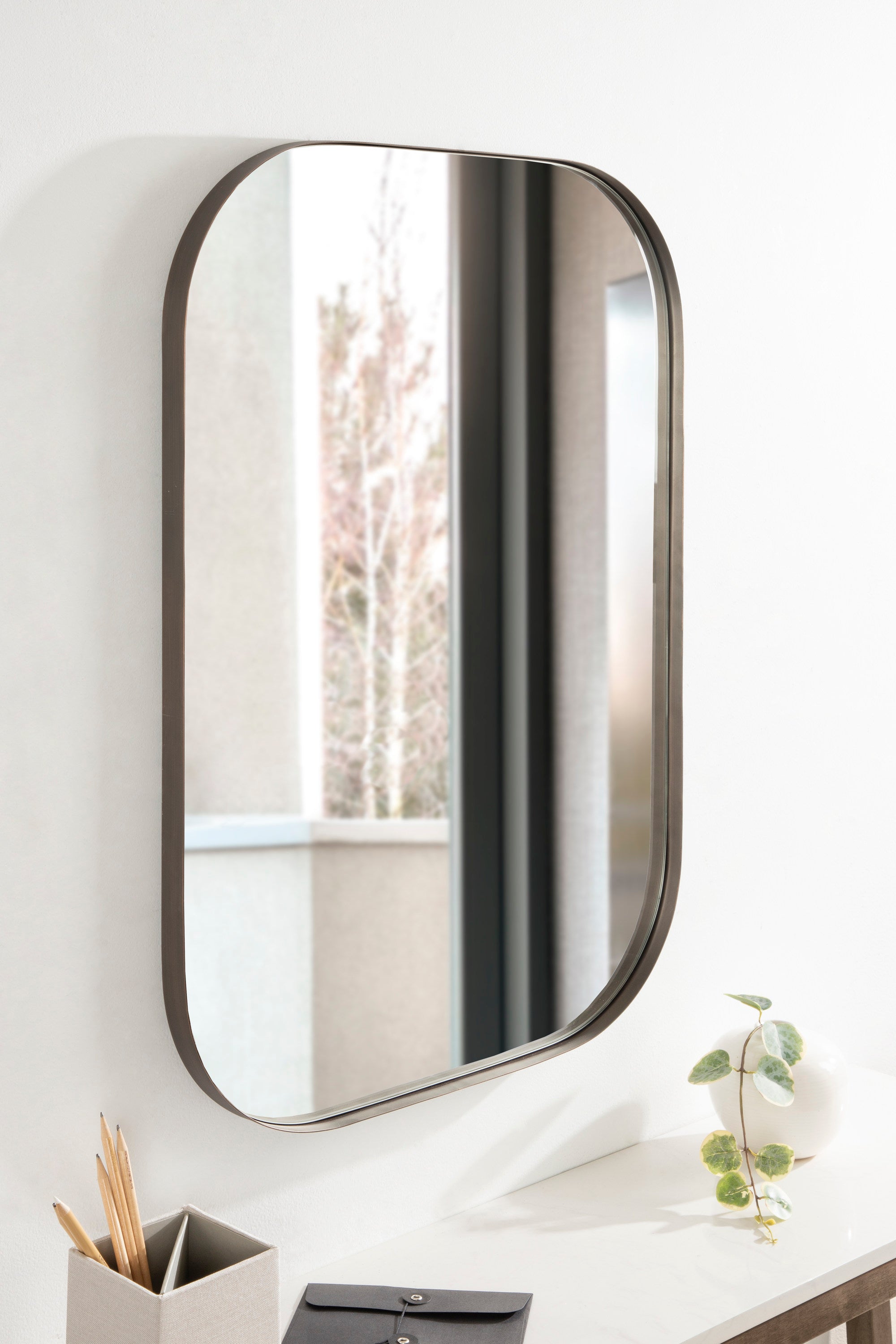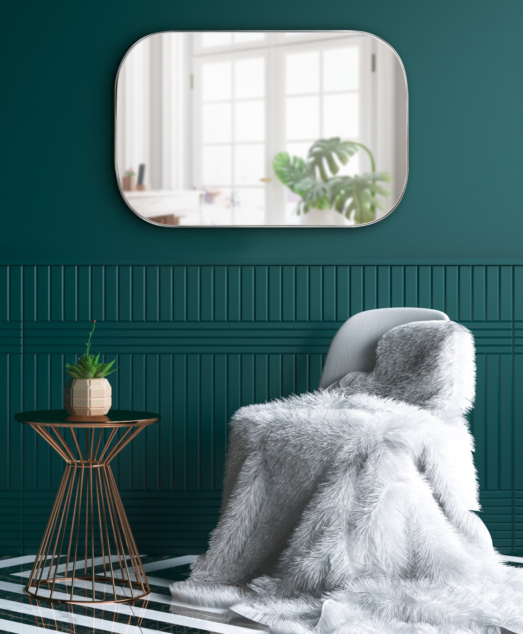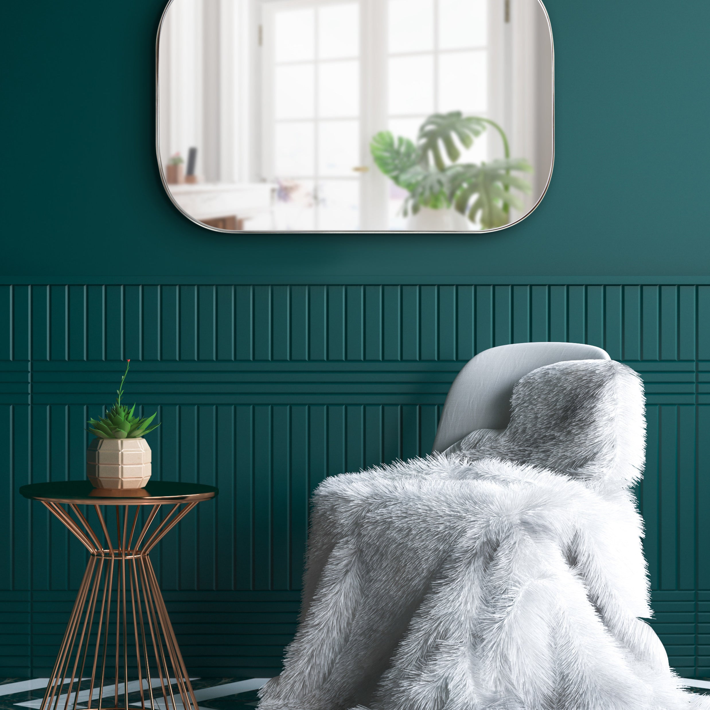 Bring vibrancy and modern style into your home with the Rollo mirror. This mirror features a rectangular shape and a beautiful metallic finish, making it a fantastic contemporary element to add to your living room, bedroom, entryway, or bathroom vanity. Its sleek design and soft shape are perfect for adding sophistication, vibrancy, and dimension to your space.