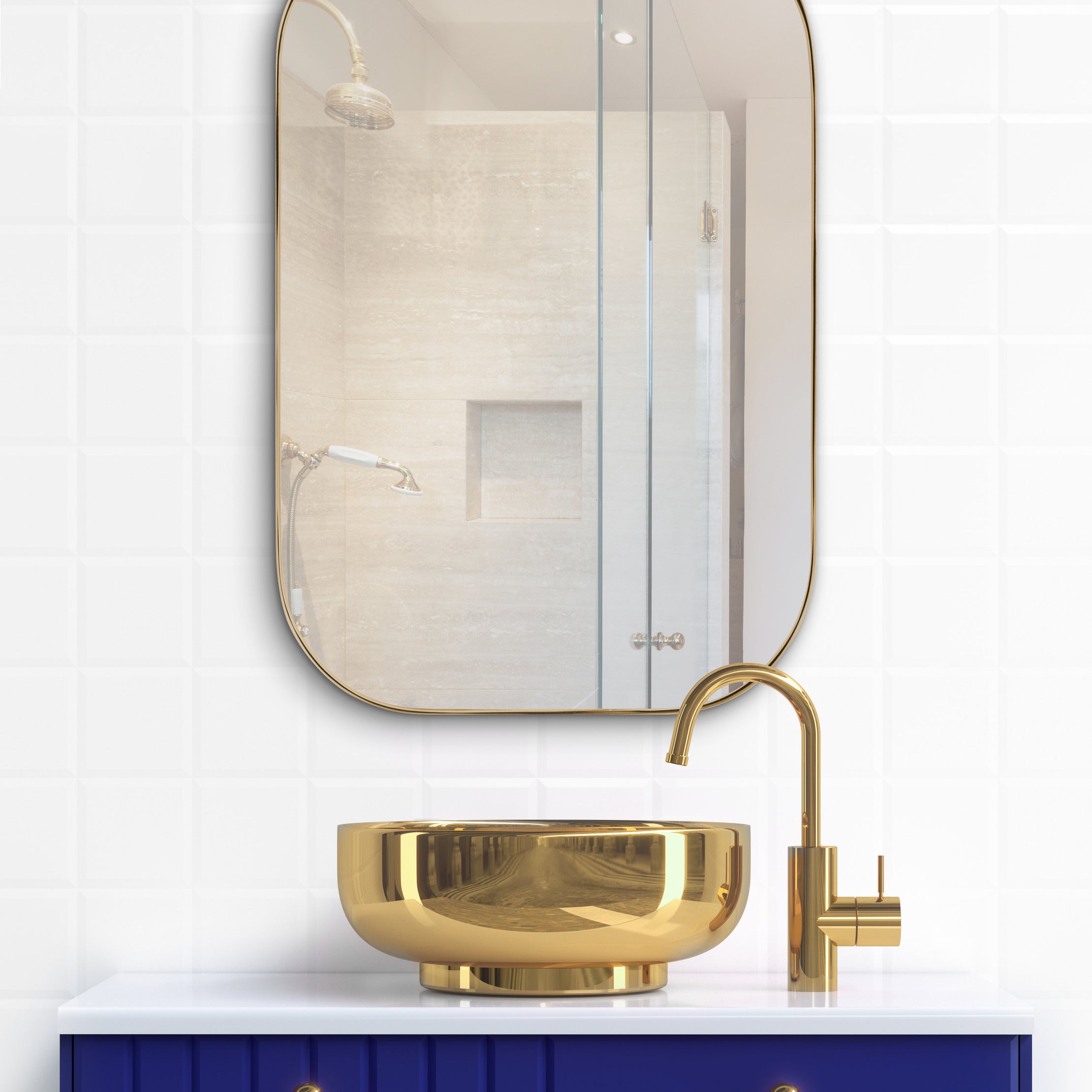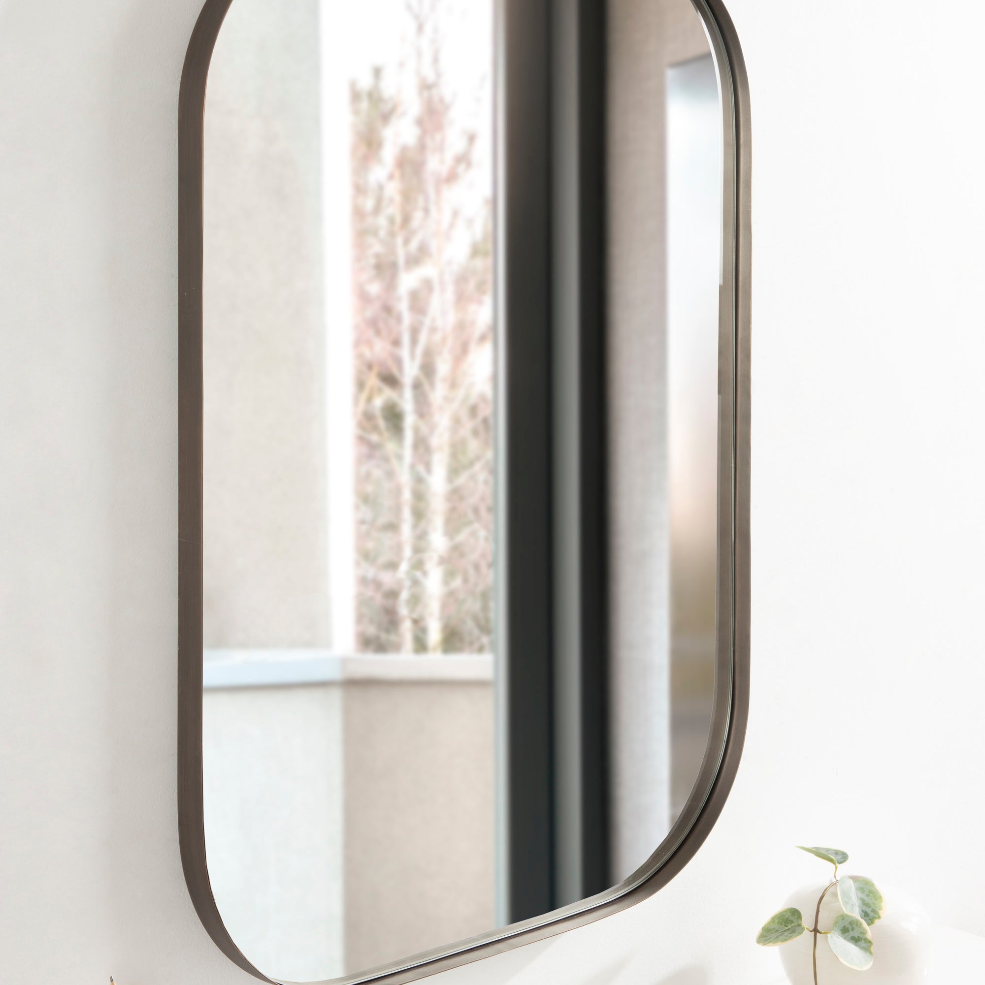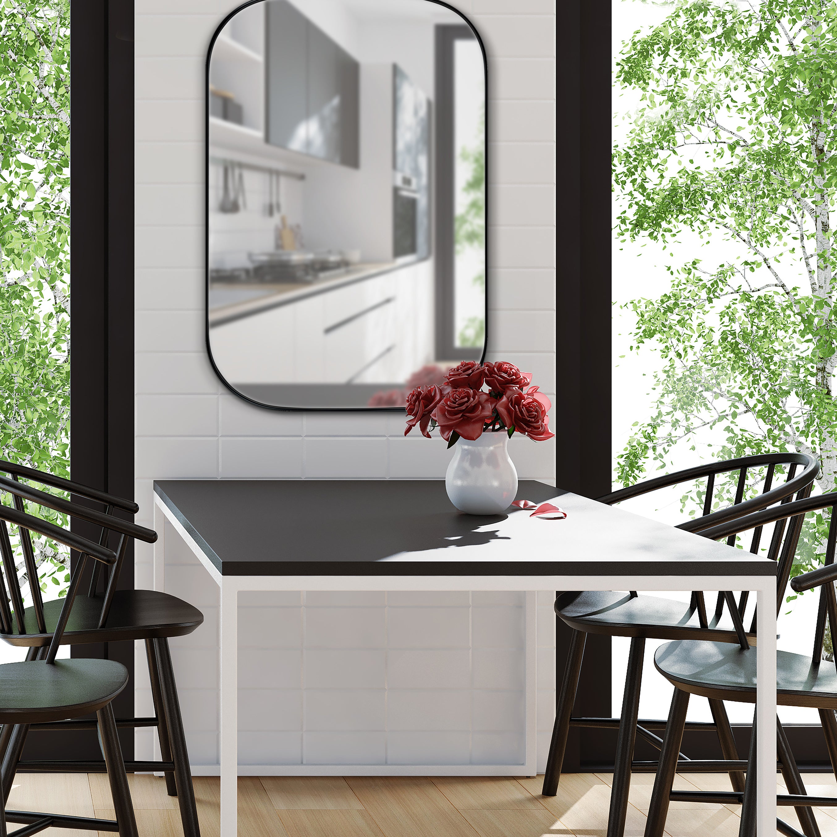 Bring vibrancy and modern style into your home with the Rollo mirror. This mirror features a rectangular shape and a beautiful metallic finish, making it a fantastic contemporary element to add to your living room, bedroom, entryway, or bathroom vanity. Its sleek design and soft shape are perfect for adding sophistication, vibrancy, and dimension to your space.