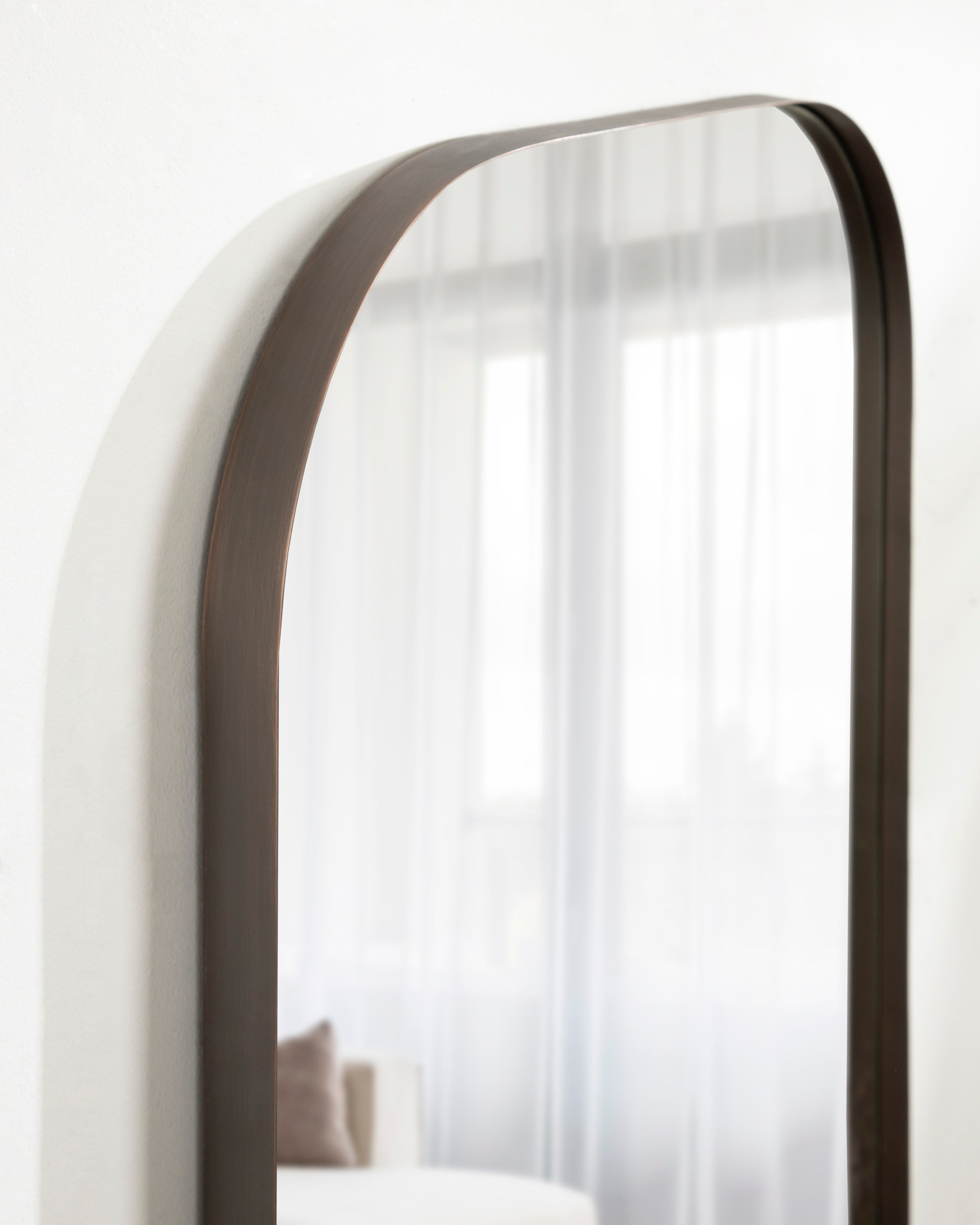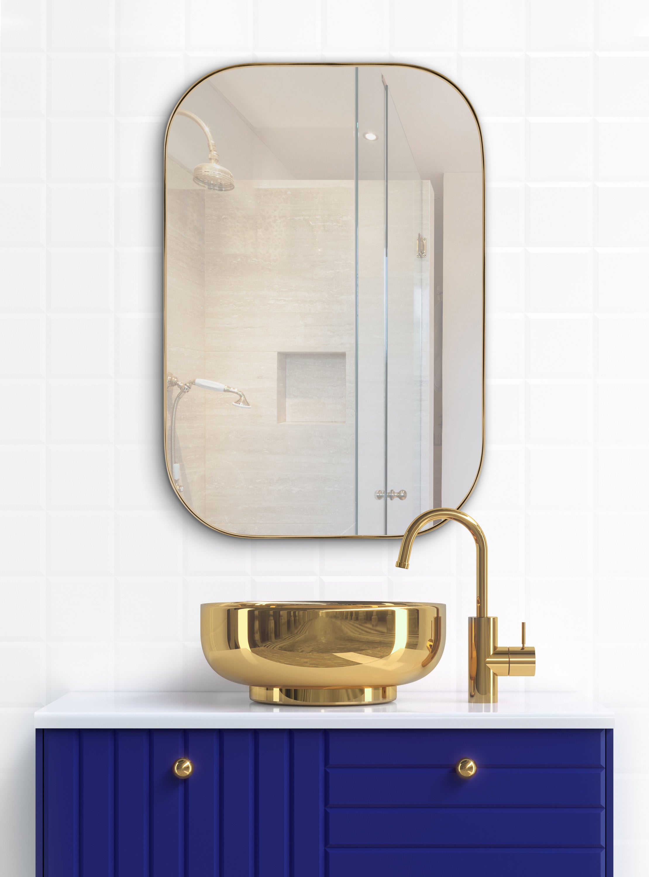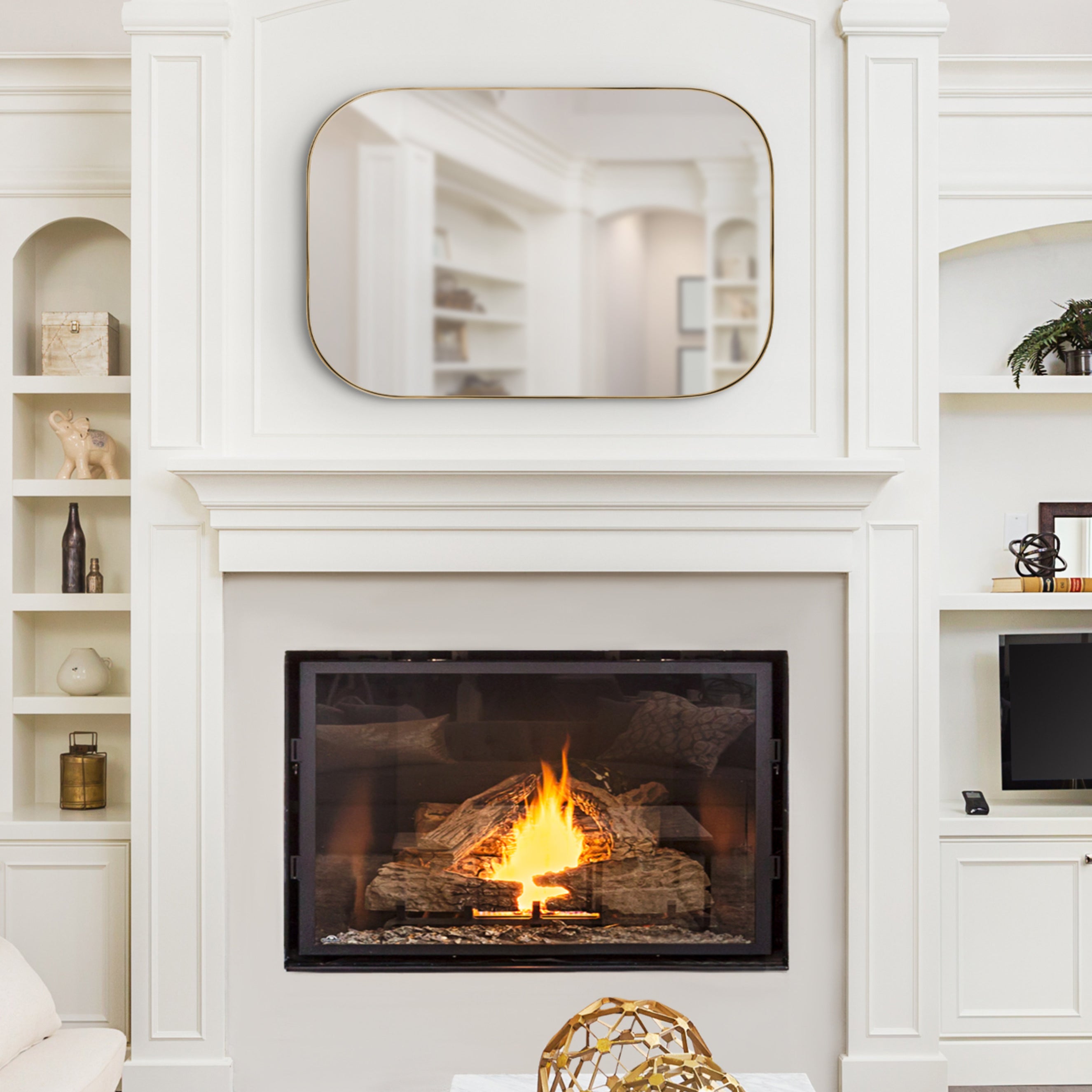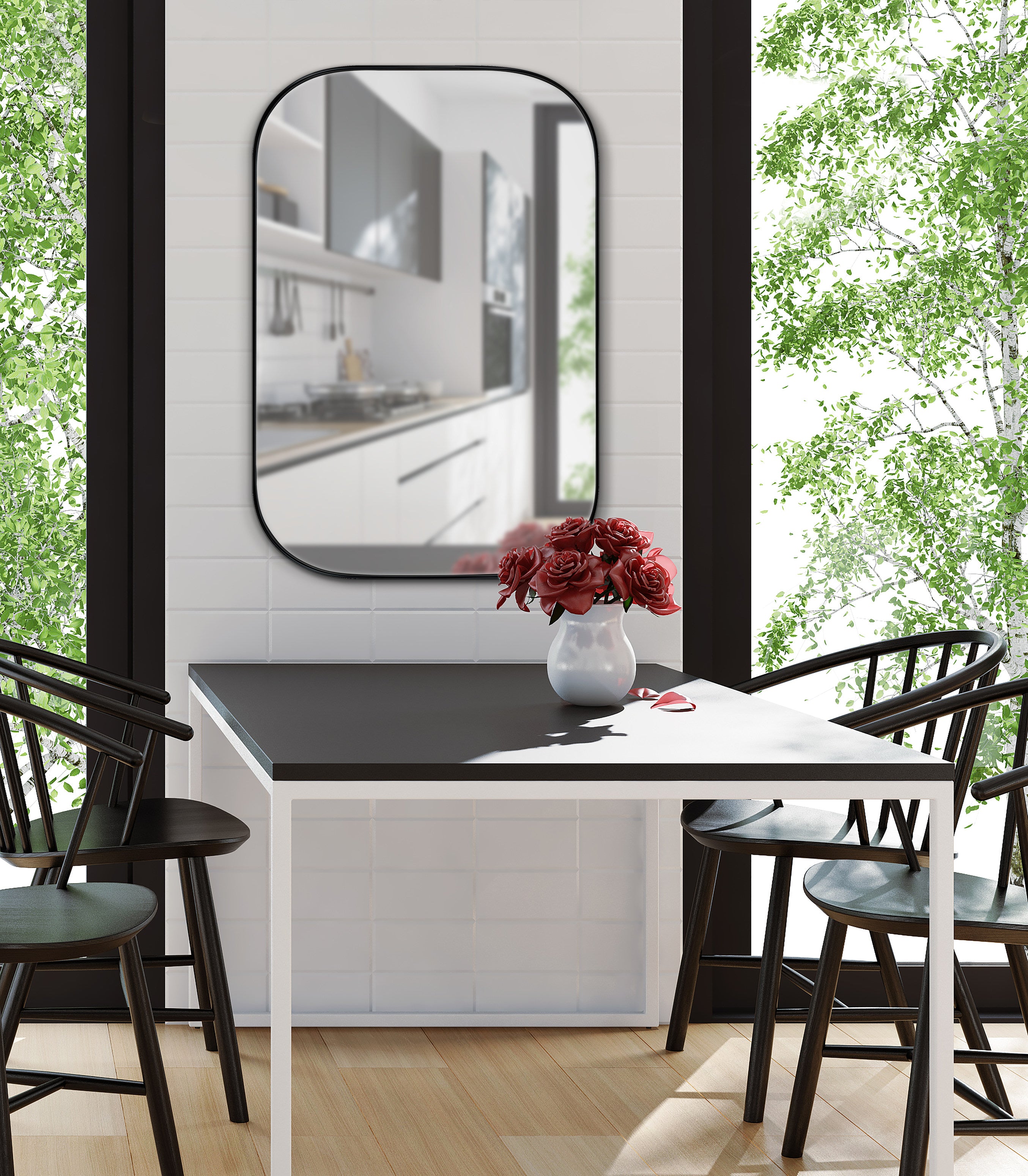 Bring vibrancy and modern style into your home with the Rollo mirror. This mirror features a rectangular shape and a beautiful metallic finish, making it a fantastic contemporary element to add to your living room, bedroom, entryway, or bathroom vanity. Its sleek design and soft shape are perfect for adding sophistication, vibrancy, and dimension to your space.