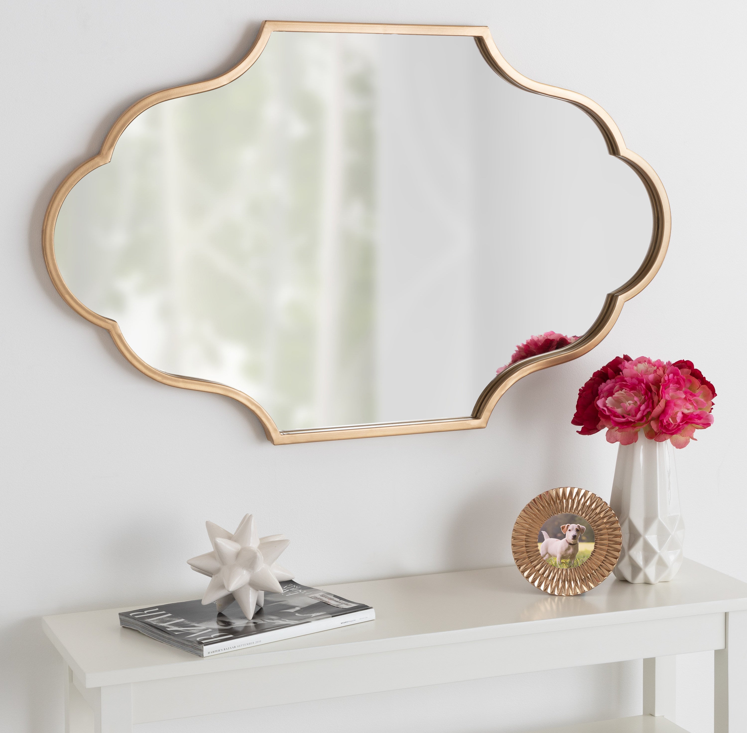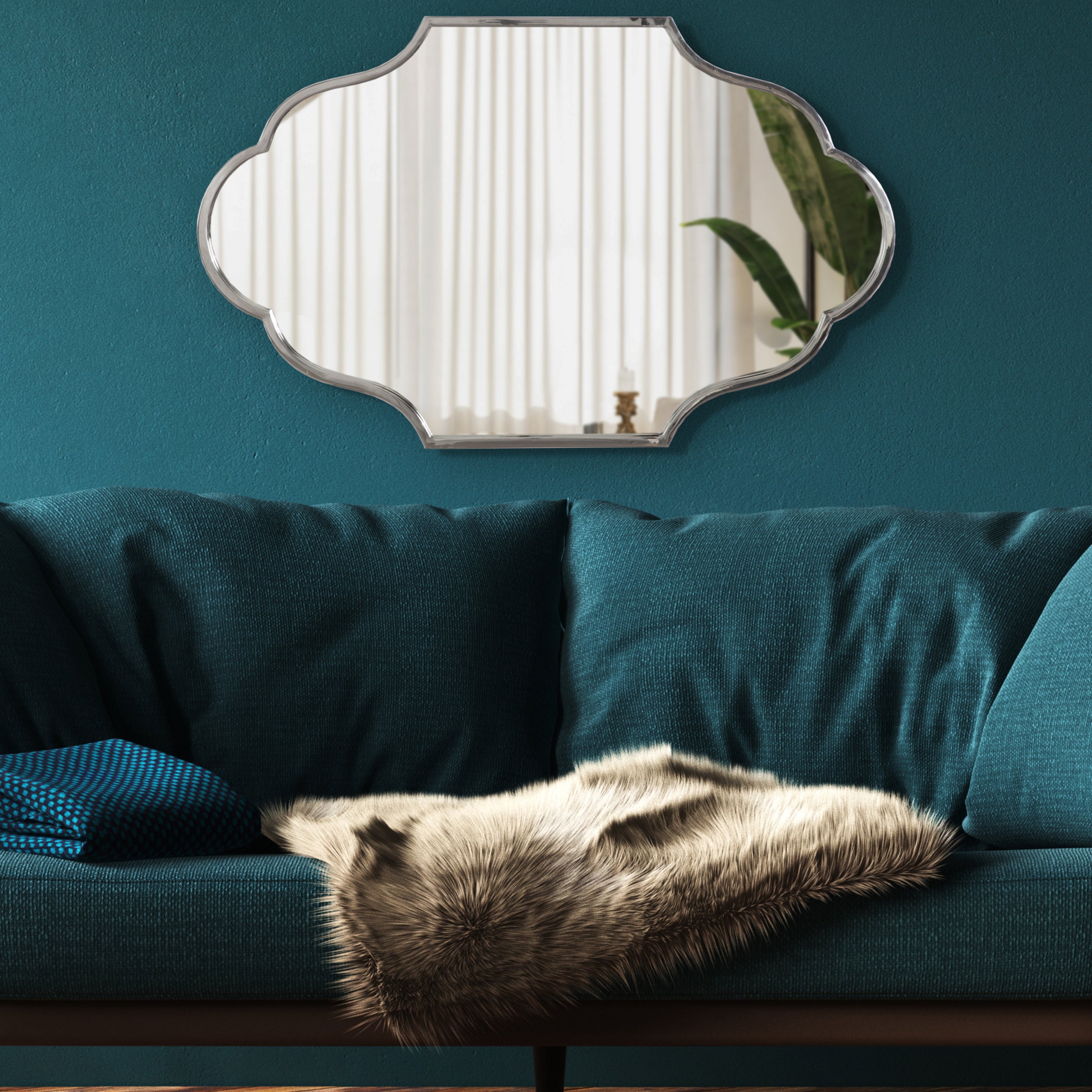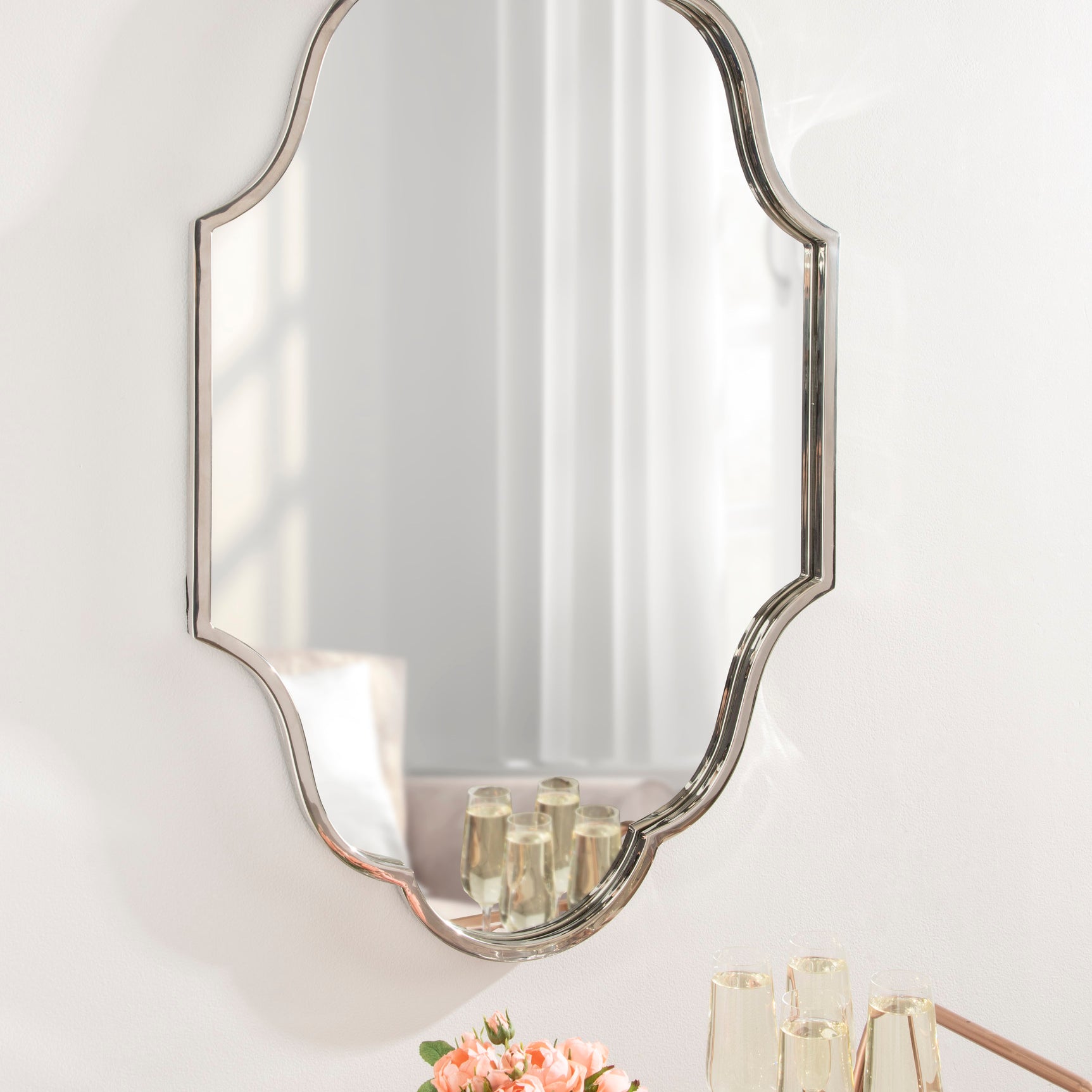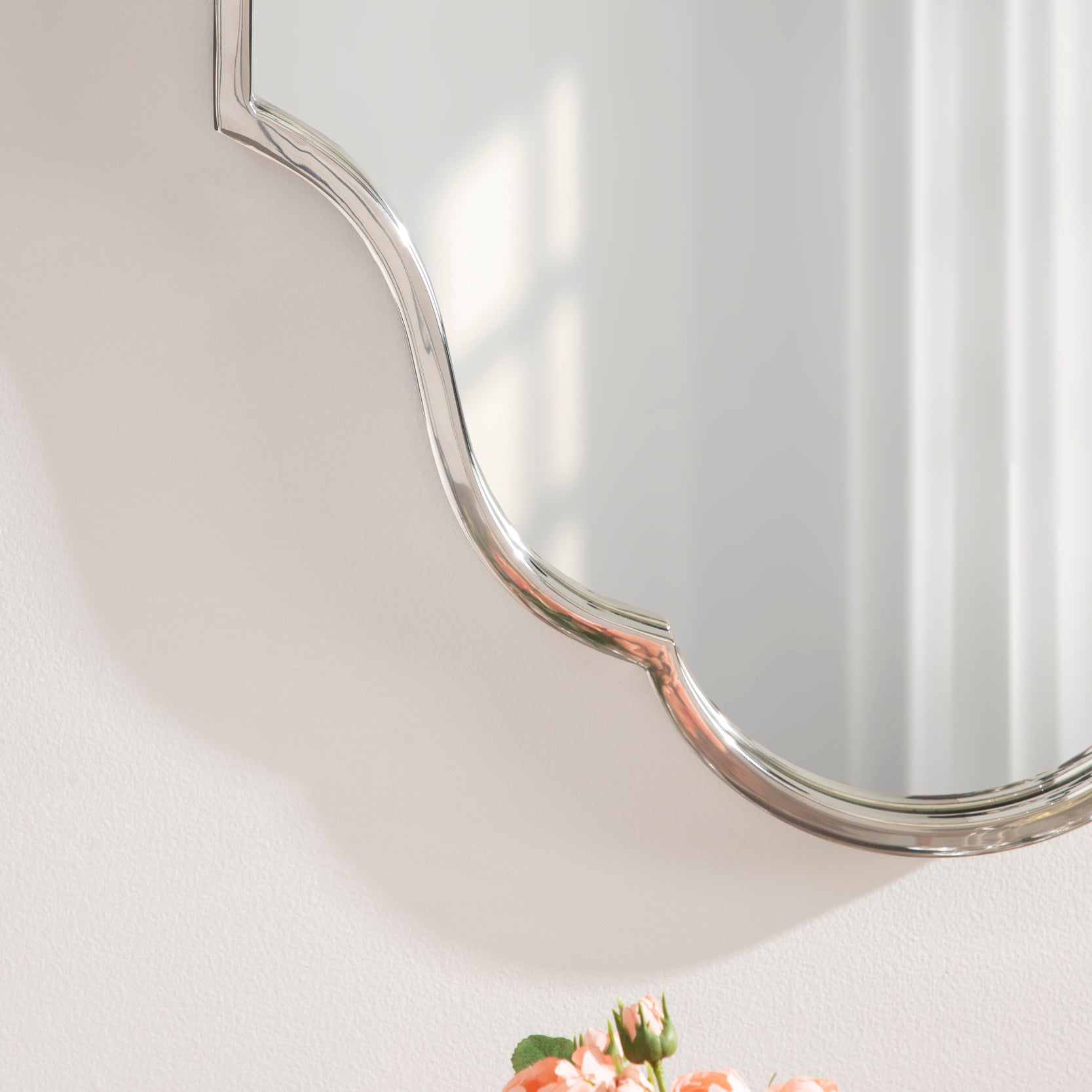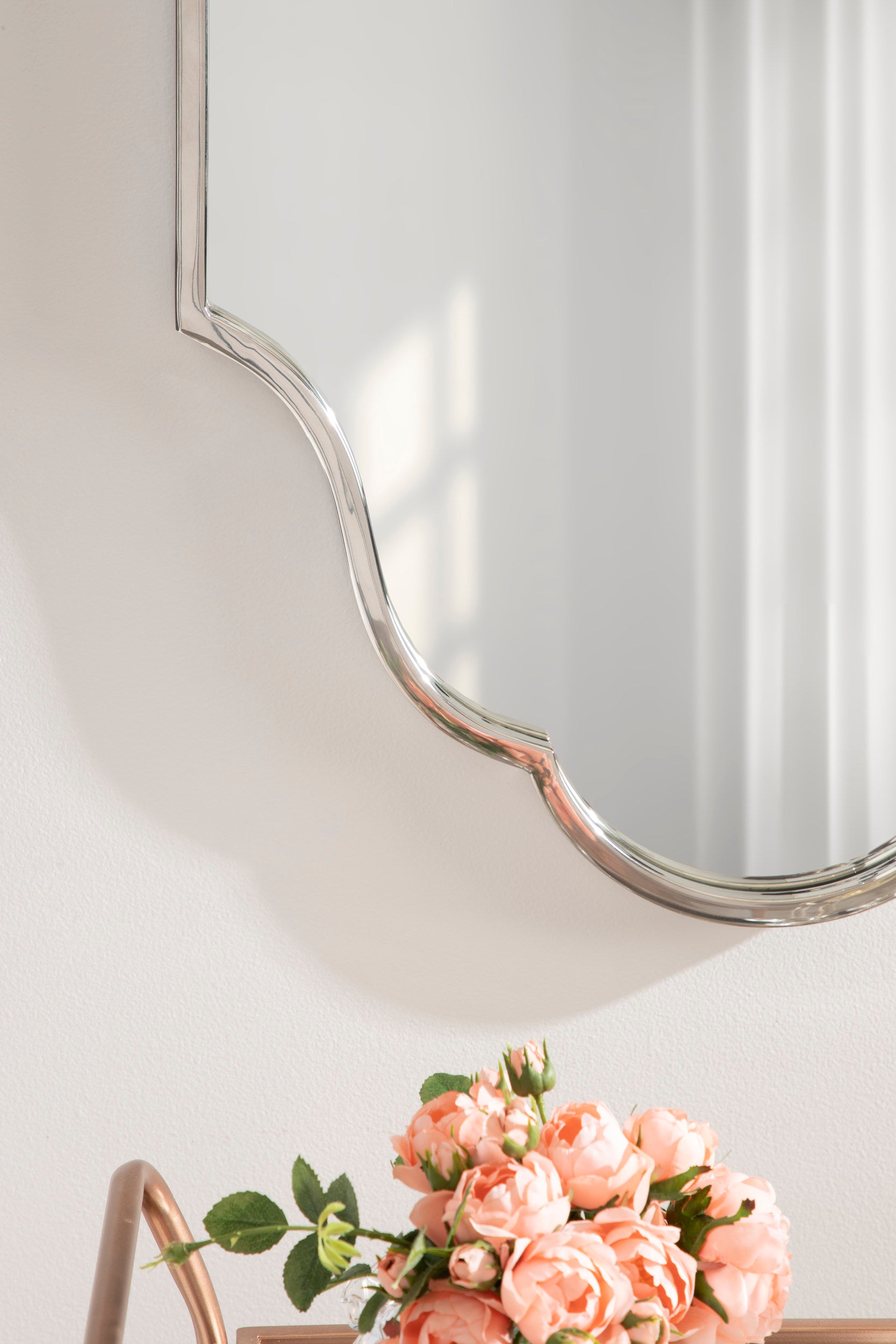 The beautiful Rowla mirror is a fabulous way to introduce glamour to your wall. This mirror features a scalloped frame crafted from a robust iron metal and has a sleek finish, making it a refined accent piece for any wall. It's perfect for showcasing your elegant taste while adding vibrancy and decadence to your space. Use it as a decorative focal point or a bold bathroom mirror above your vanity.