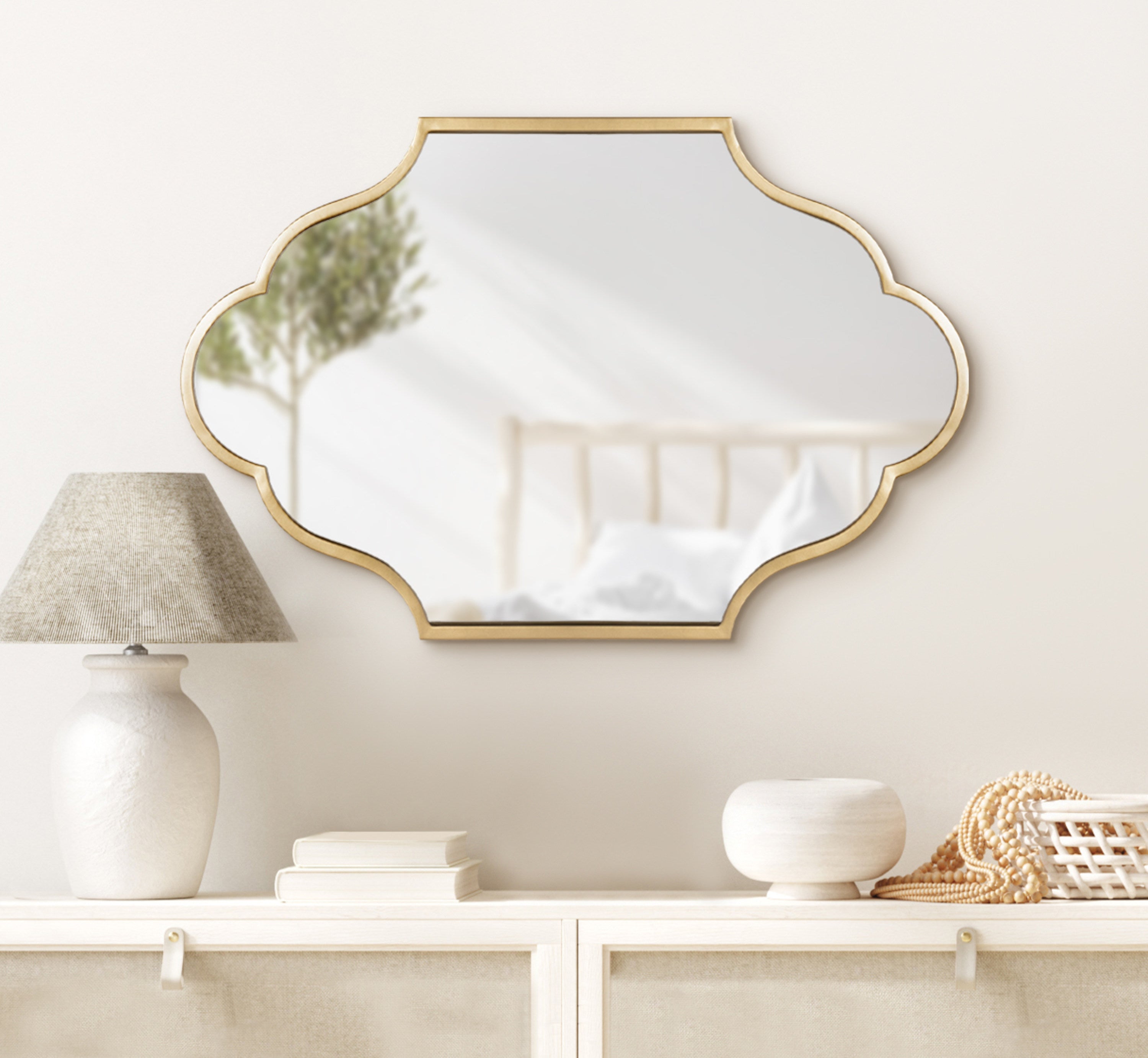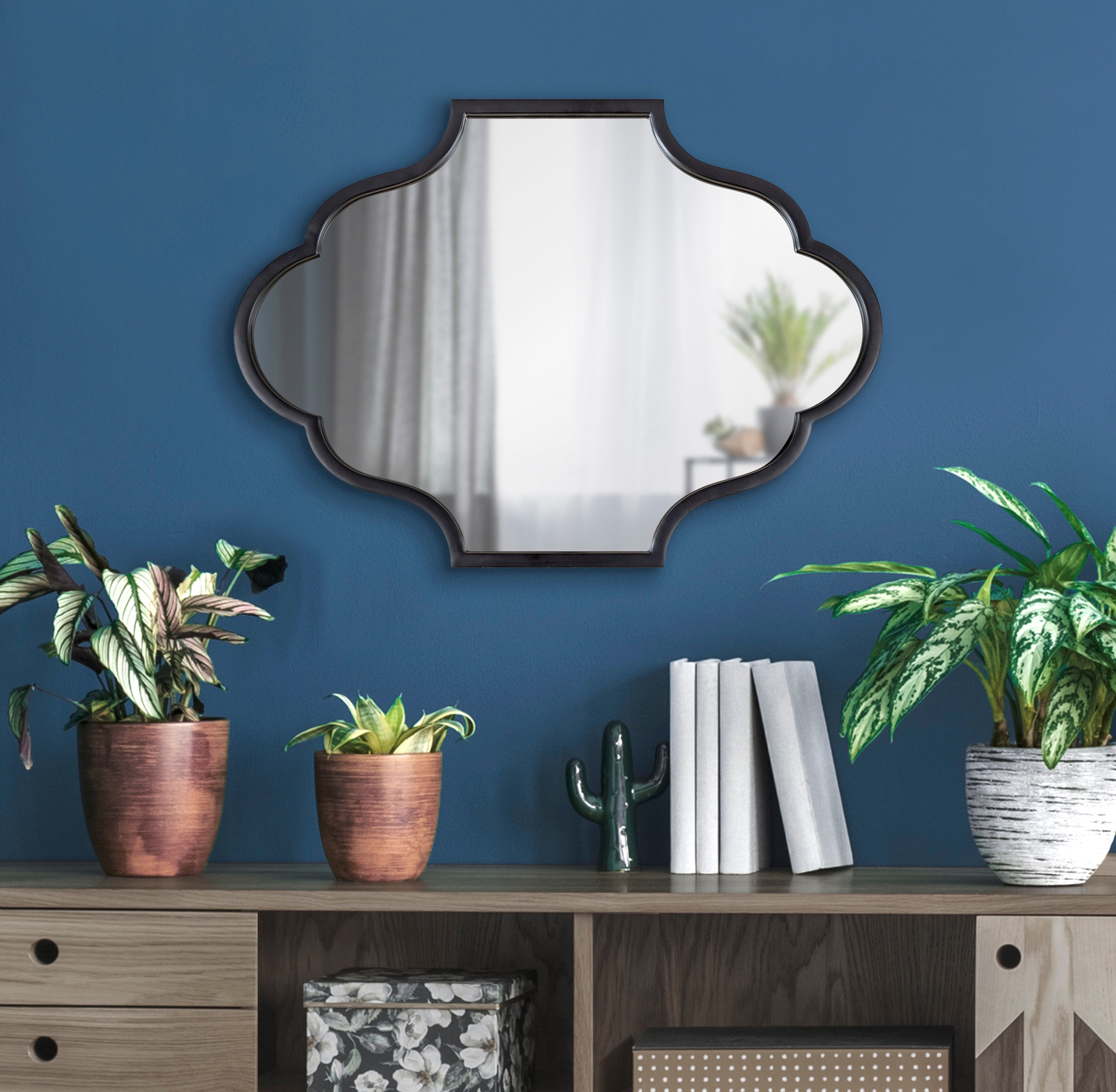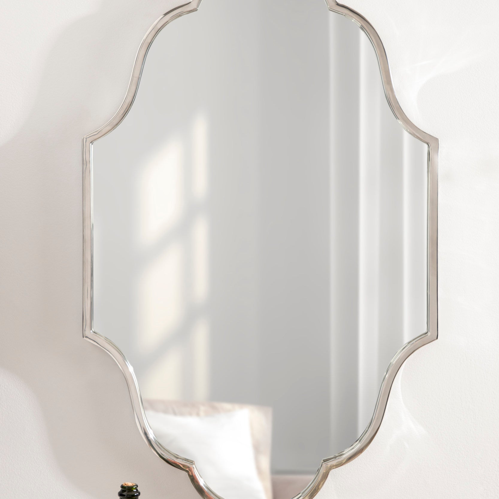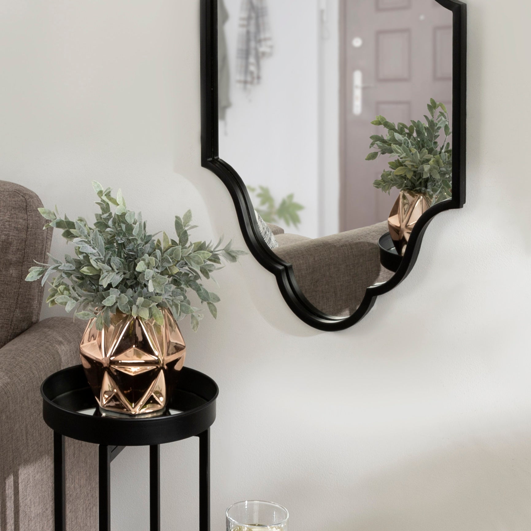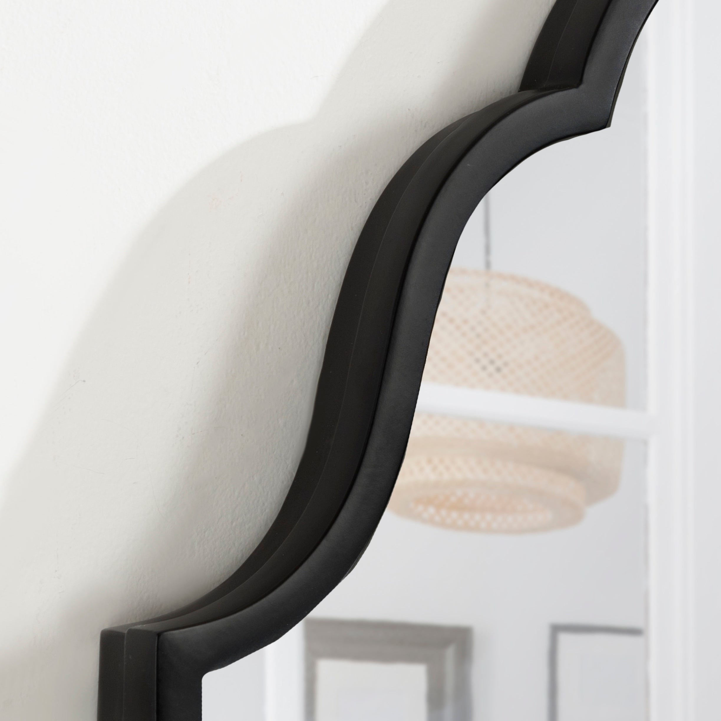 The beautiful Rowla mirror is a fabulous way to introduce glamour to your wall. This mirror features a scalloped frame crafted from a robust iron metal and has a sleek finish, making it a refined accent piece for any wall. It's perfect for showcasing your elegant taste while adding vibrancy and decadence to your space. Use it as a decorative focal point or a bold bathroom mirror above your vanity.
