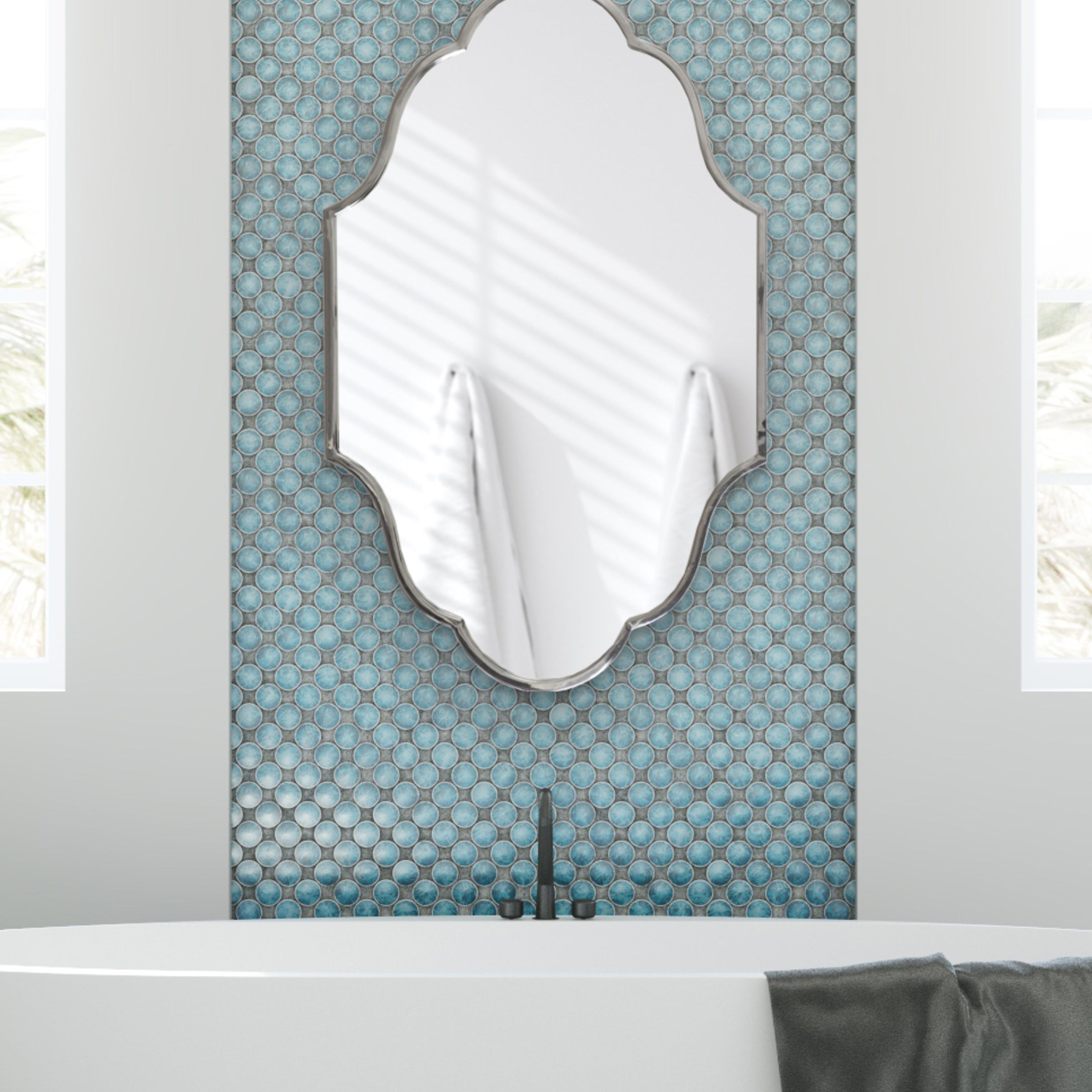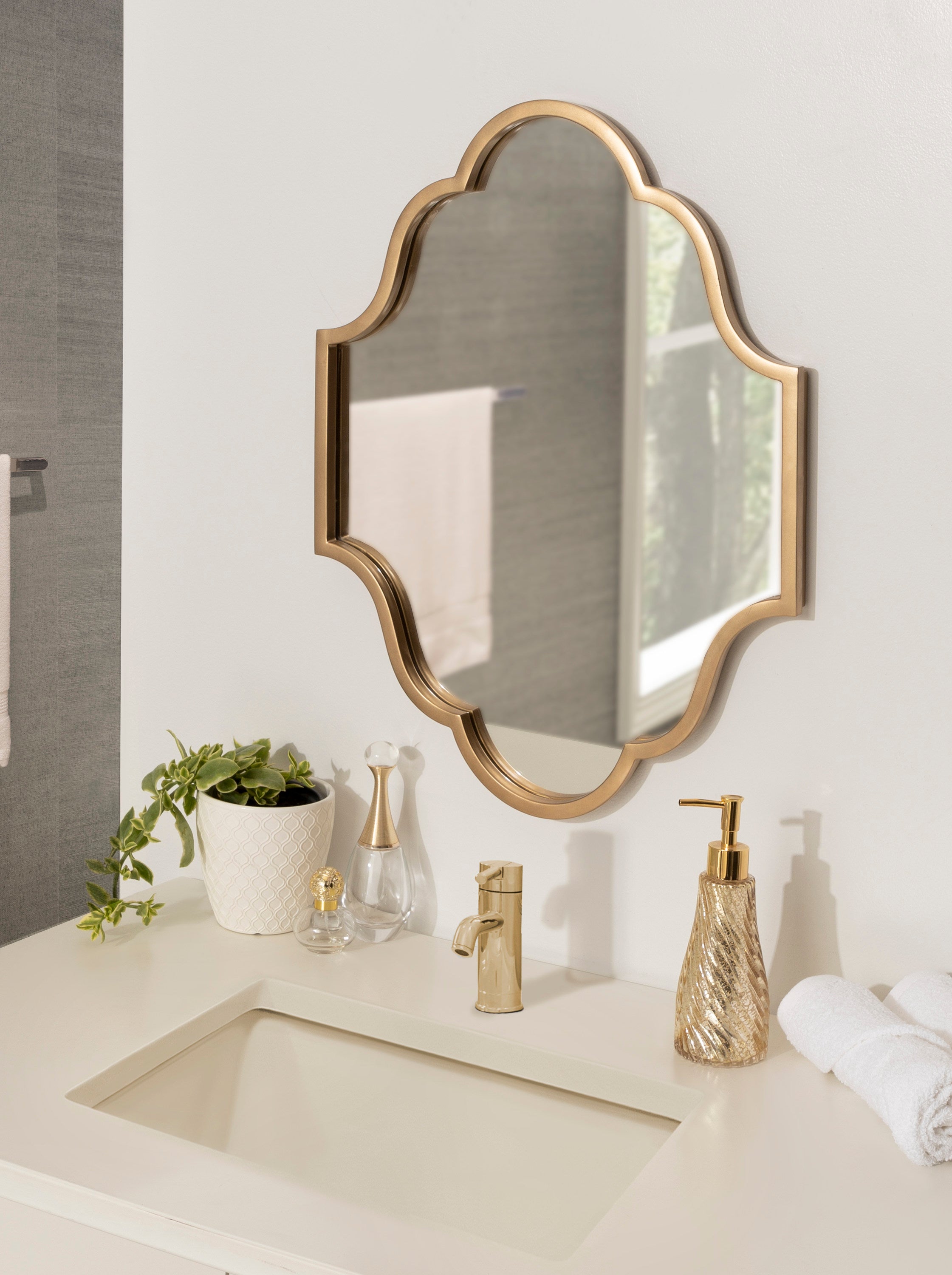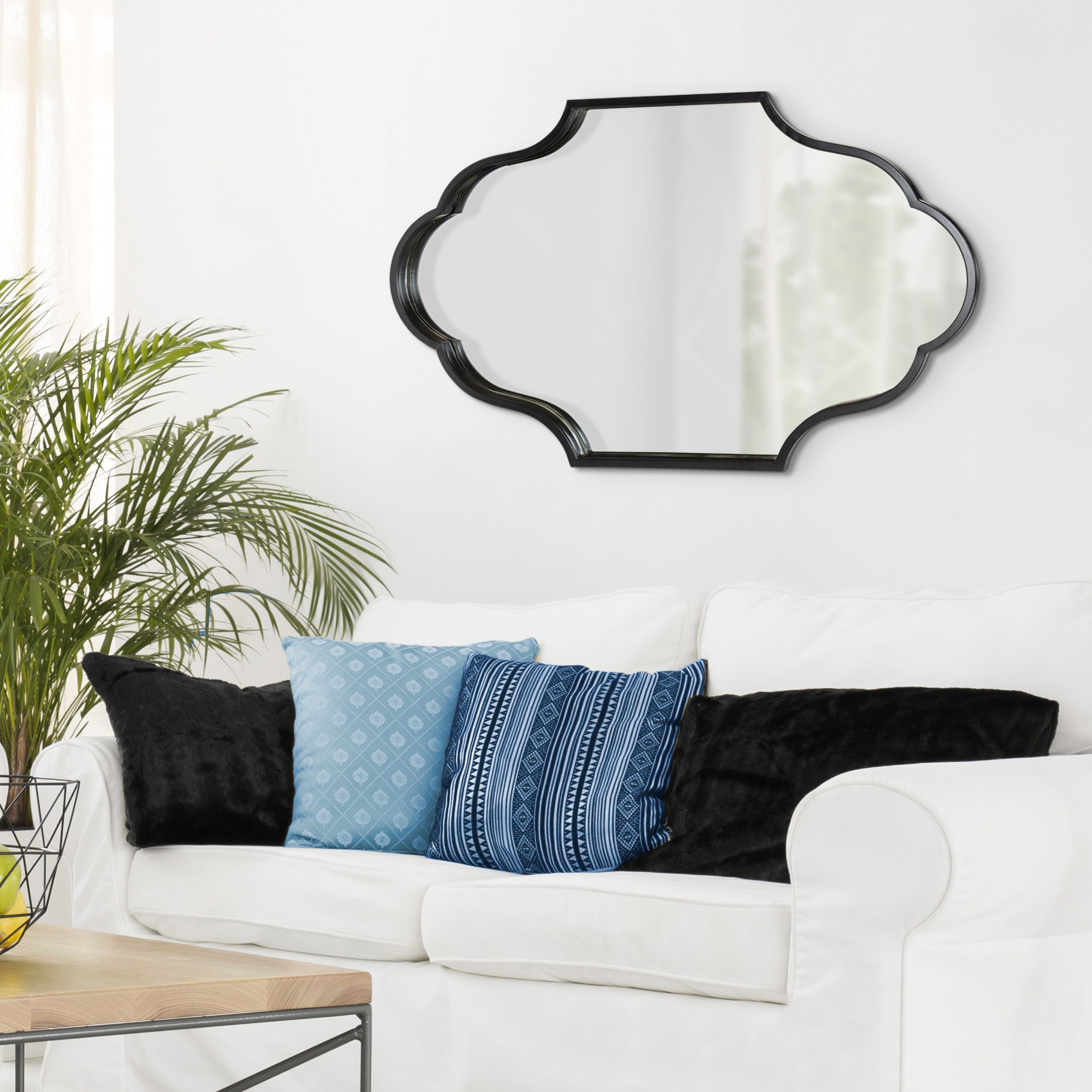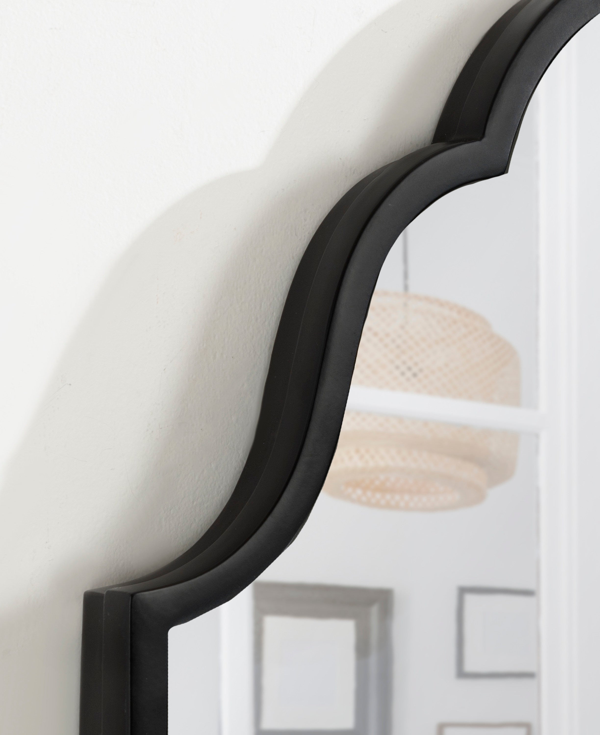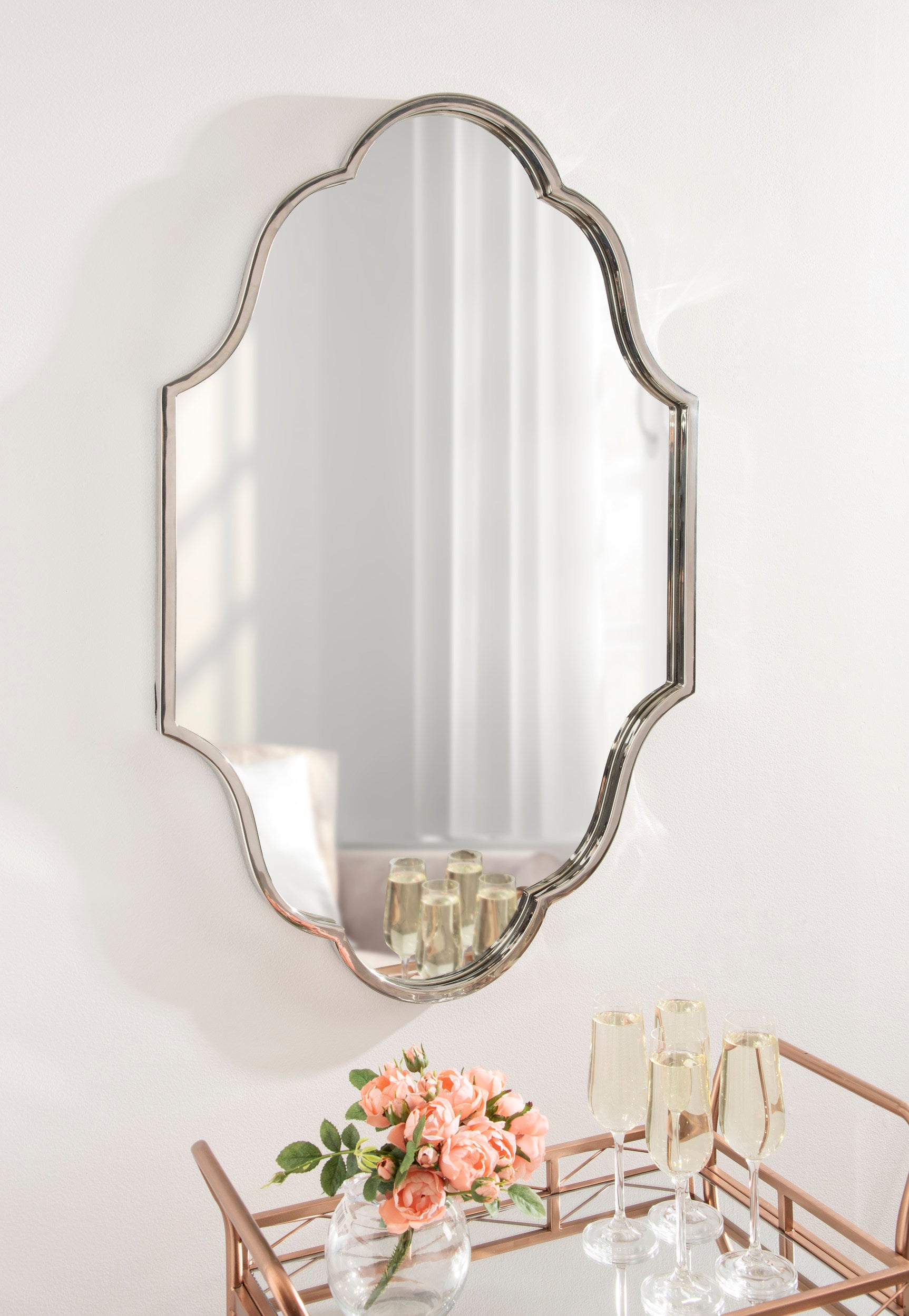 The beautiful Rowla mirror is a fabulous way to introduce glamour to your wall. This mirror features a scalloped frame crafted from a robust iron metal and has a sleek finish, making it a refined accent piece for any wall. It's perfect for showcasing your elegant taste while adding vibrancy and decadence to your space. Use it as a decorative focal point or a bold bathroom mirror above your vanity.