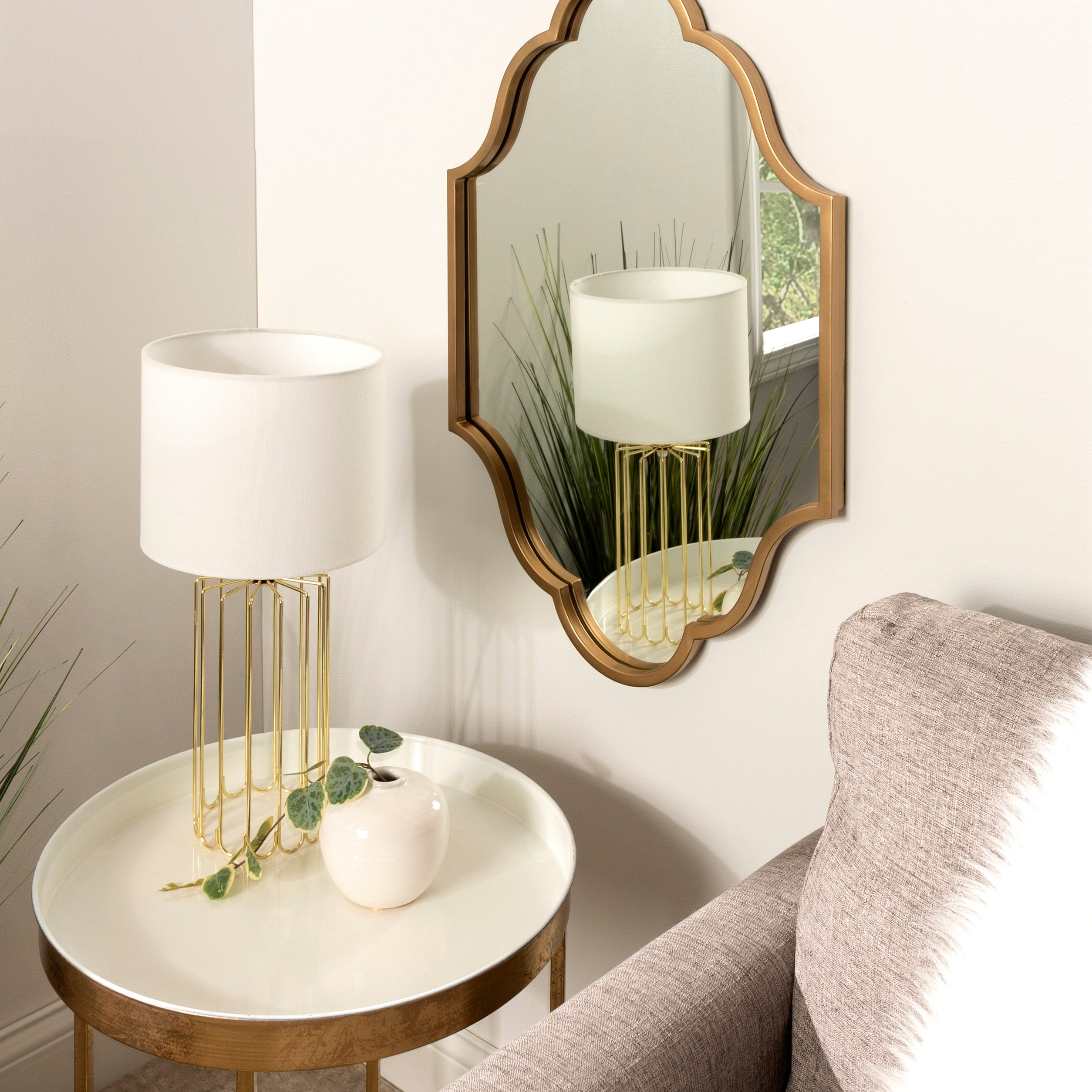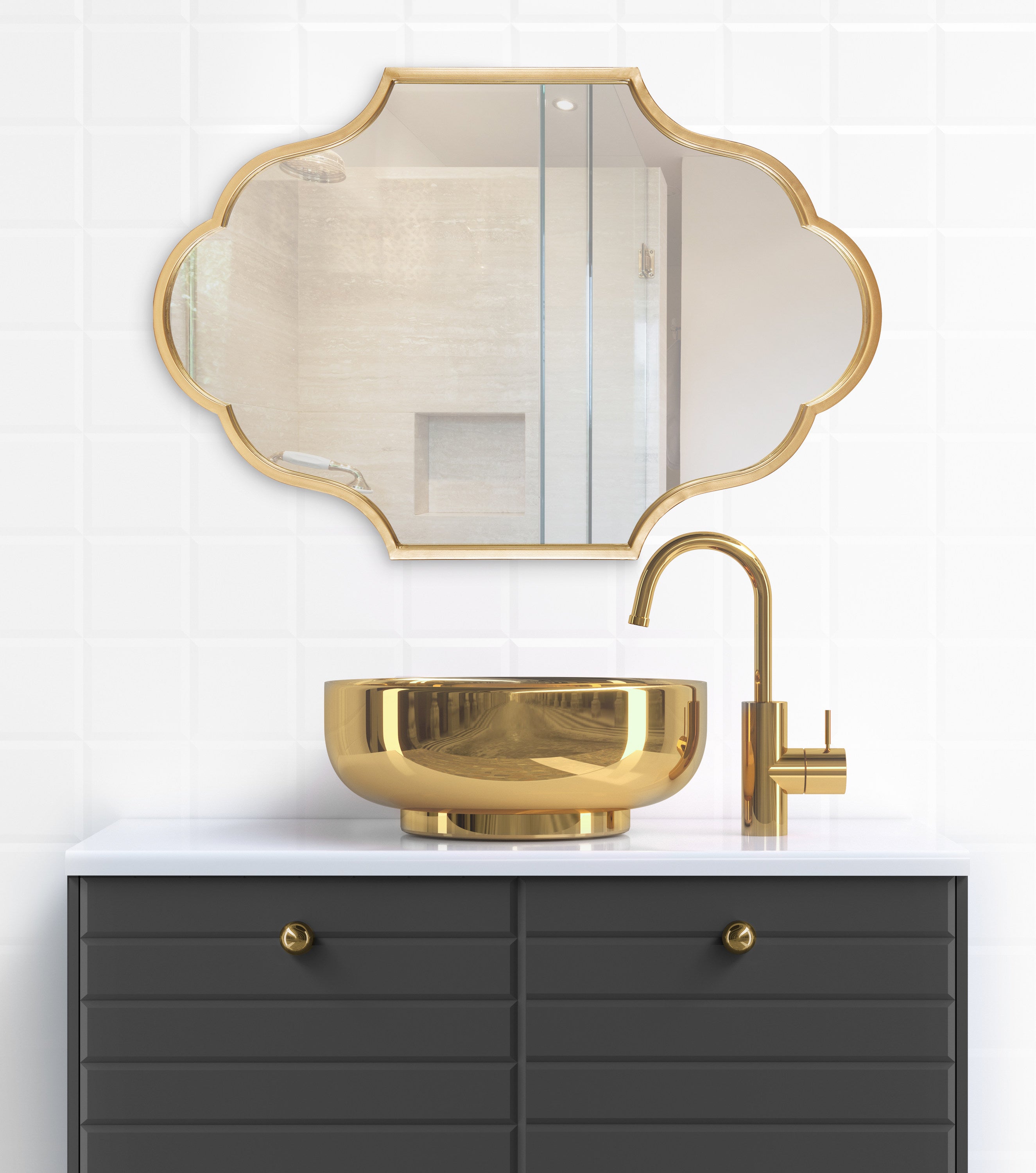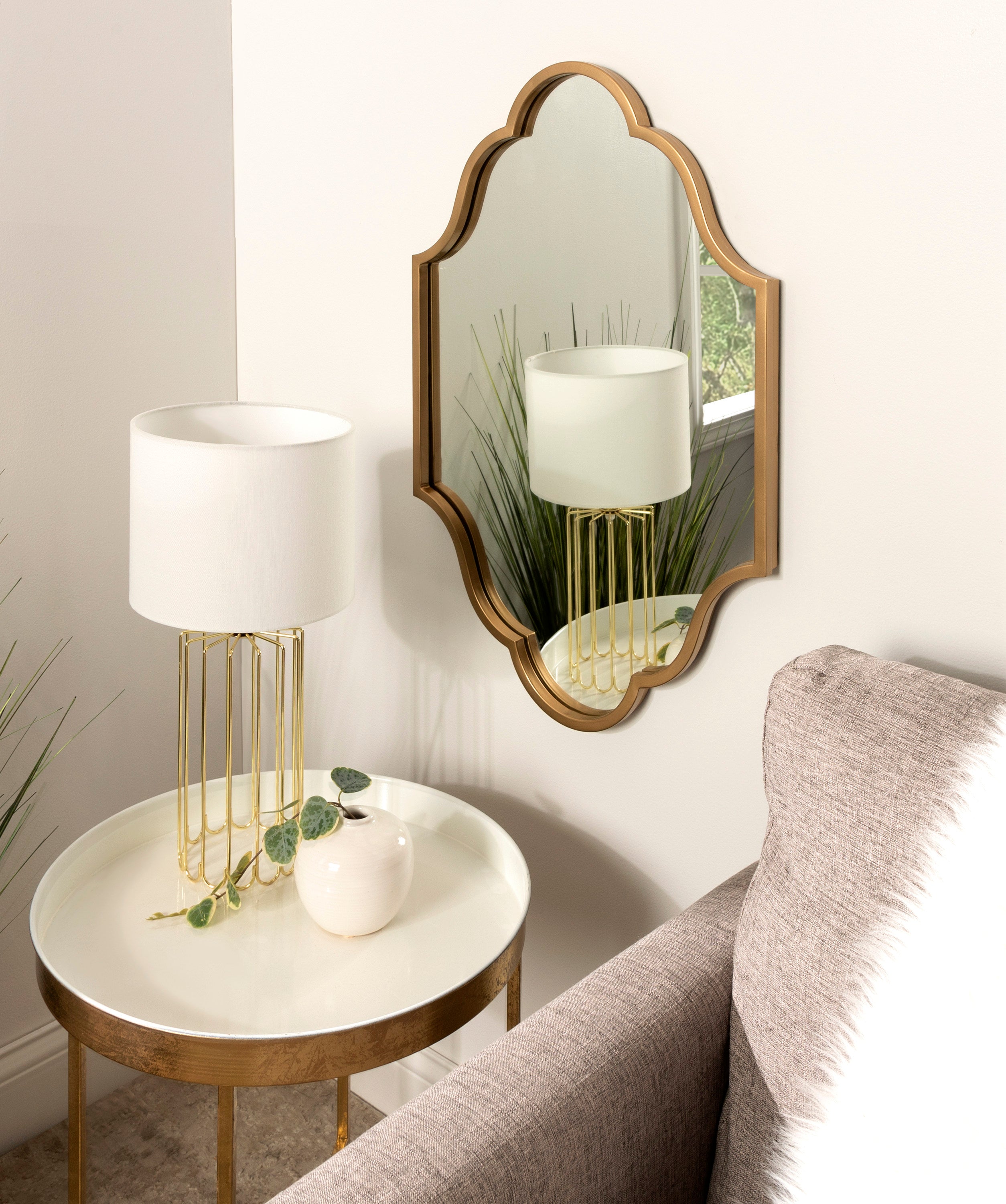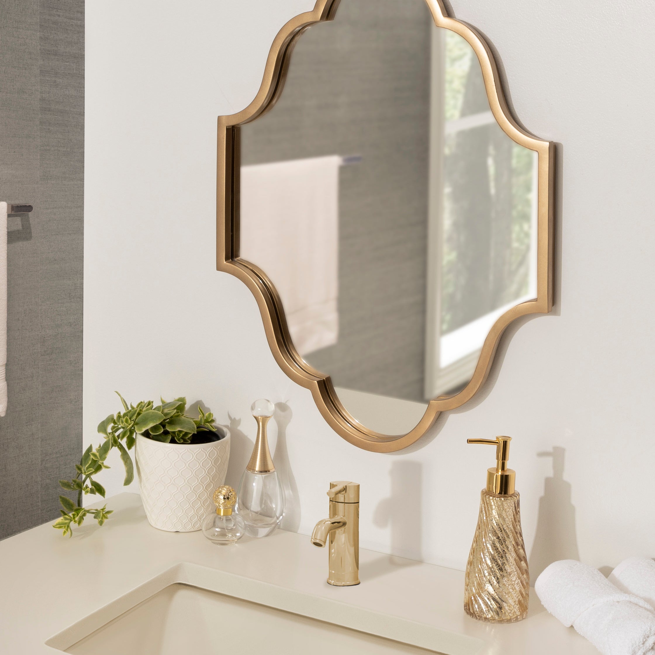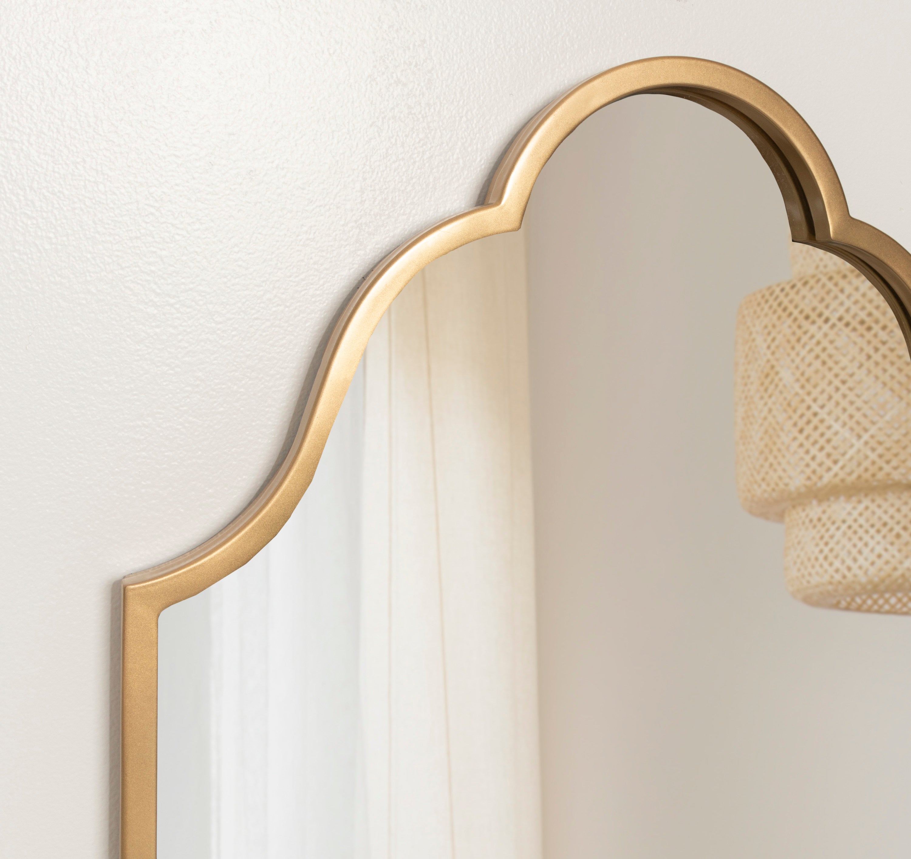 The beautiful Rowla mirror is a fabulous way to introduce glamour to your wall. This mirror features a scalloped frame crafted from a robust iron metal and has a sleek finish, making it a refined accent piece for any wall. It's perfect for showcasing your elegant taste while adding vibrancy and decadence to your space. Use it as a decorative focal point or a bold bathroom mirror above your vanity.