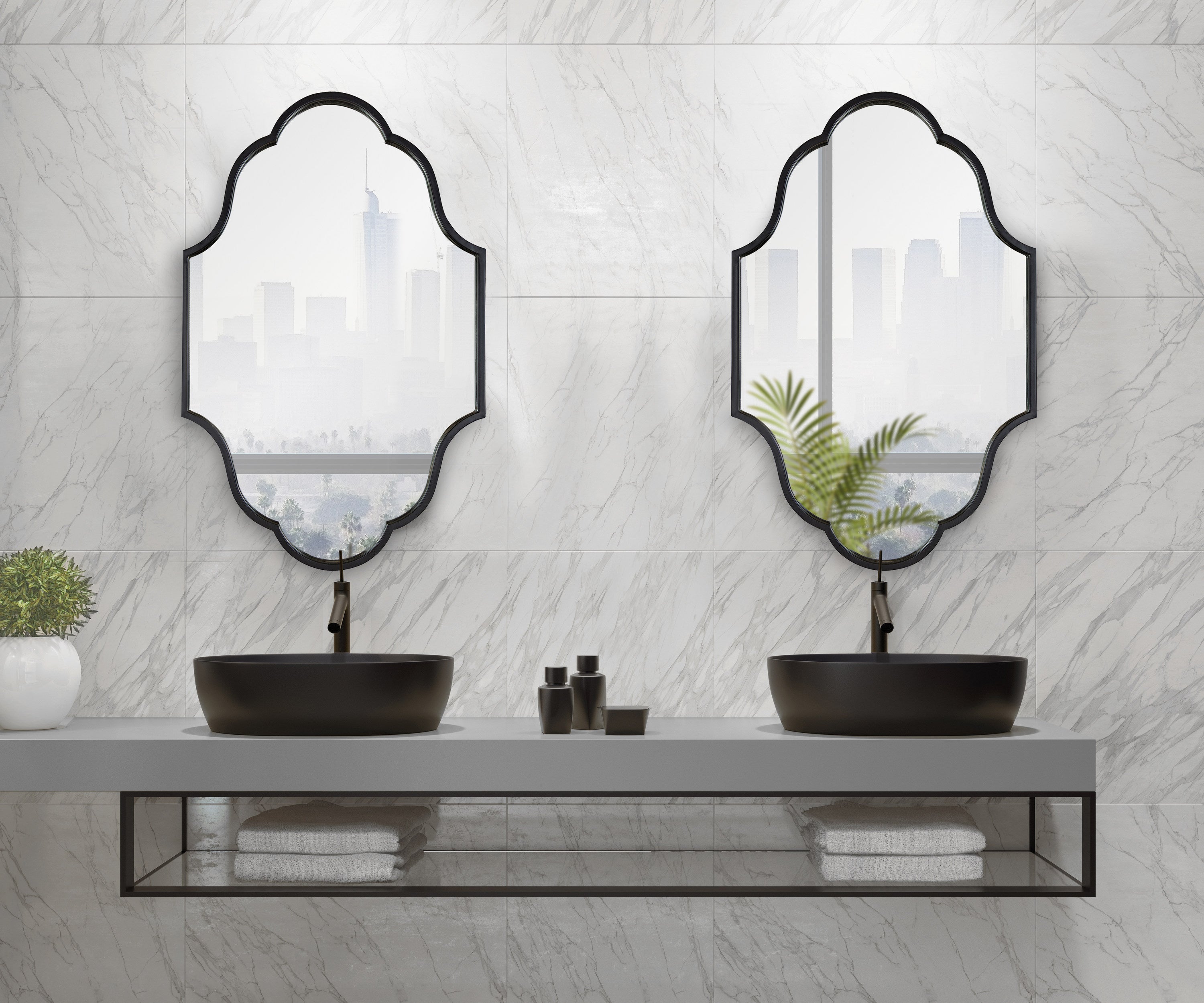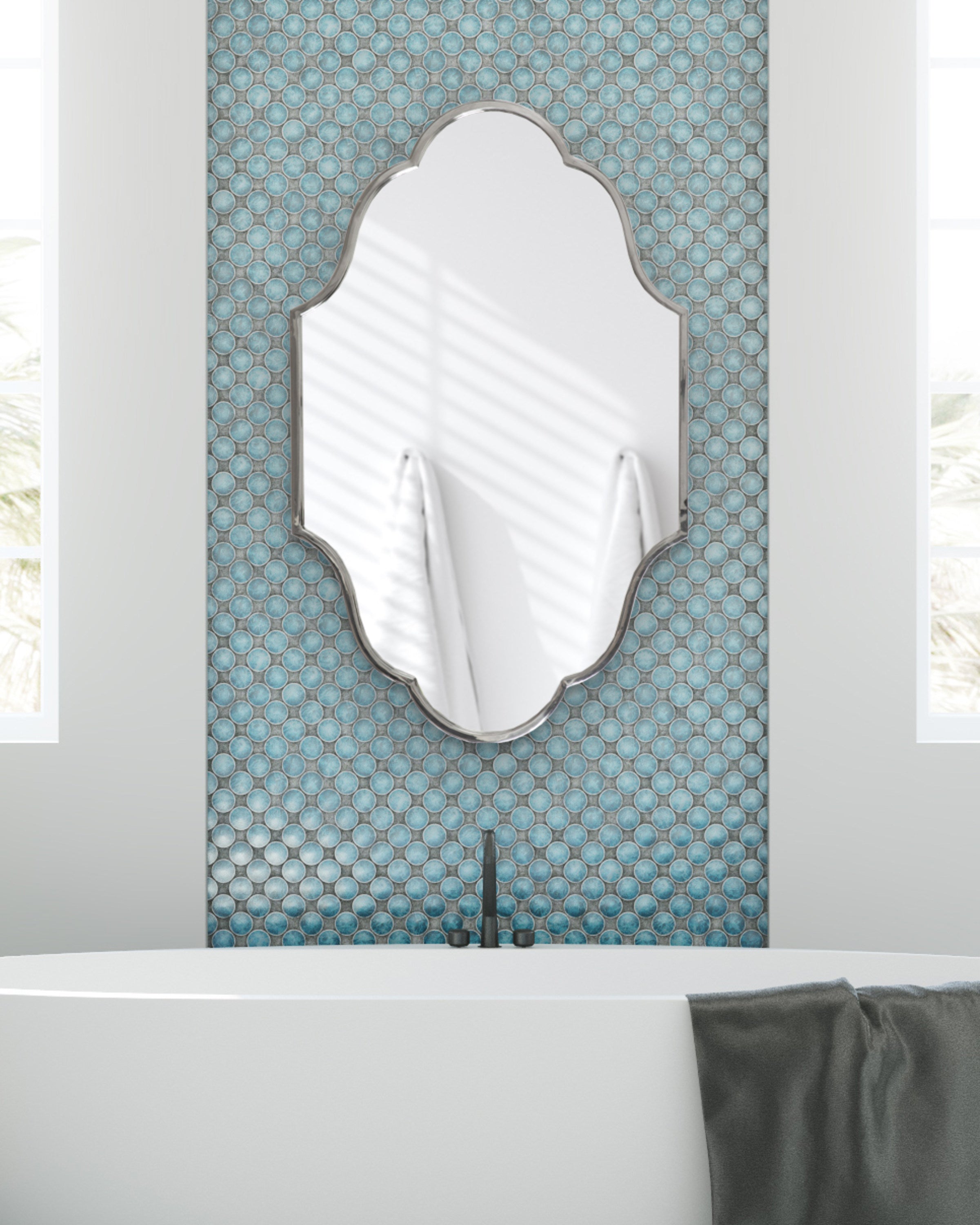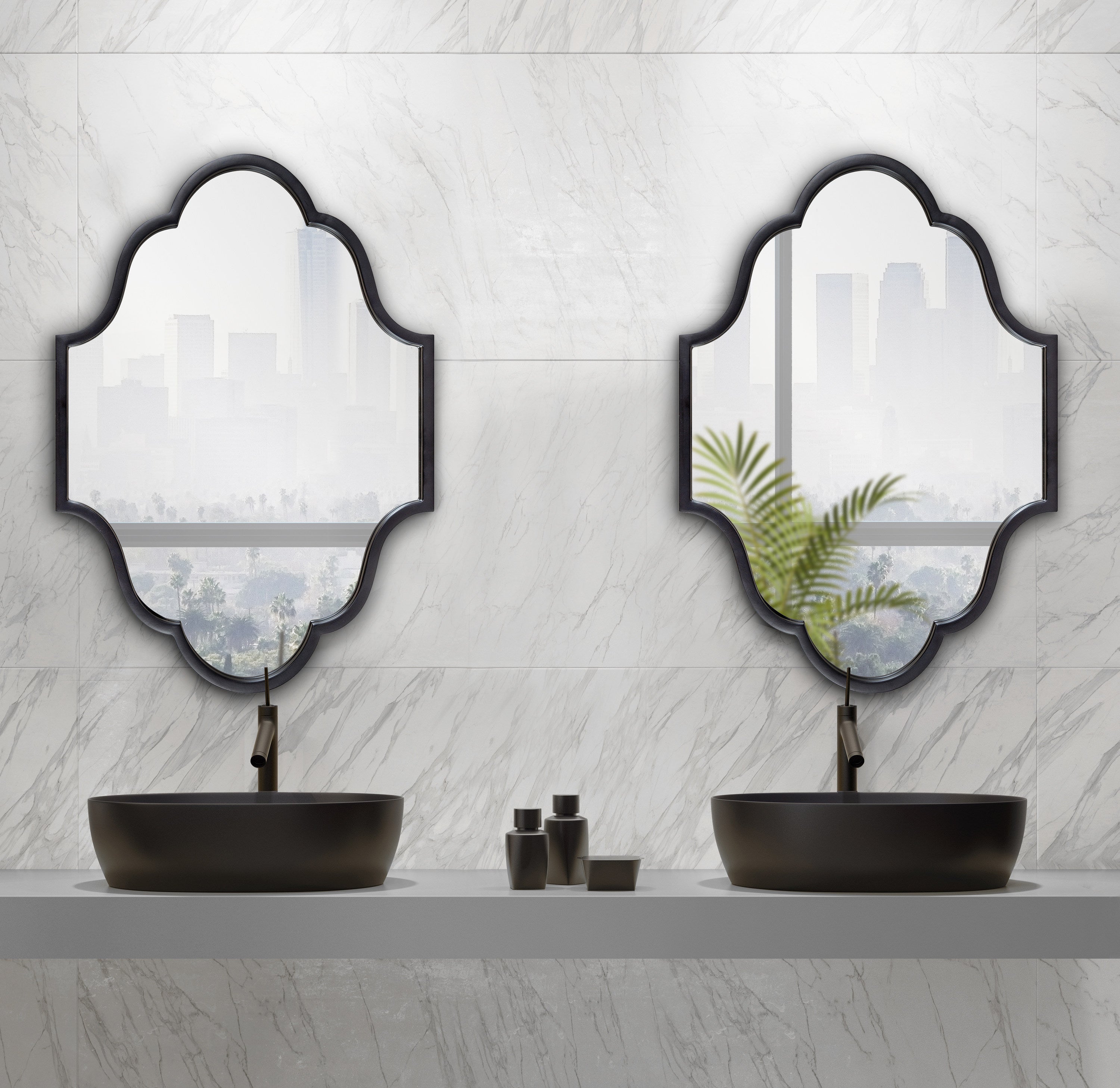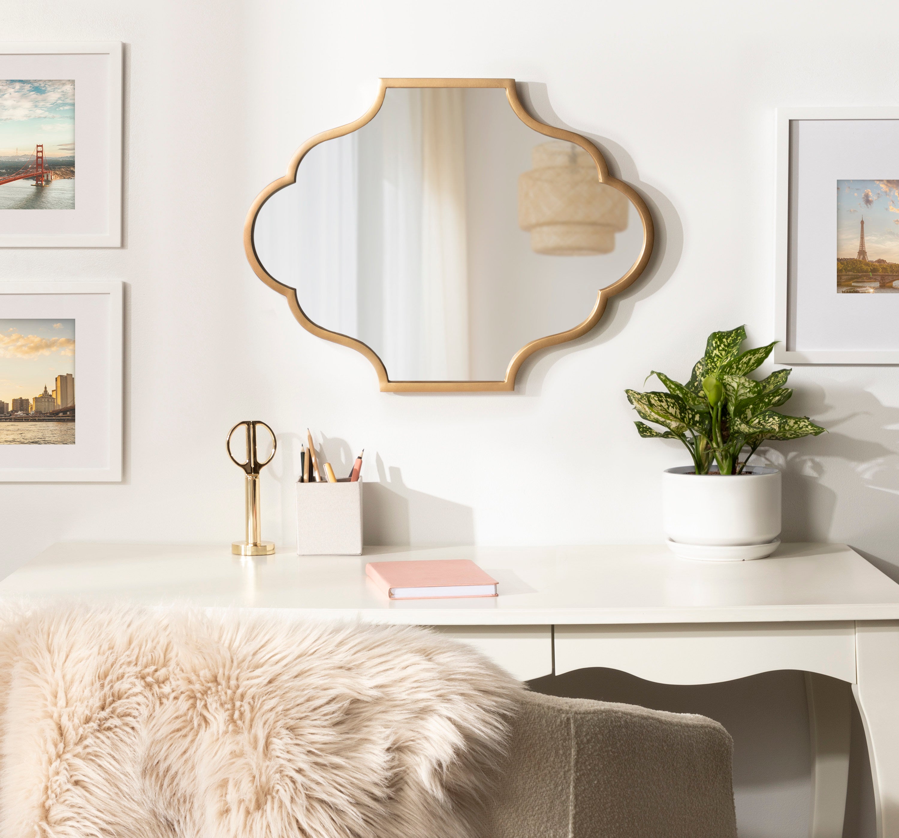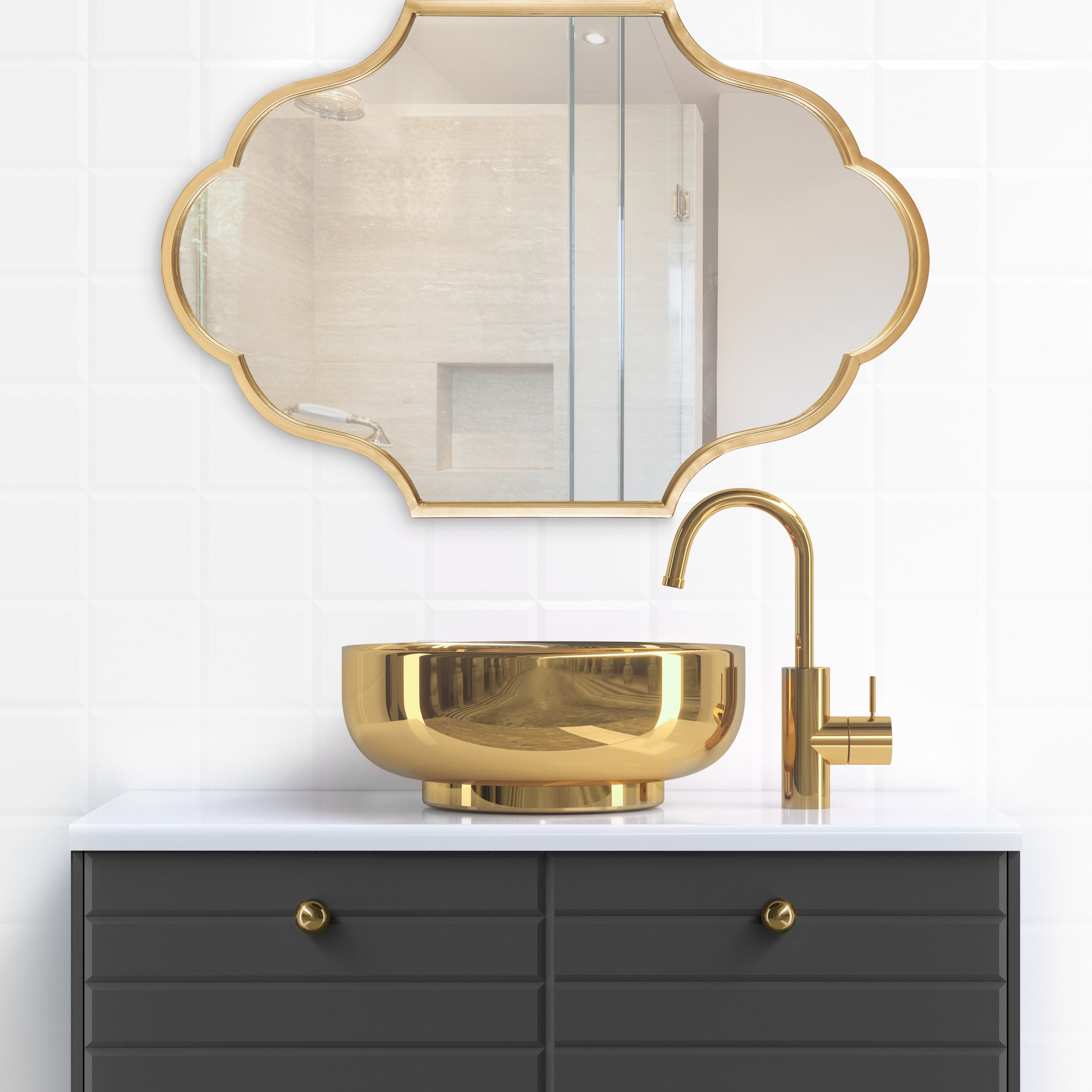 The beautiful Rowla mirror is a fabulous way to introduce glamour to your wall. This mirror features a scalloped frame crafted from a robust iron metal and has a sleek finish, making it a refined accent piece for any wall. It's perfect for showcasing your elegant taste while adding vibrancy and decadence to your space. Use it as a decorative focal point or a bold bathroom mirror above your vanity.