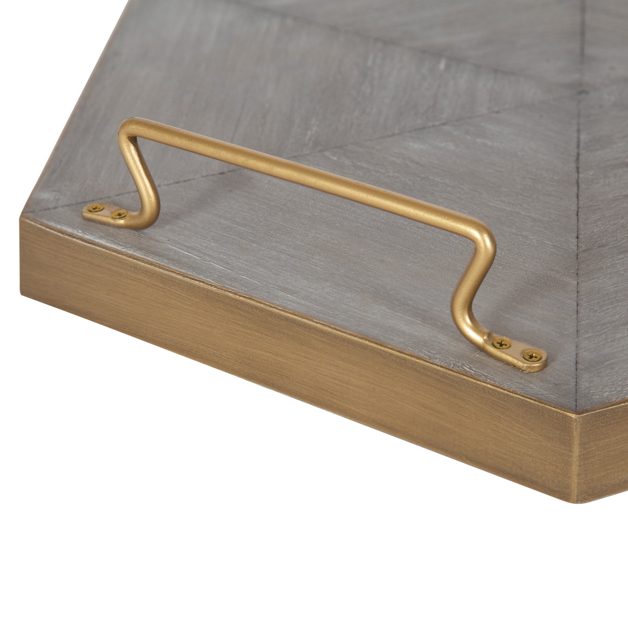 The industrial modern style and hexagon shape of the Sade tray make a beautiful accent piece for your home. The beefy block design and faux concrete finish along with polished metal handles create the perfect way to organize your perfume or makeup while the elegant style is a lovely way to display ornaments on a coffee table.