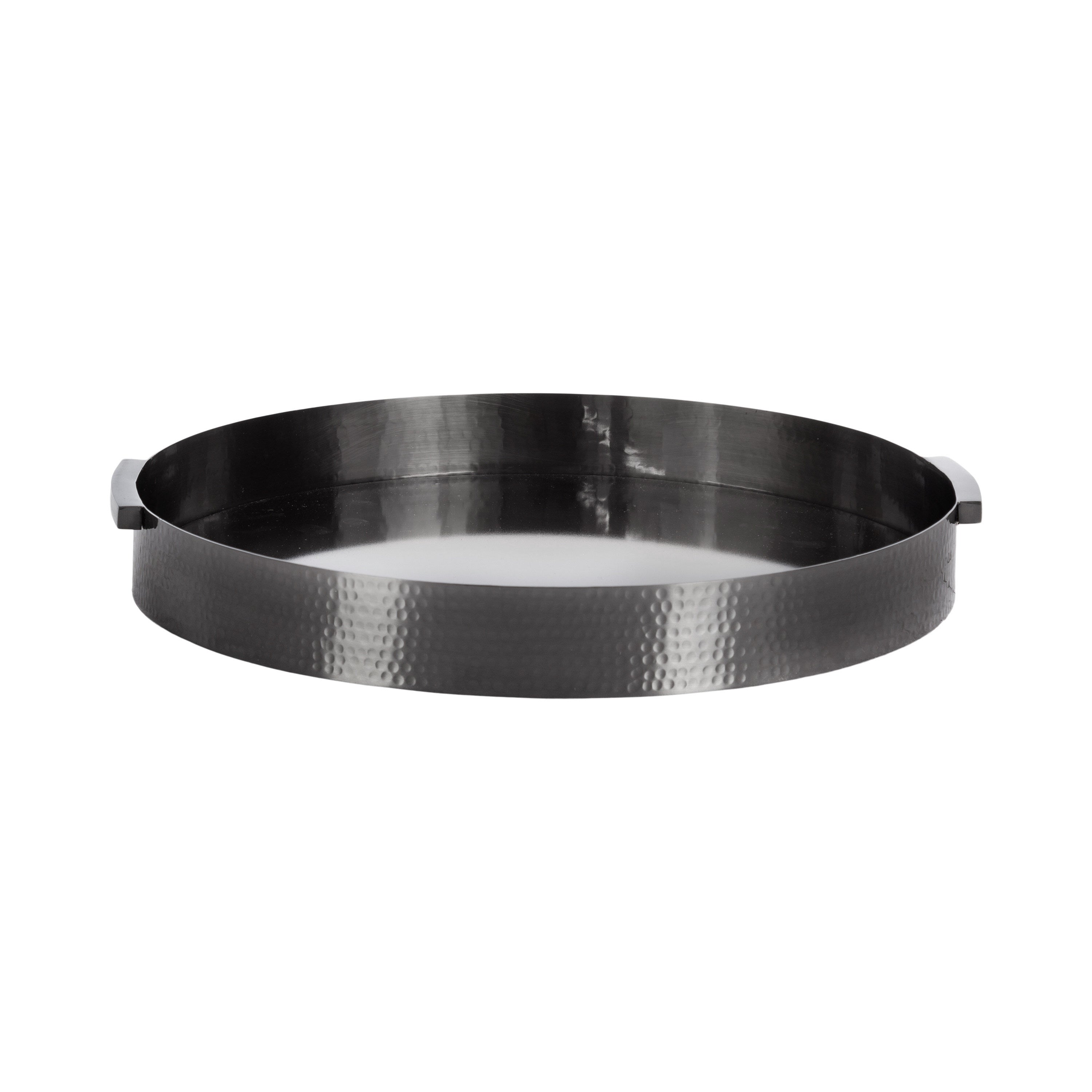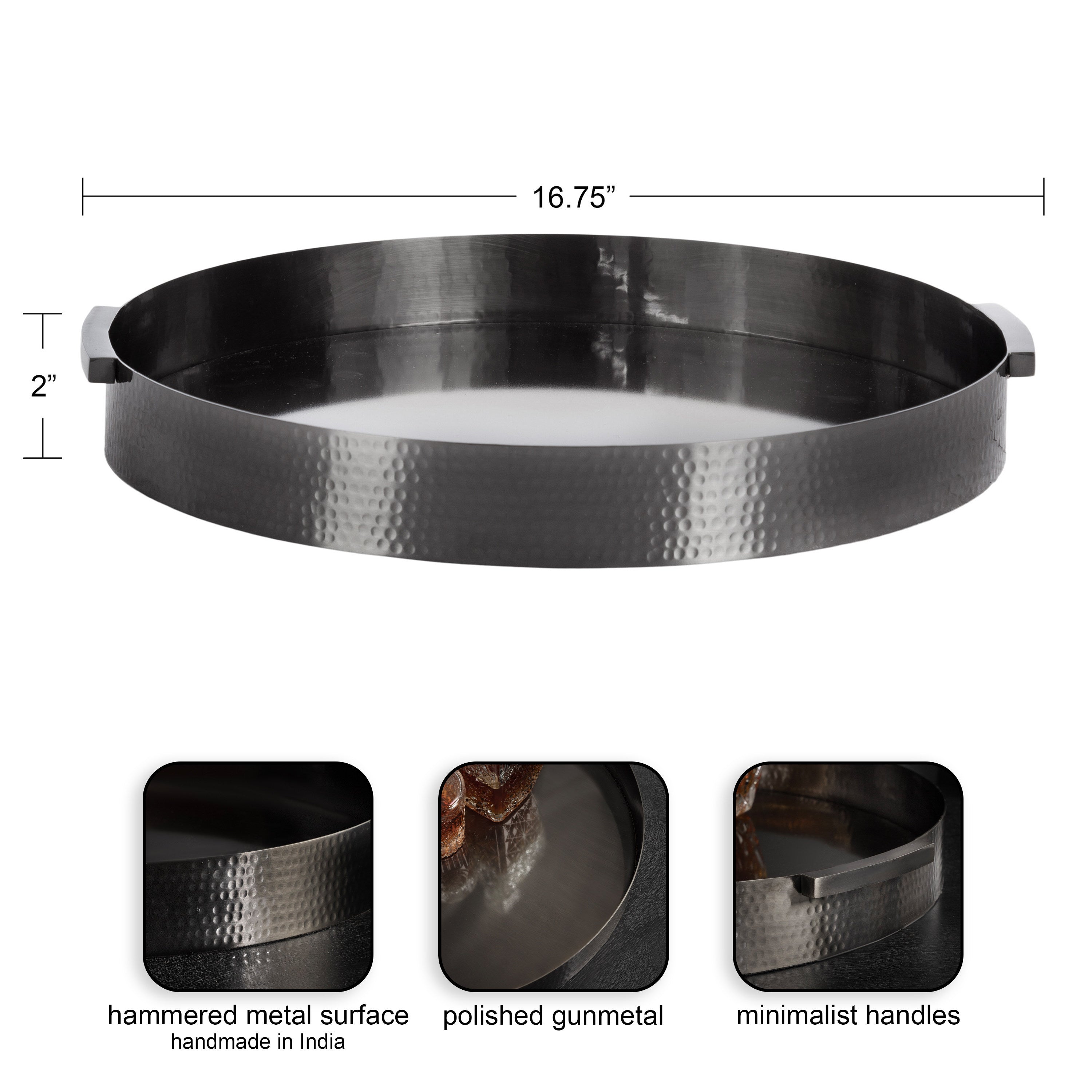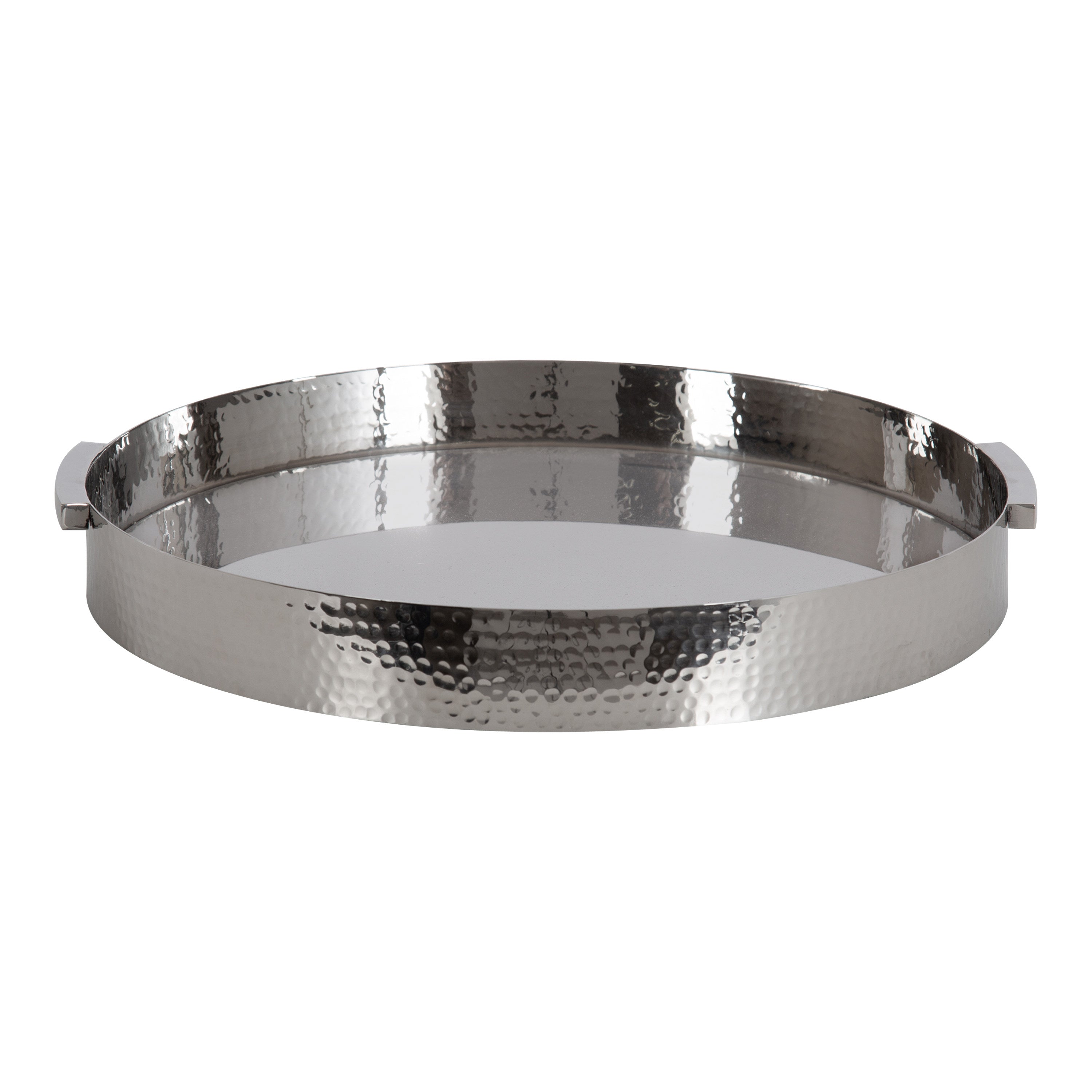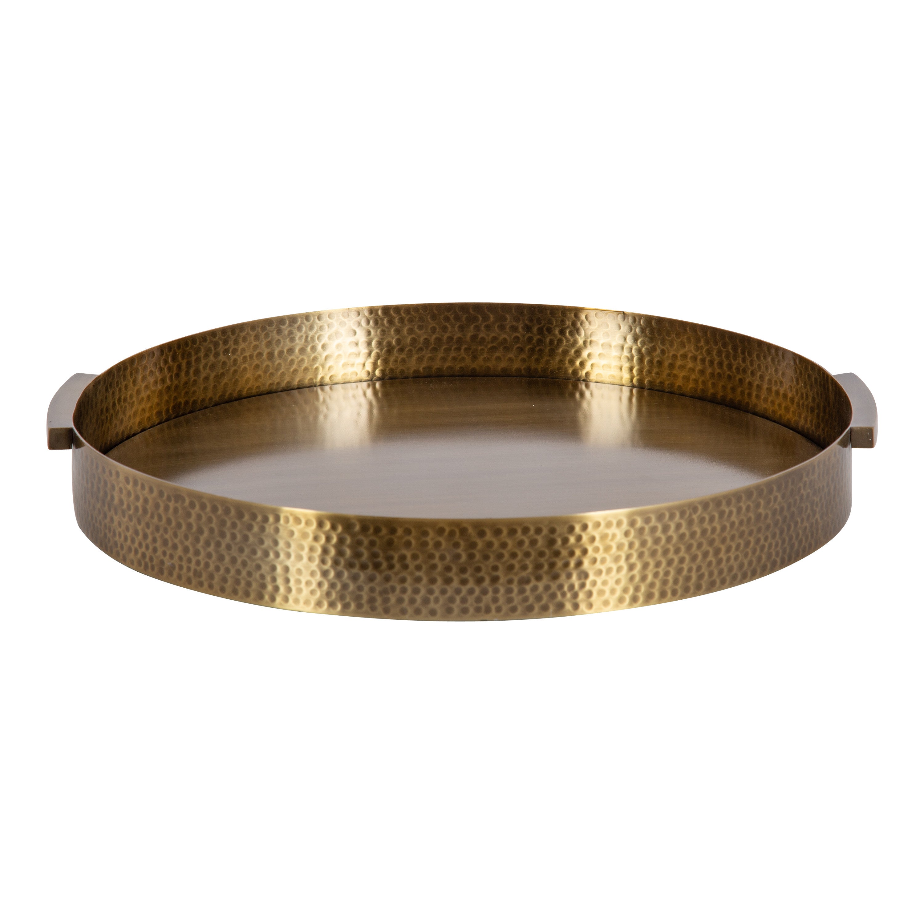 Craft a gorgeous dinner party scene with this Samana round metal tray from Kate and Laurel. This marvelous decorative tray boasts a resilient metal construction, giving your space a high-quality accent piece that was built to last. Along its stunning outer edge, the Samana features a hammered texture that was carefully handcrafted by artisans in India.